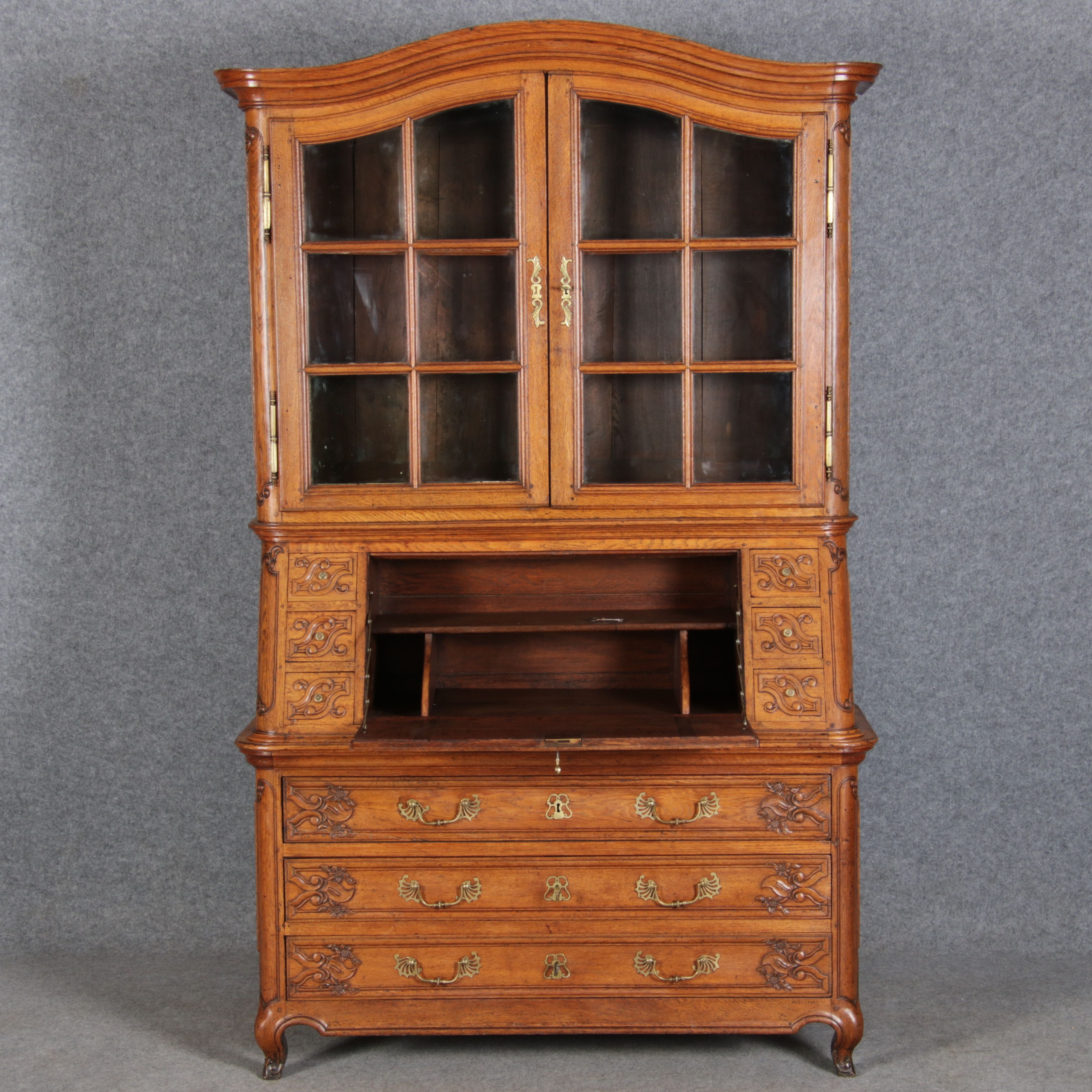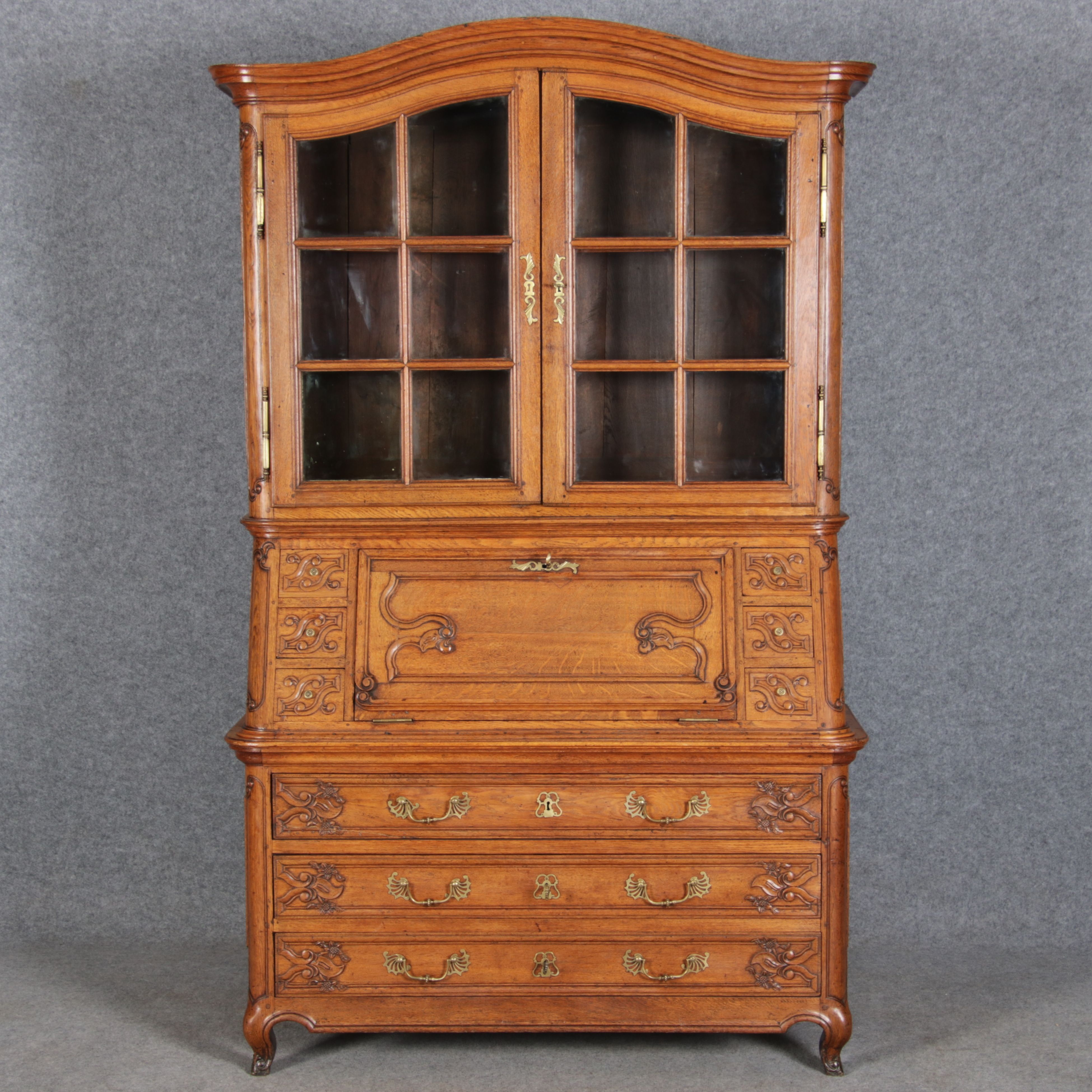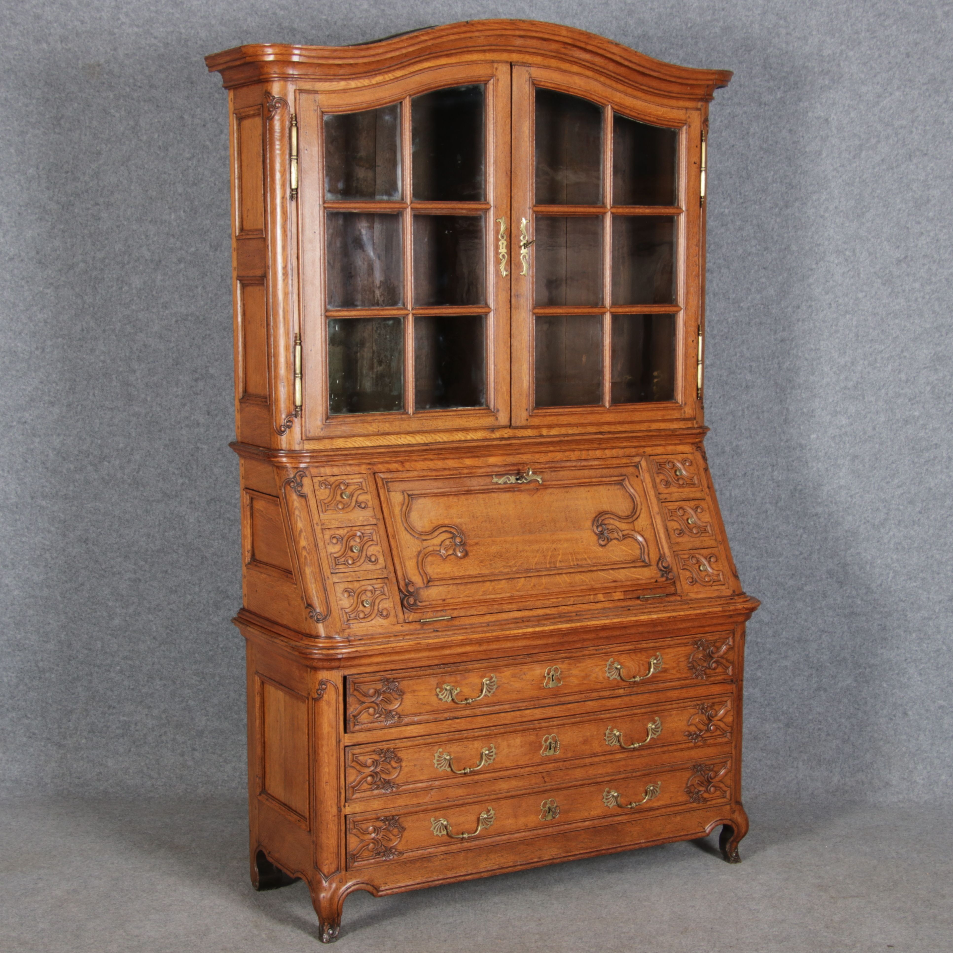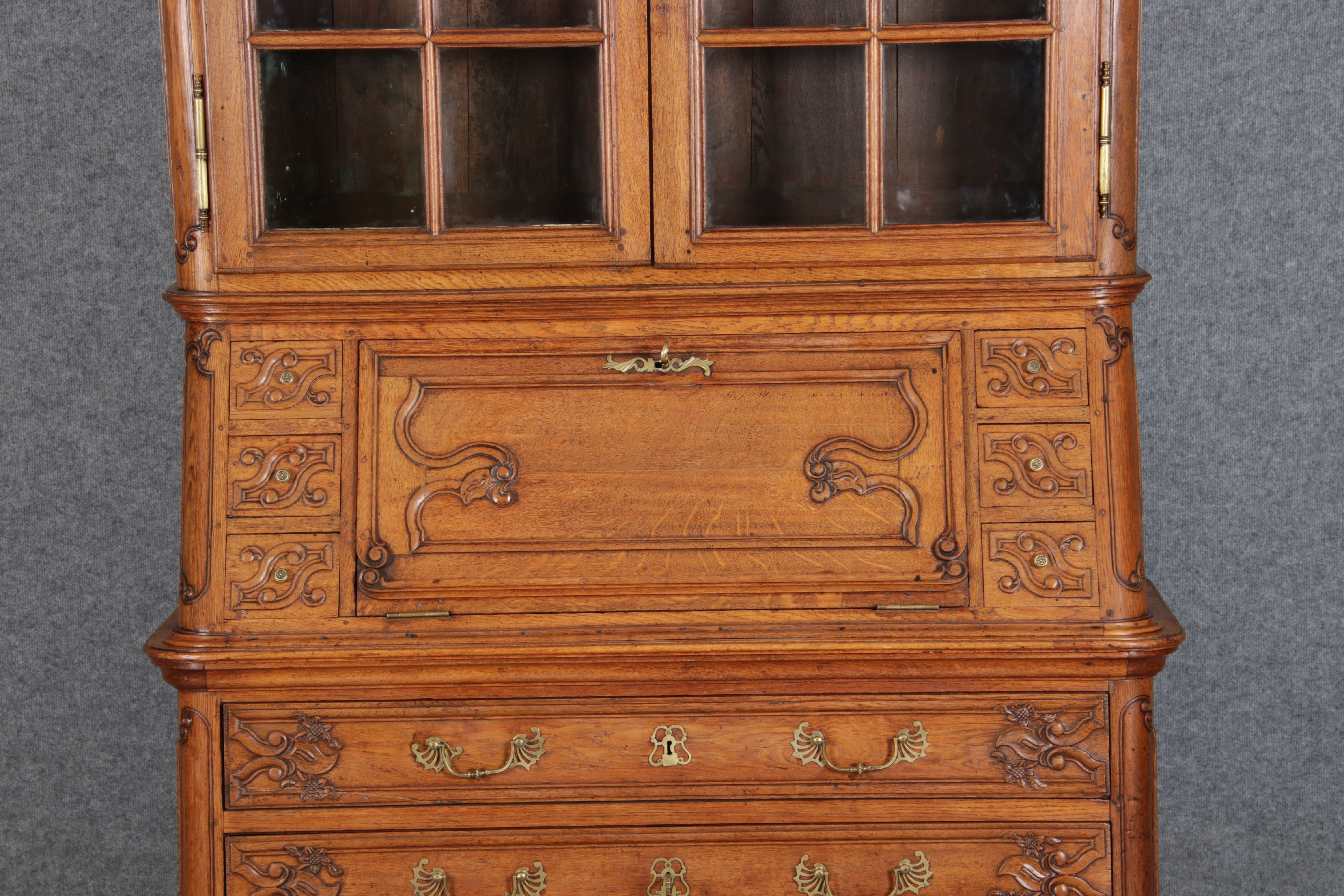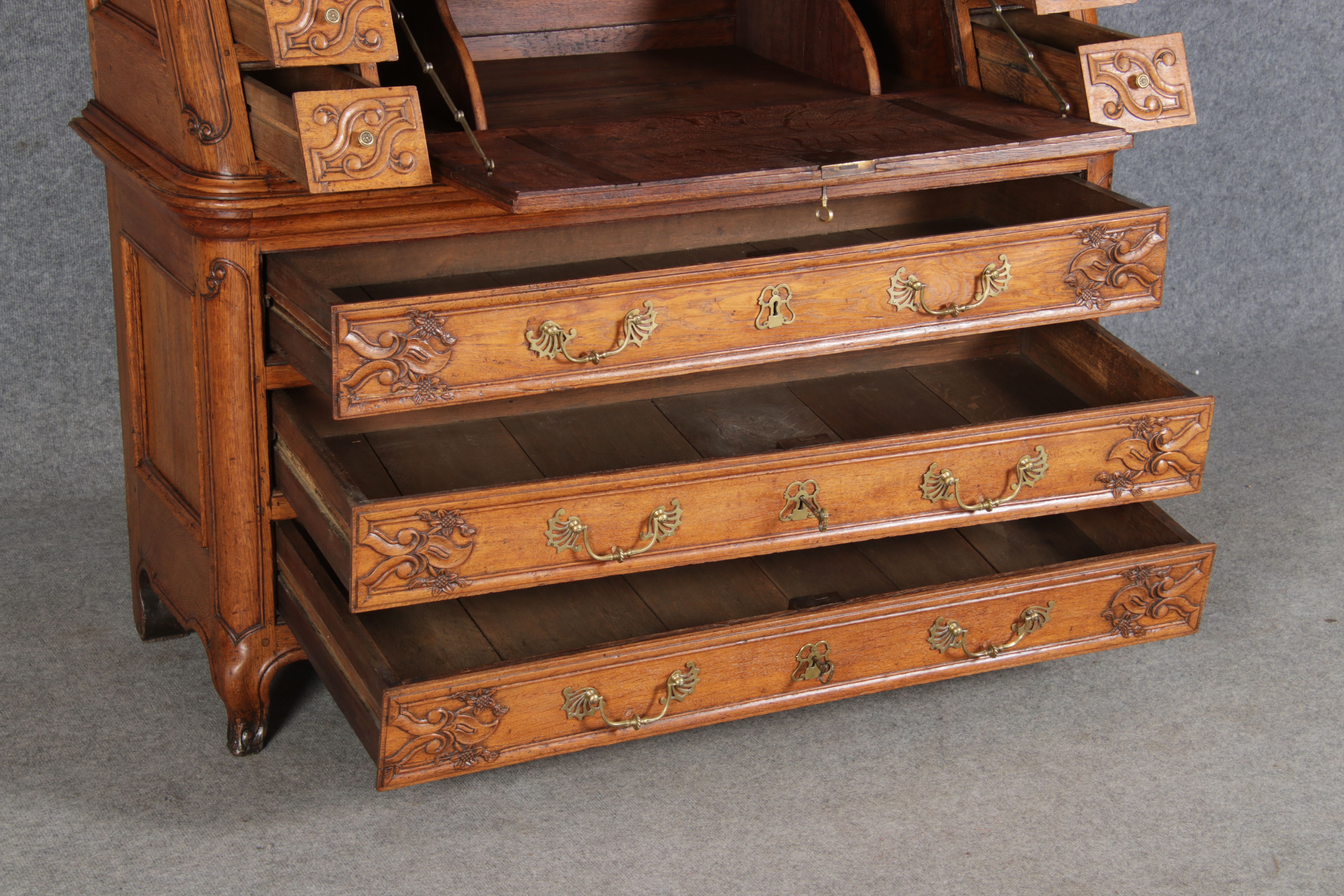 Rokoko Barocksekretär Eiche um 1760 mit Vitrine |
