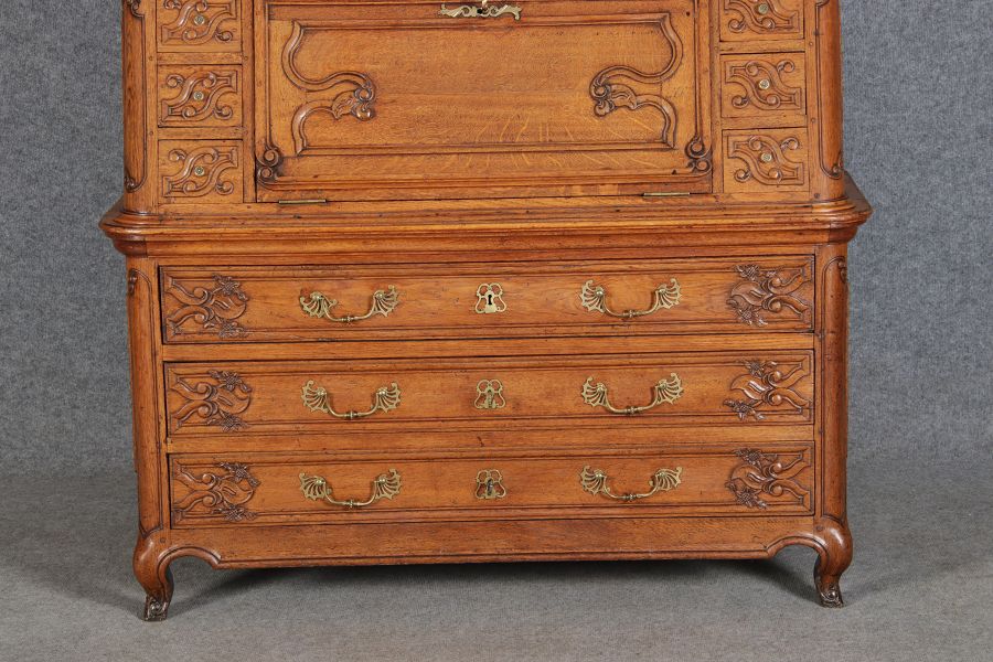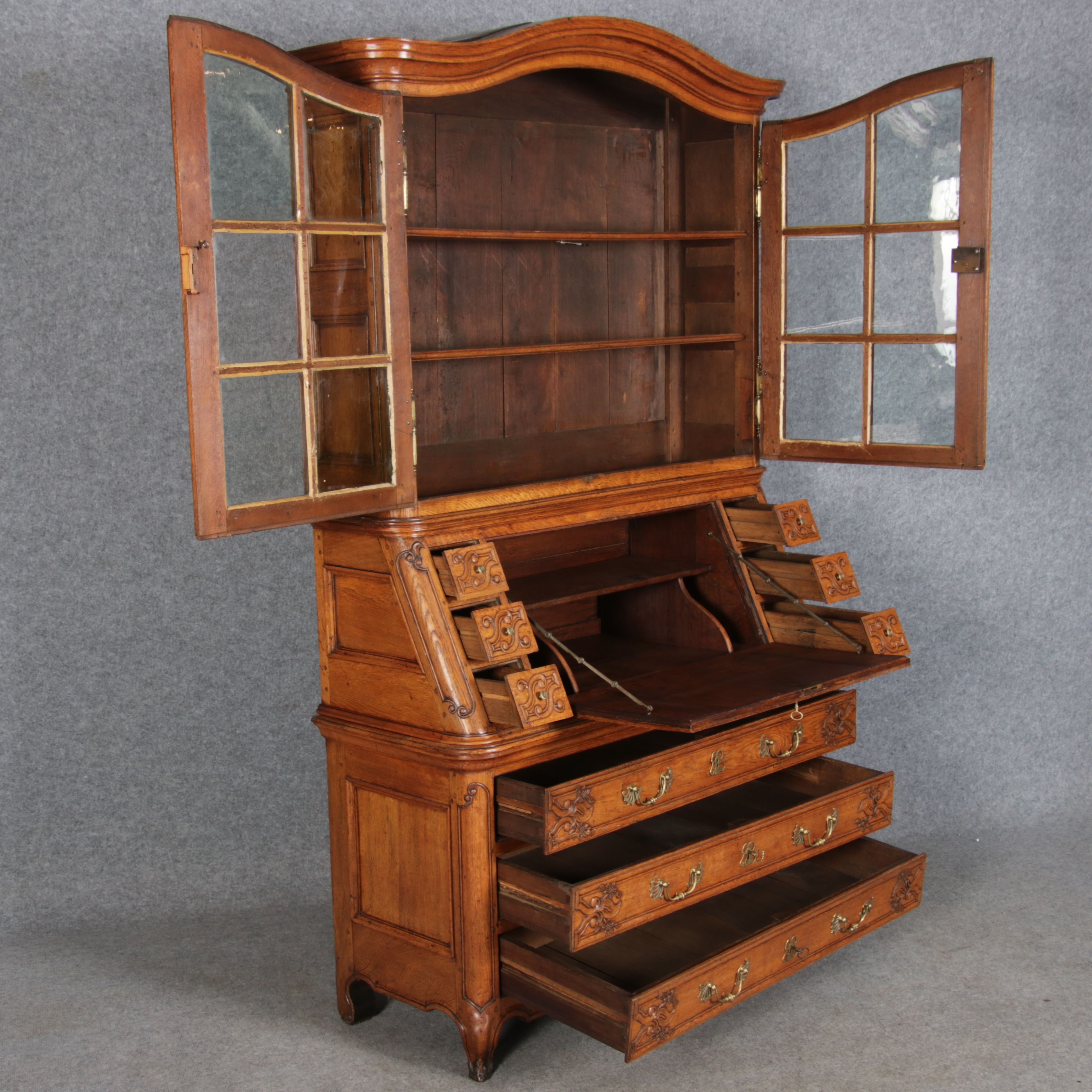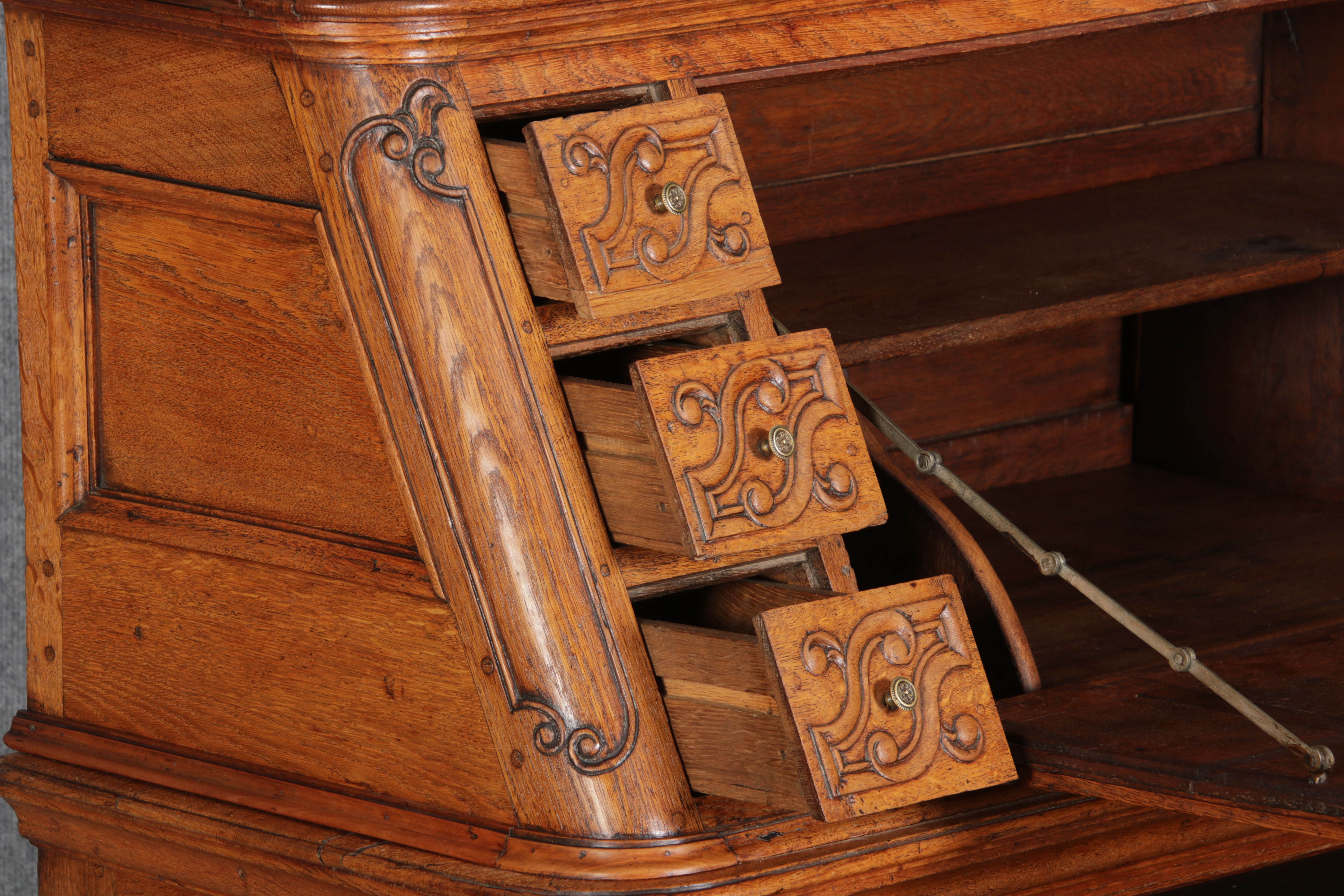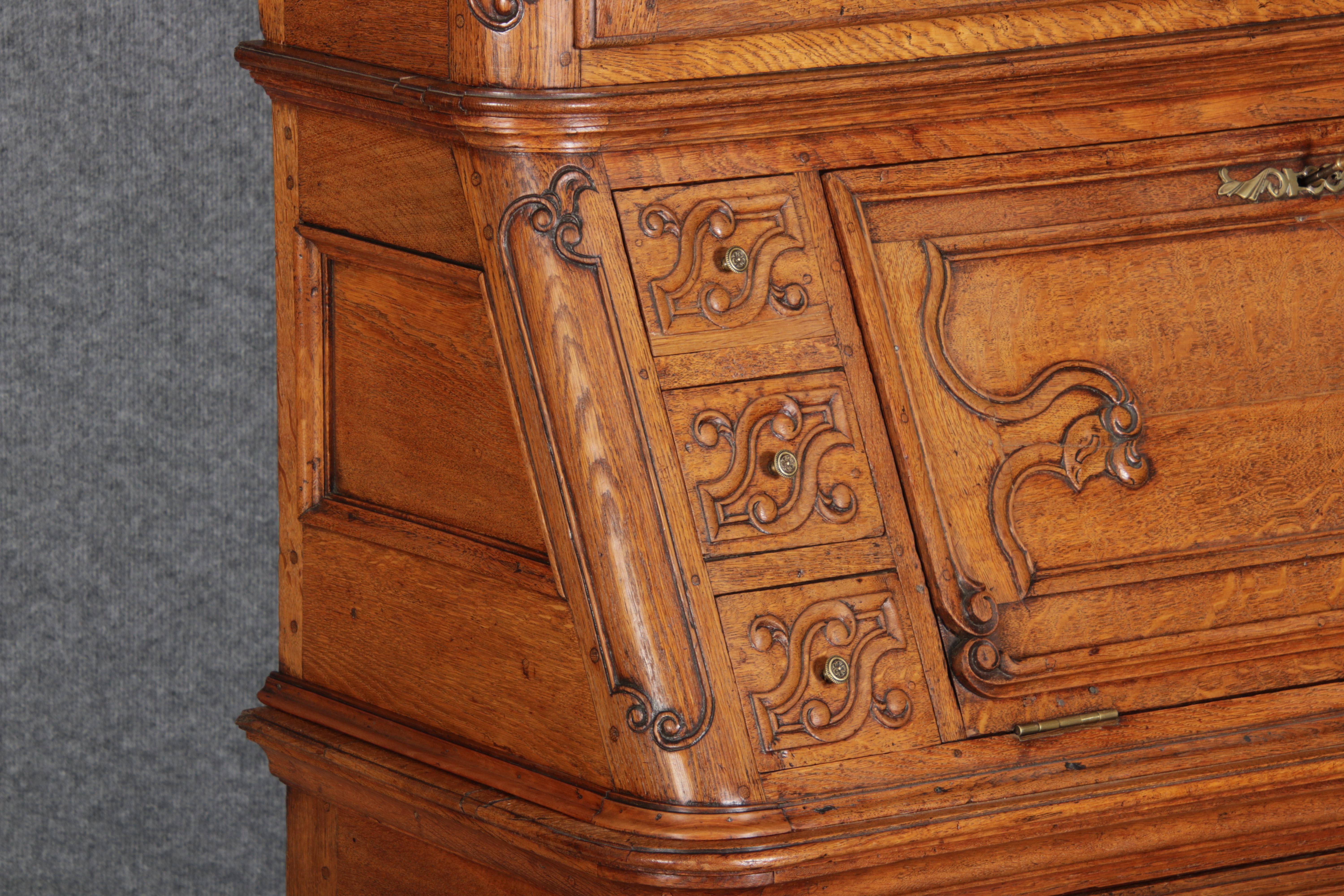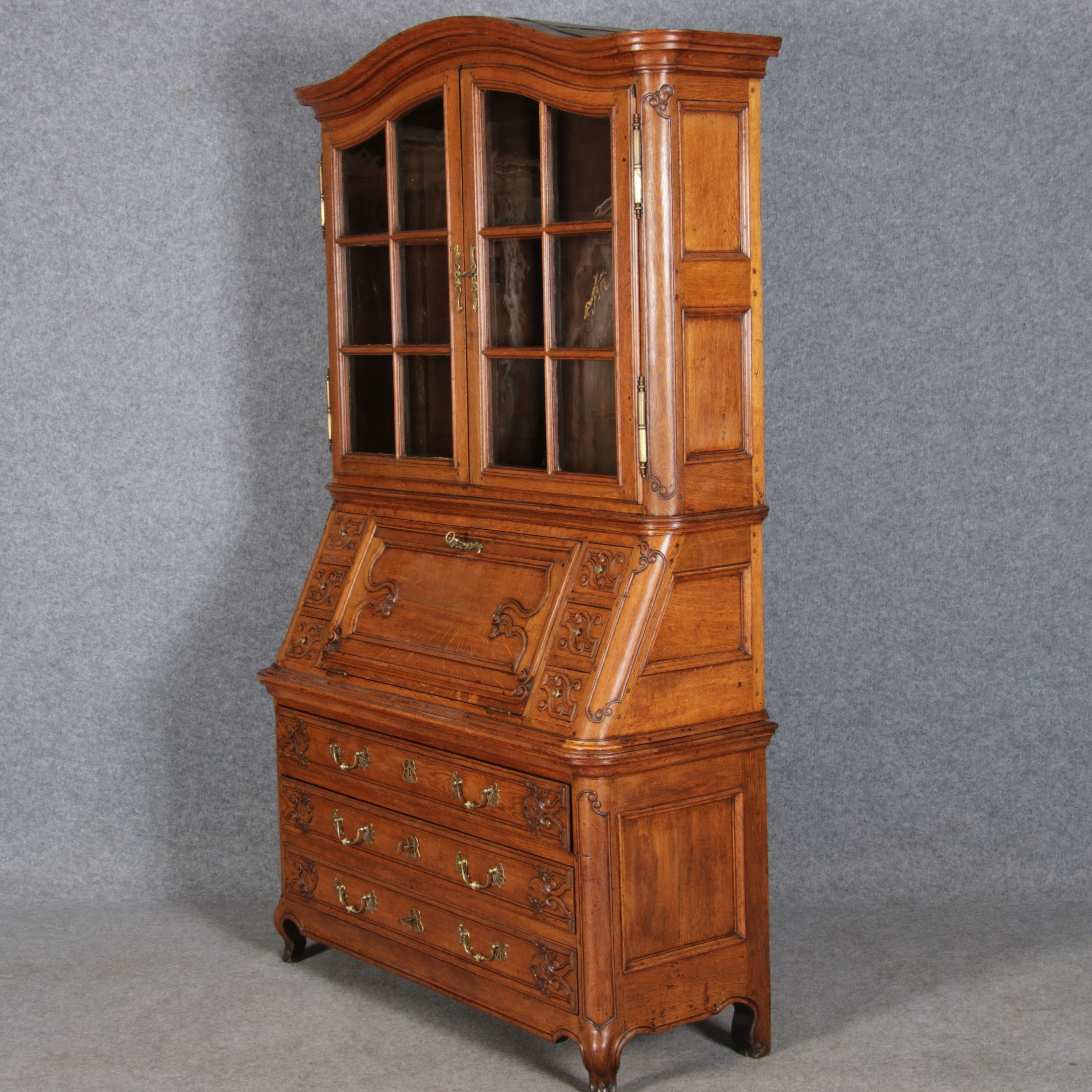 Rokoko Barocksekretär Eiche um 1760 mit Vitrine |