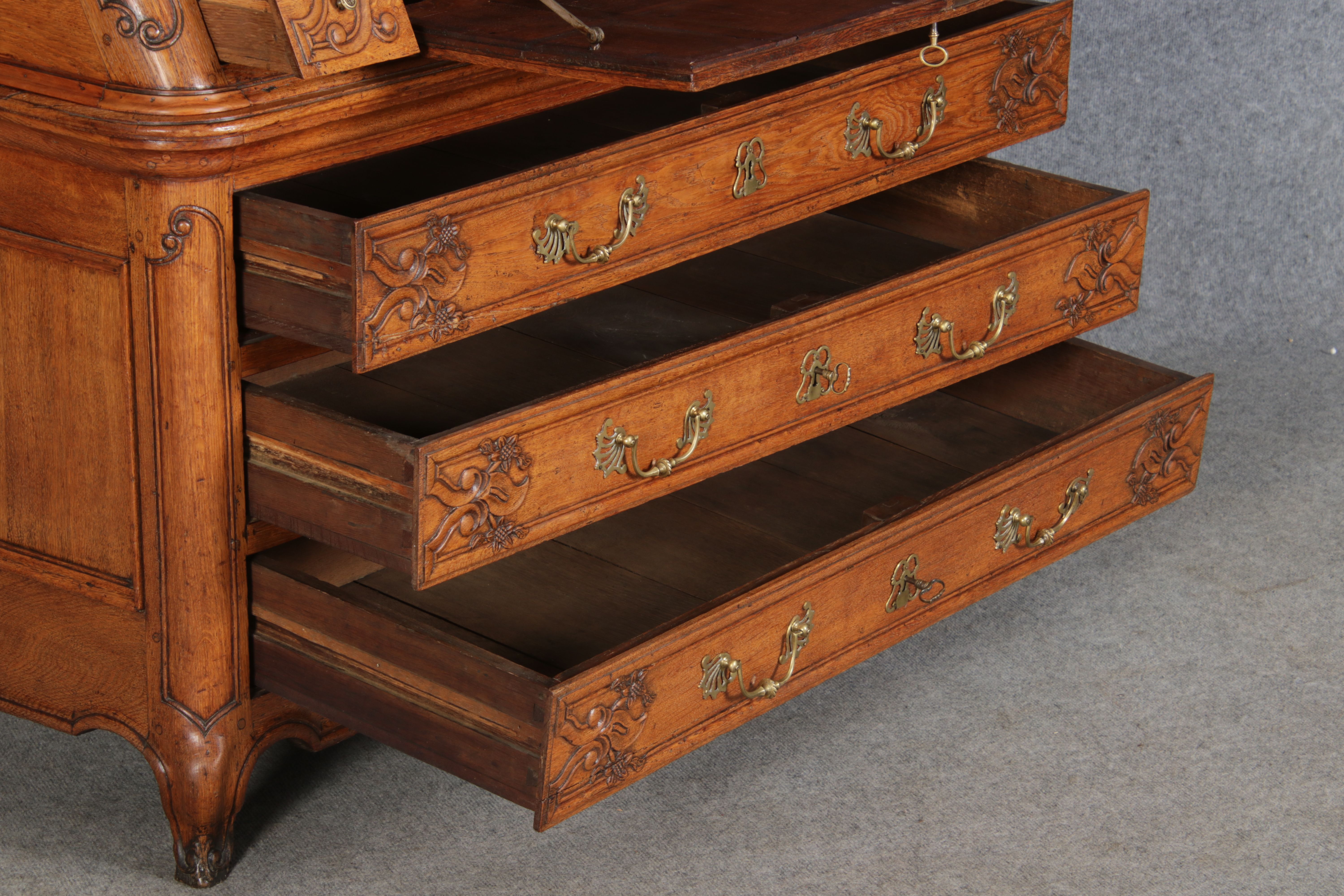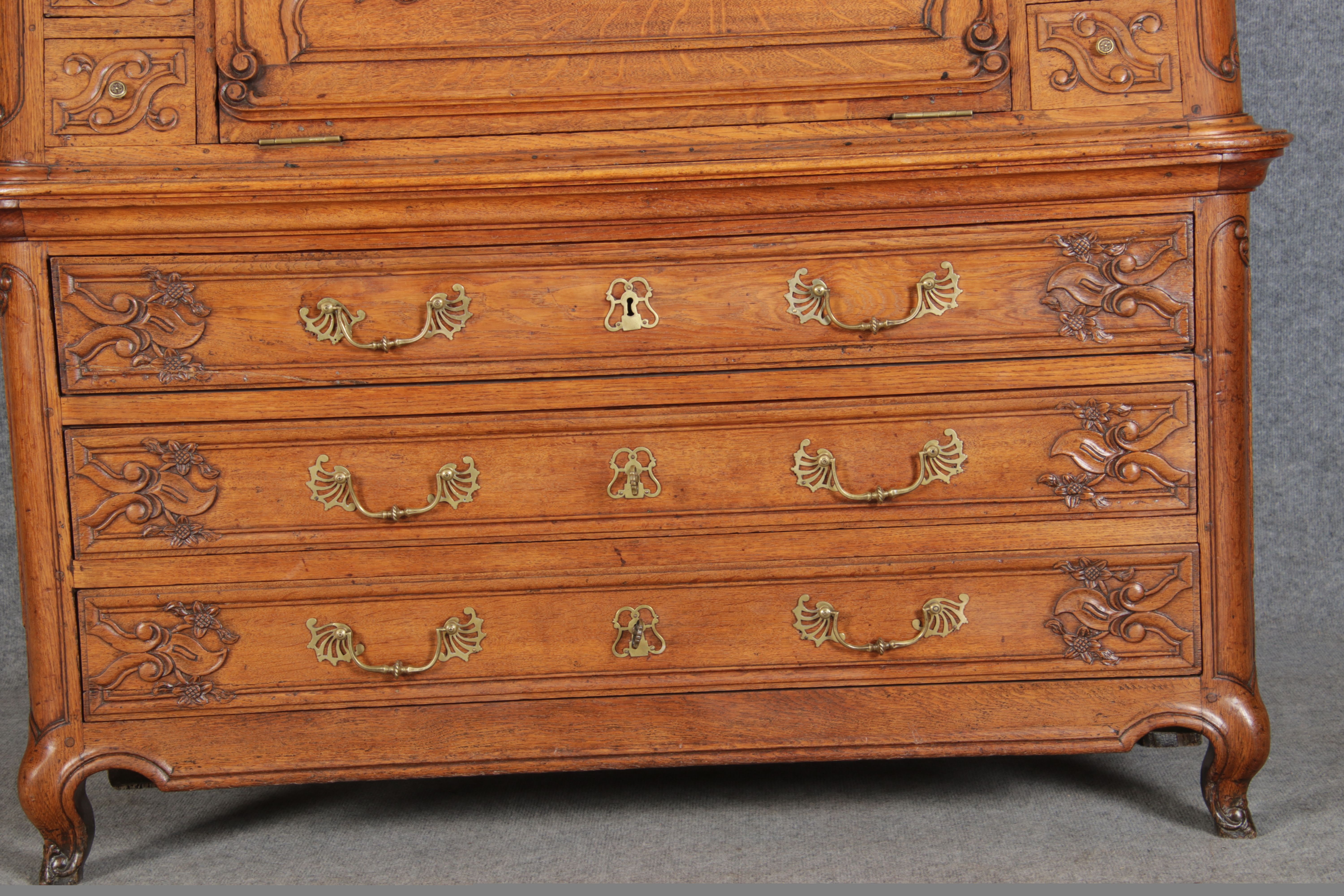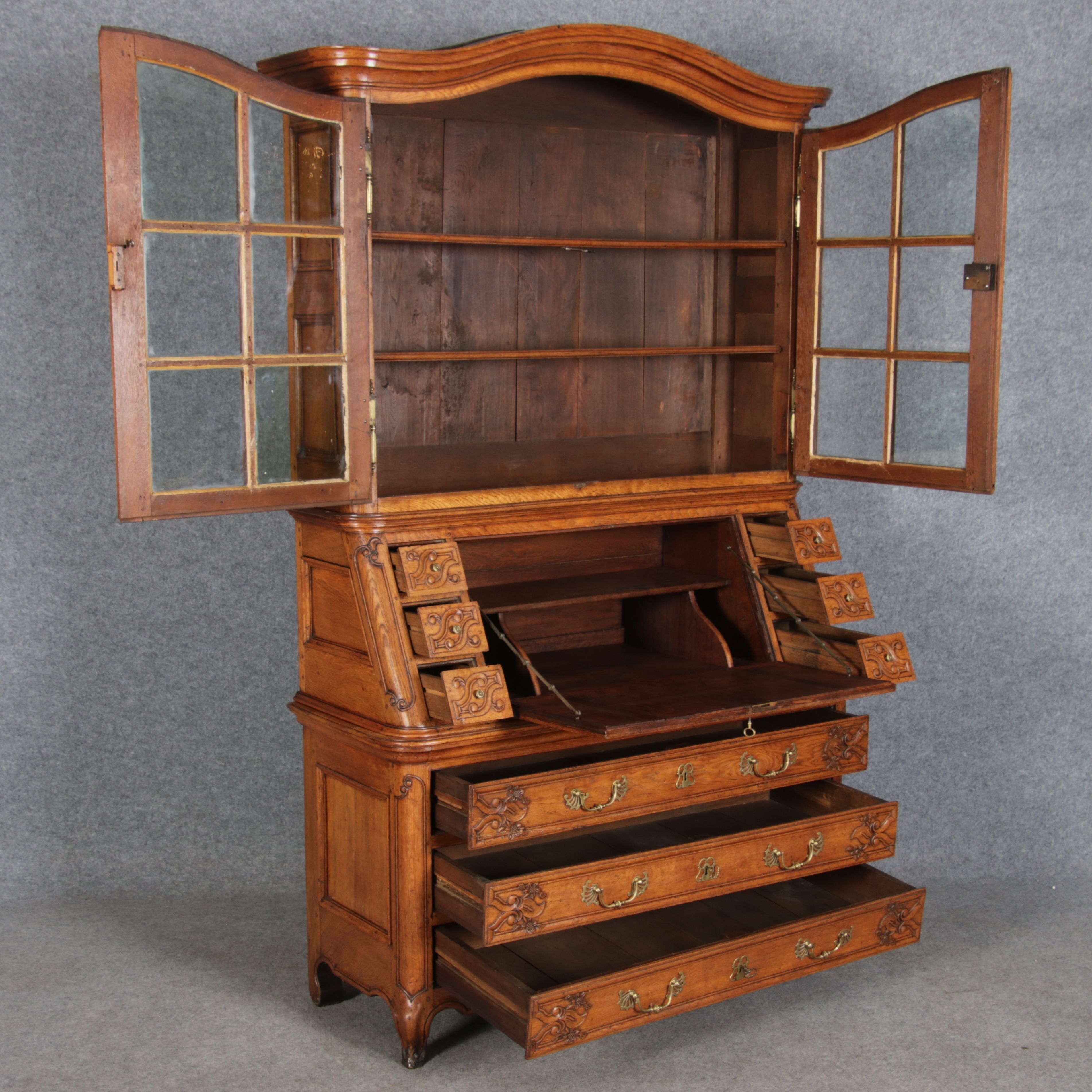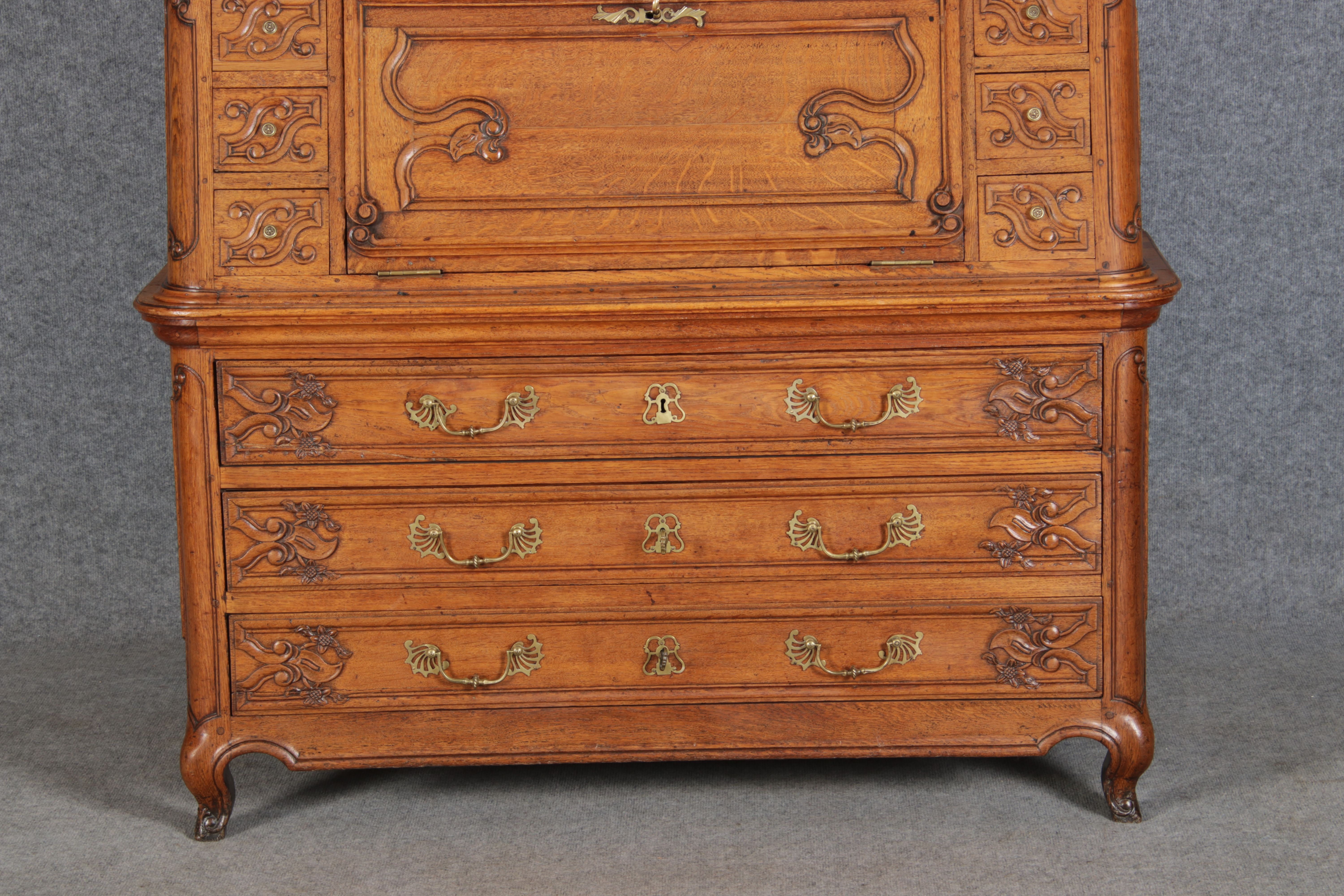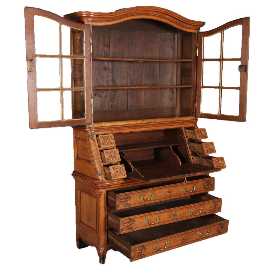 Rokoko Barocksekretär Eiche um 1760 mit Vitrine |