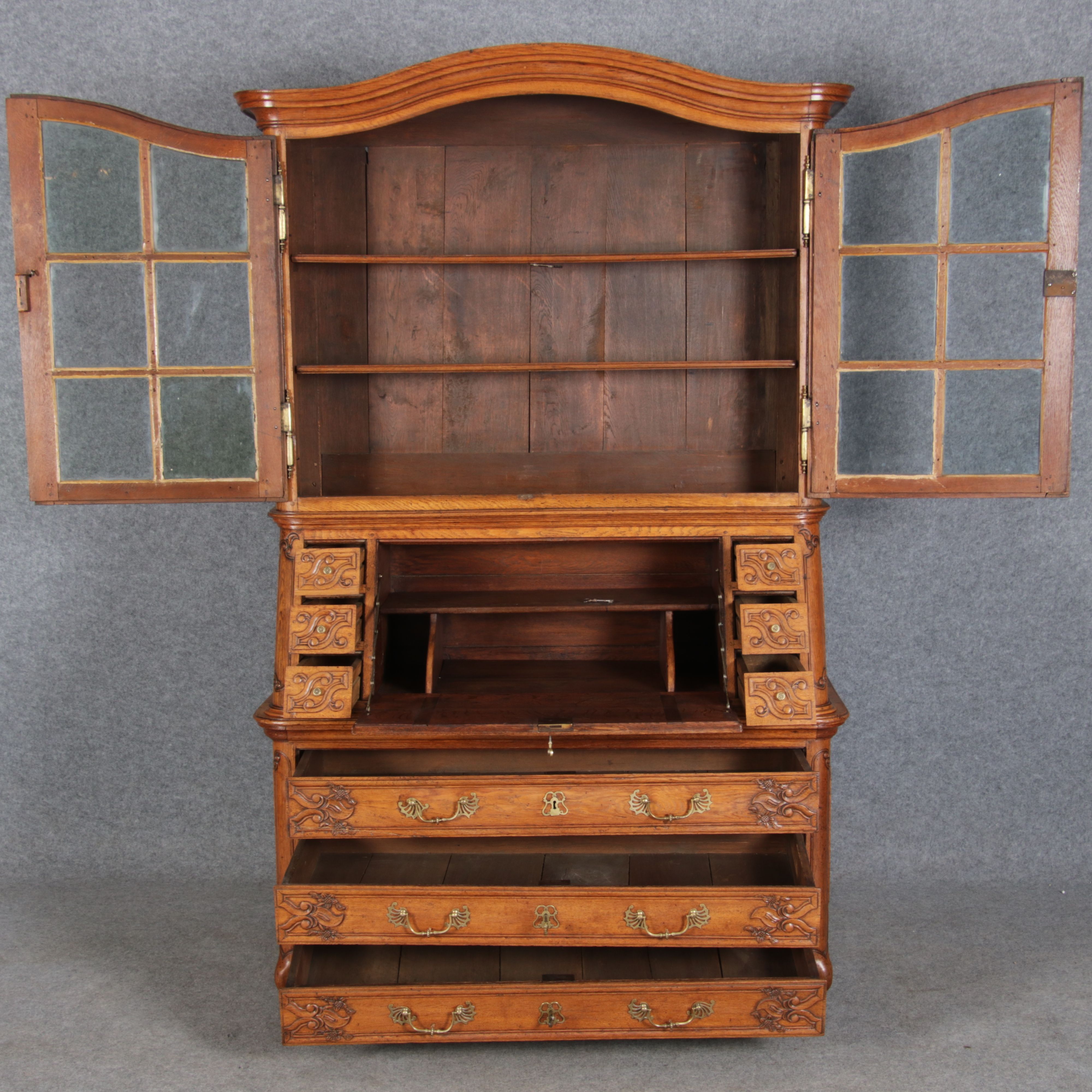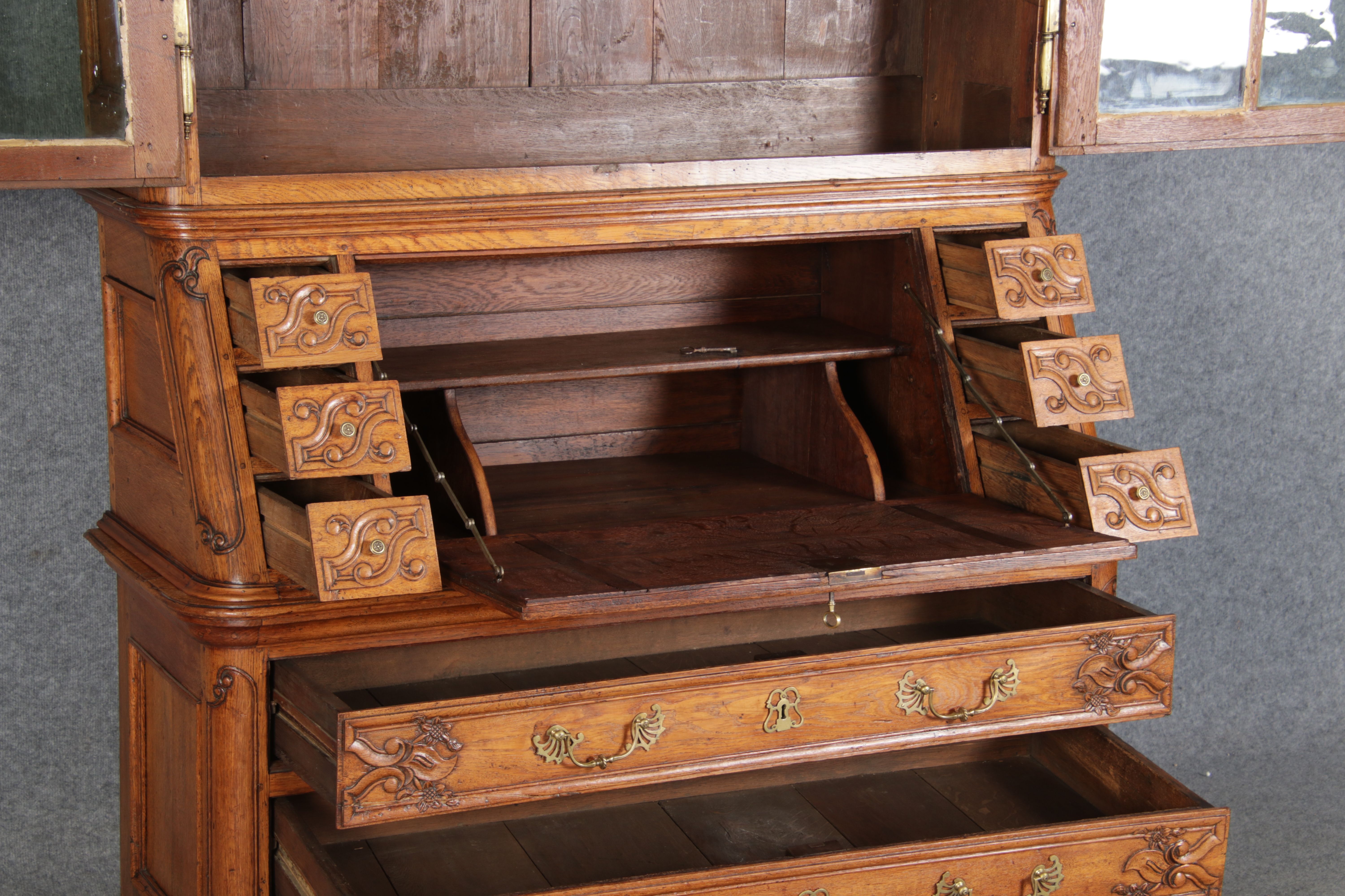 | Antiker Barocksekretär Eiche um 1760 mit Vitrine Für XXL Bild hier klicken79 |