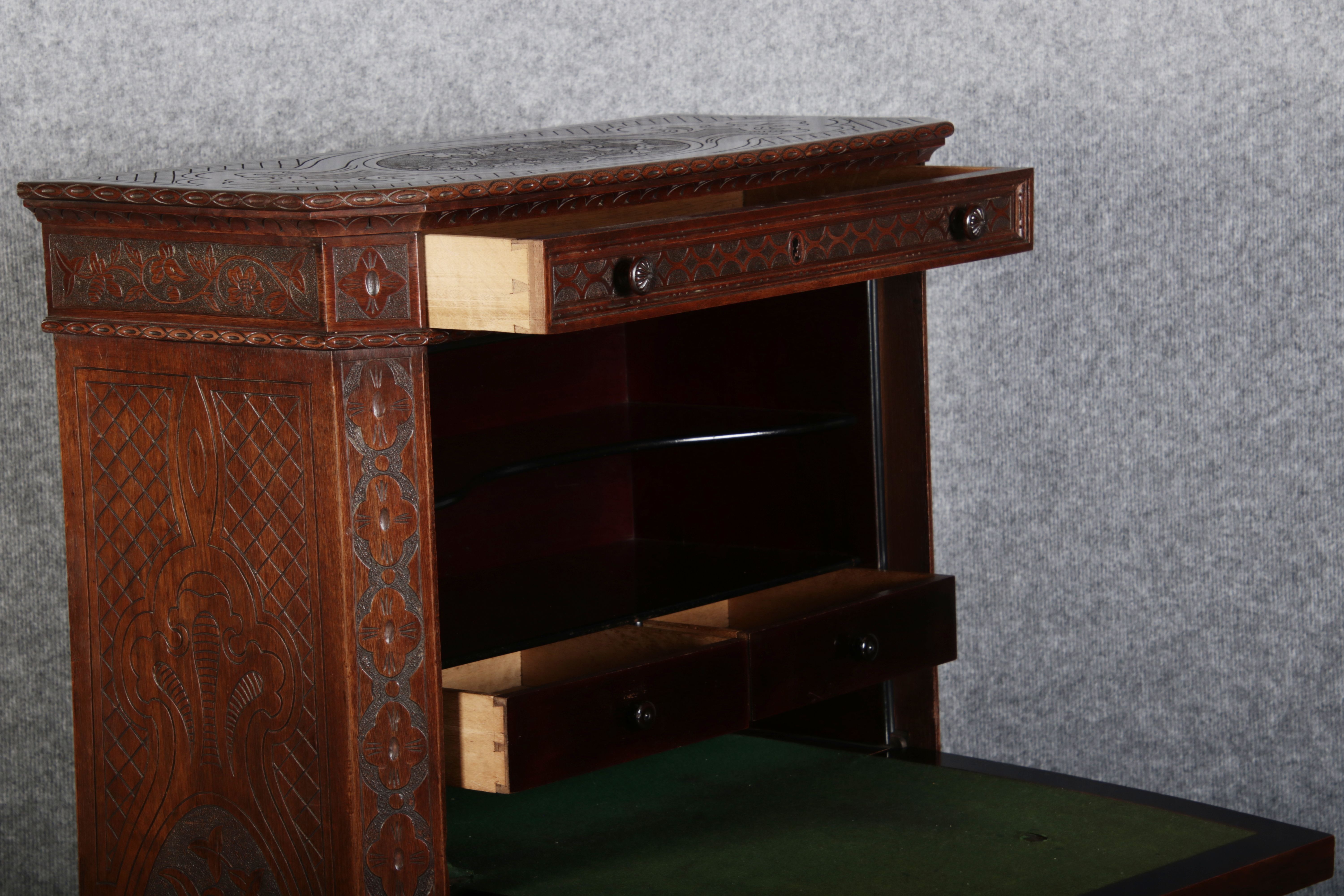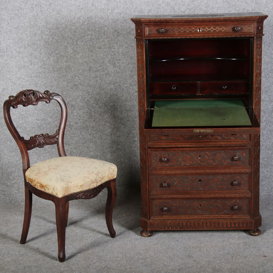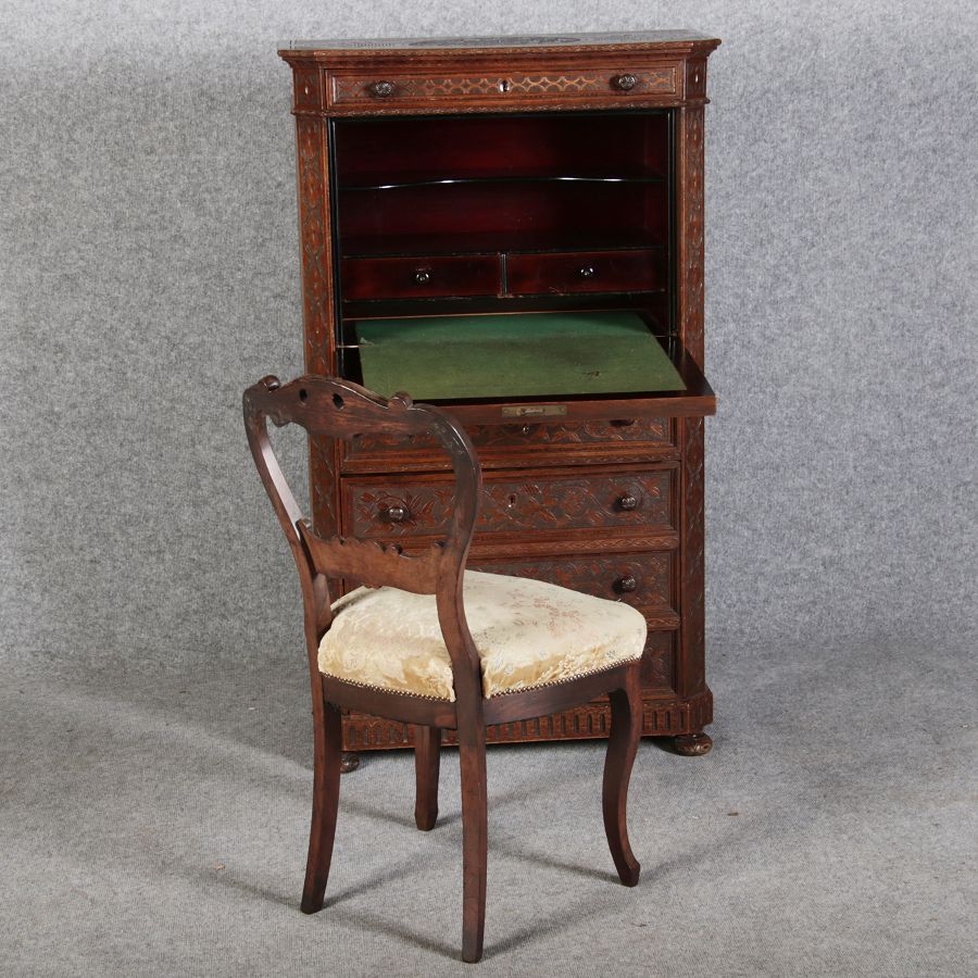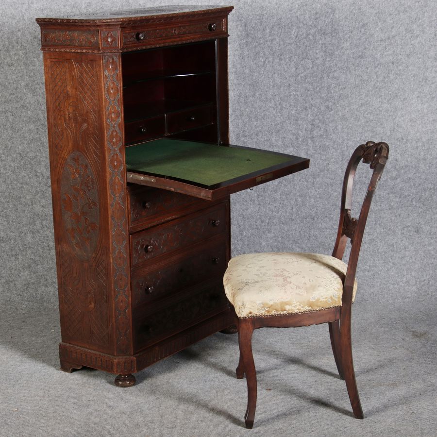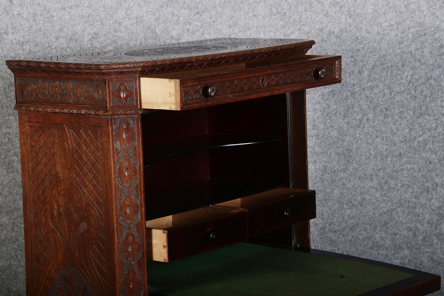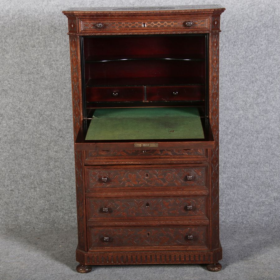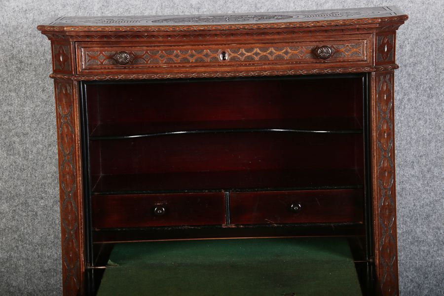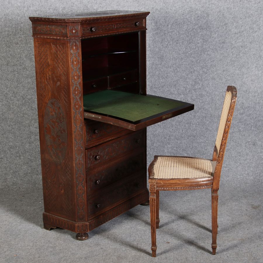 | Sehr kleiner schmaler Antiker Sekretär 76 cm Breit 19 Jh. Flachschnitzereien | ||