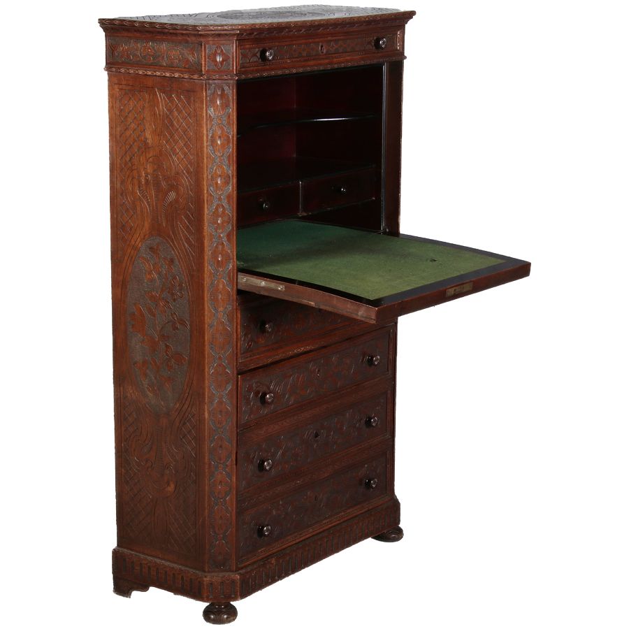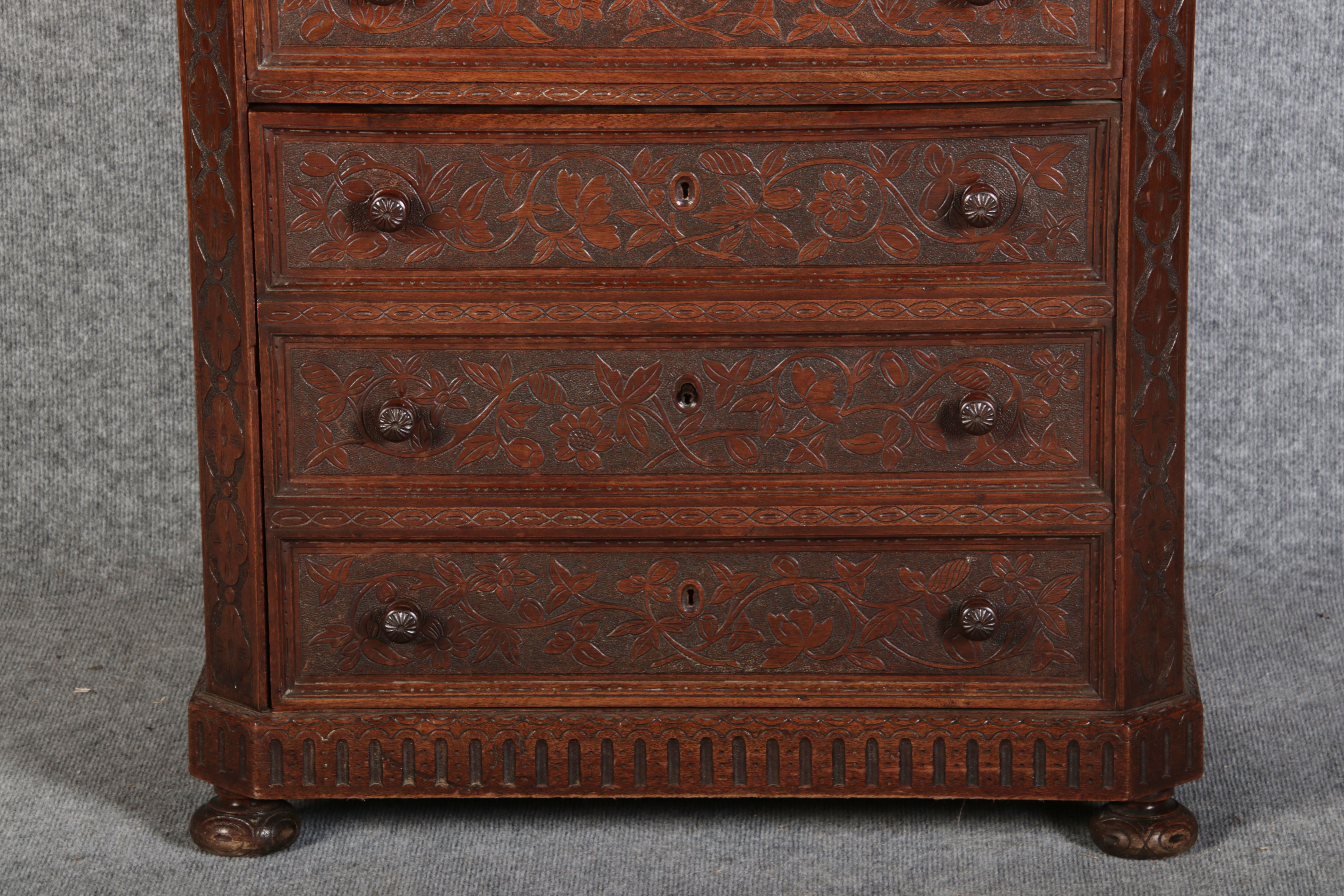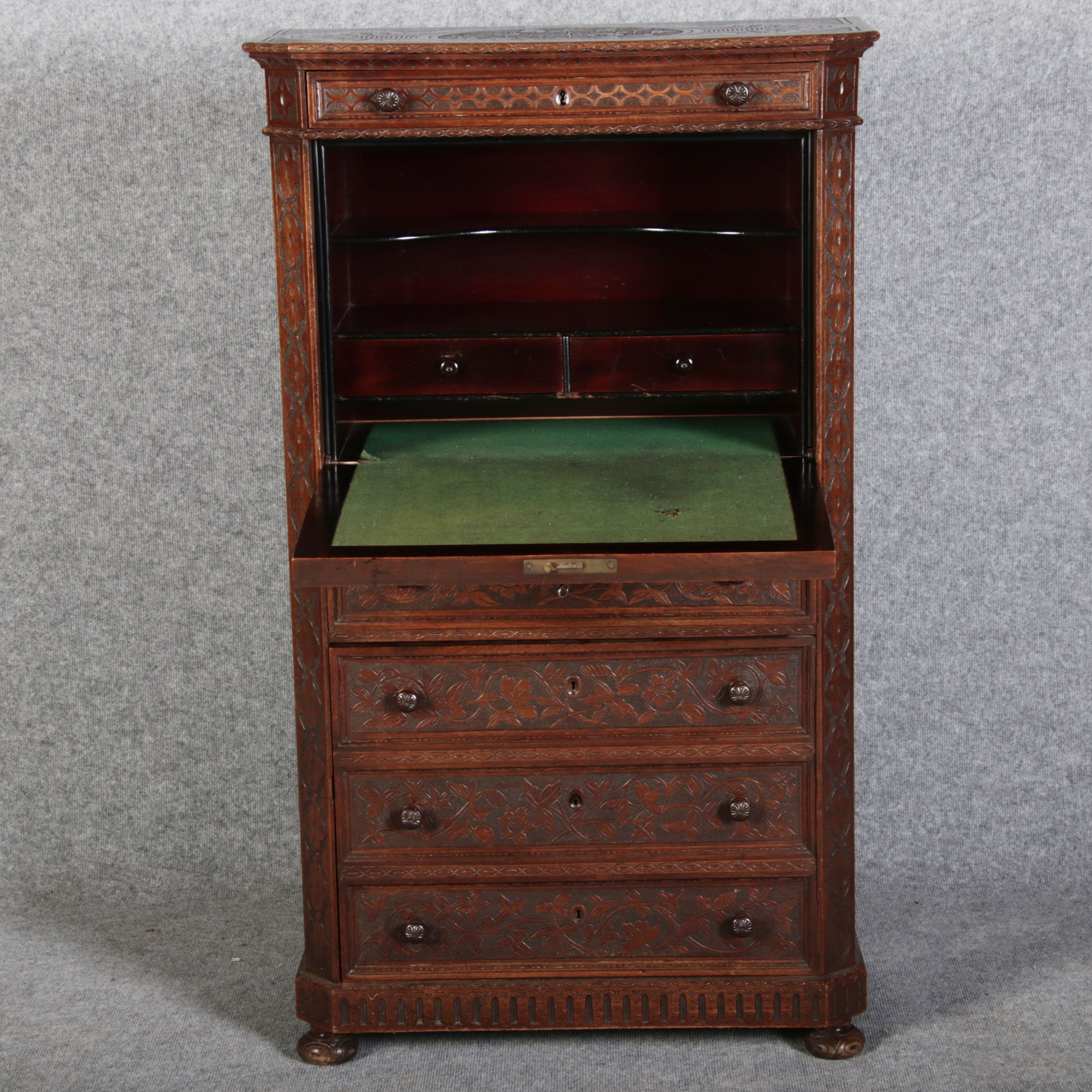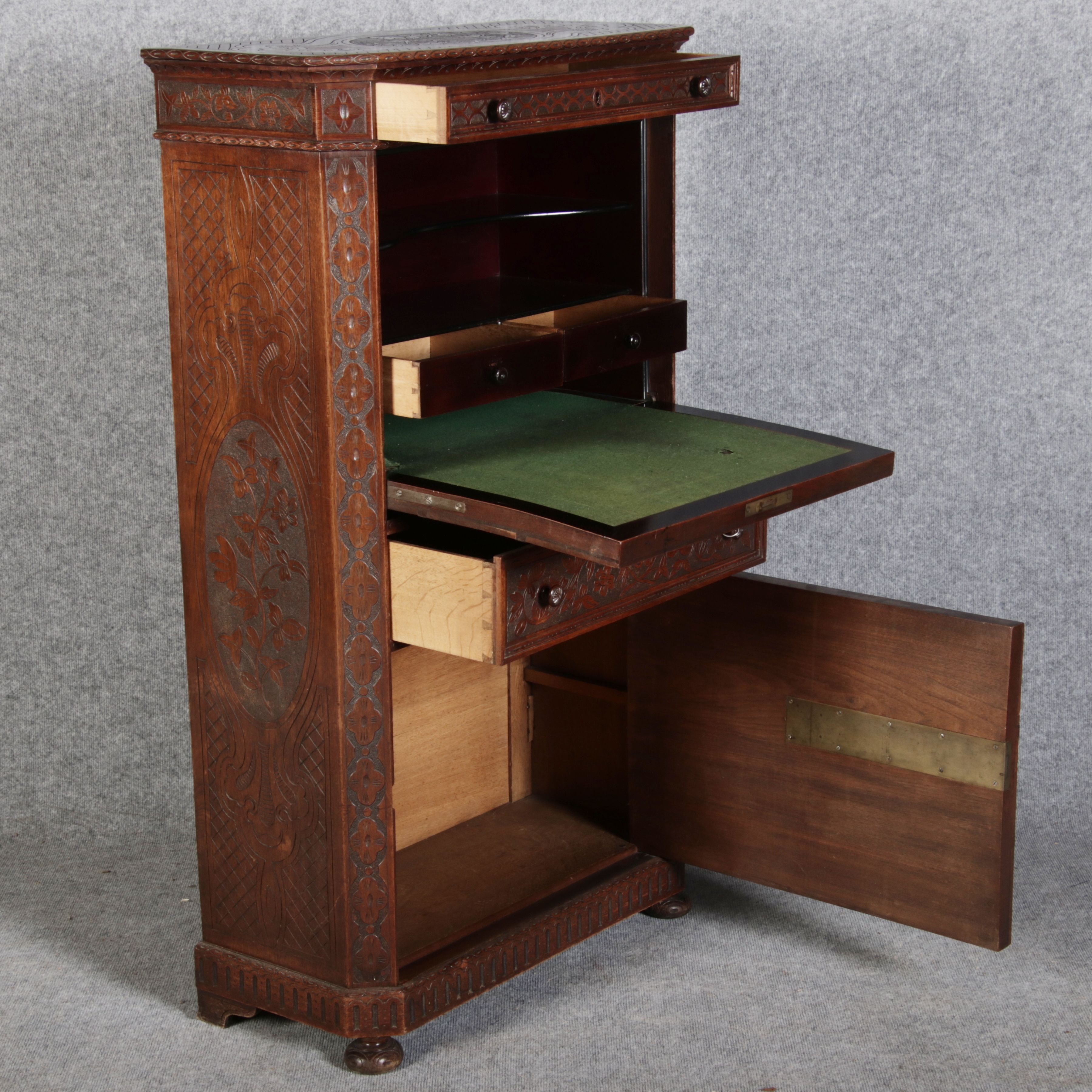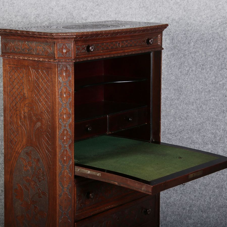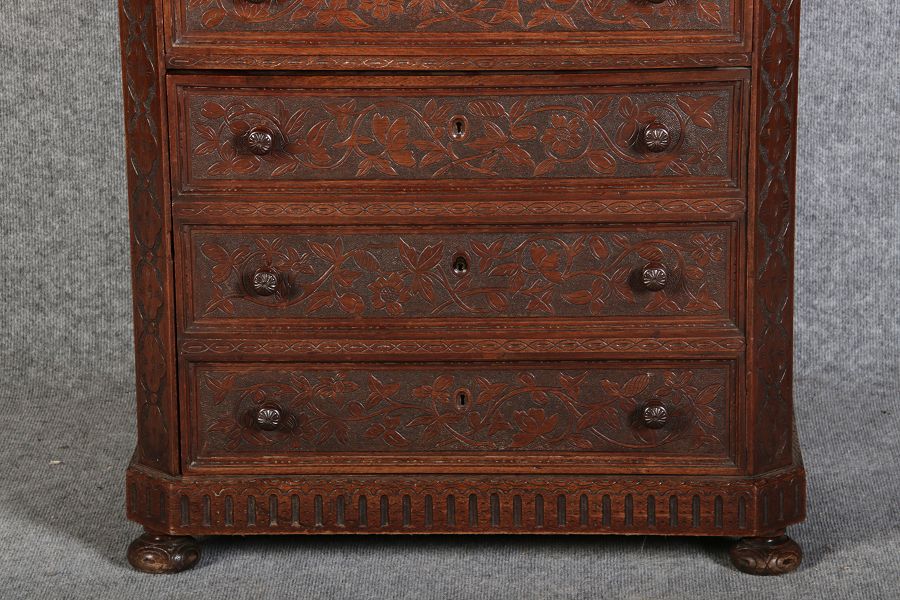 | Sehr kleiner schmaler Antiker Sekretär 76 cm Breit 19 Jh. Flachschnitzereien | ||