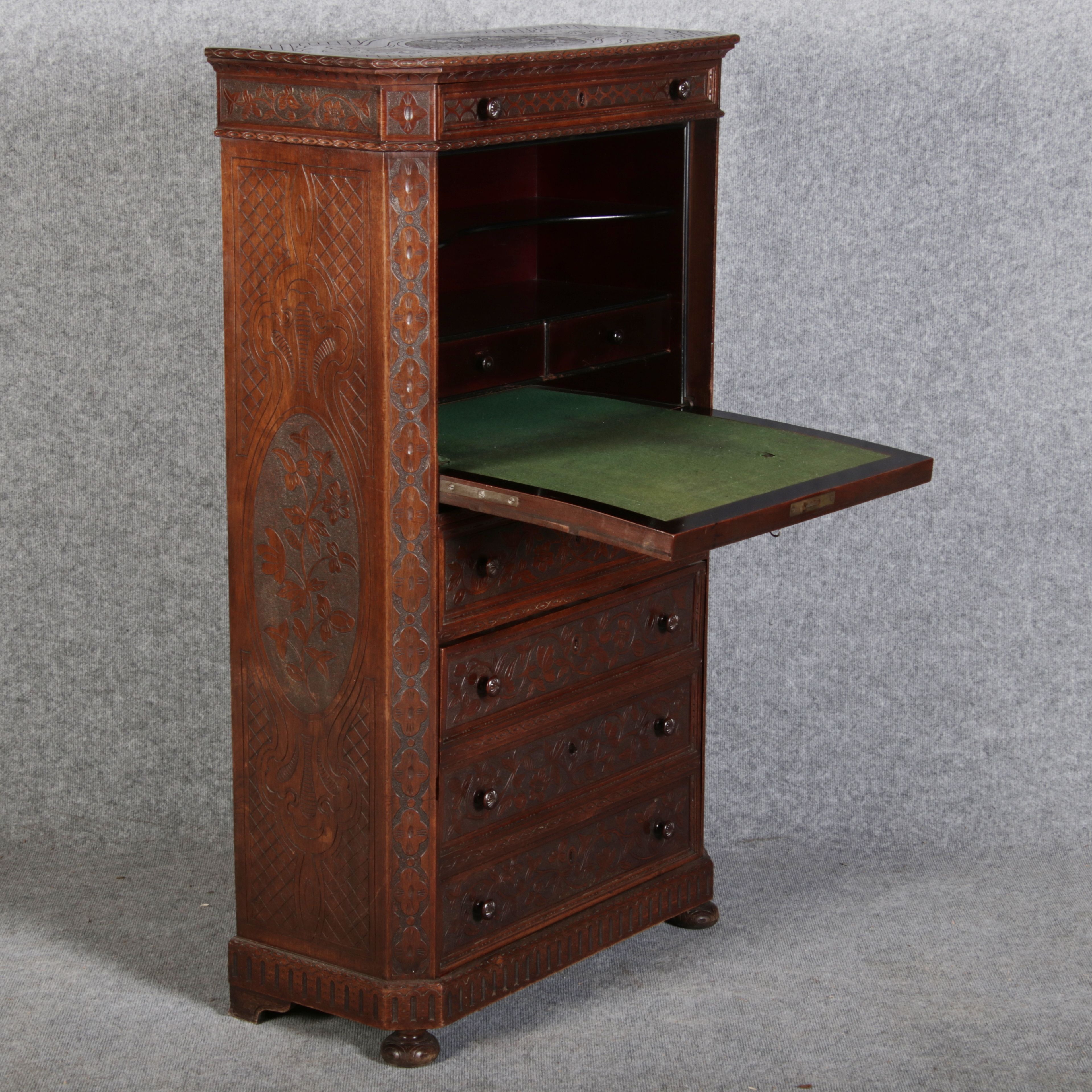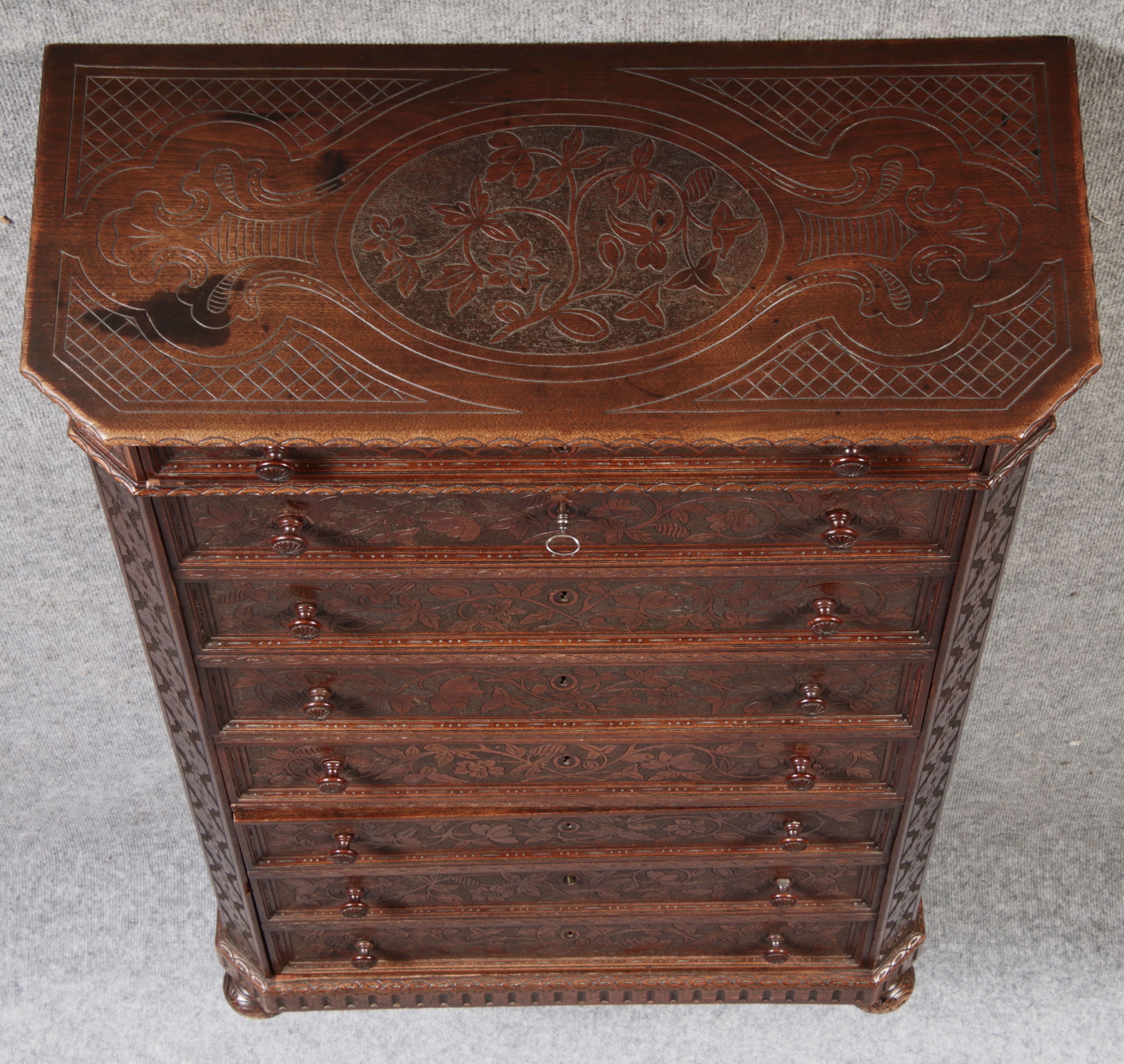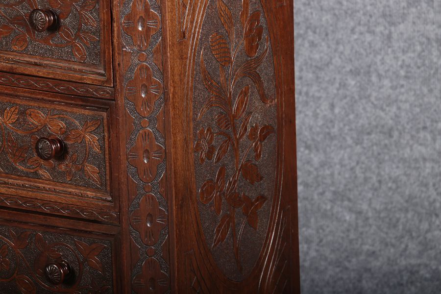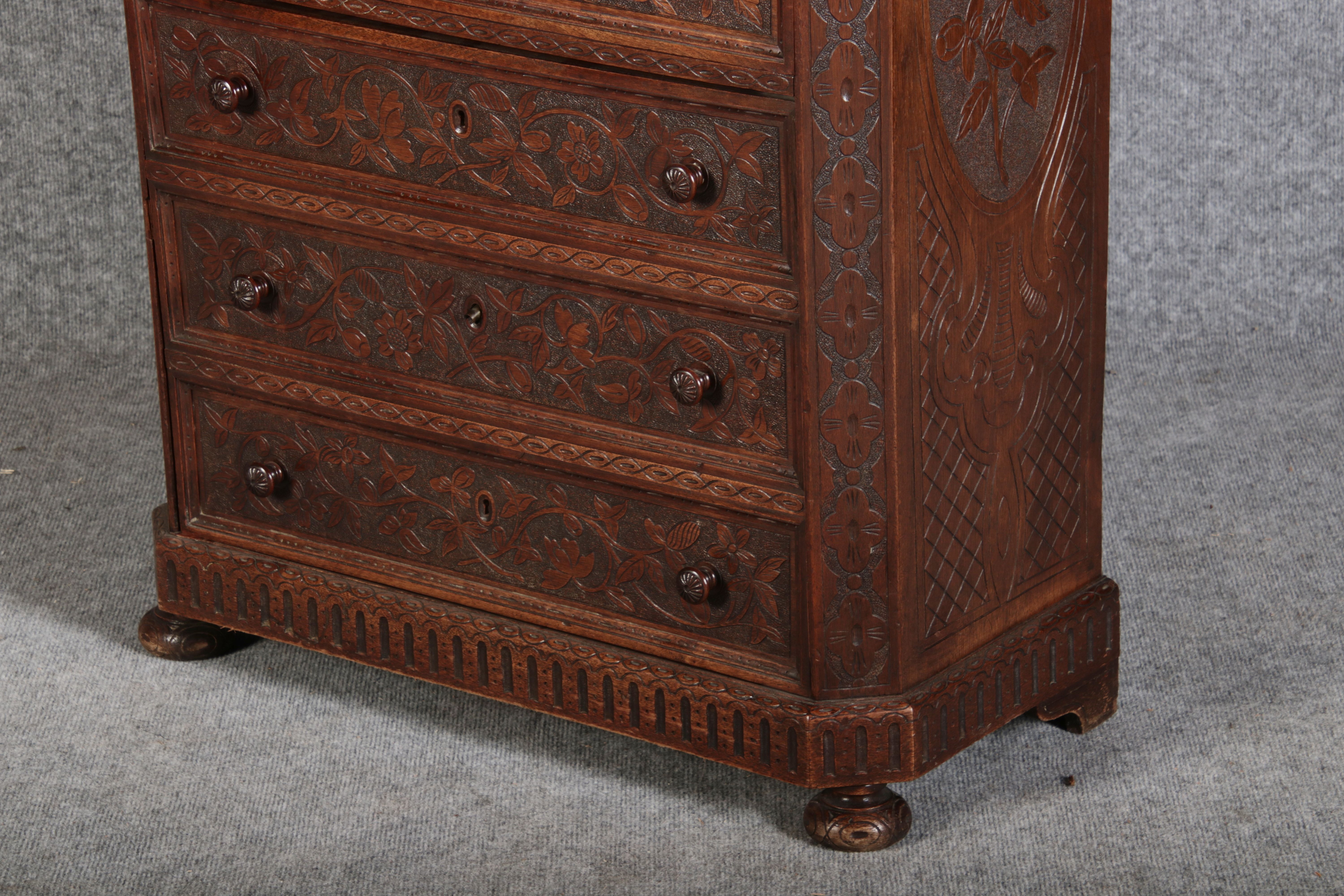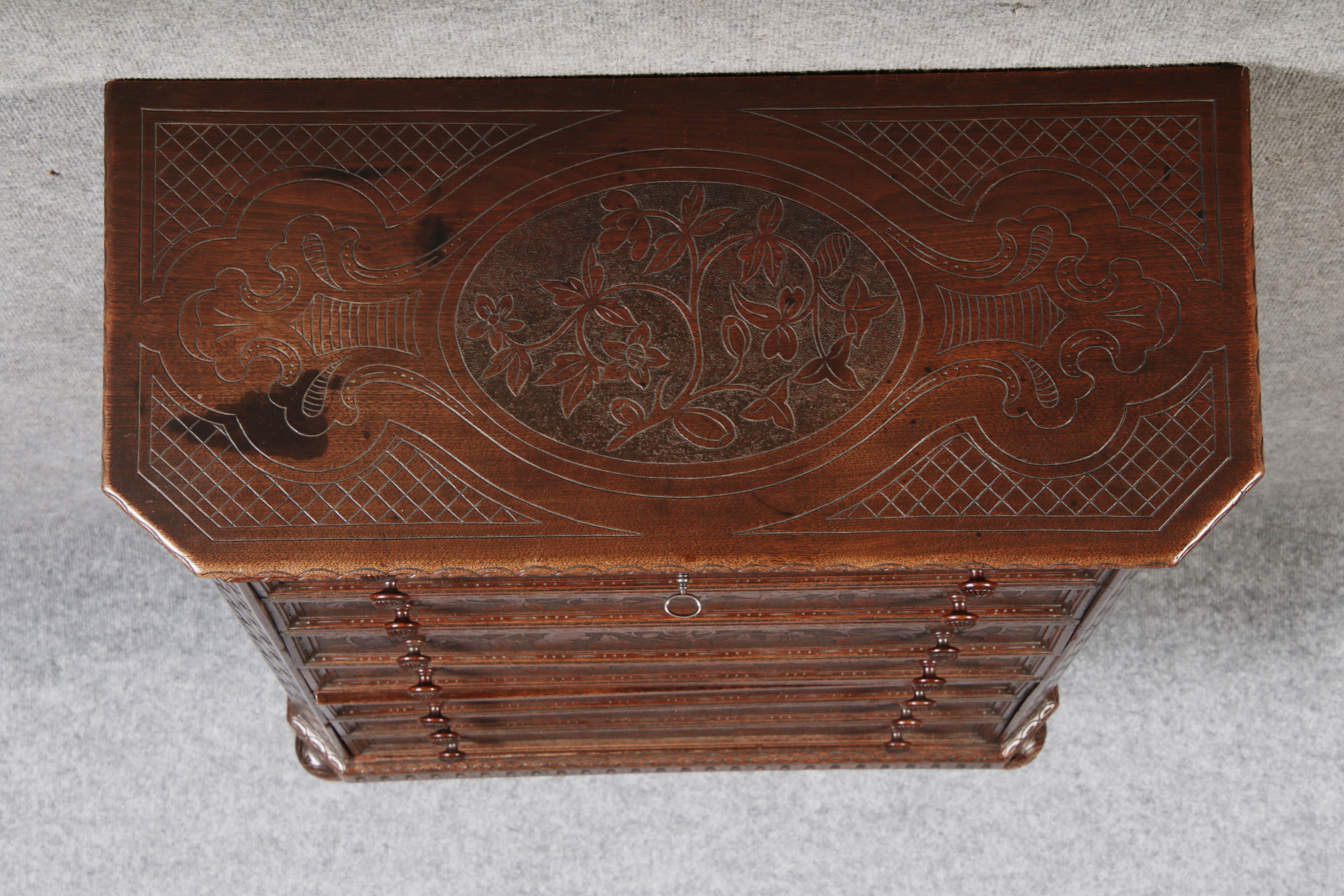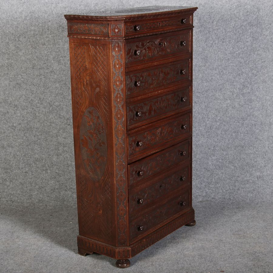 | Sehr kleiner schmaler Antiker Sekretär 76 cm Breit 19 Jh. Flachschnitzereien | ||