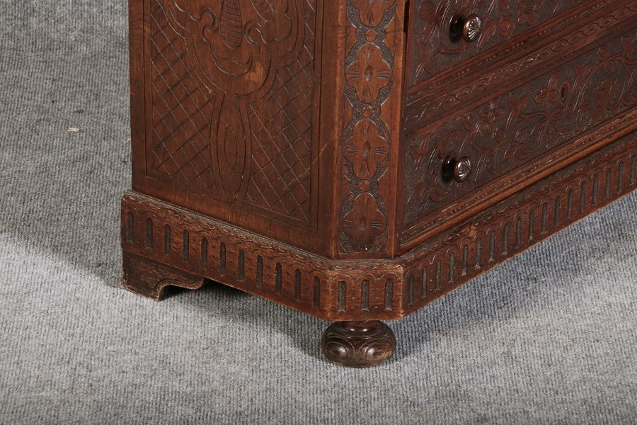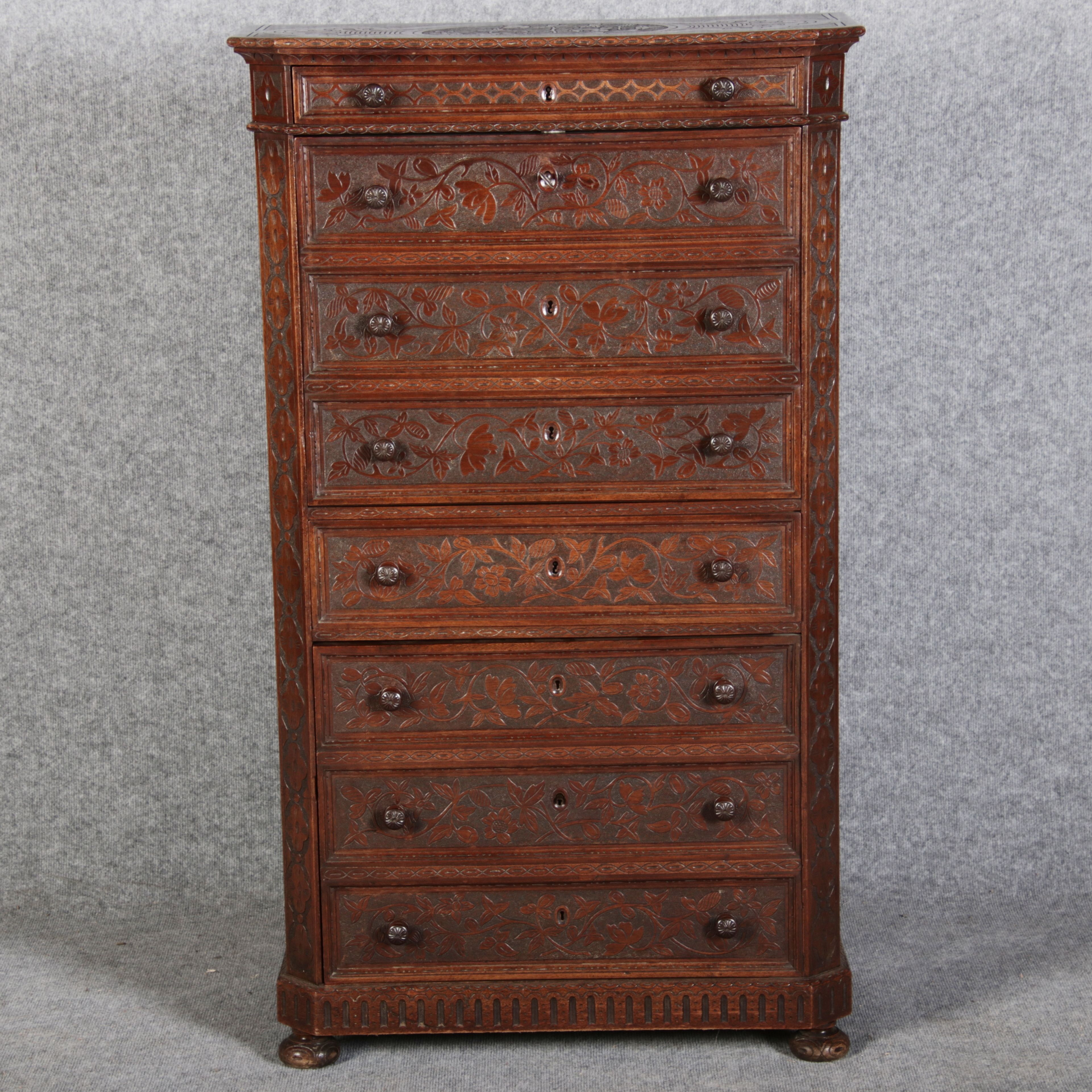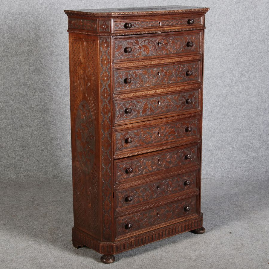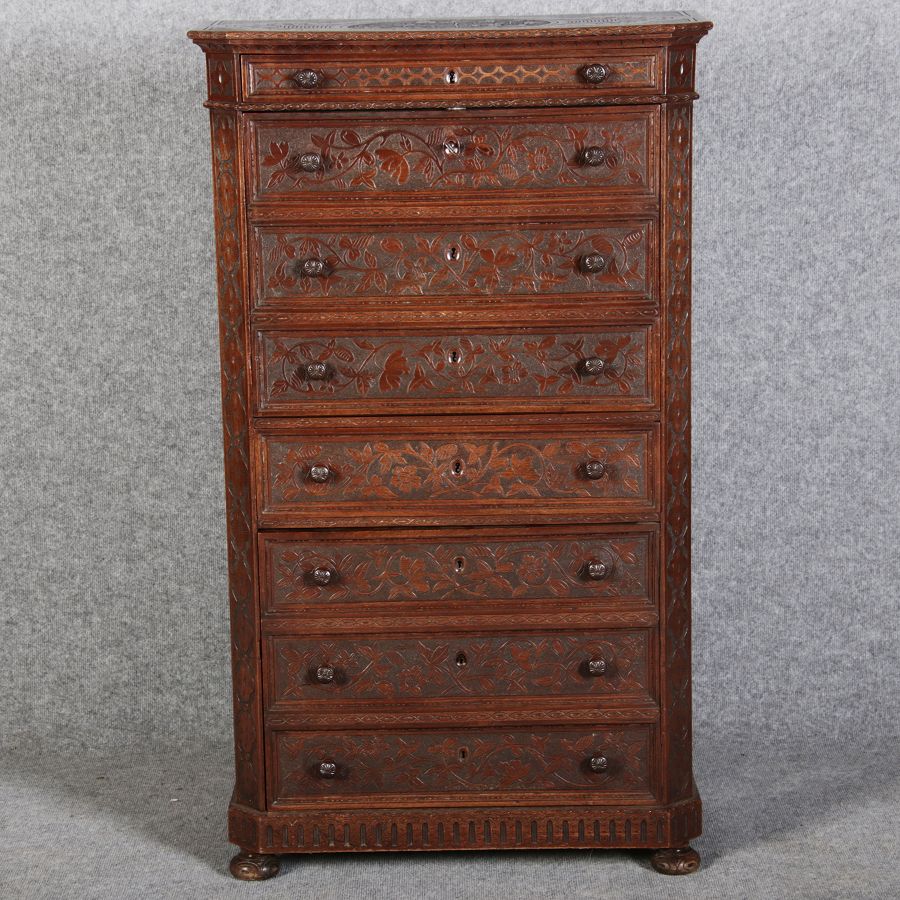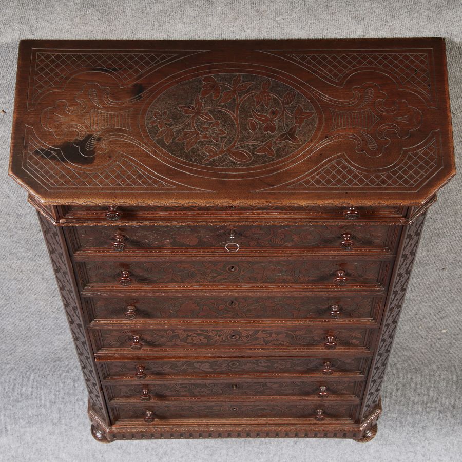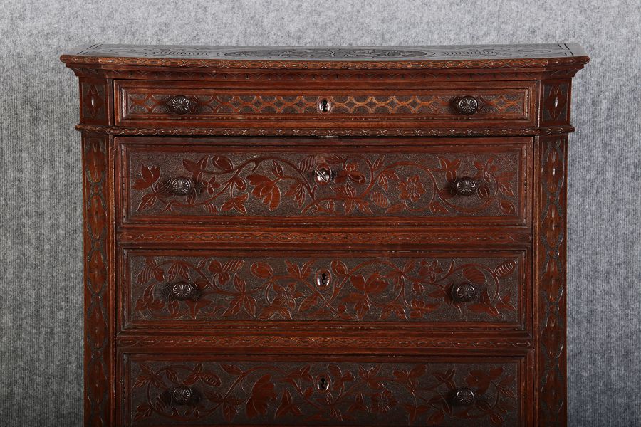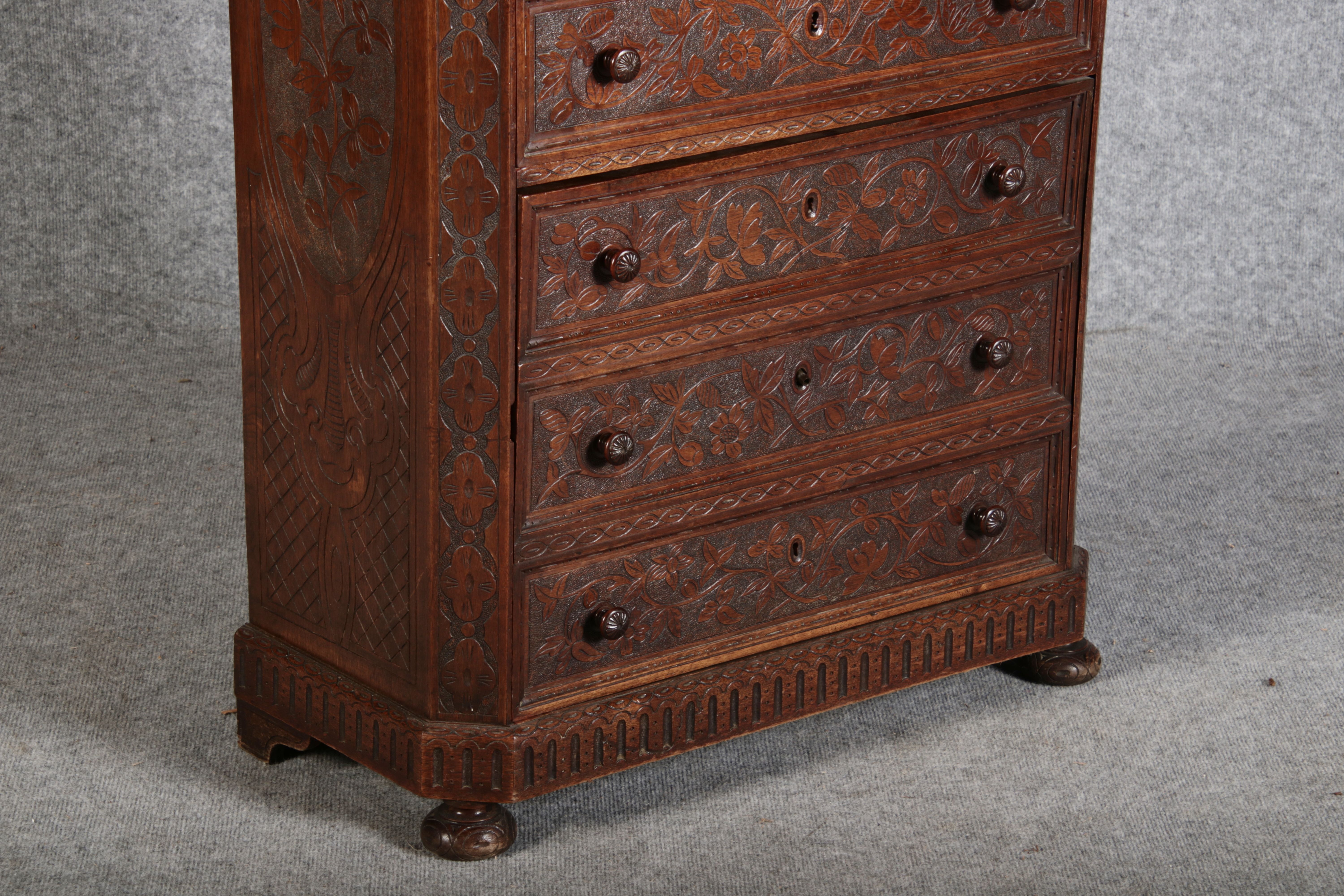 | Sehr kleiner schmaler Antiker Sekretär 76 cm Breit 19 Jh. Flachschnitzereien | ||
