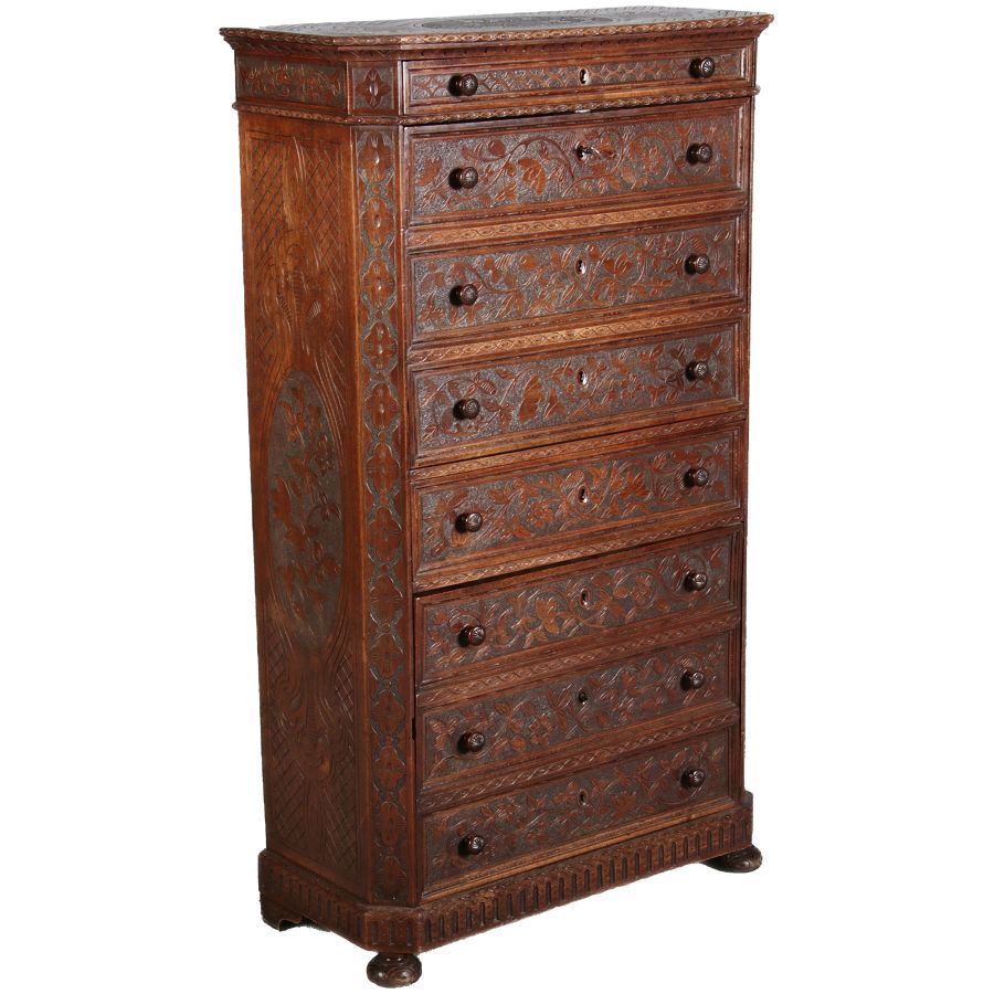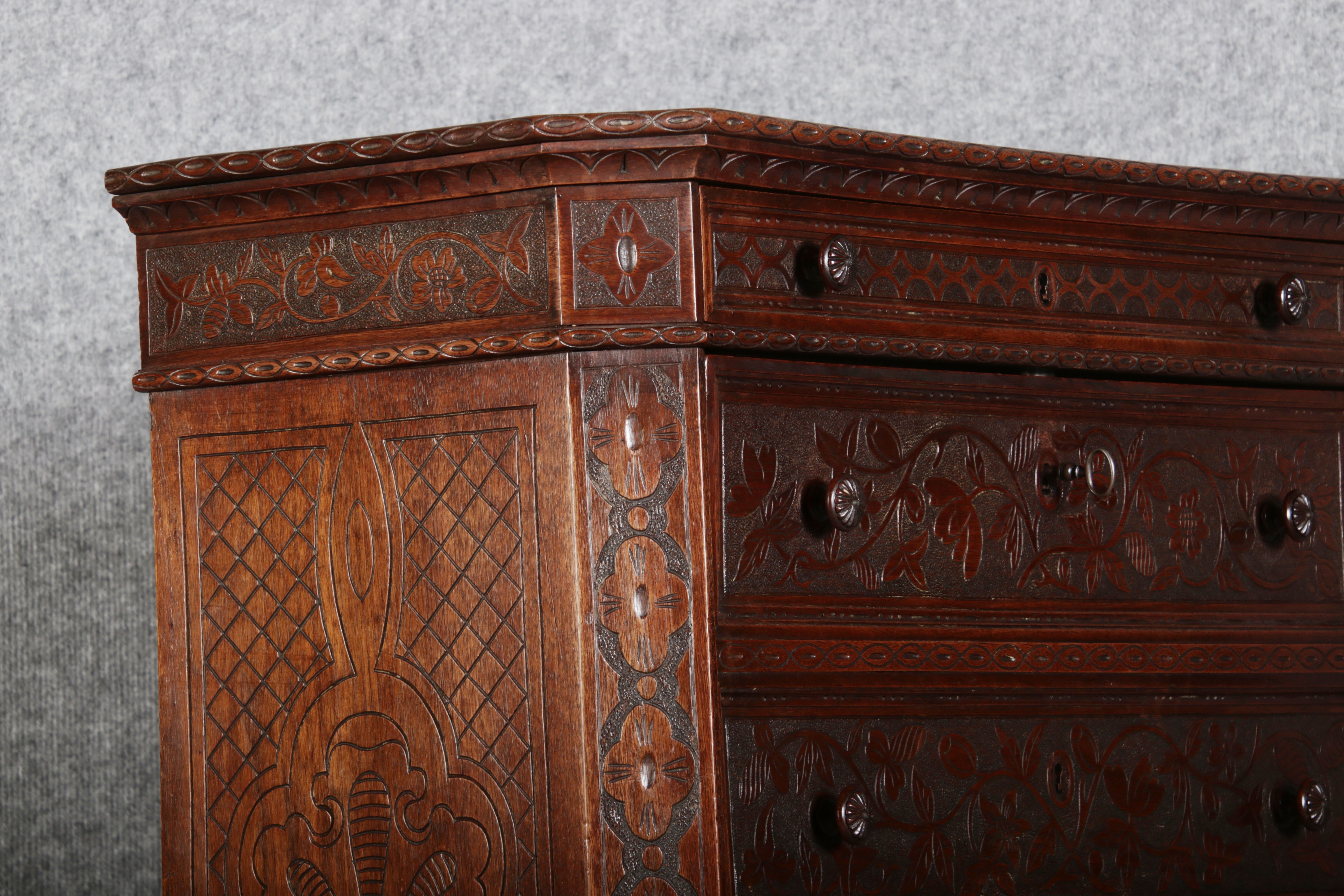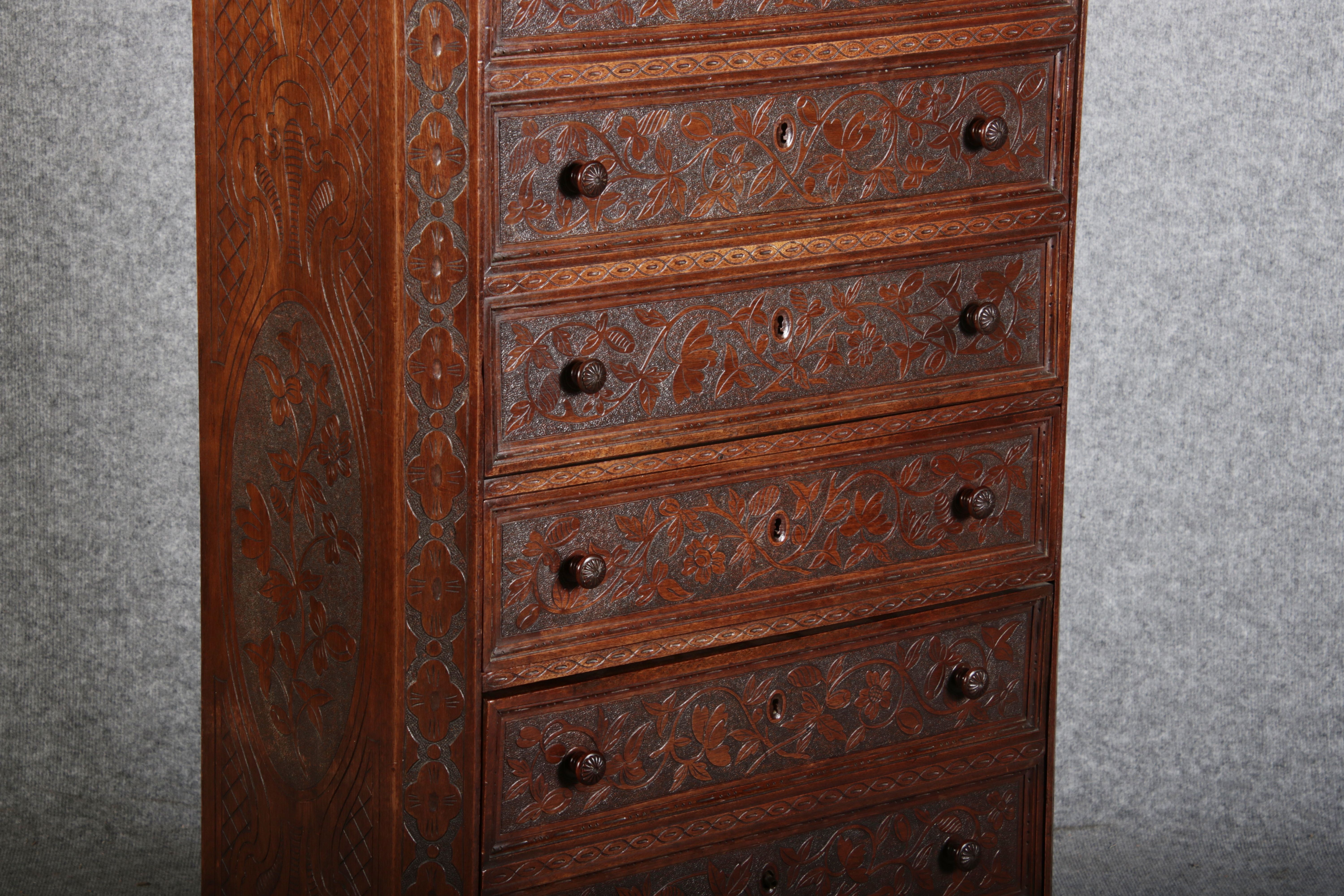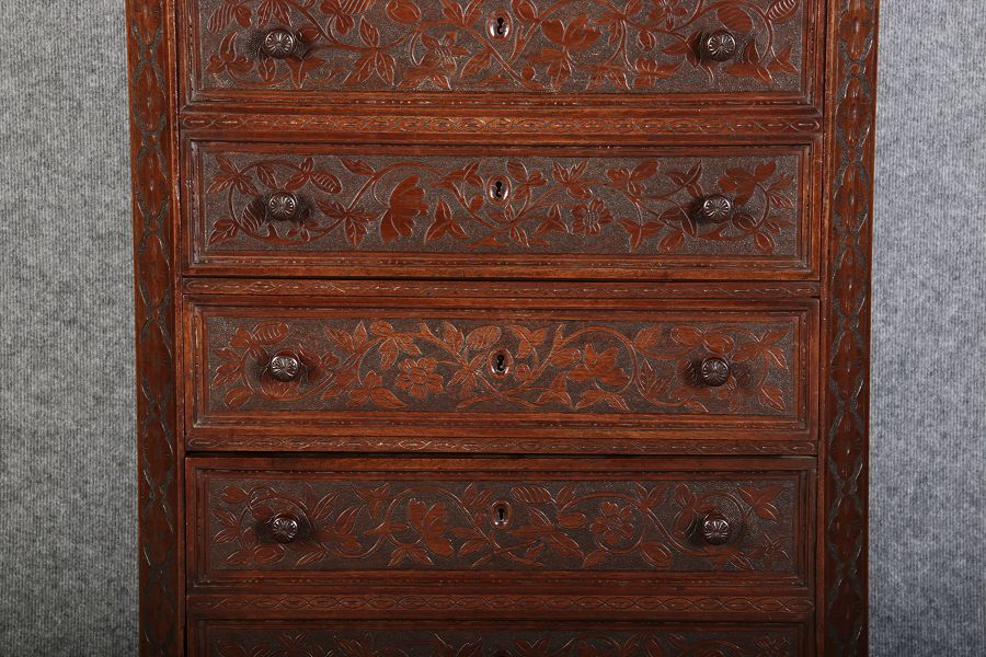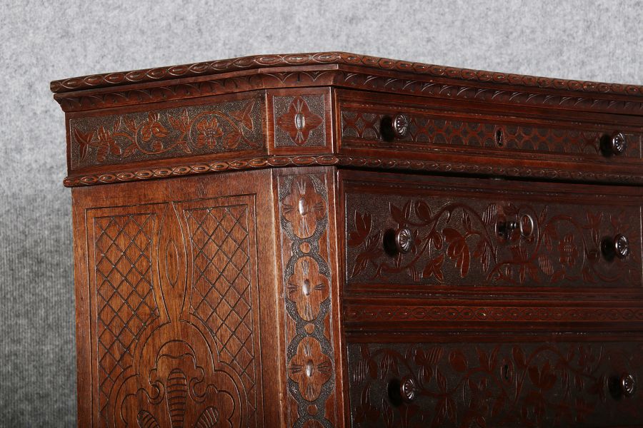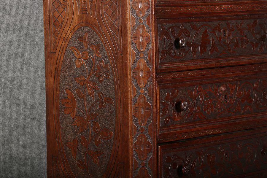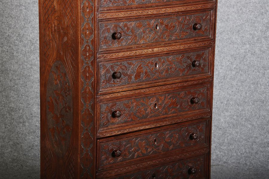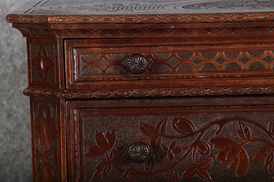 | Sehr kleiner schmaler Antiker Sekretär 76 cm Breit 19 Jh. Flachschnitzereien | ||