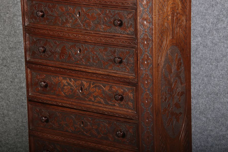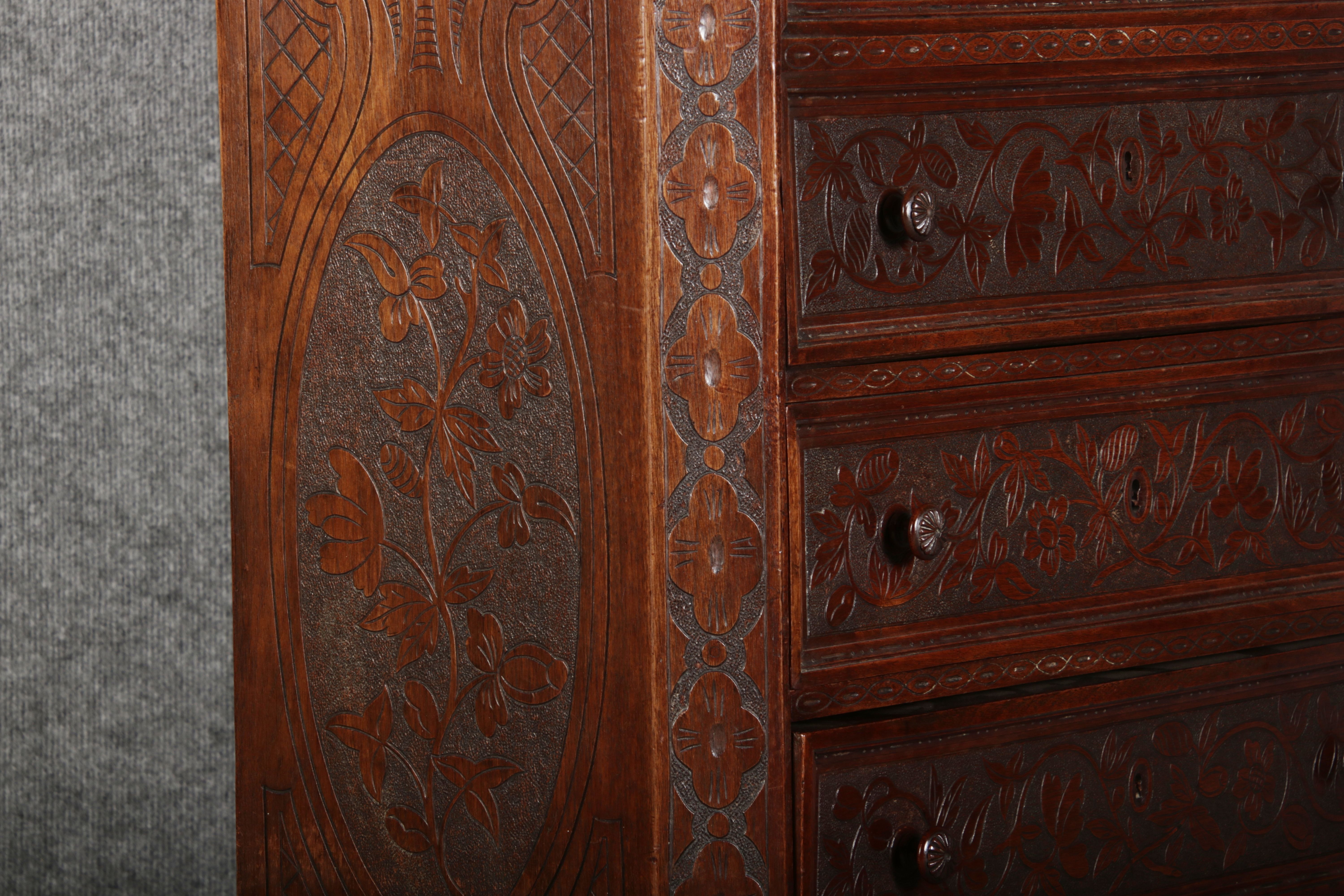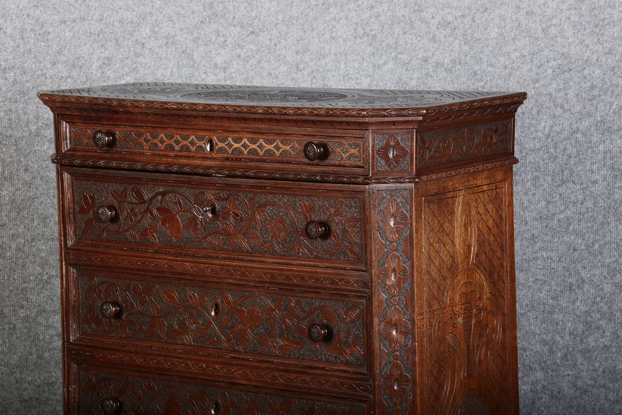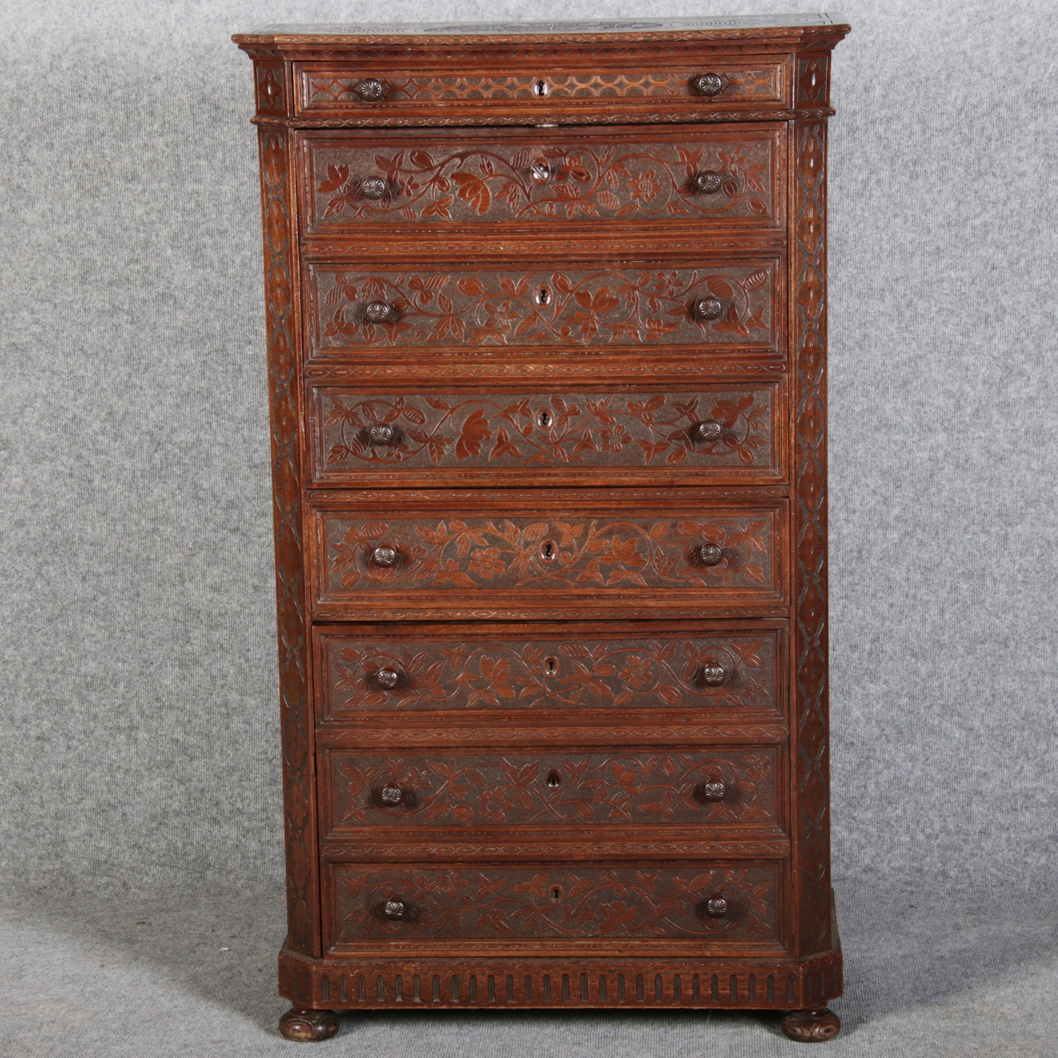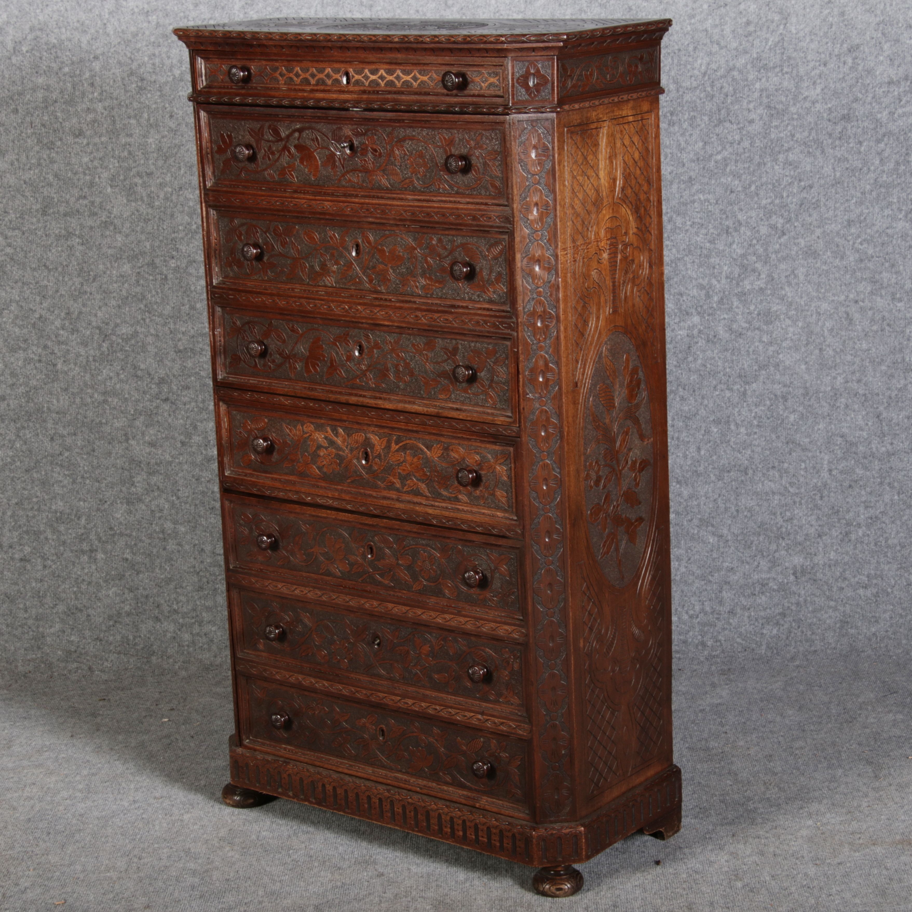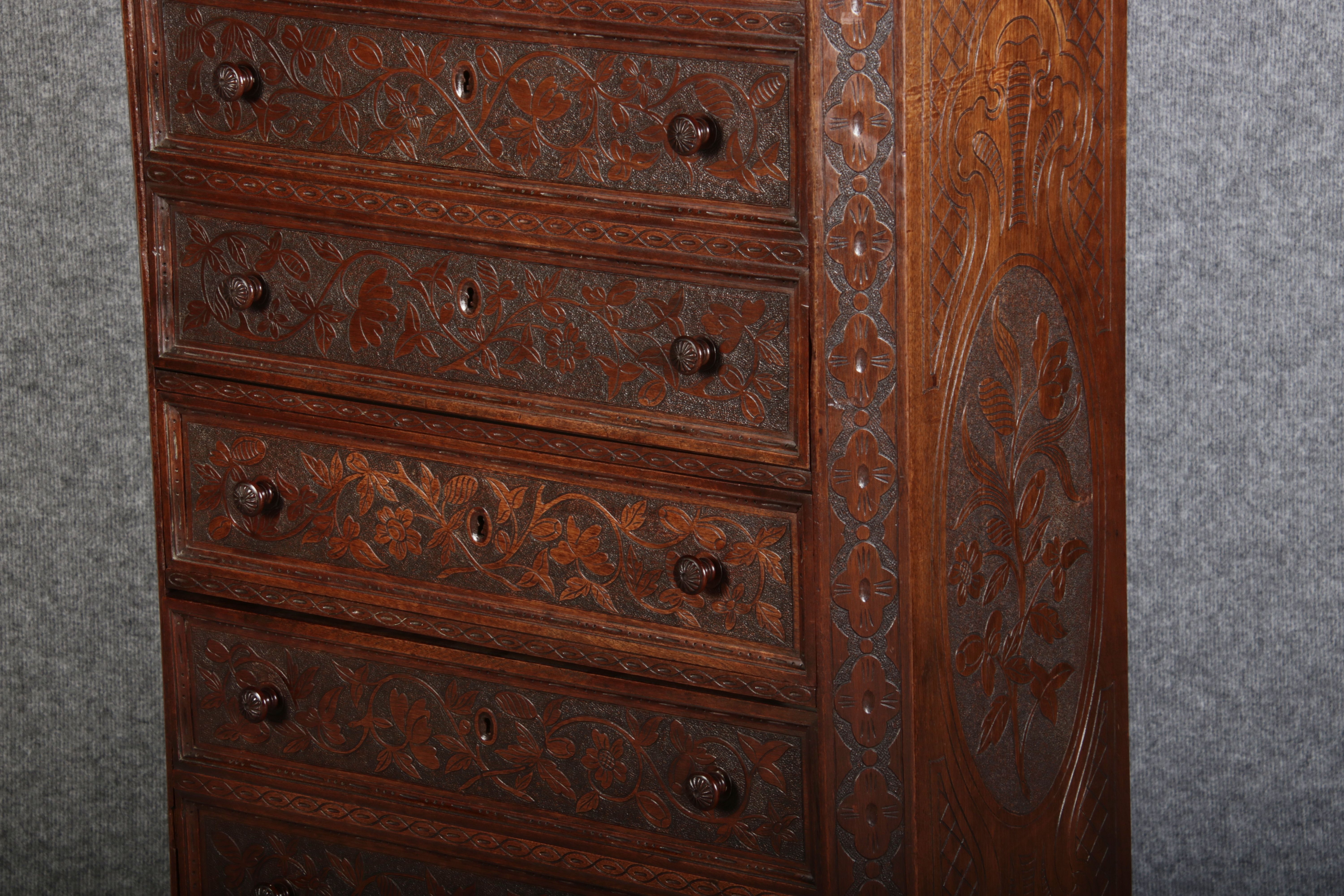 | Sehr kleiner schmaler Antiker Sekretär 76 cm Breit 19 Jh. Flachschnitzereien | ||