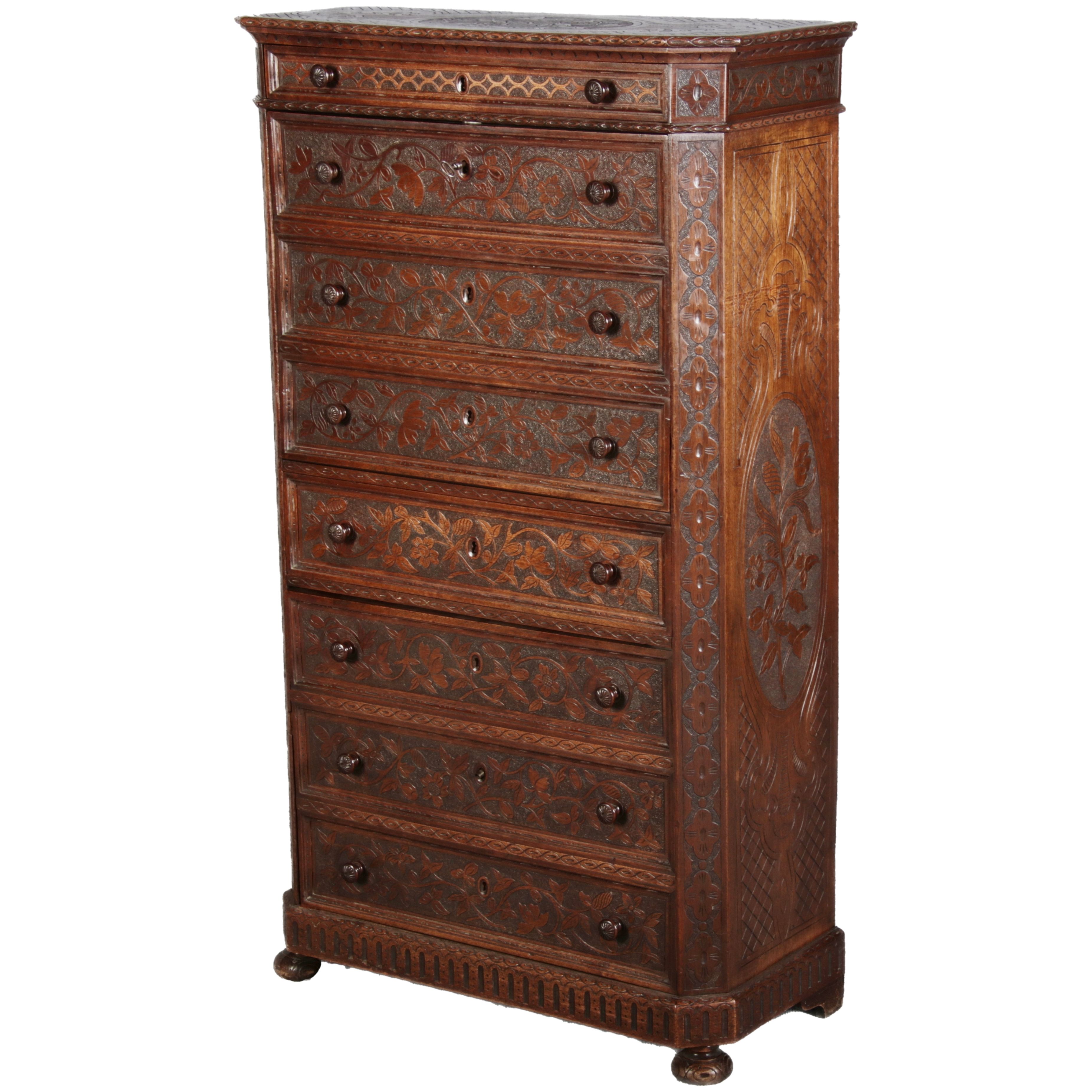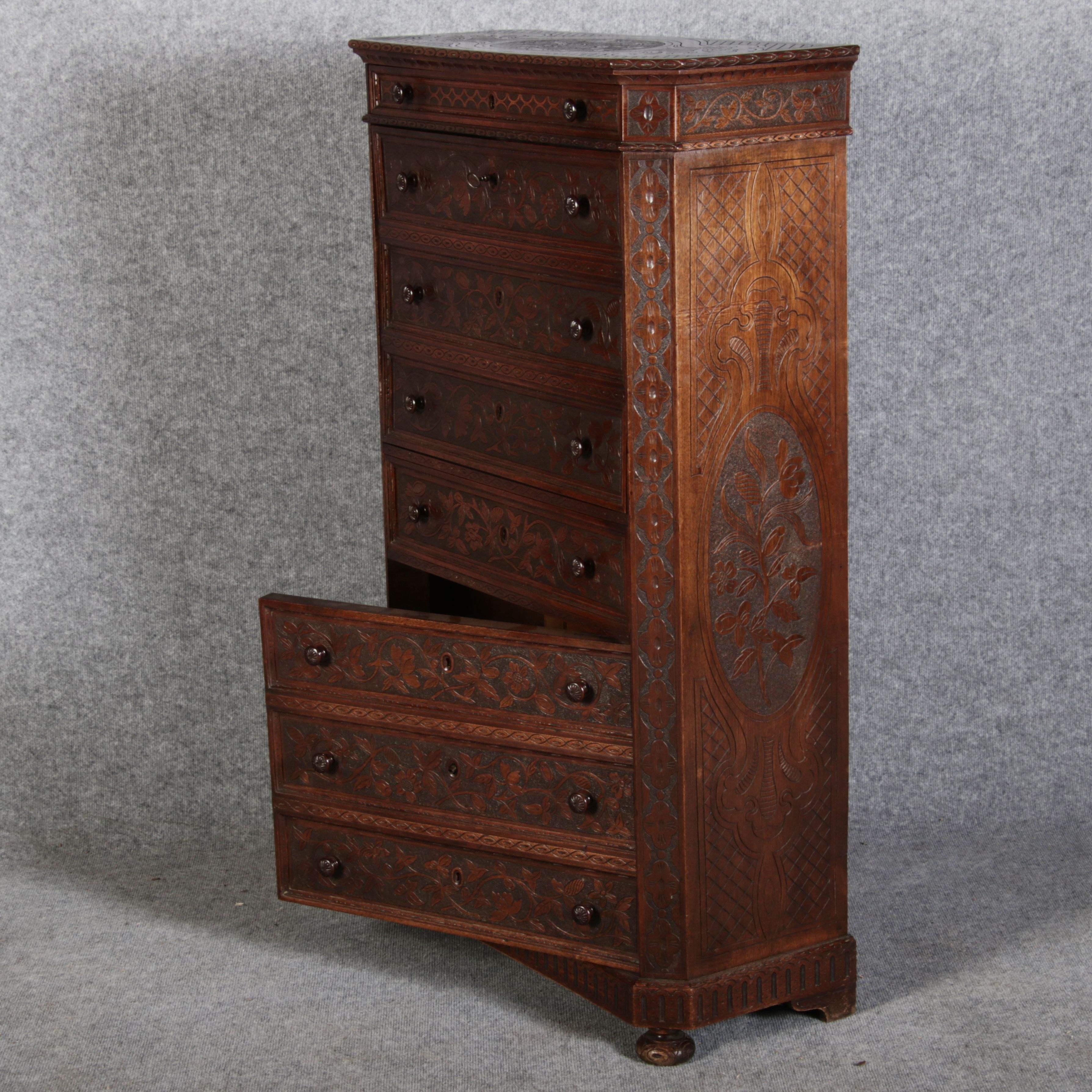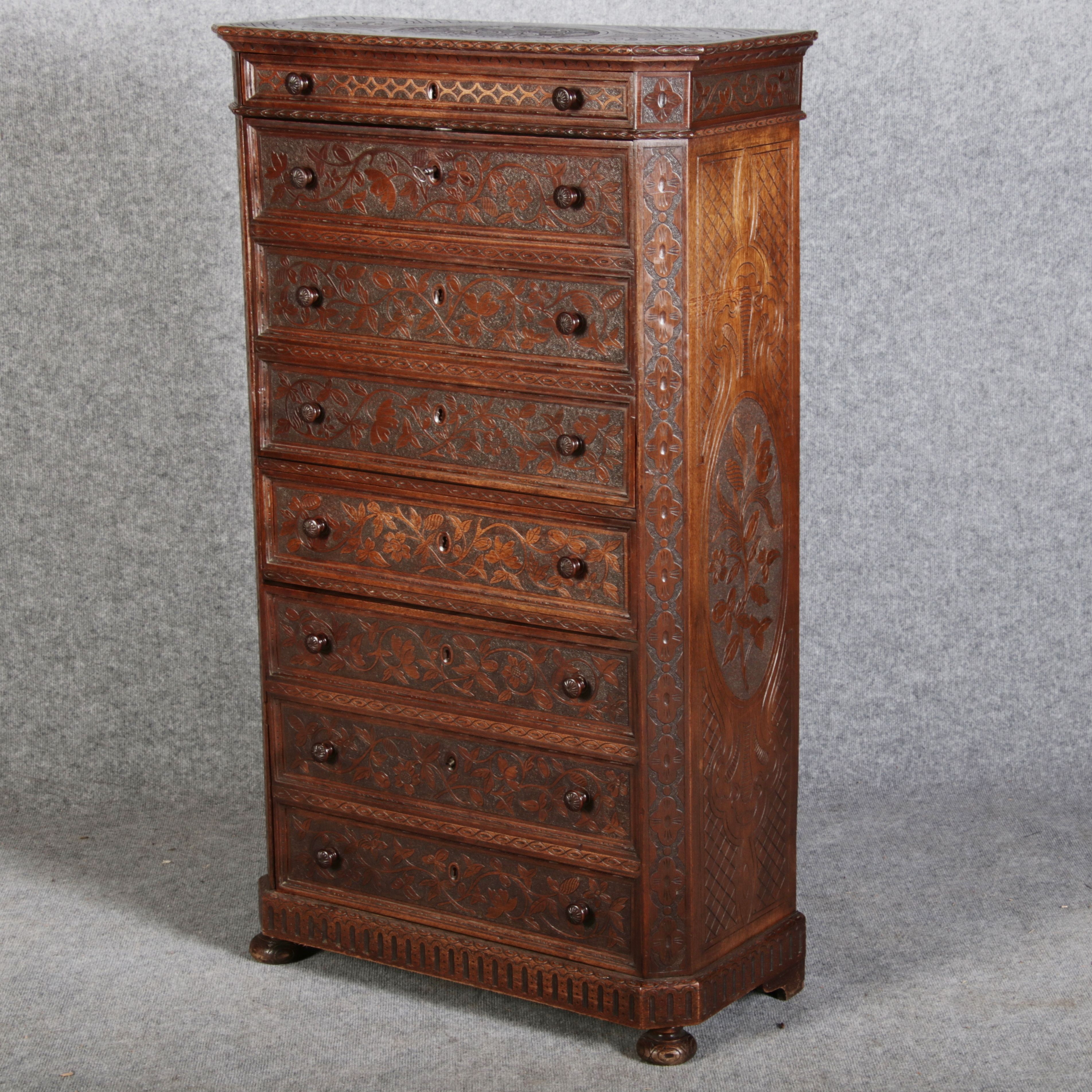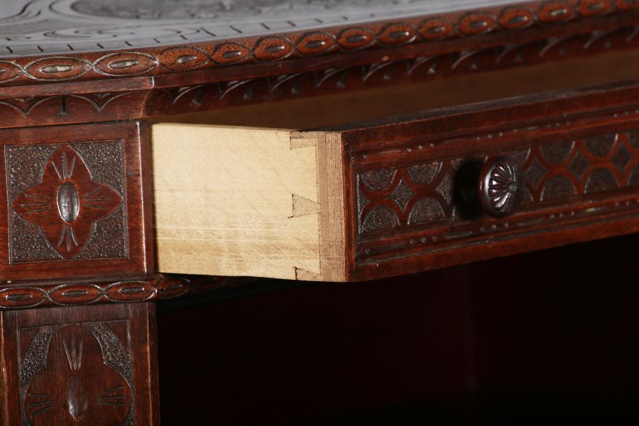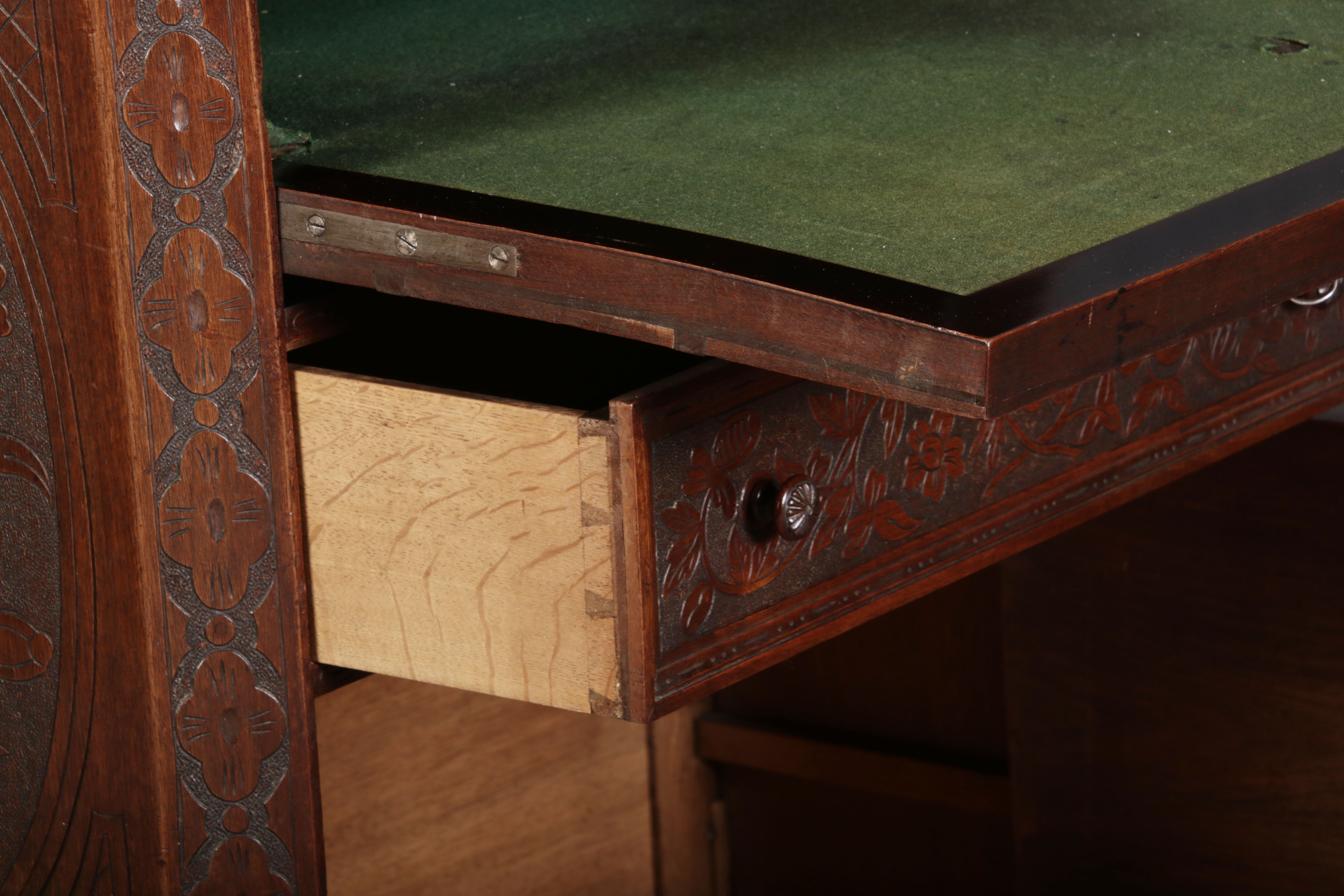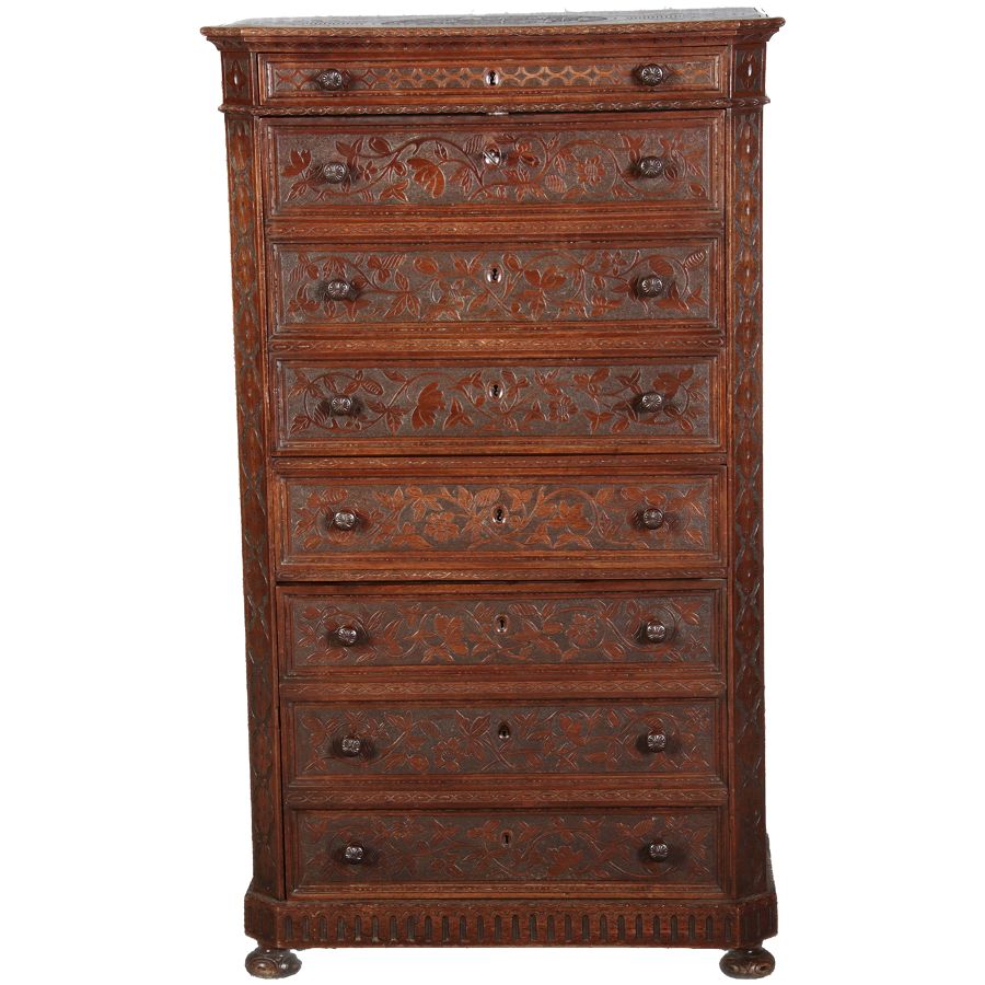 | Sehr kleiner schmaler Antiker Sekretär 76 cm Breit 19 Jh. Flachschnitzereien | ||