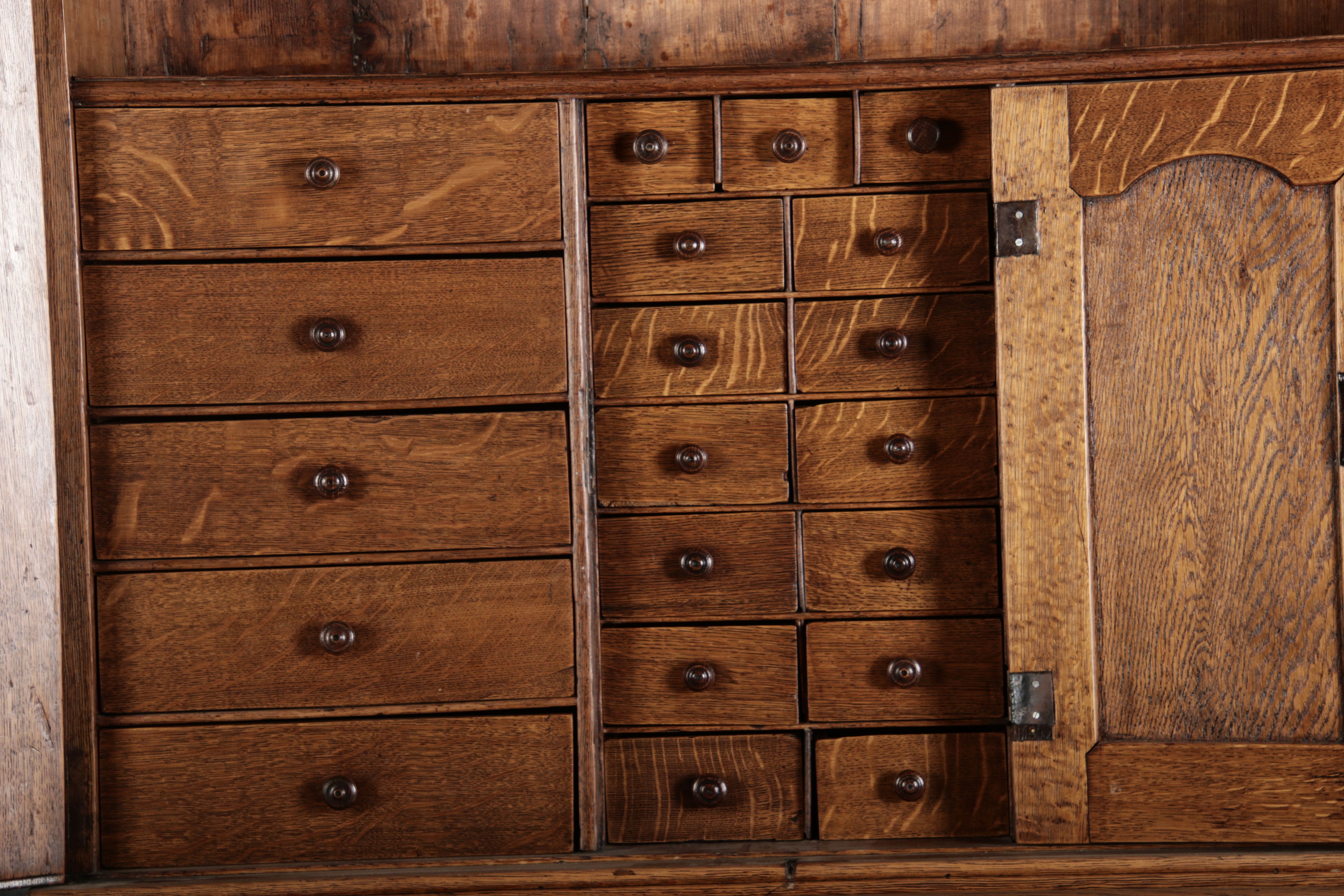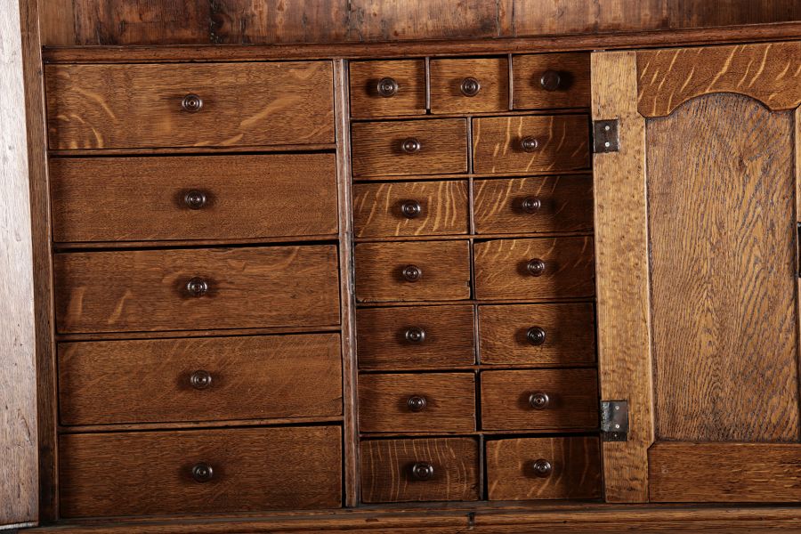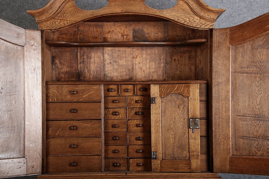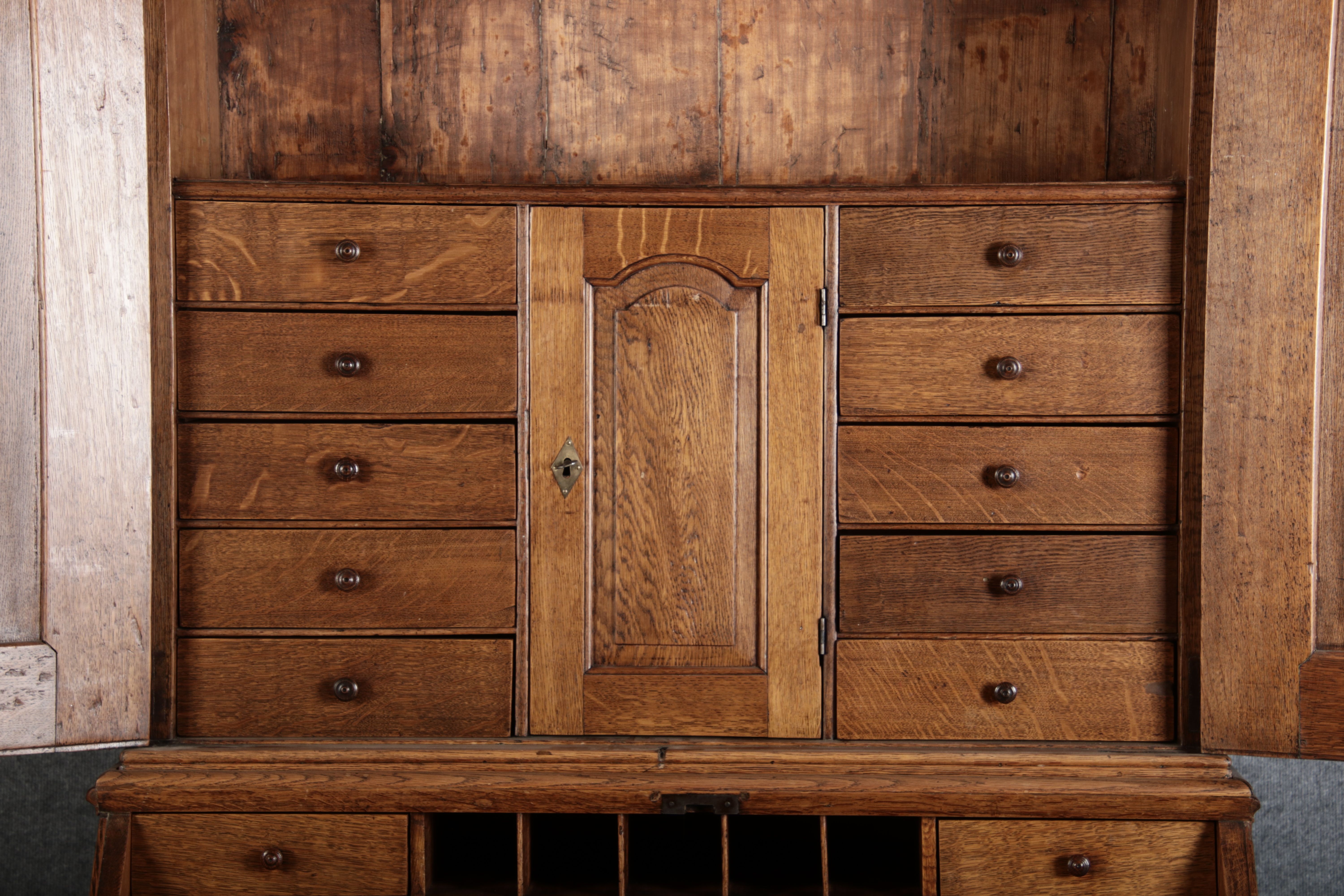 im Oberteil befinden sich 25 Schubladen, davon sind 15 hinter einer extra Tür. Insgesamt hat der Sekretär 34 Schubladen |