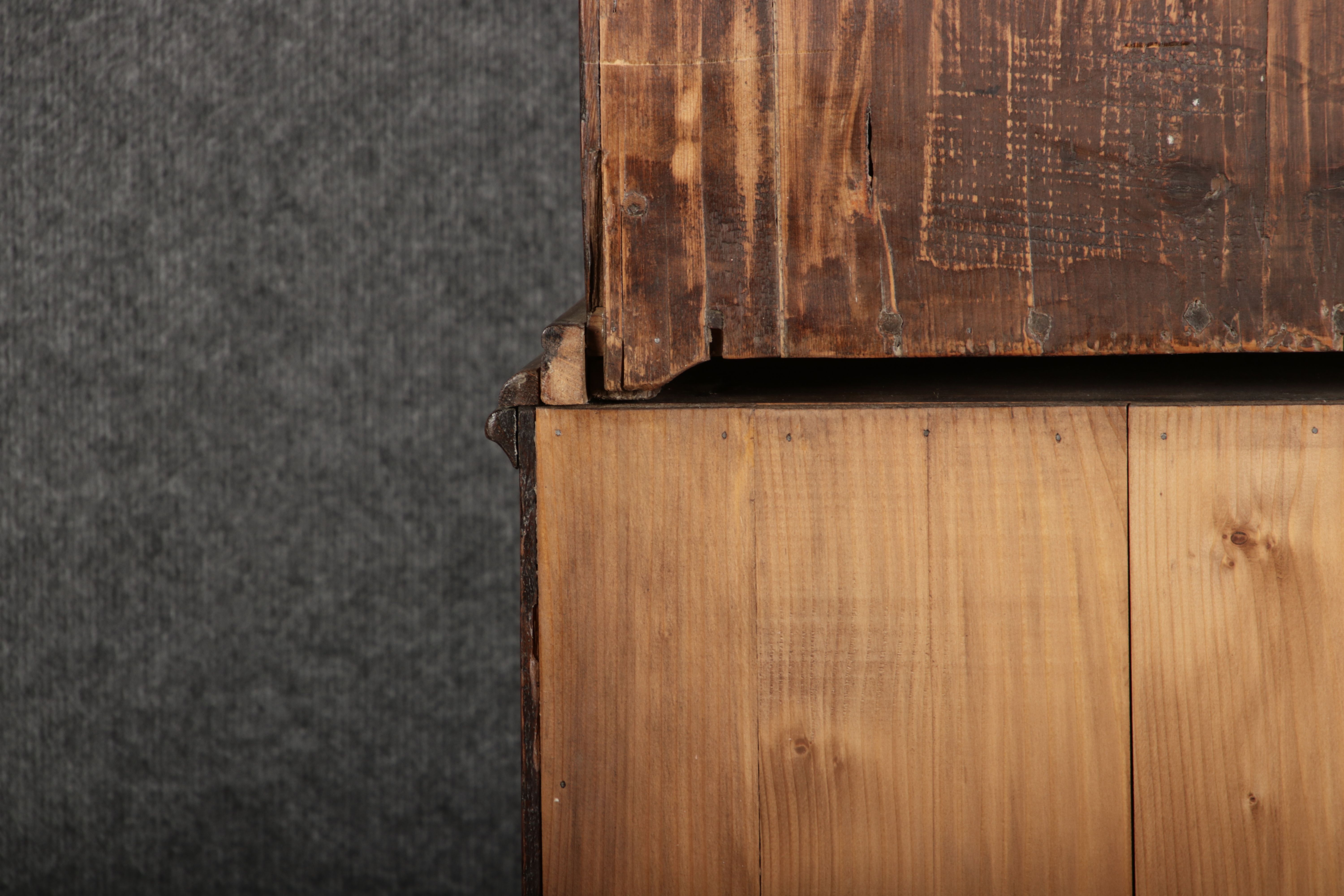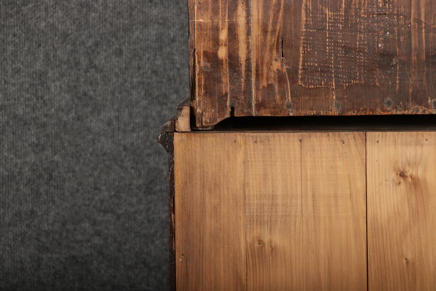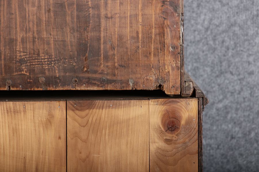 Konstruktion/construction: Der Sekretär besteht aus zwei/drei Teilen, Oberteil,Mittelteil und Unterteil.