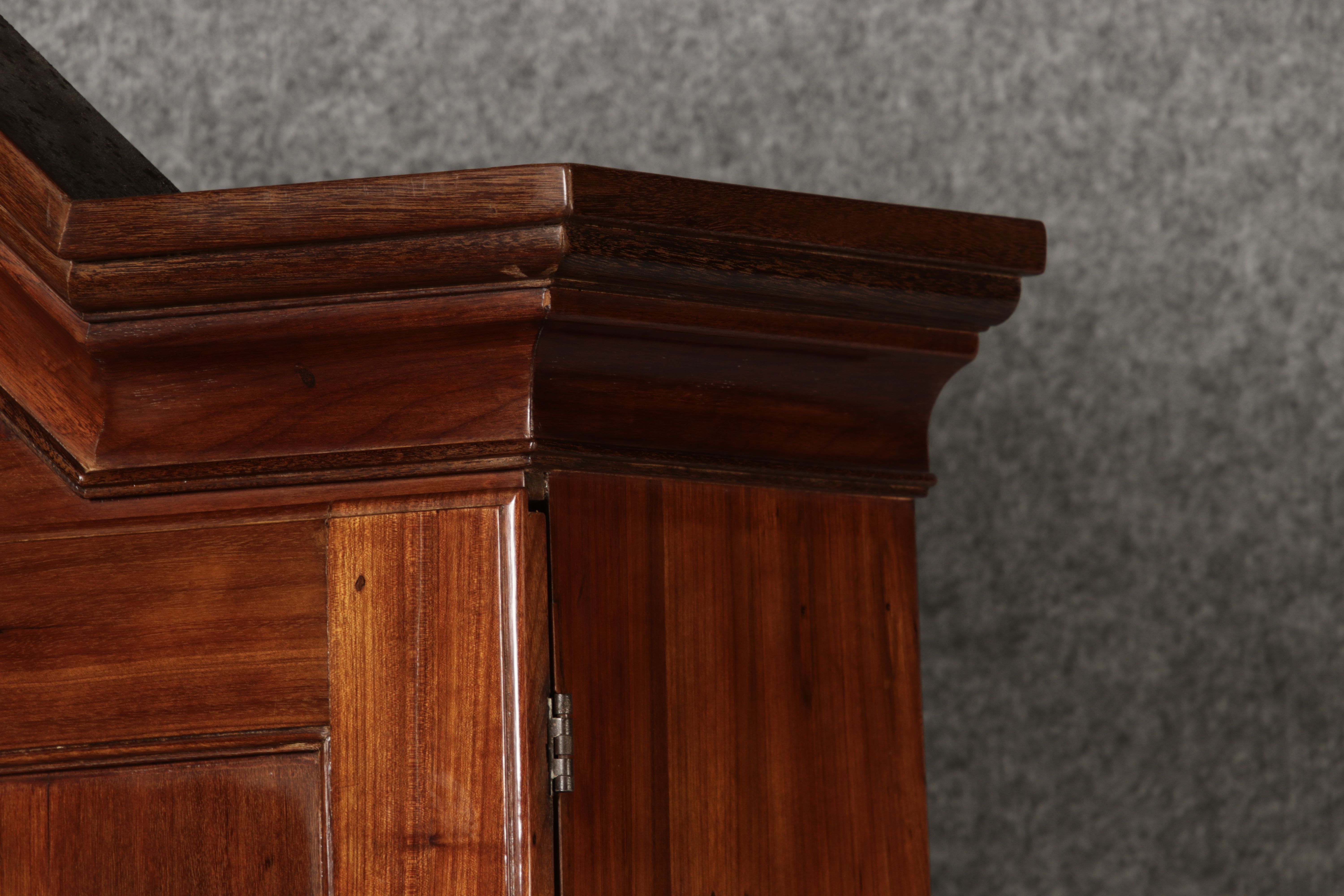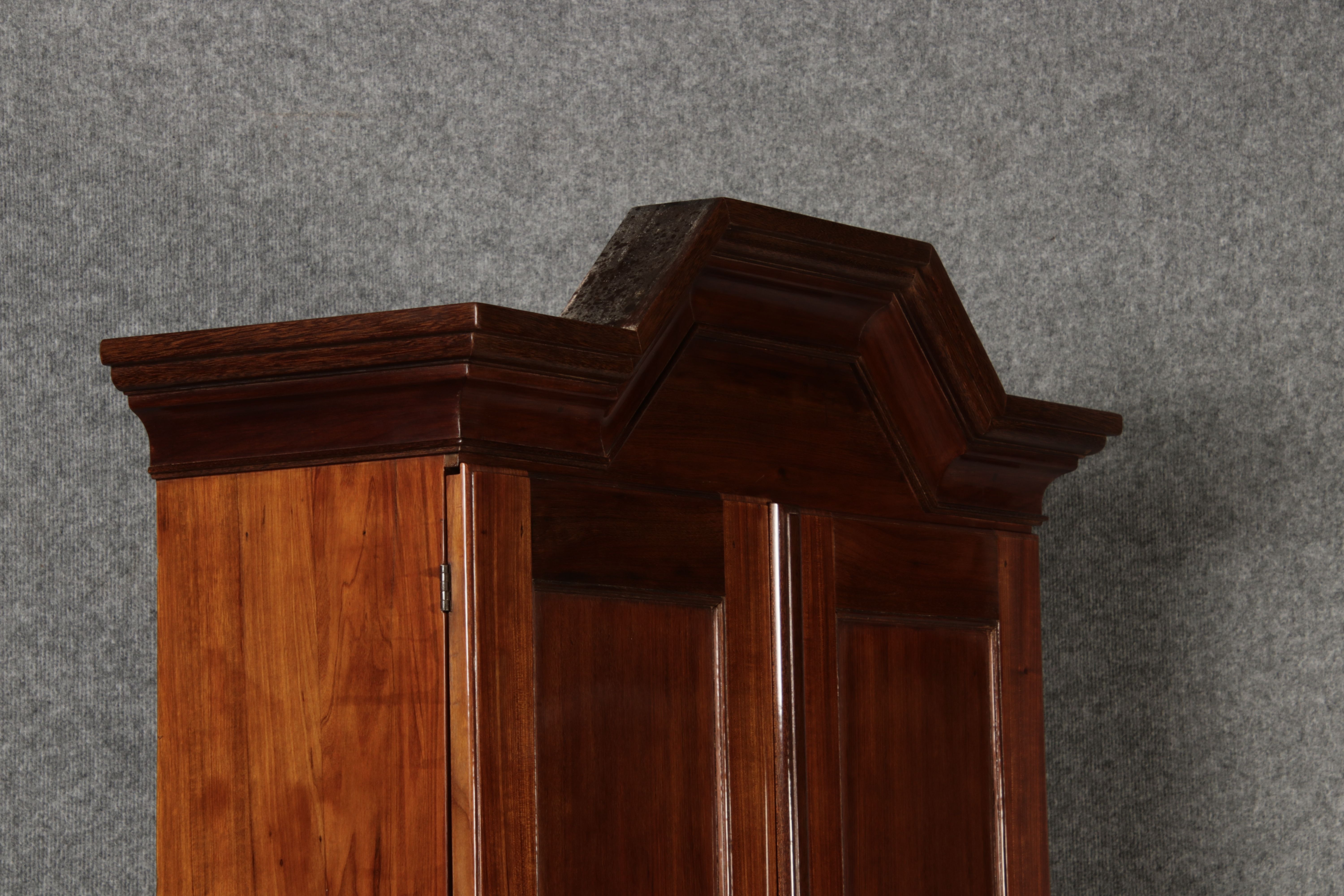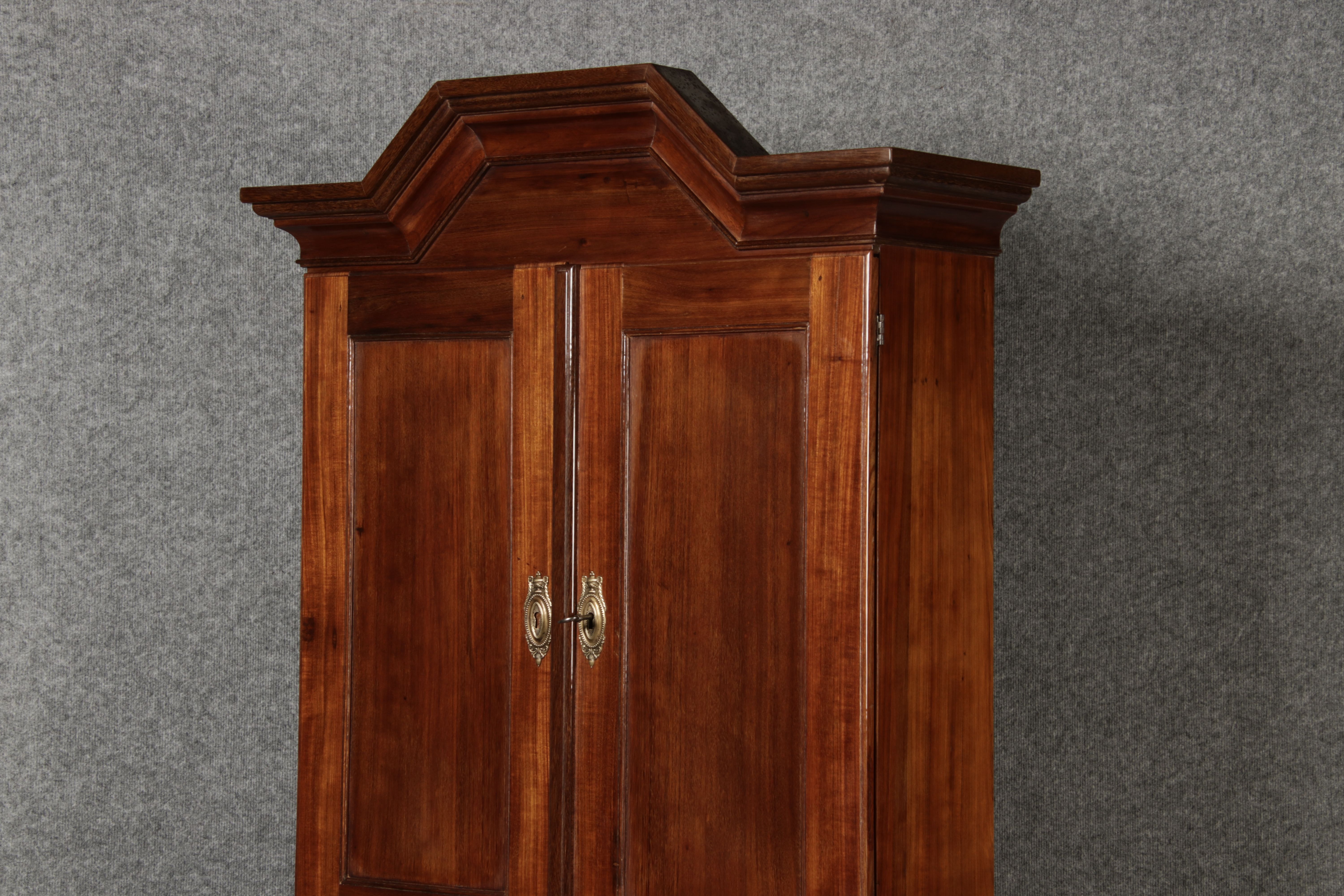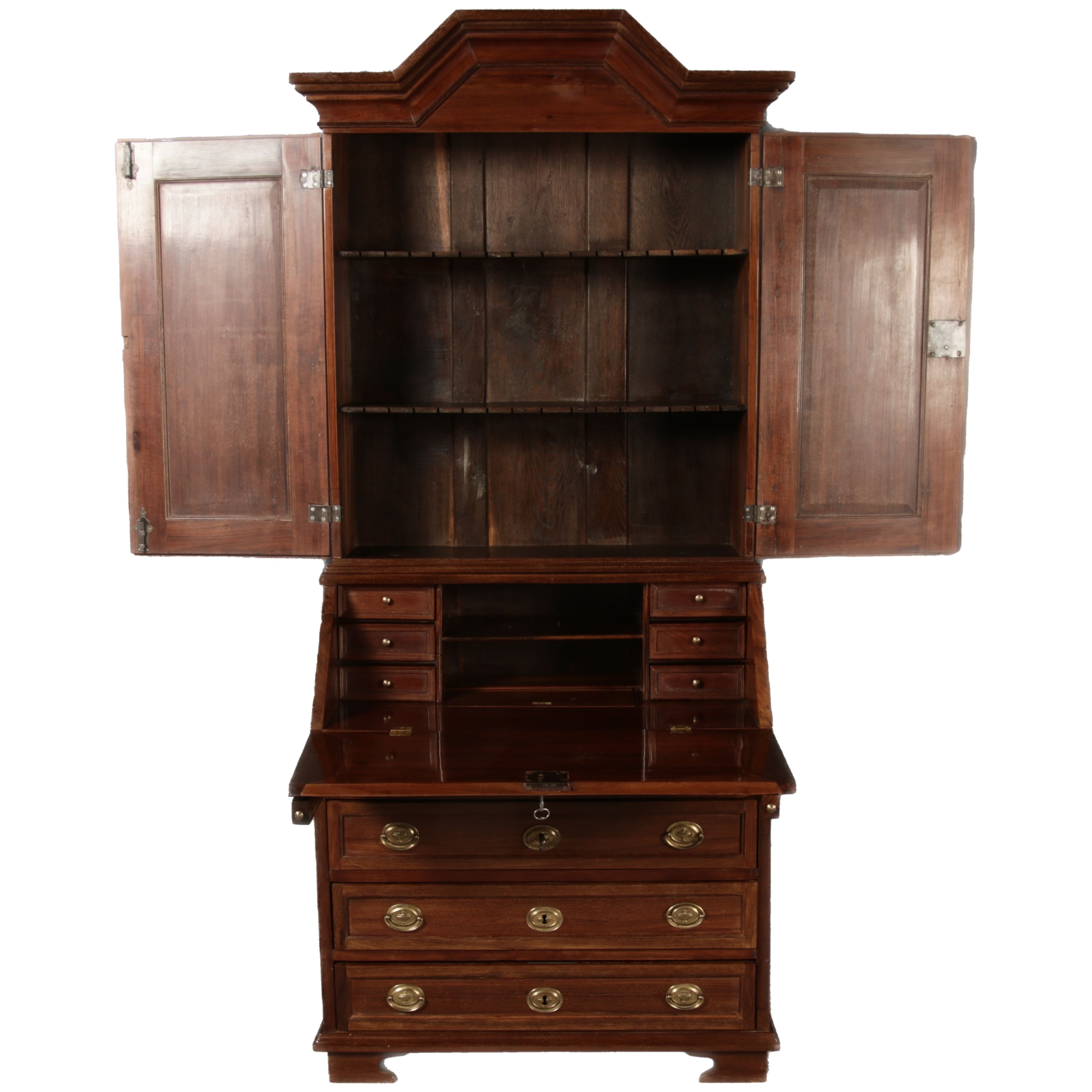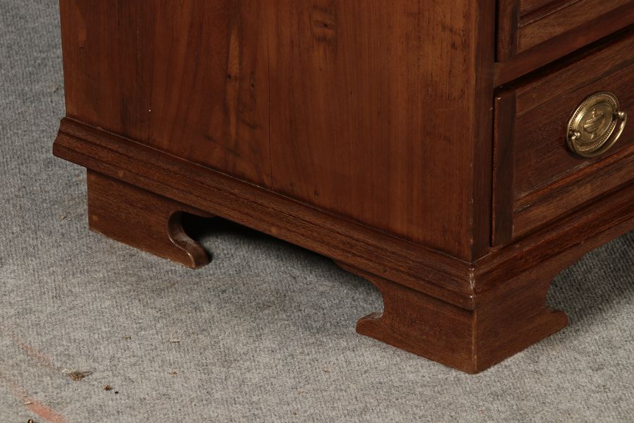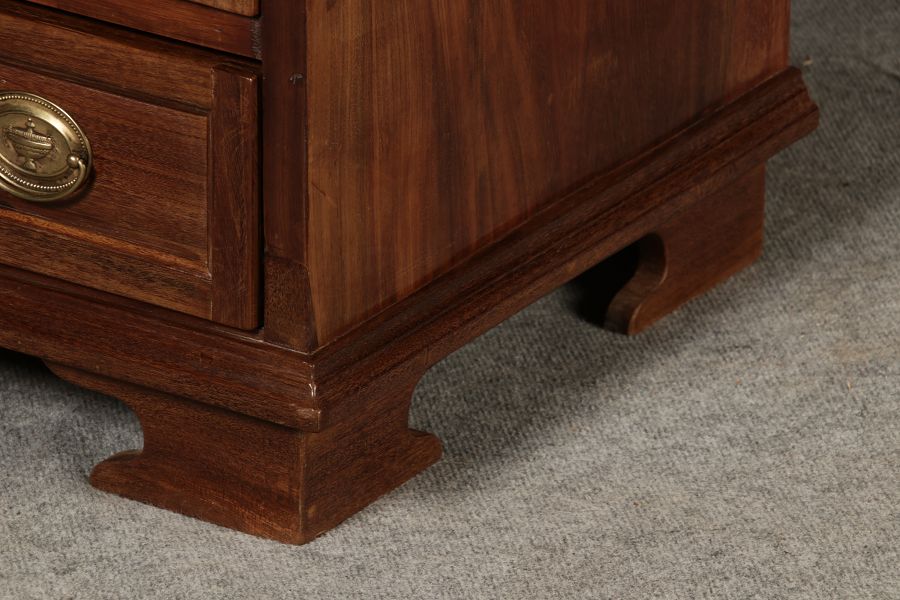Jahrhundert – Mahagoni nur 99 cm Breit Dieser edle Sekretär aus dem 18. Jahrhundert ist ein exquisites Beispiel für europäische Handwerkskunst dieser Epoche und besticht durch seine hochwertige Verarbeitung aus massivem Mahagoniholz. Mit seiner imposanten Präsenz und der gelungenen Kombination von Funktionalität und Eleganz ist dieser Sekretär ein echtes Schmuckstück für Sammler und Liebhaber antiker Möbel. Der Sekretär besteht aus massivem Mahagoni, einem Holz, das im 18. Jahrhundert aufgrund seiner feinen Maserung und tiefen, warmen Farbgebung besonders beliebt war. Der warme, satte Farbton des Mahagoni wird durch die sanfte Patina, die sich über die Jahre entwickelt hat, noch betont. Die Oberflächen des Möbels weisen eine leicht glänzende Politur auf, die seine edle Erscheinung unterstreicht. Der Sekretär zeichnet sich durch seine klassische Zweiteilung aus: im Oberer Teil: Zwei aufwendig gearbeitete Flügeltüren mit eingesetzten Feldern öffnen sich und gewähren Zugang zu einem geräumigen Innenbereich. Dieser ist mit mehreren Regalböden ausgestattet, die ideal für die Aufbewahrung von Dokumenten, Büchern oder dekorativen Objekten geeignet sind. Die Türen sind mit Messingbeschlägen versehen, die dem Stück einen Hauch antiker Raffinesse verleihen. |