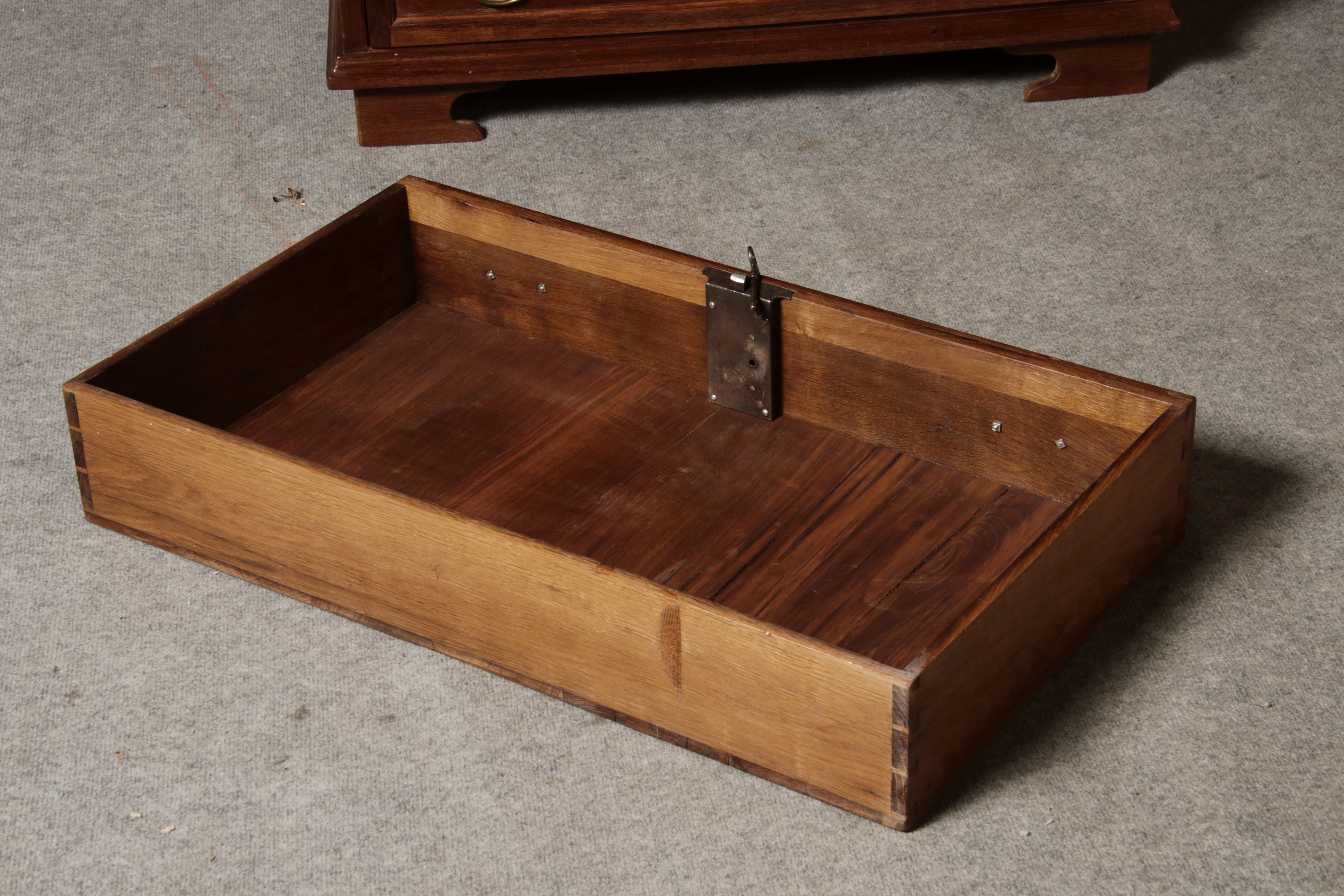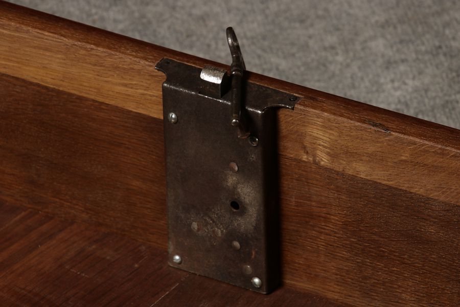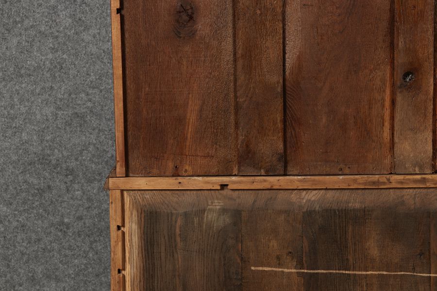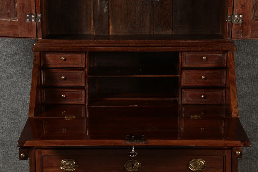 Konstruktion/construction: Der Sekretär besteht aus zwei Teilen, Oberteil und Unterteil.