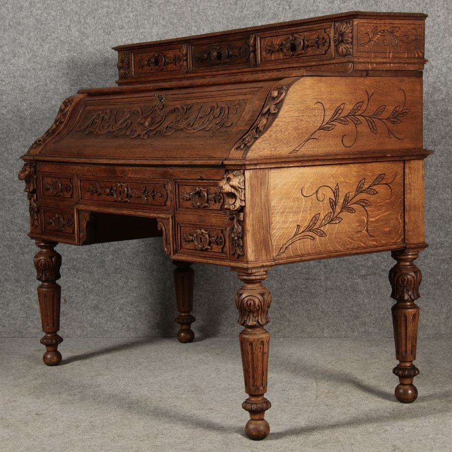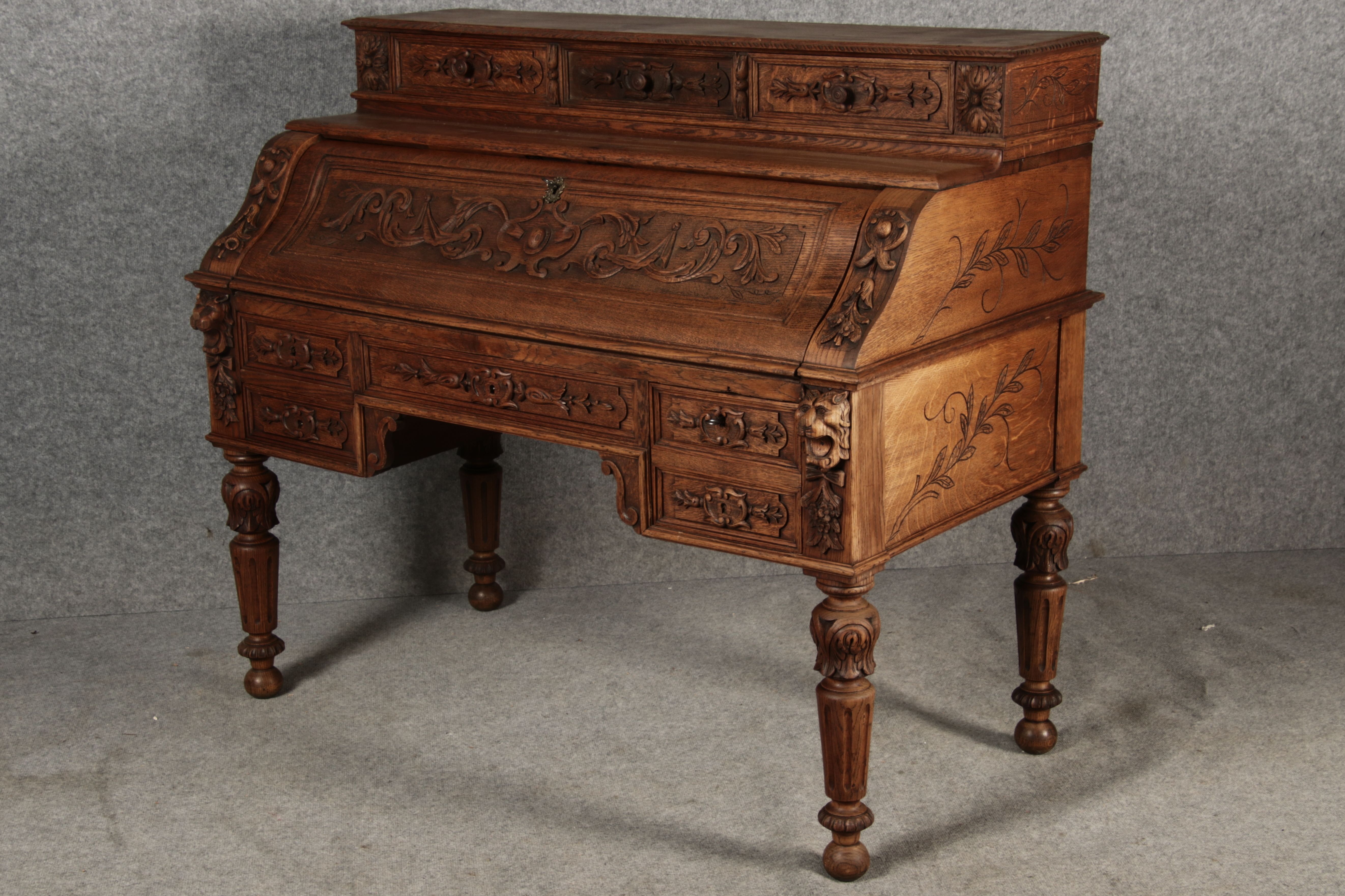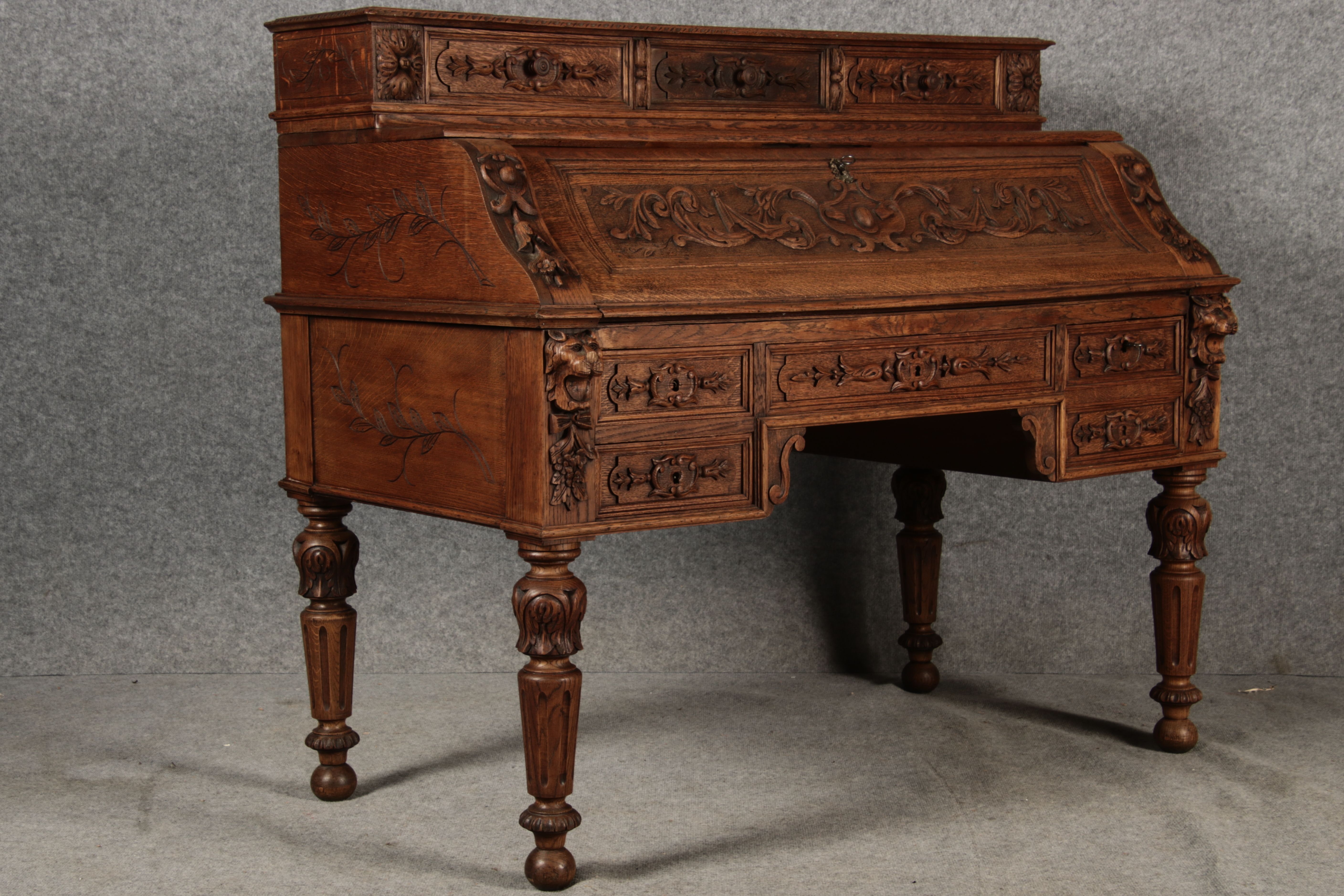 | Antiker Reich verzierter antiker Sekretär – Schreibtisch mit Schnitzereien Eiche 19 Jh. | ||