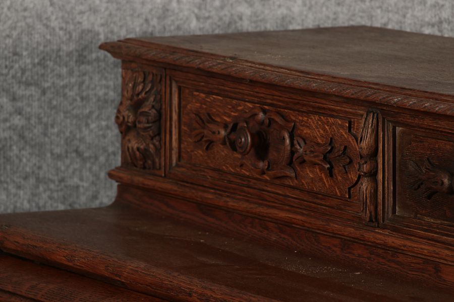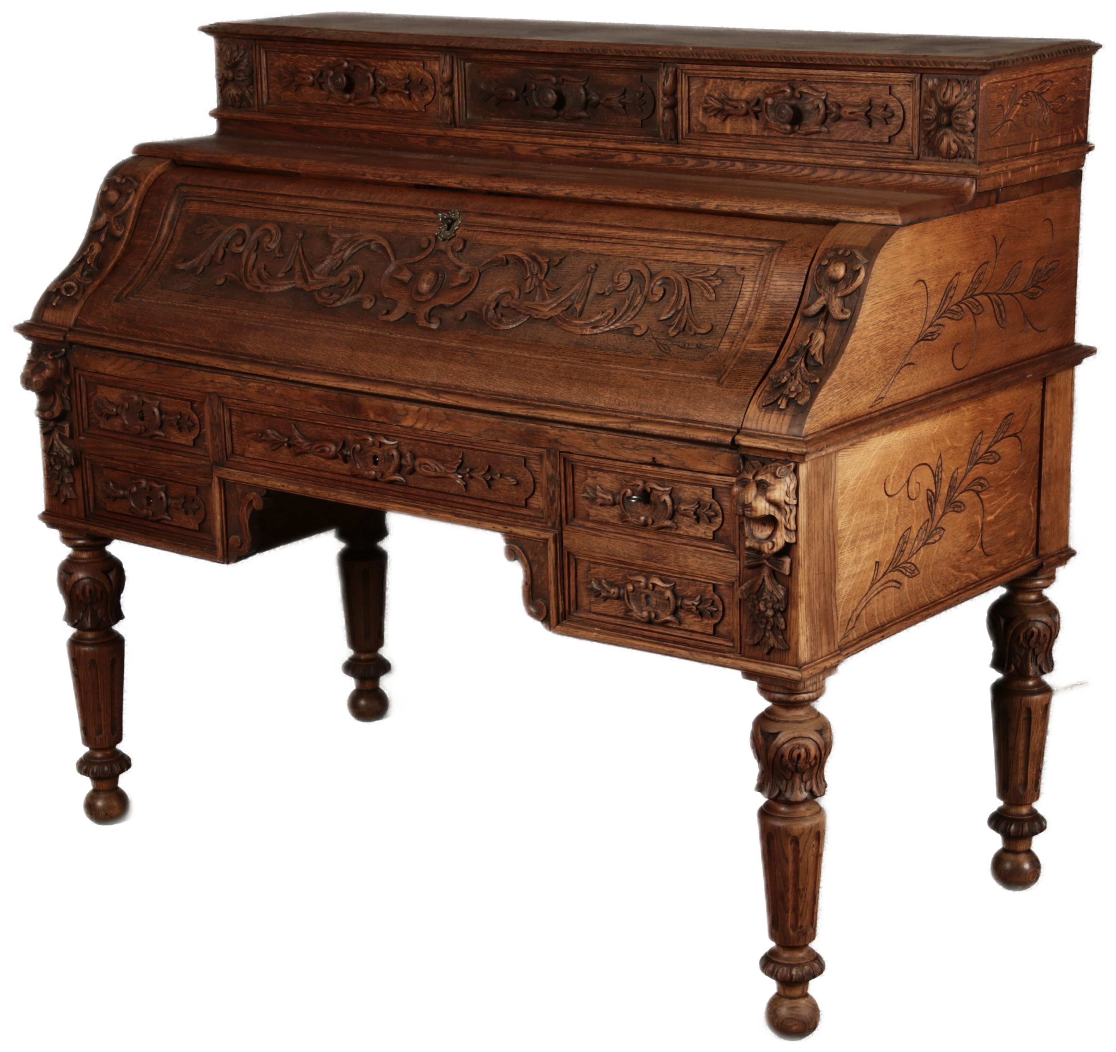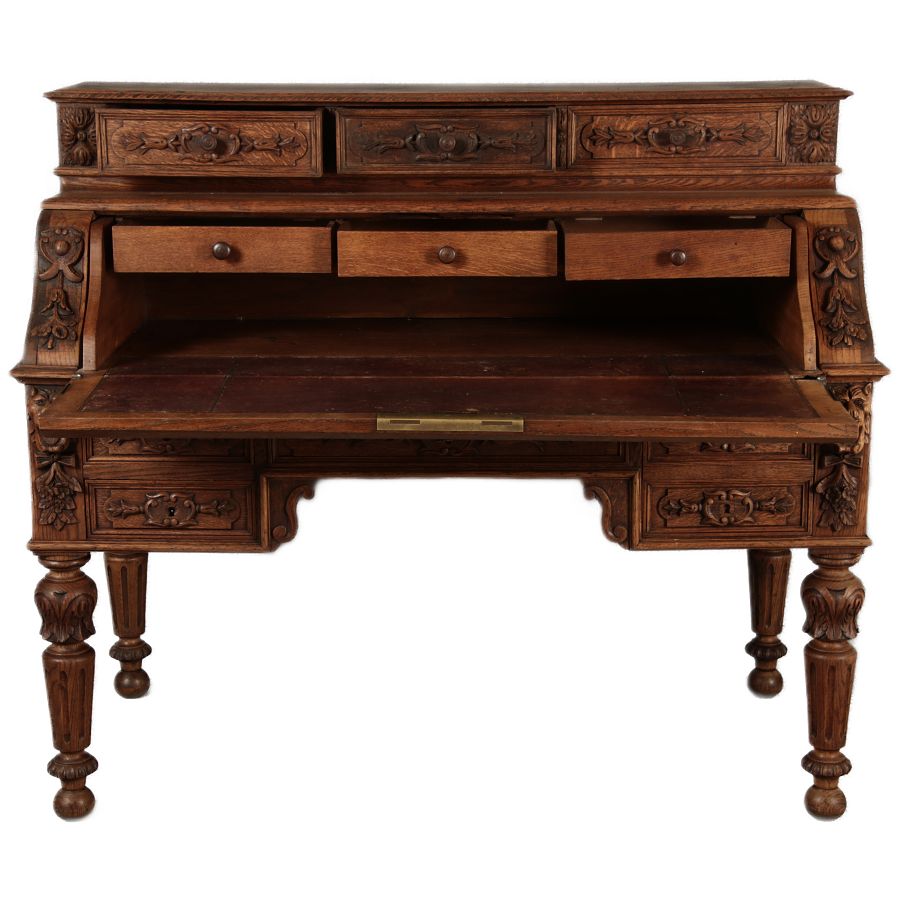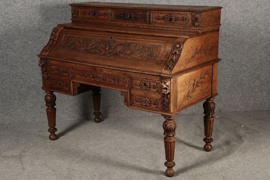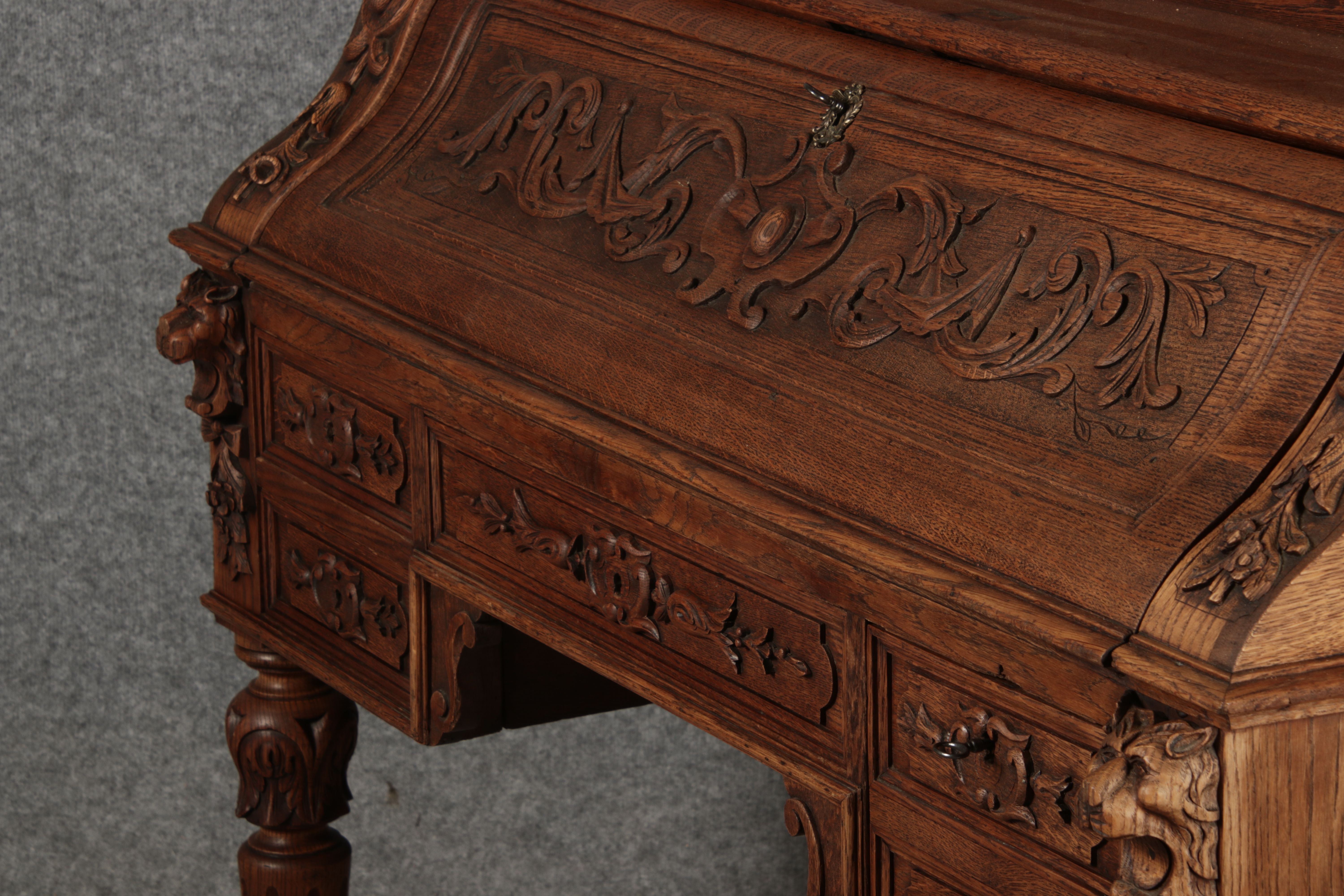| Antiker Reich verzierter antiker Sekretär – Schreibtisch mit Schnitzereien Eiche 19 Jh. | ||
