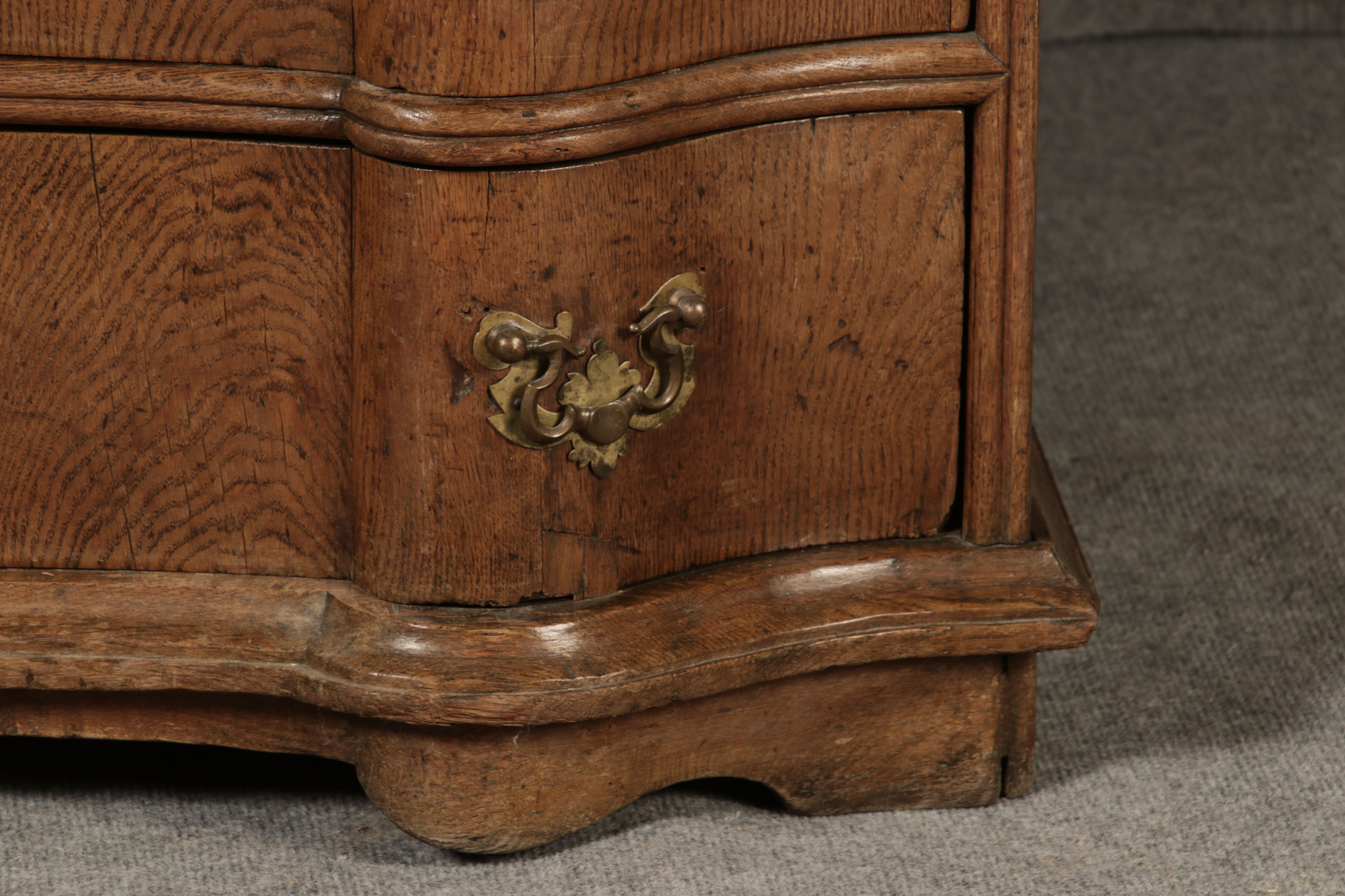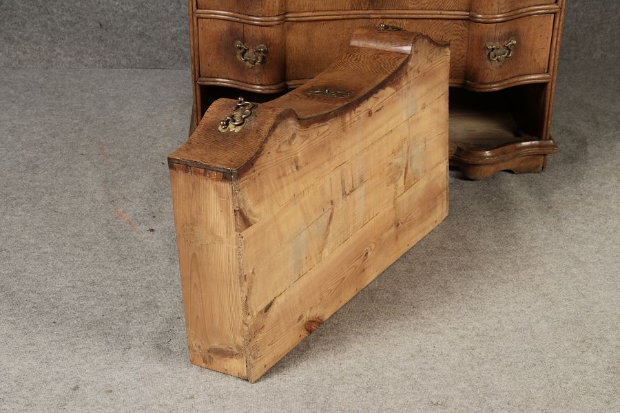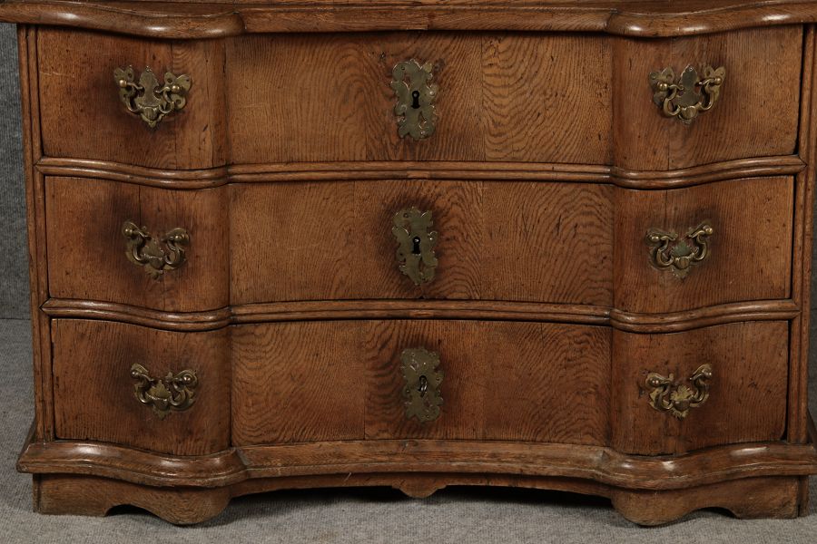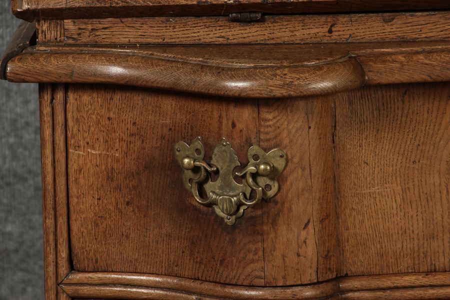 MessingbeschlägeDie Messingbeschläge an Türen und Schubladen sind kunstvoll gearbeitet und im typischen Stil des Spätbarocks gestaltet. Sie ergänzen das edle Design des Sekretärs und tragen zur luxuriösen Anmutung bei. Die Beschläge sind in gutem Zustand und zeigen nur minimale Gebrauchsspuren, was die historische Authentizität des Möbelstücks unterstreicht. ZustandDer Sekretär befindet sich in einem guten alt Restaurierten Zustand, insbesondere in Anbetracht seines Alters. Die Holzkonstruktion ist stabil und weist keine größeren Beschädigungen auf. Die Scharniere und Schubladenmechanismen funktionieren einwandfrei. Es gibt nur minimale altersbedingte Gebrauchsspuren, die dem Stück seinen authentischen Charakter verleihen. Stil und EpocheDieses Möbelstück stammt aus der Spätbarock-Zeit und zeigt deutlich die für diese Epoche typischen Stilmerkmale. Die geschwungenen Linien, die opulente Form der Schubladenfronten sowie die kunstvoll gearbeiteten Verzierungen machen diesen Sekretär zu einem beeindruckenden Beispiel der Barock-Möbel. |