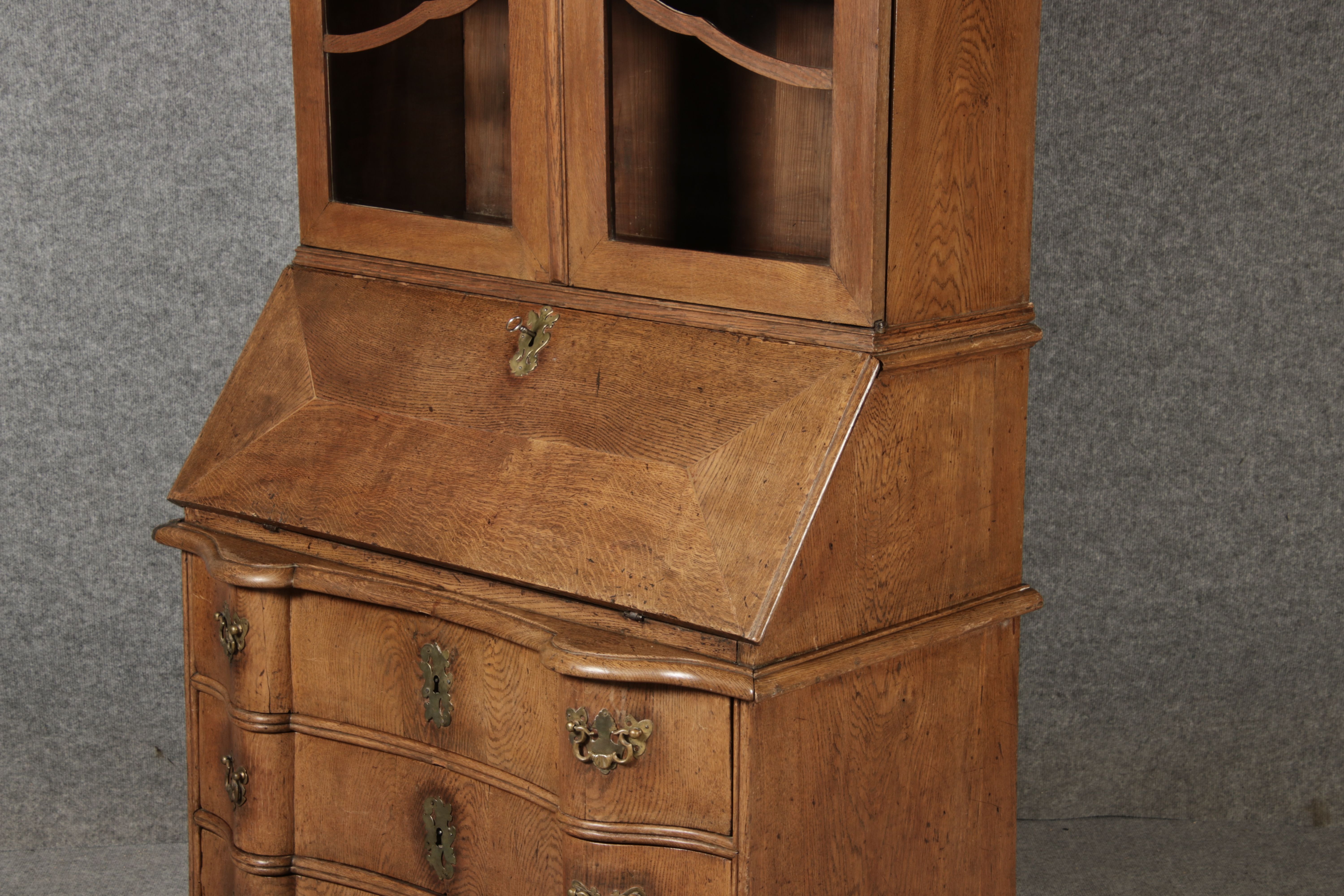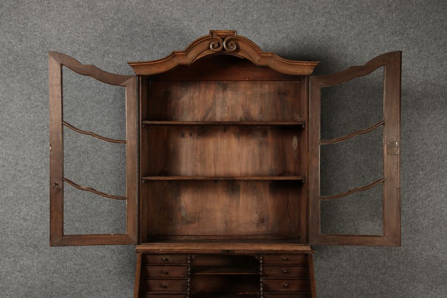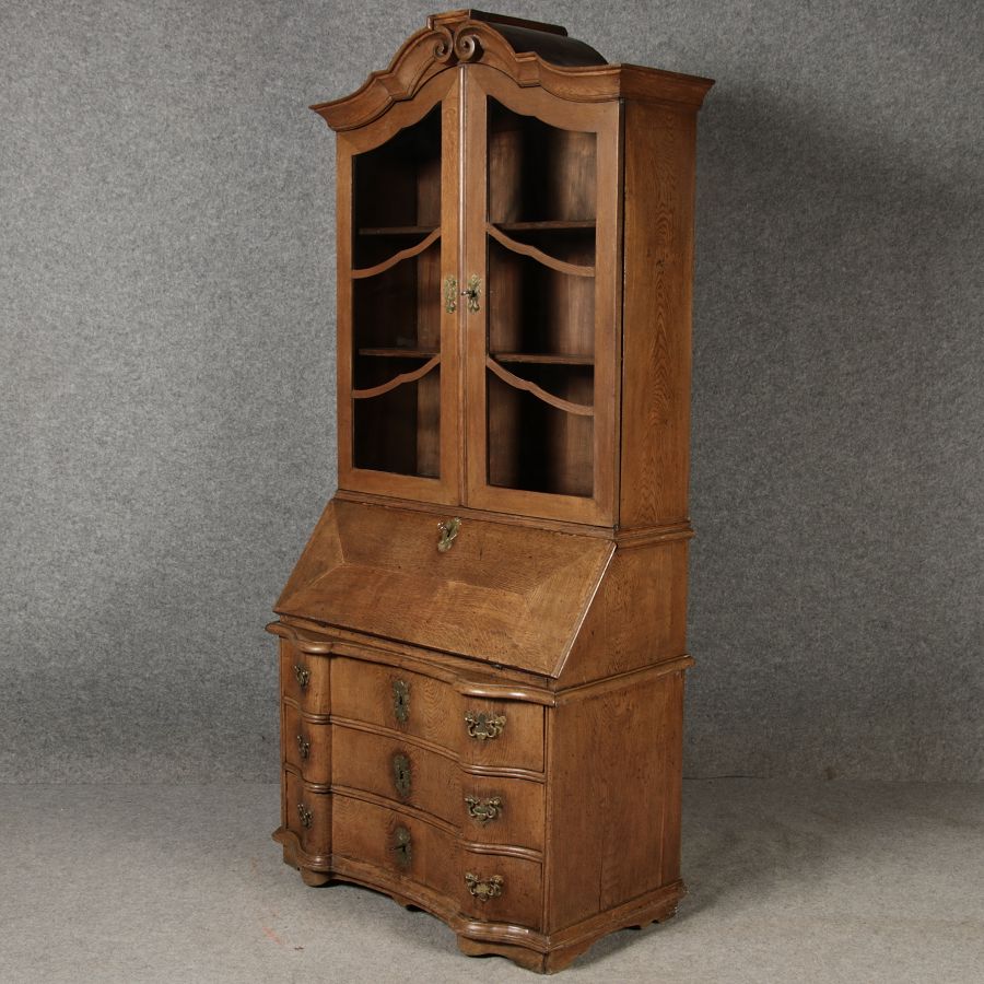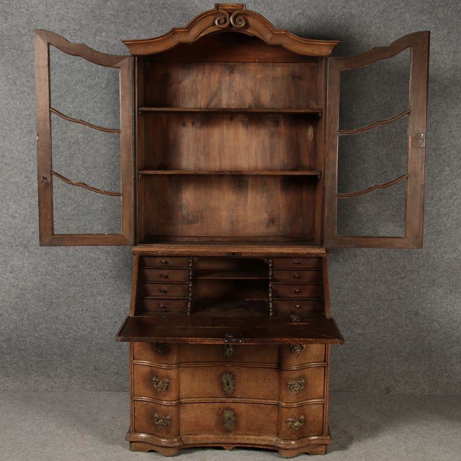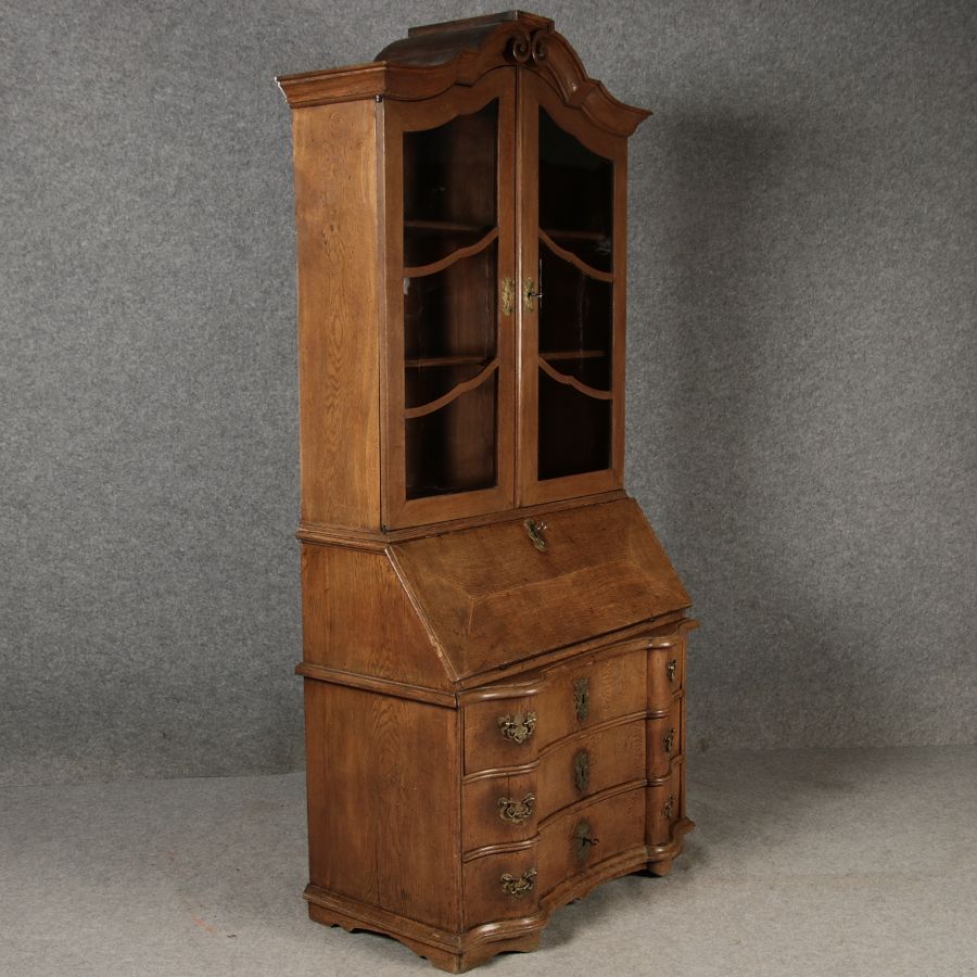 | Antiker Barock Sekretär Eichenholz 18 Jh. mit Vitrinen Oberteil | ||