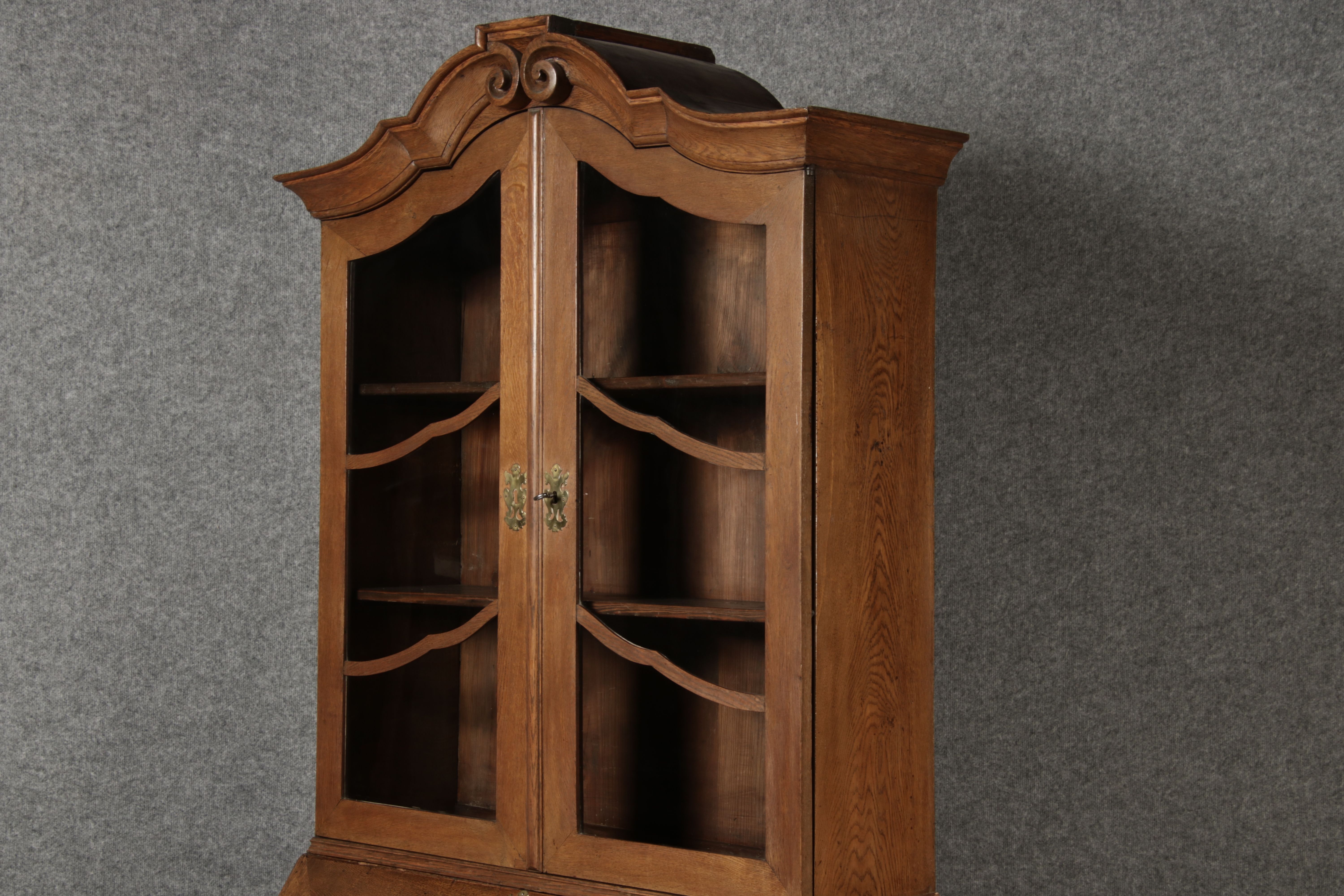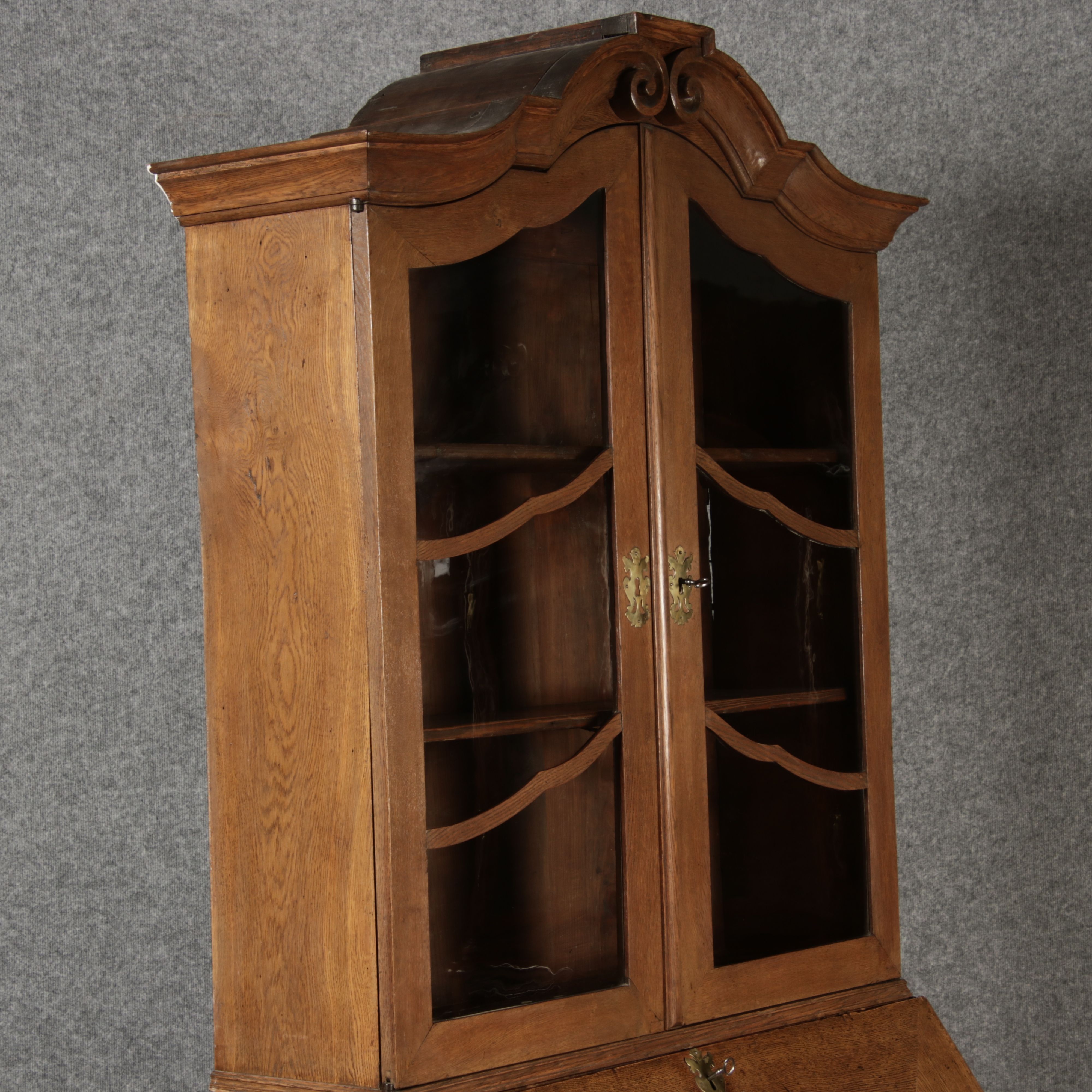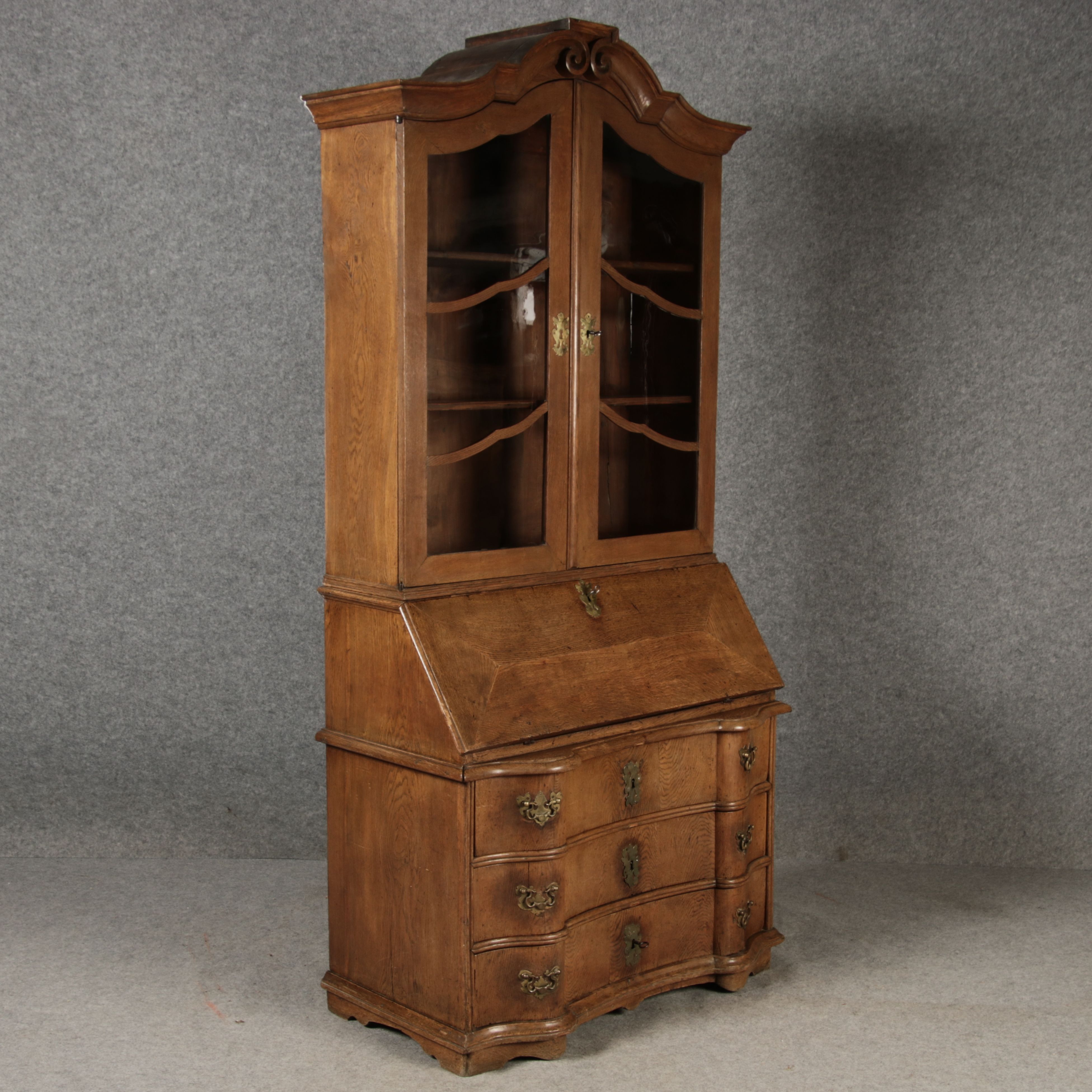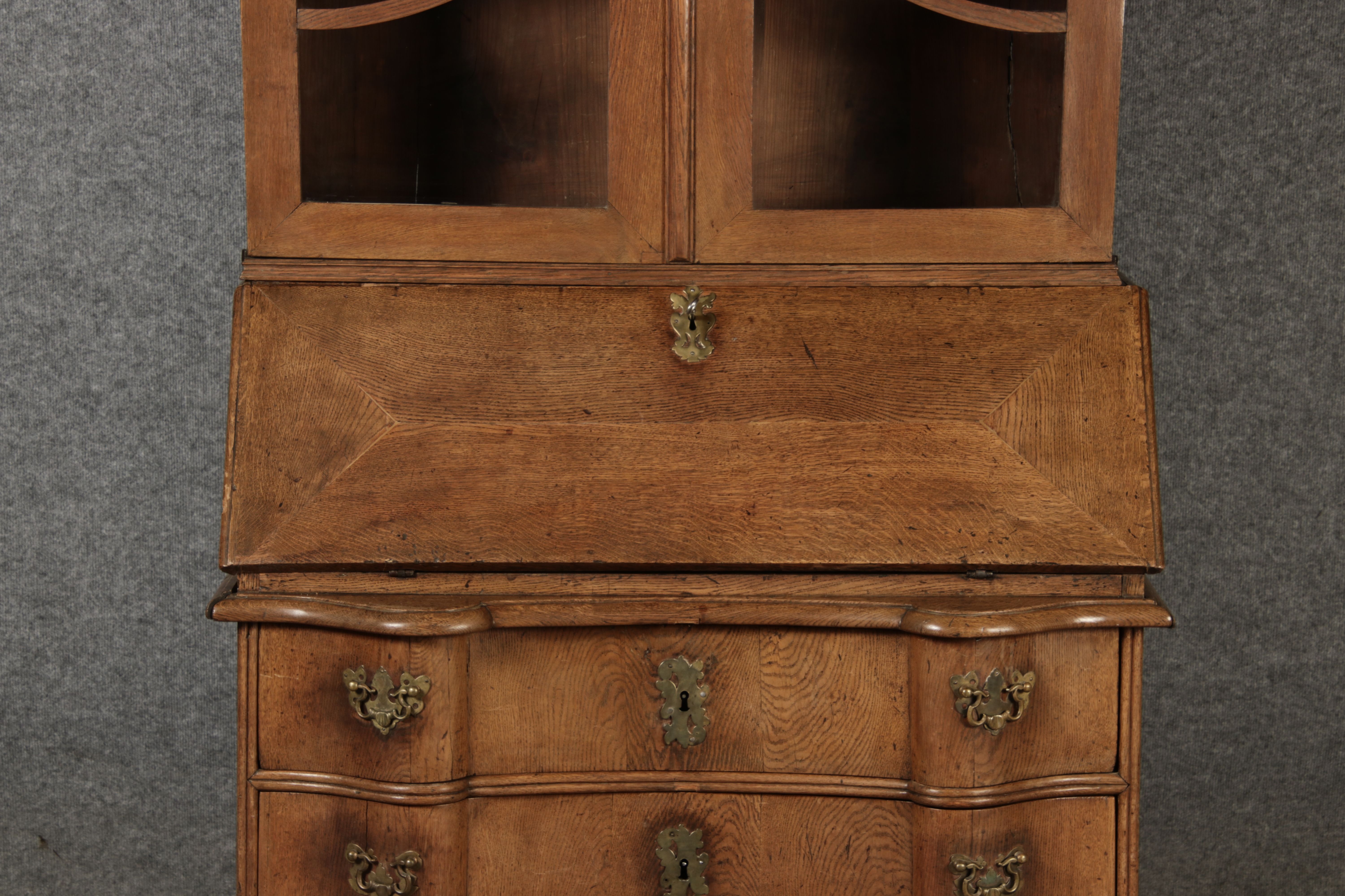 | Antiker Barock Sekretär Eichenholz 18 Jh. mit Vitrinen Oberteil | ||