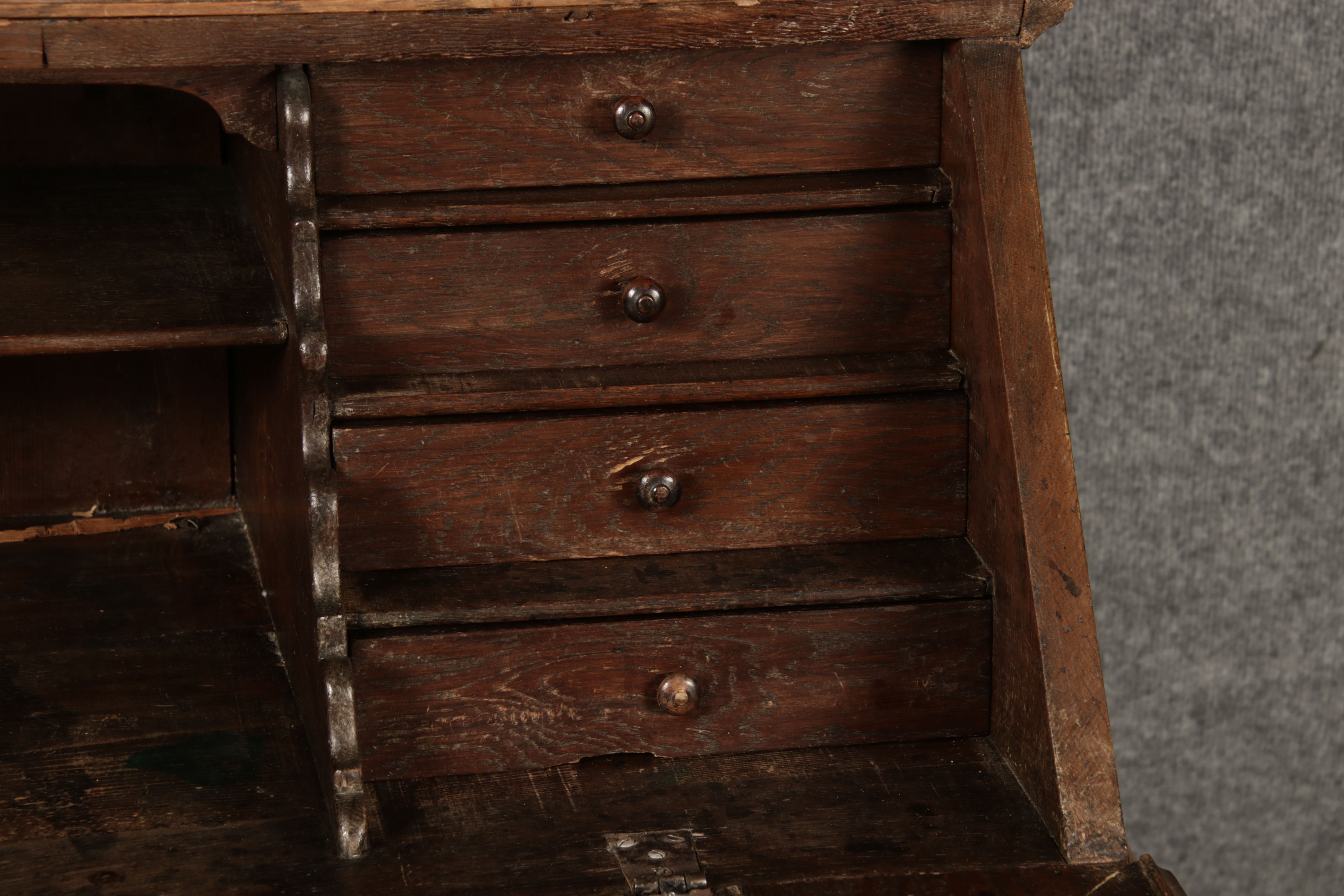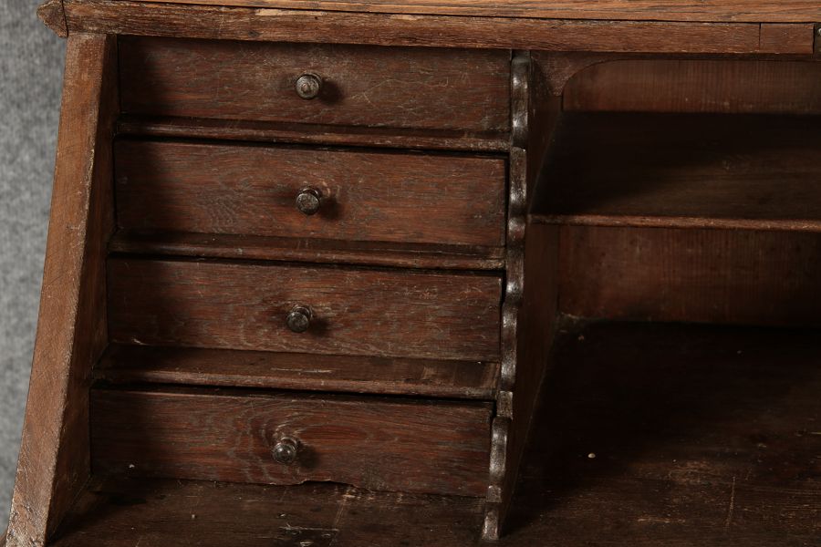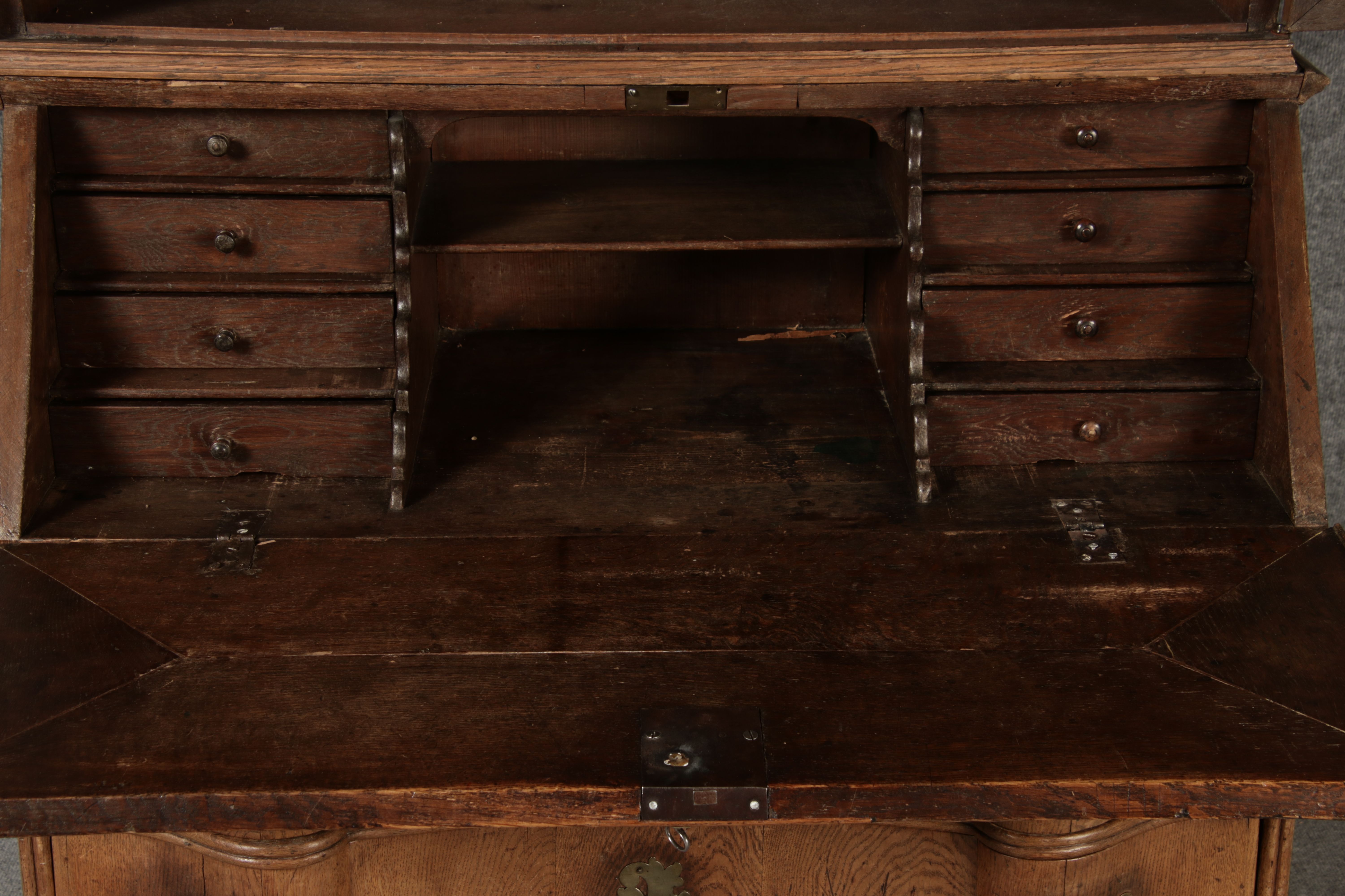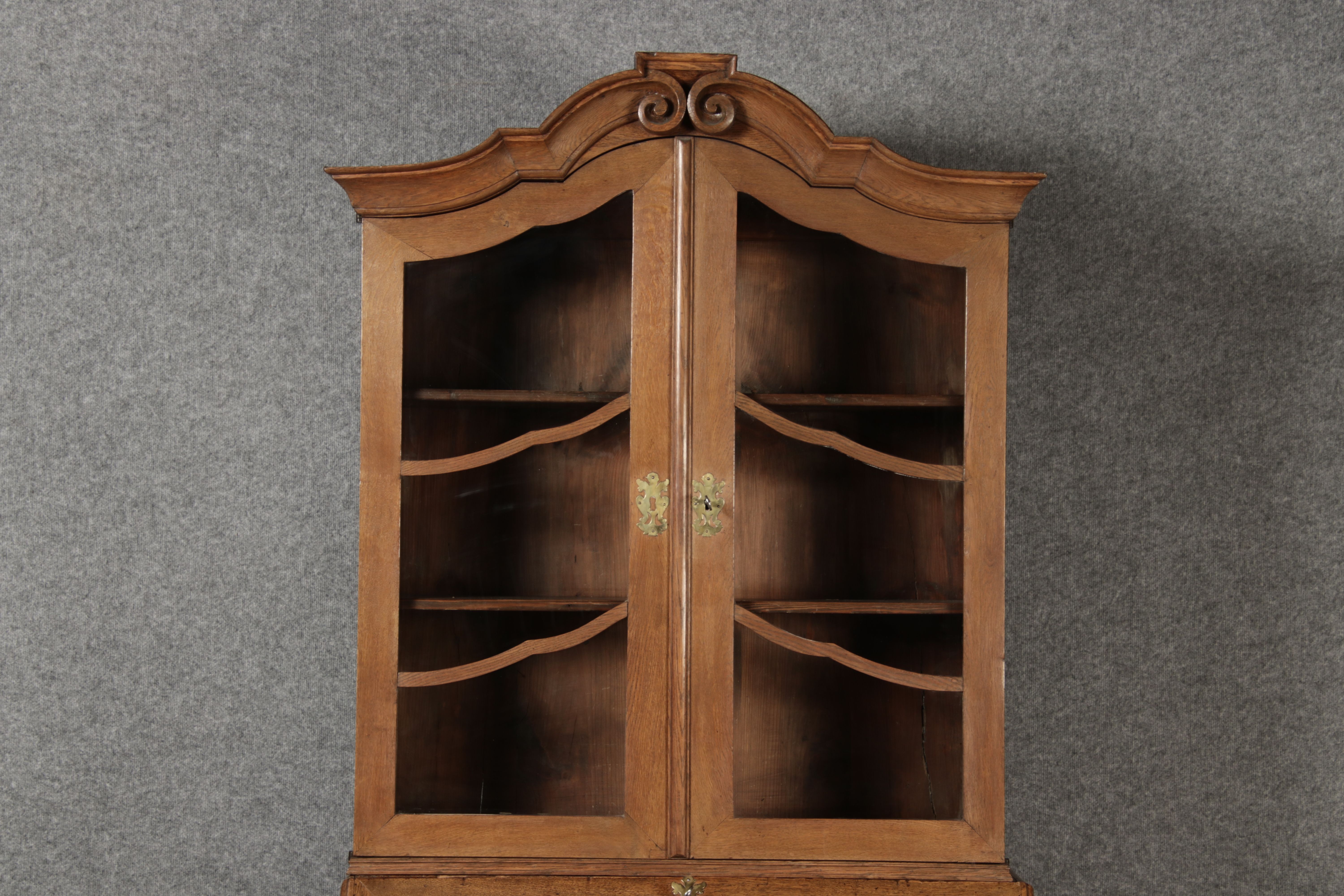 | Antiker Barock Sekretär Eichenholz 18 Jh. mit Vitrinen Oberteil | ||