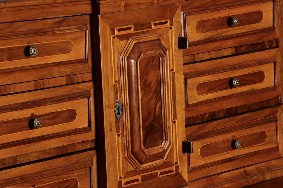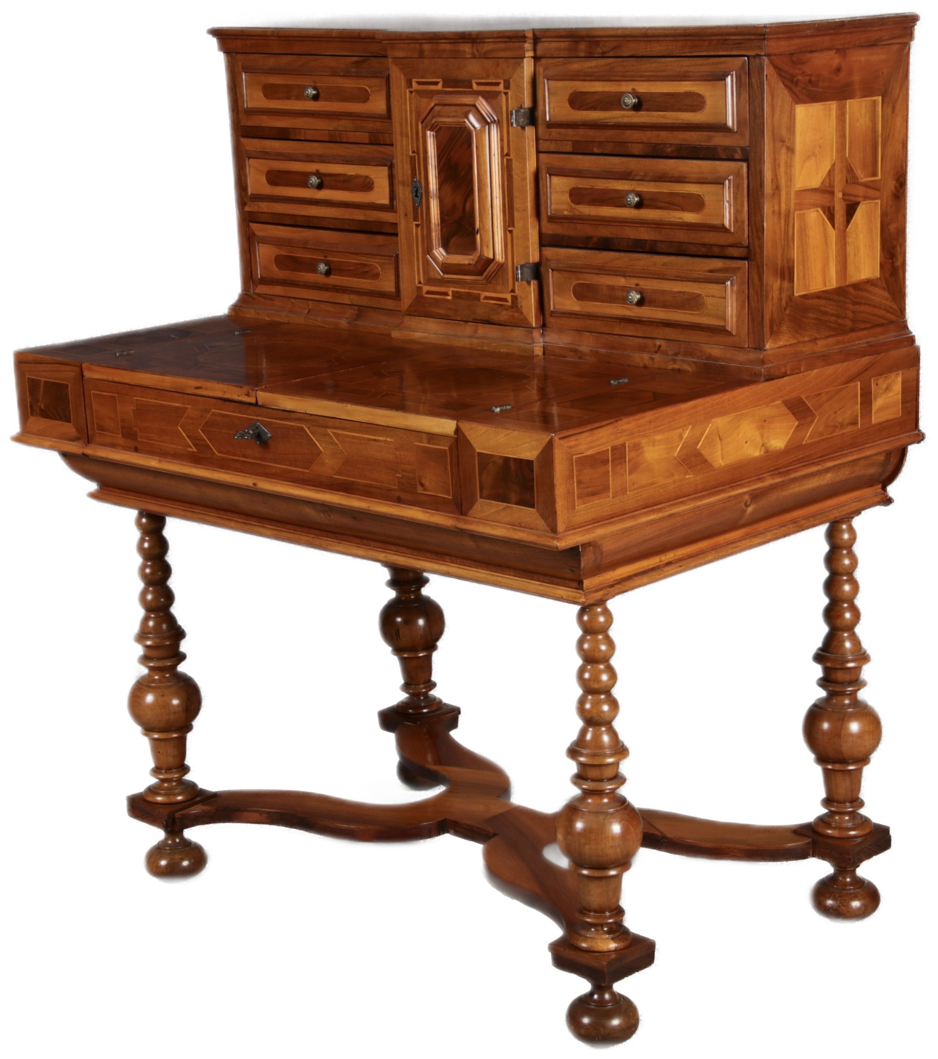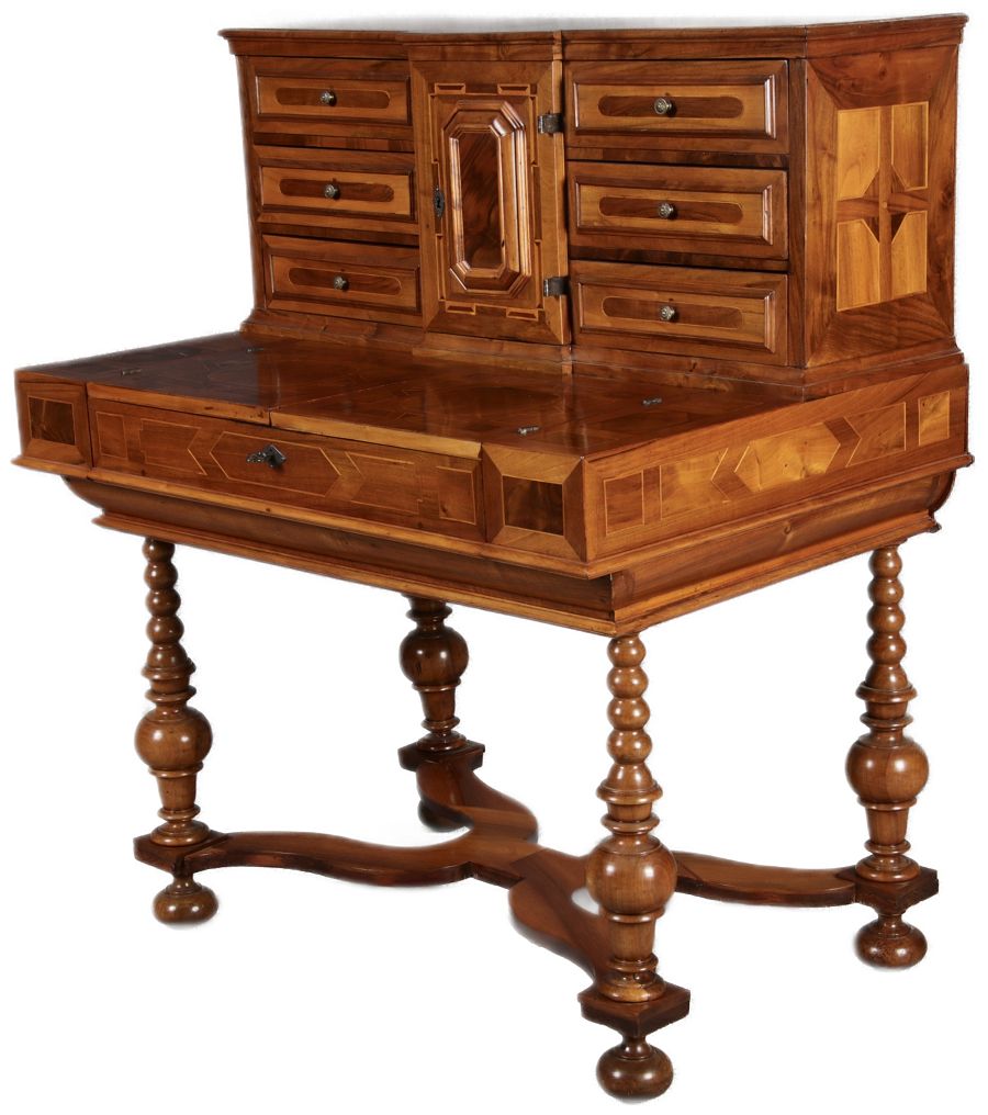 Konstruktion/construction: Der Sekretär besteht aus drei Teilen, Oberteil,Mittelteil und Unterteil.