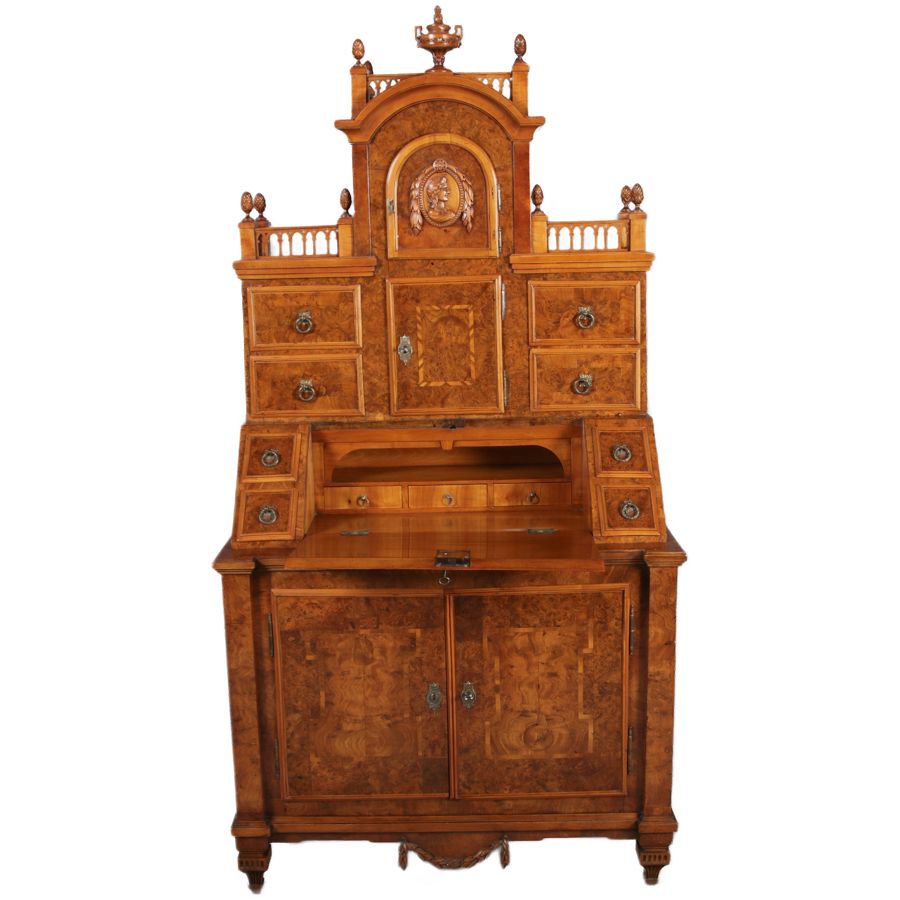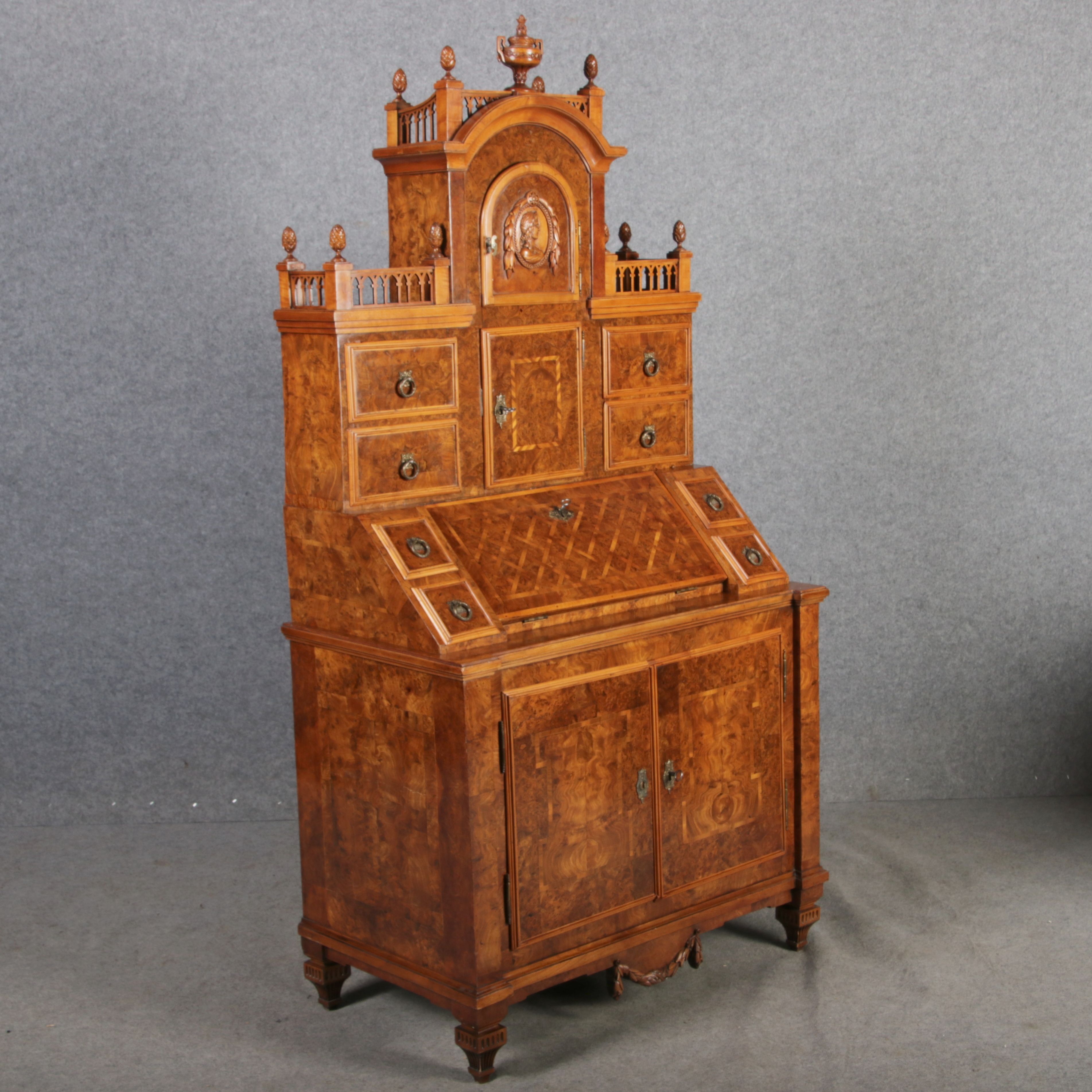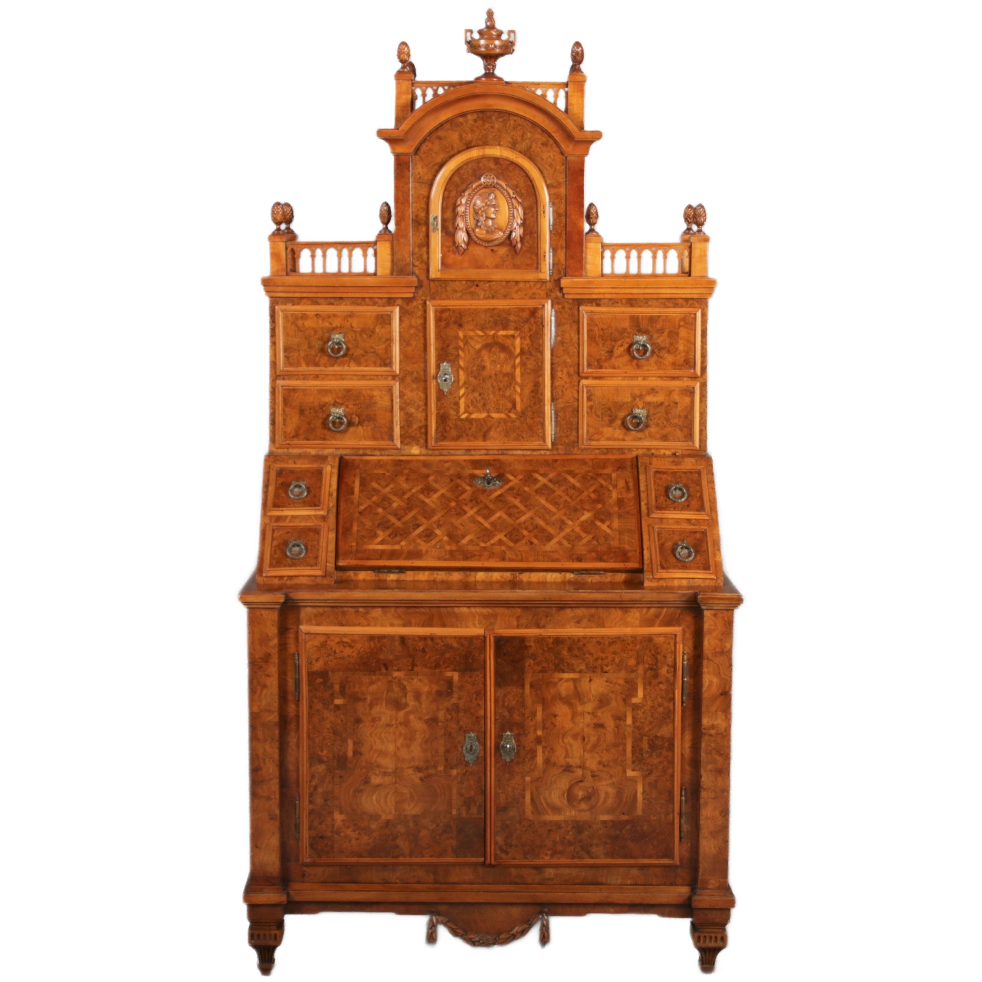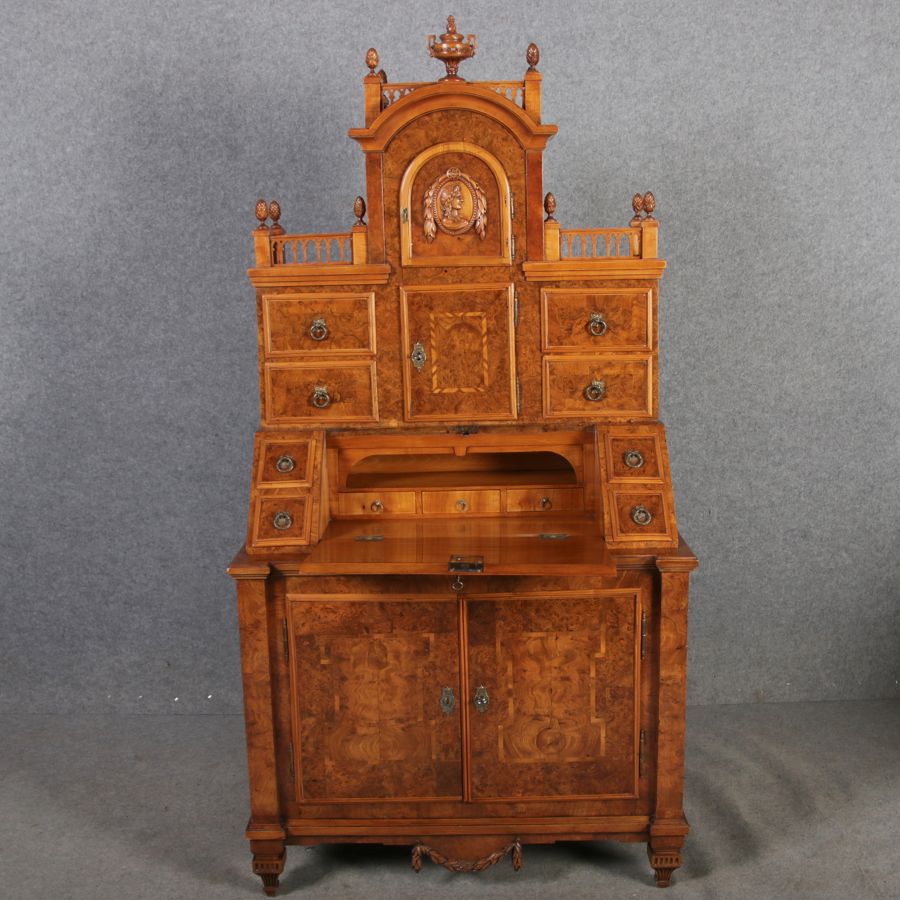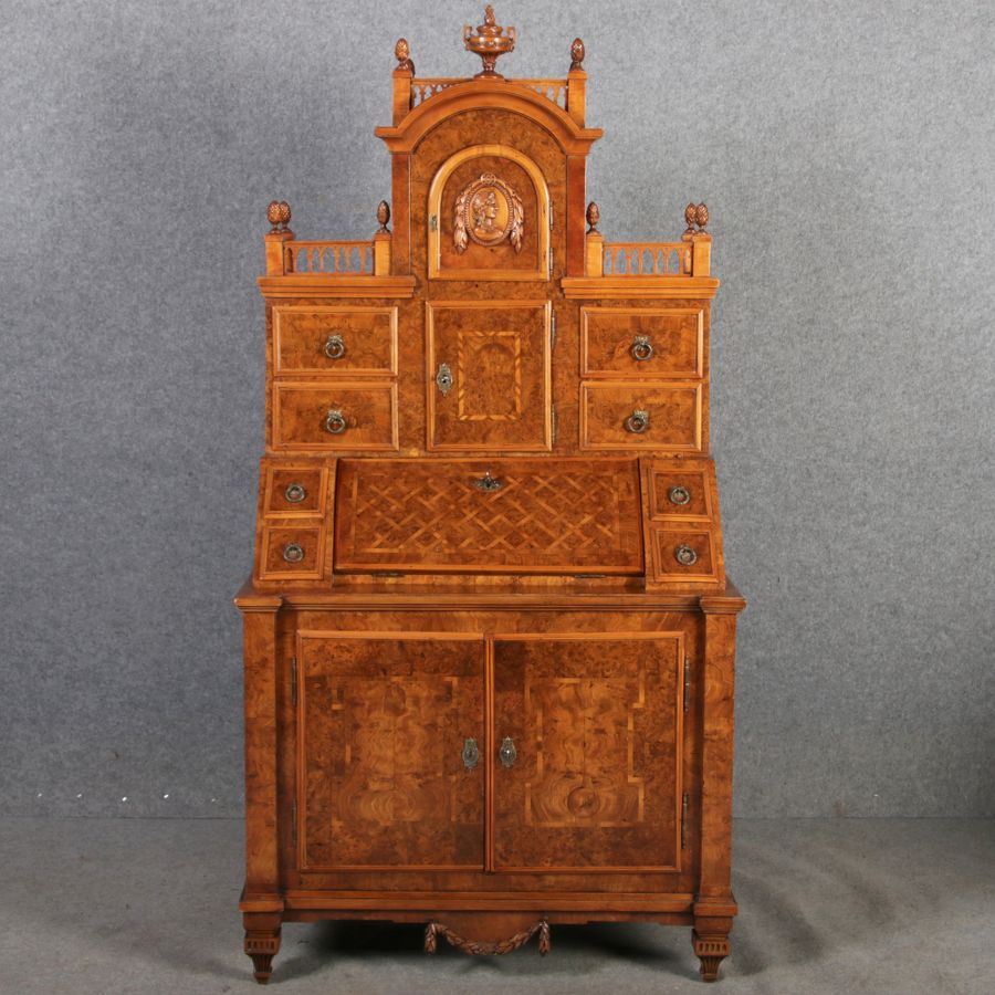 | Antiker Bedeutender Louis XVI-Sekretär Mainz, Meister Johann Michael Leistler 1786 Nussbaum | ||