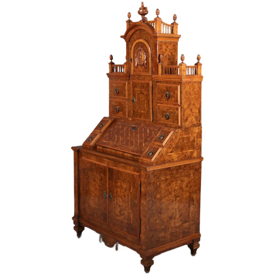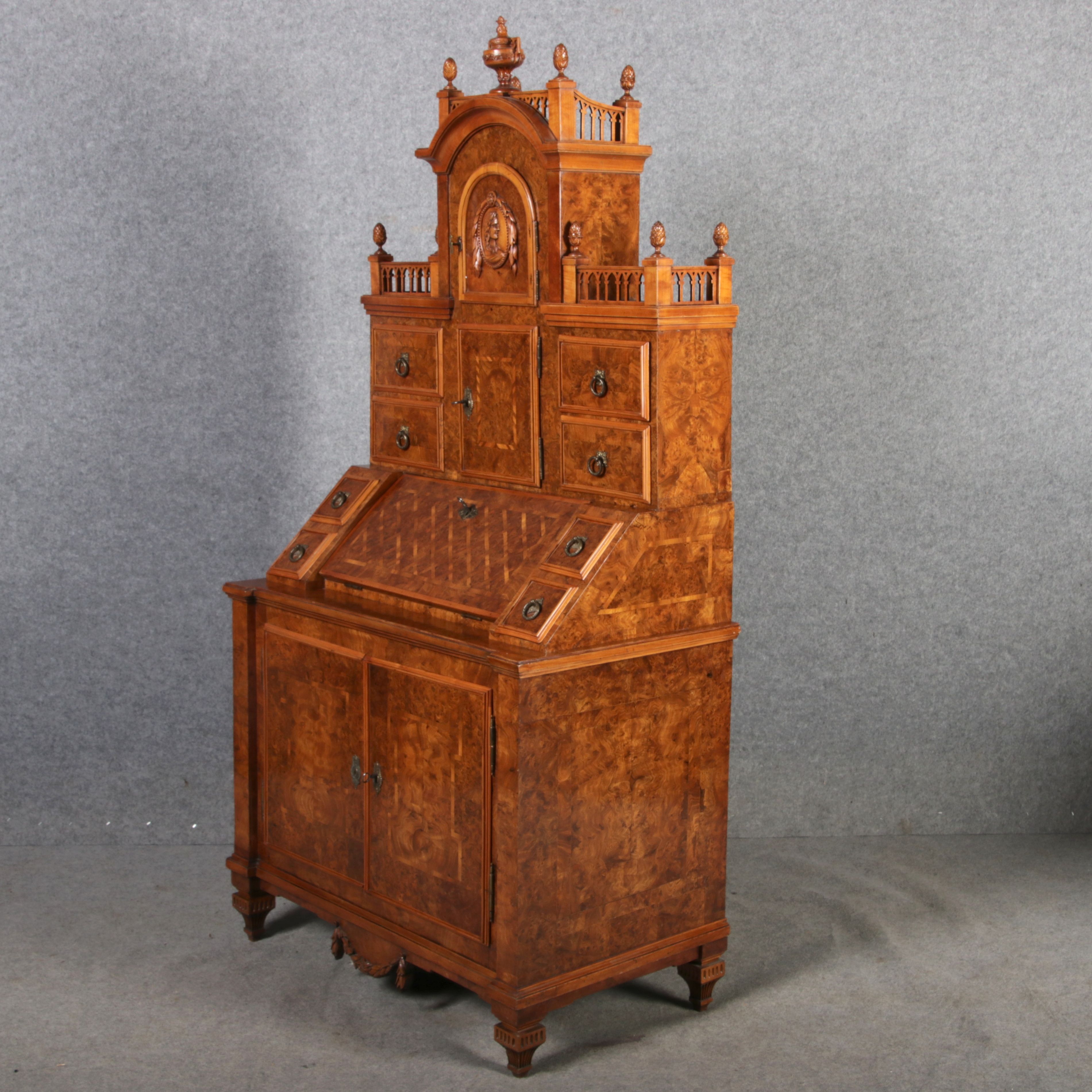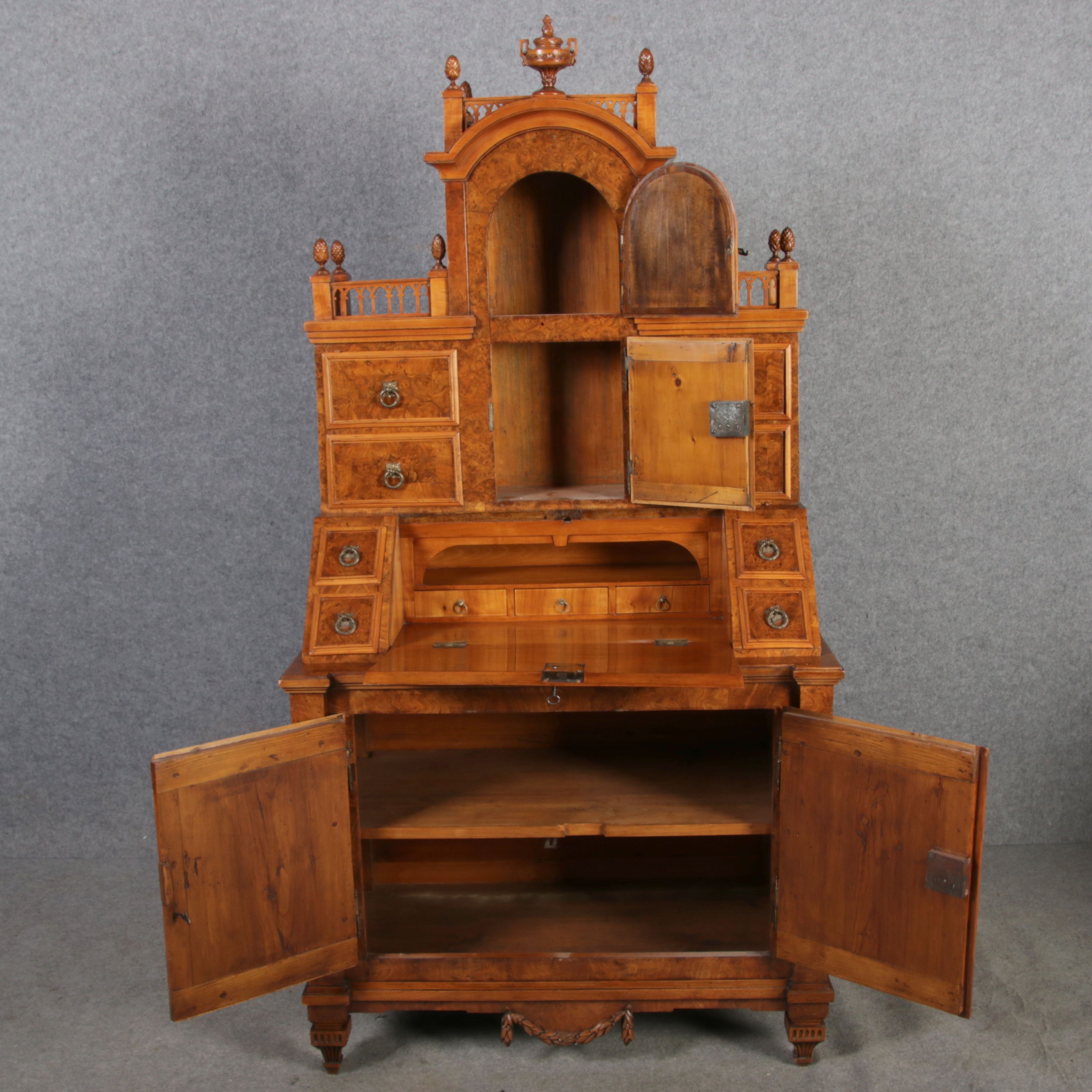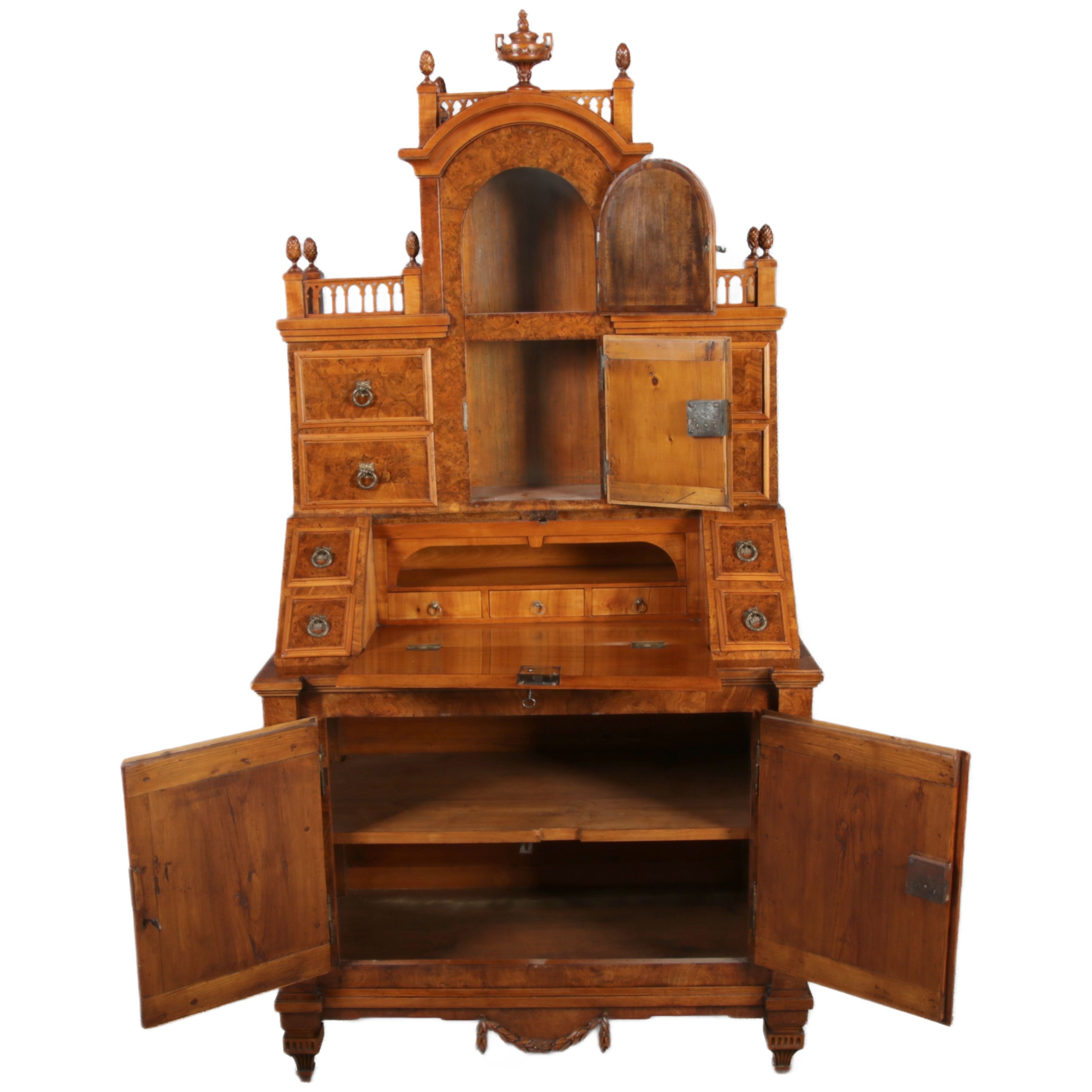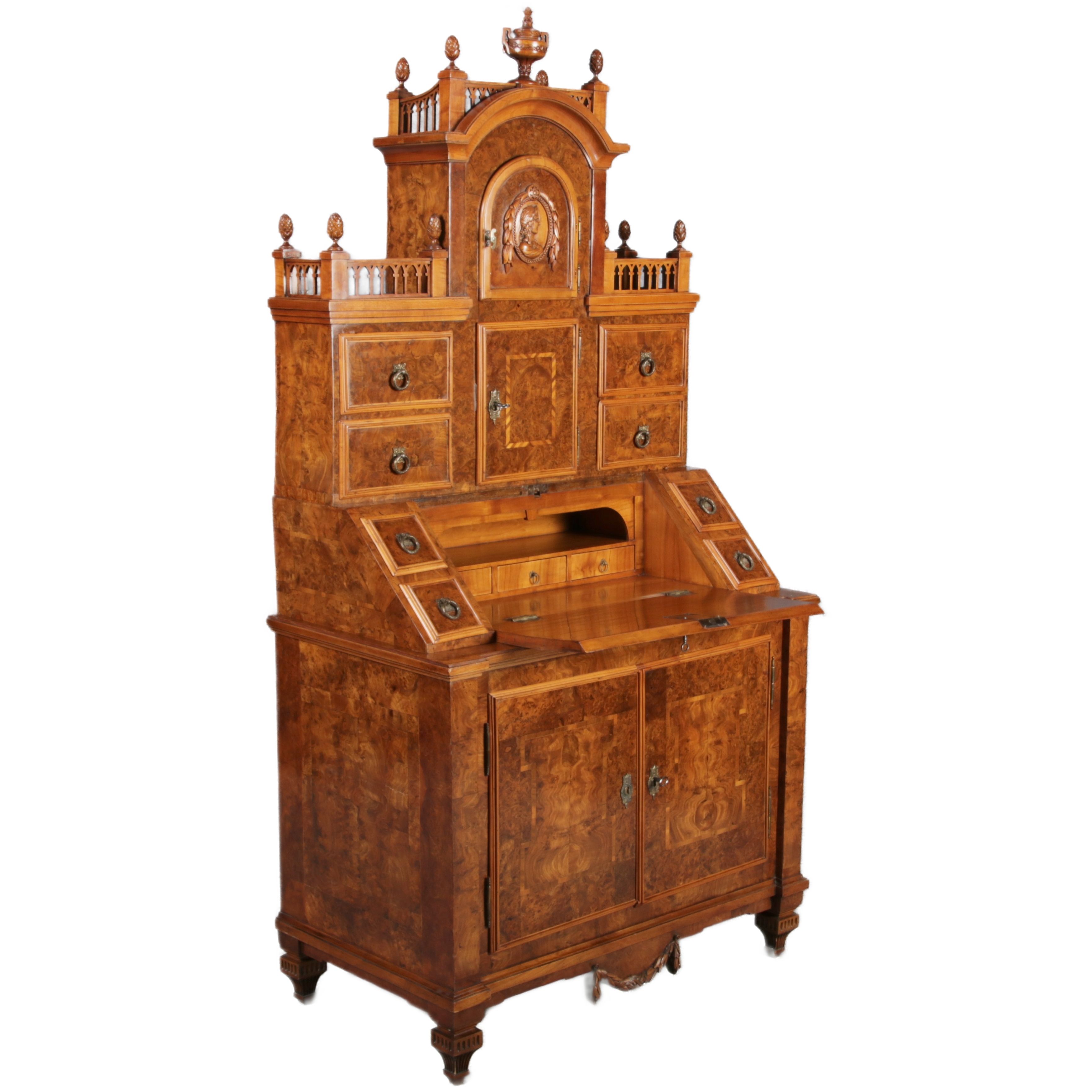 | Antiker Bedeutender Louis XVI-Sekretär Mainz, Meister Johann Michael Leistler 1786 Nussbaum | ||