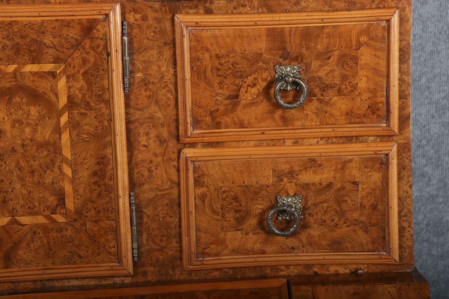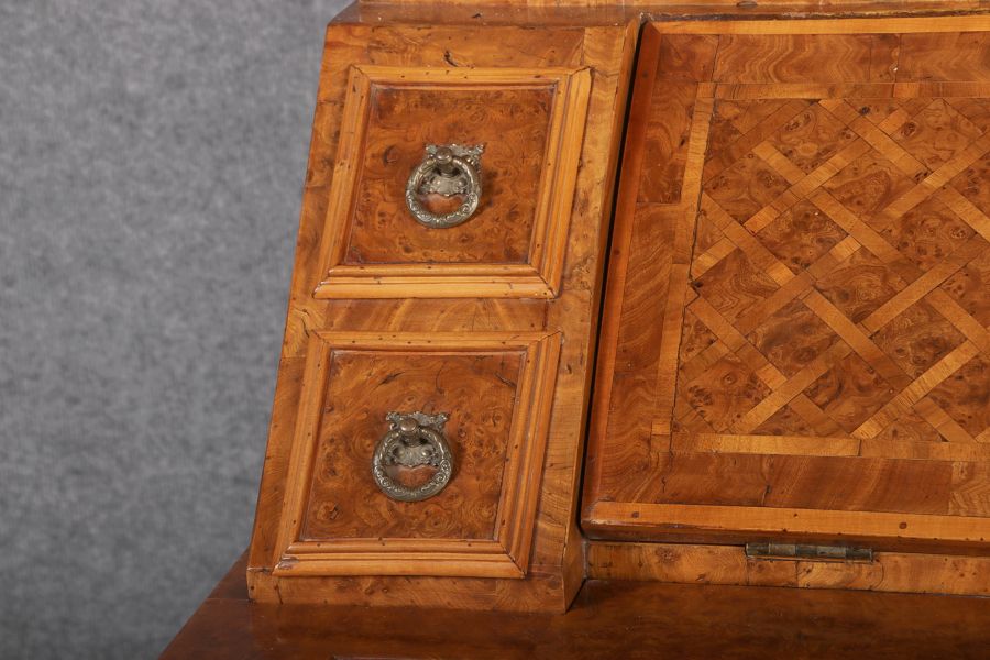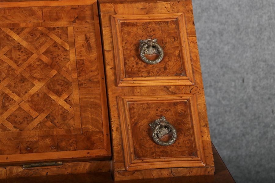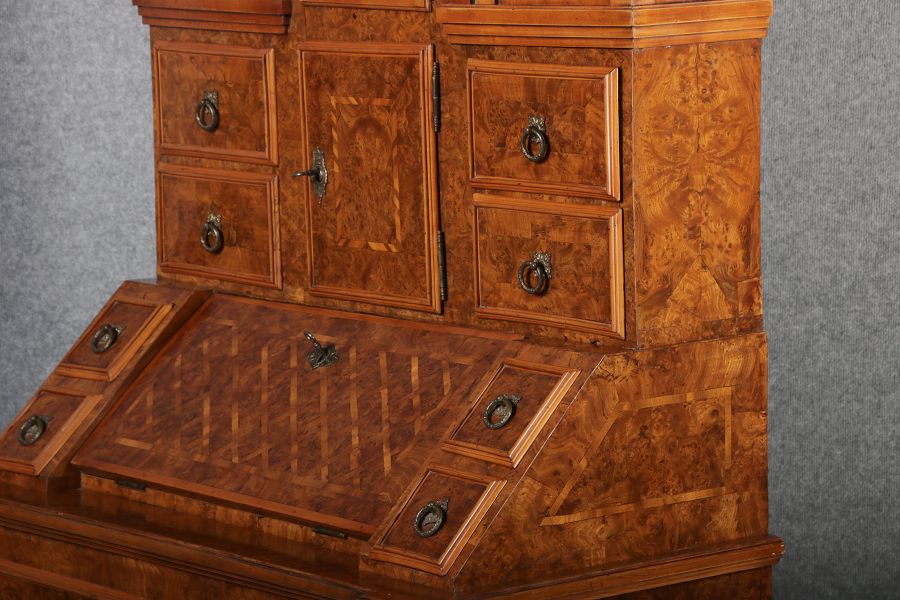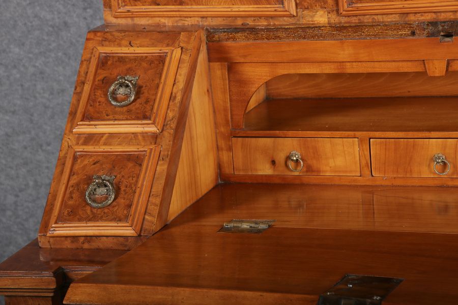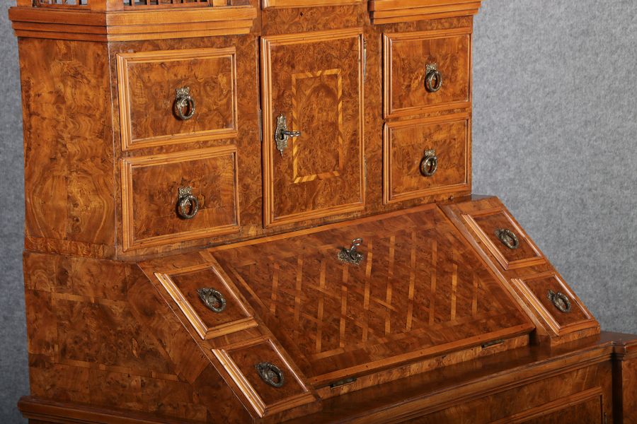 Konstruktion/construction: Der Sekretär besteht aus drei Teilen, Oberteil, Mittelteil und Unterteil.