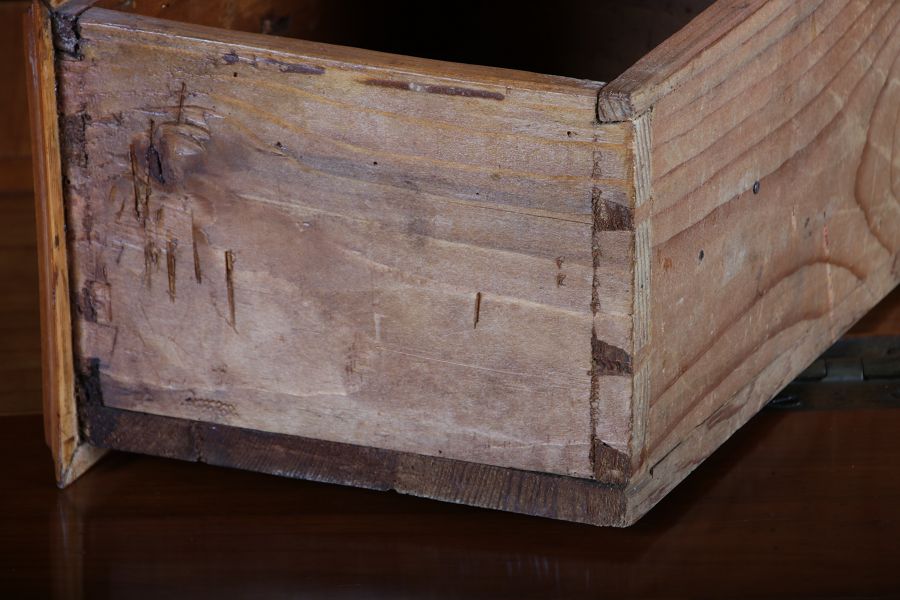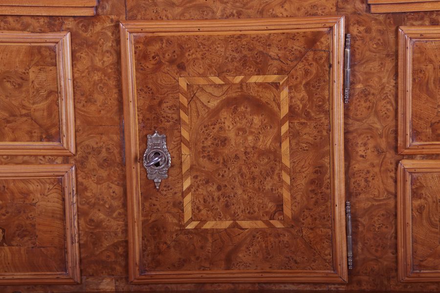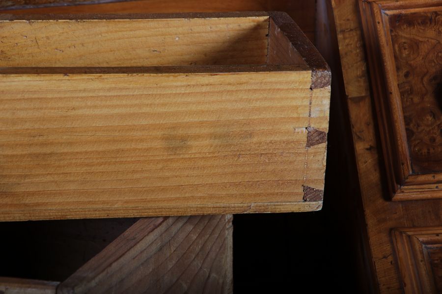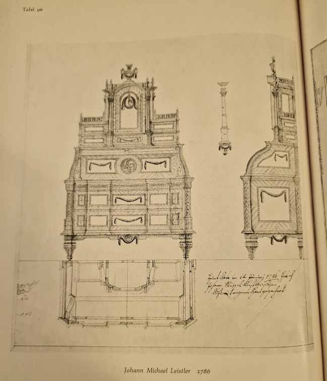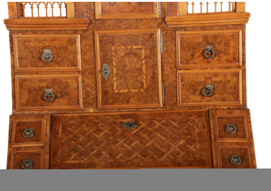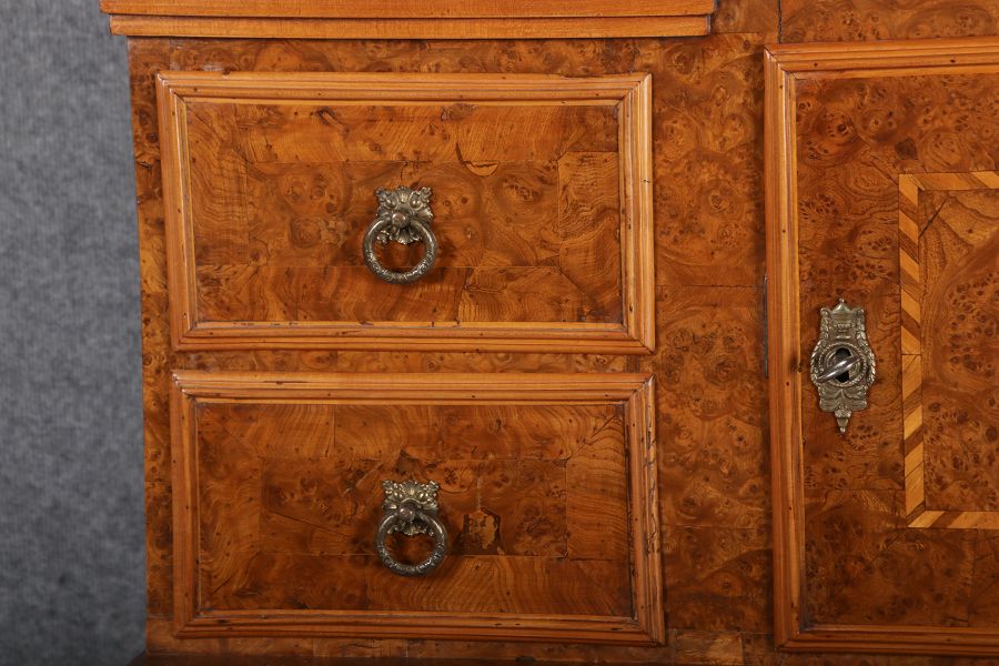 Konstruktion/construction: Der Sekretär besteht aus drei Teilen, Oberteil, Mittelteil und Unterteil.