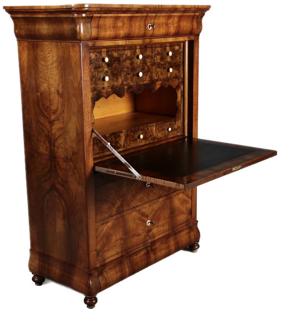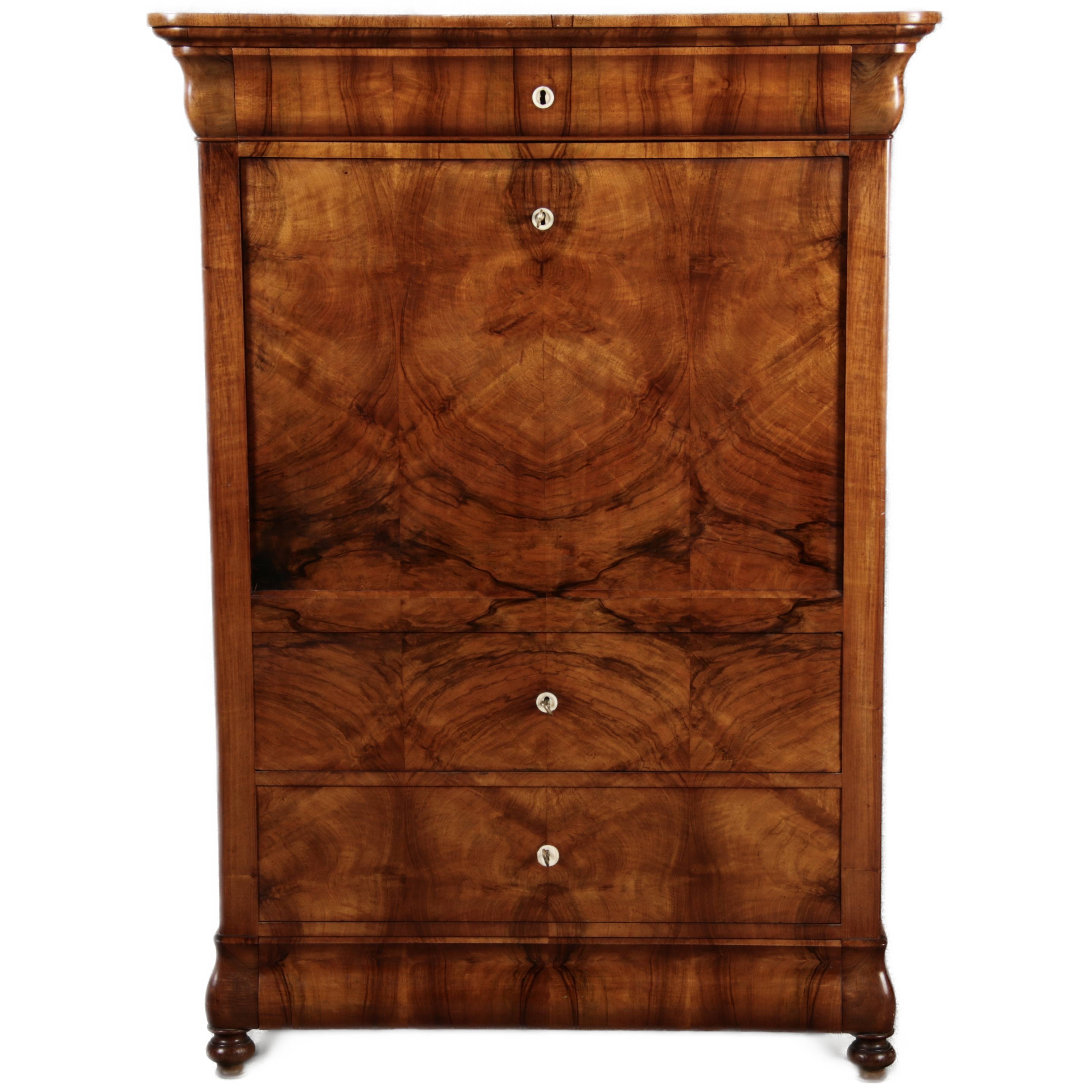 | Antiker Biedermeier- Louis Phillipe Sekretär Nussbaum um 1850 | ||
