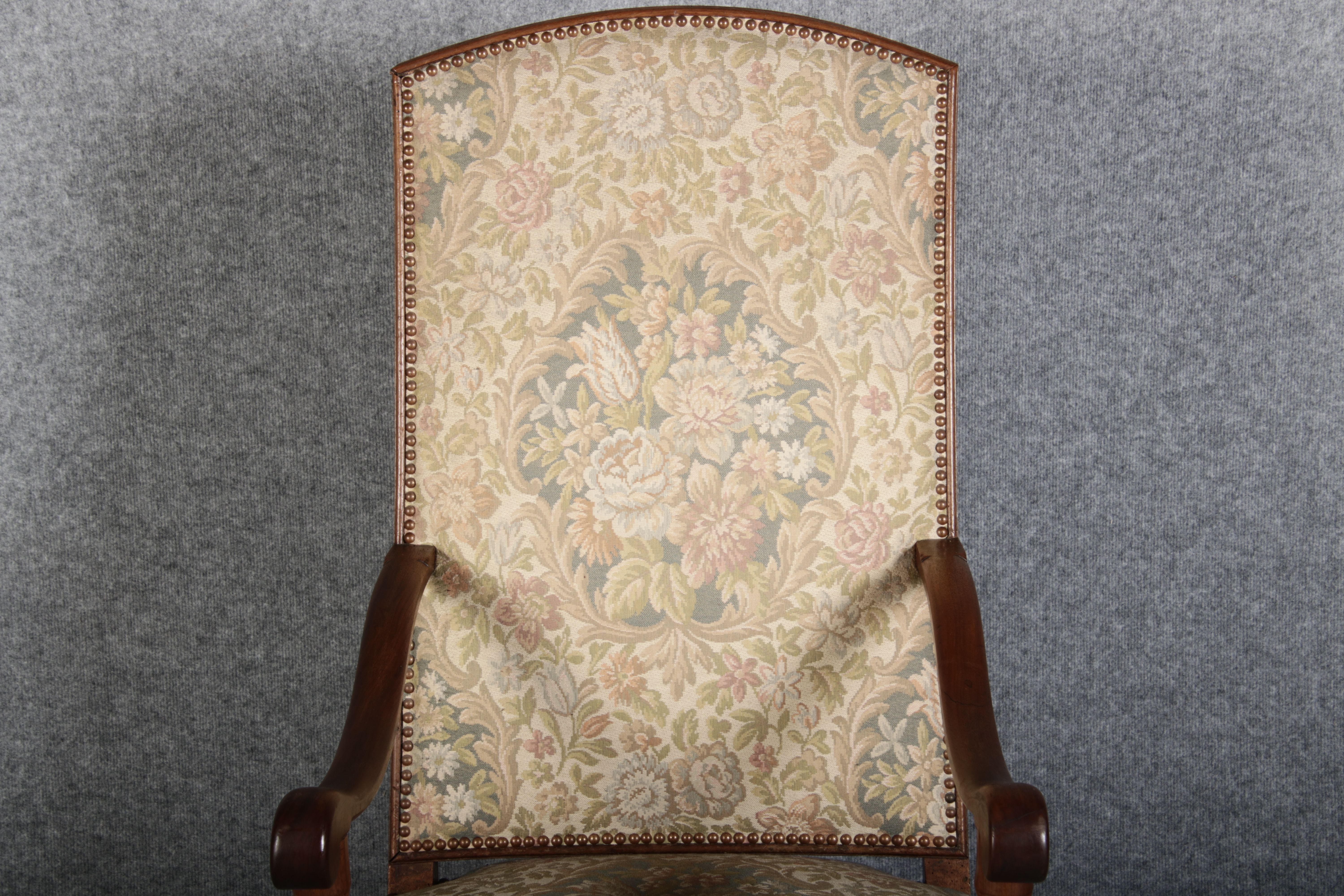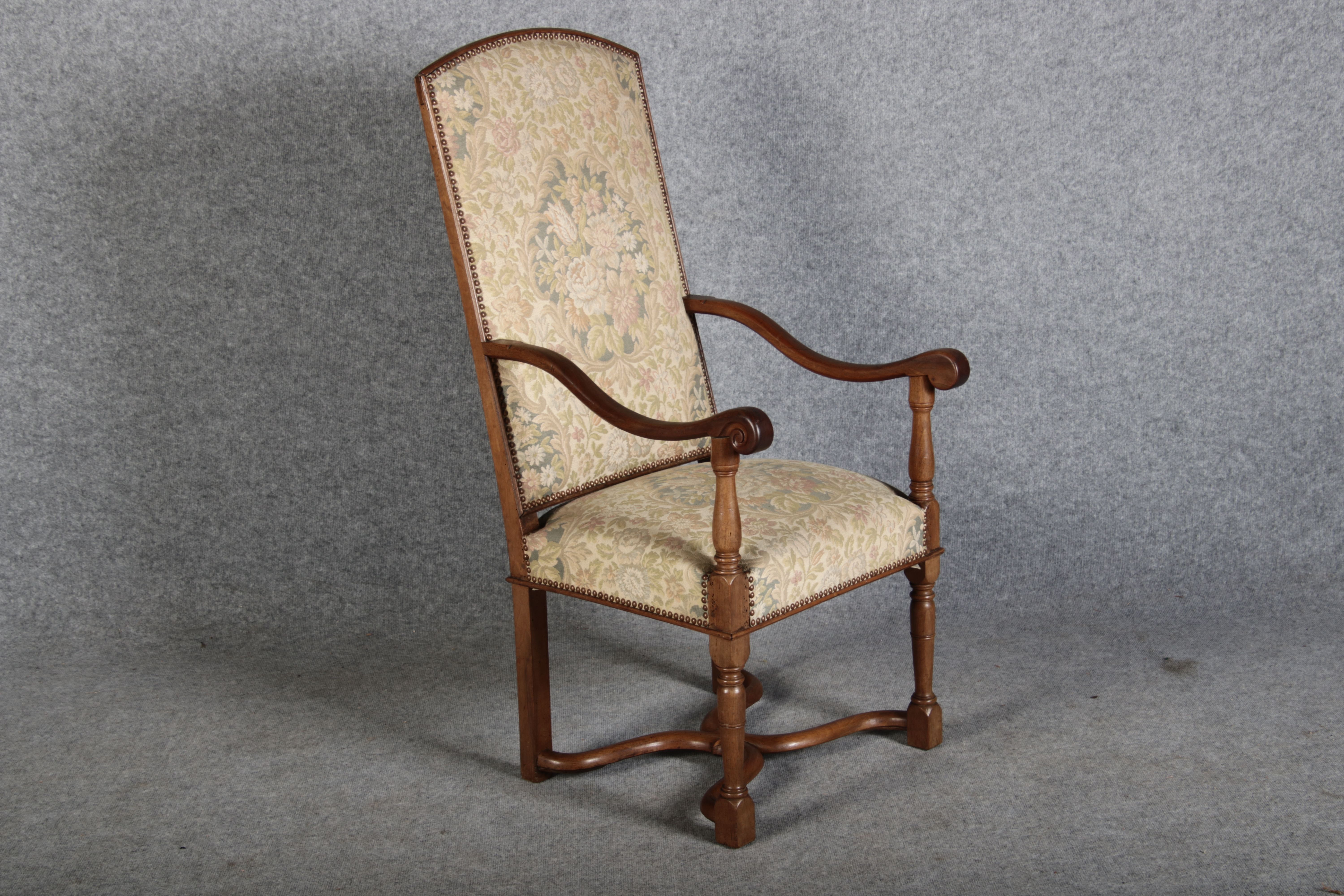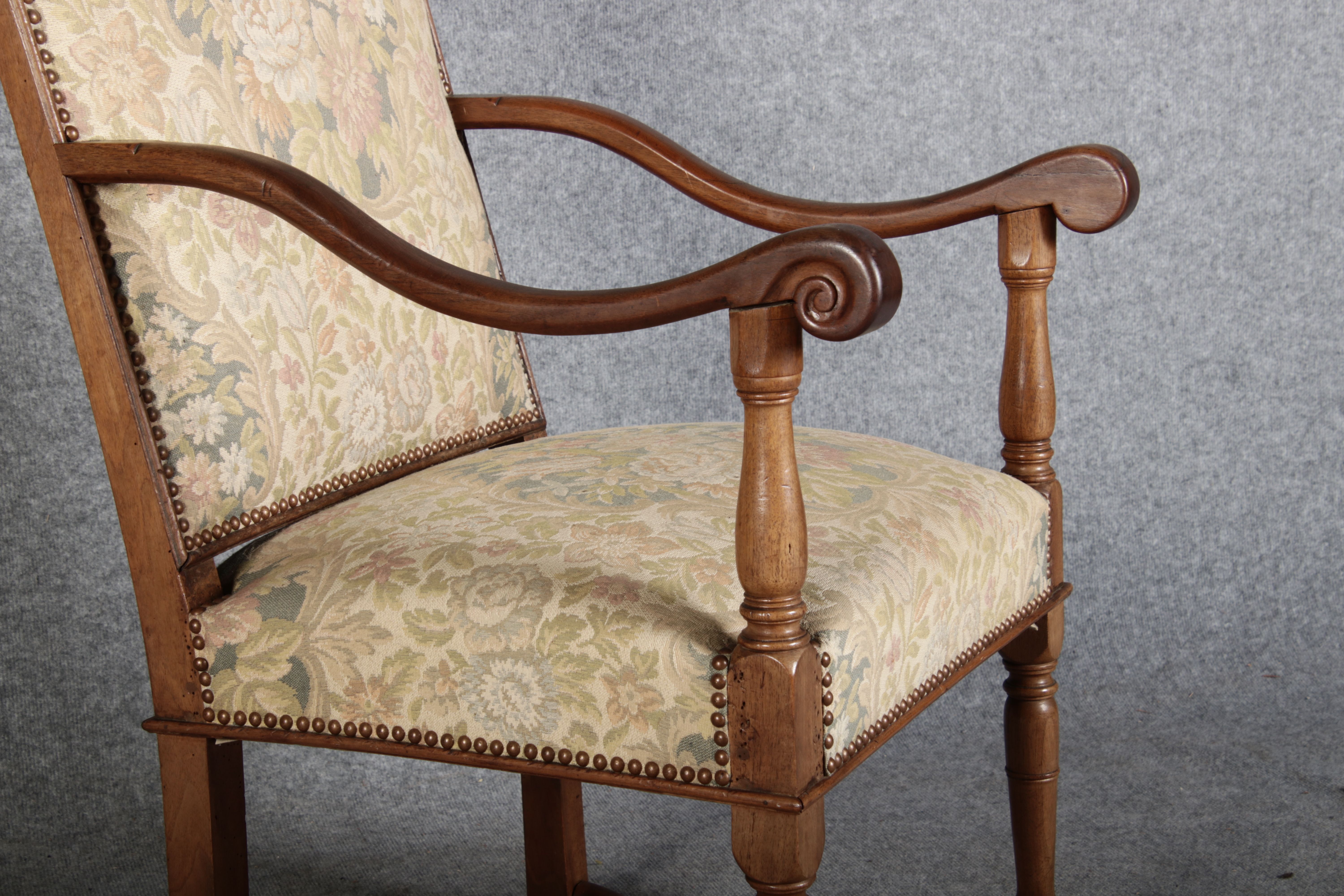Antike Sessel Sessel mit floralen Bezug um 1900 Nussbaum |