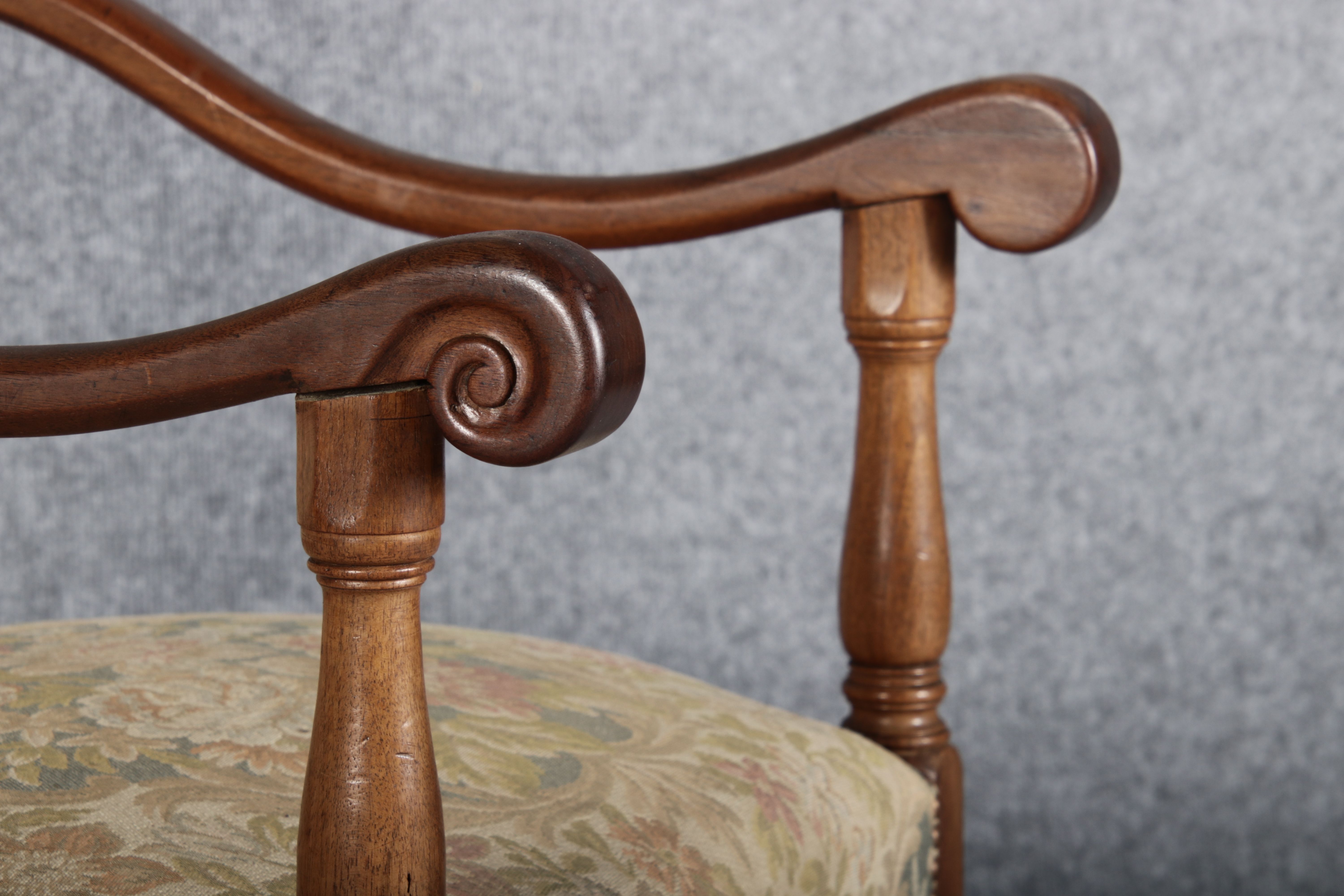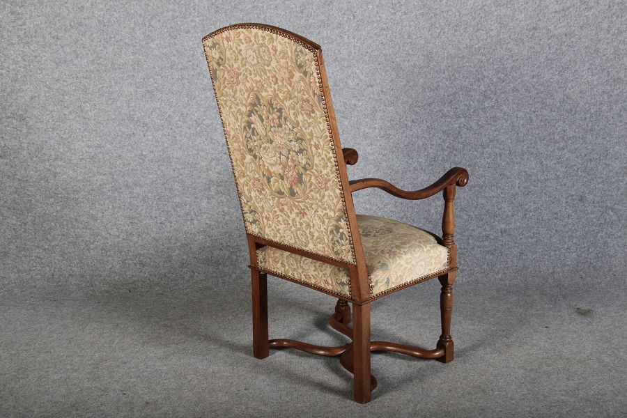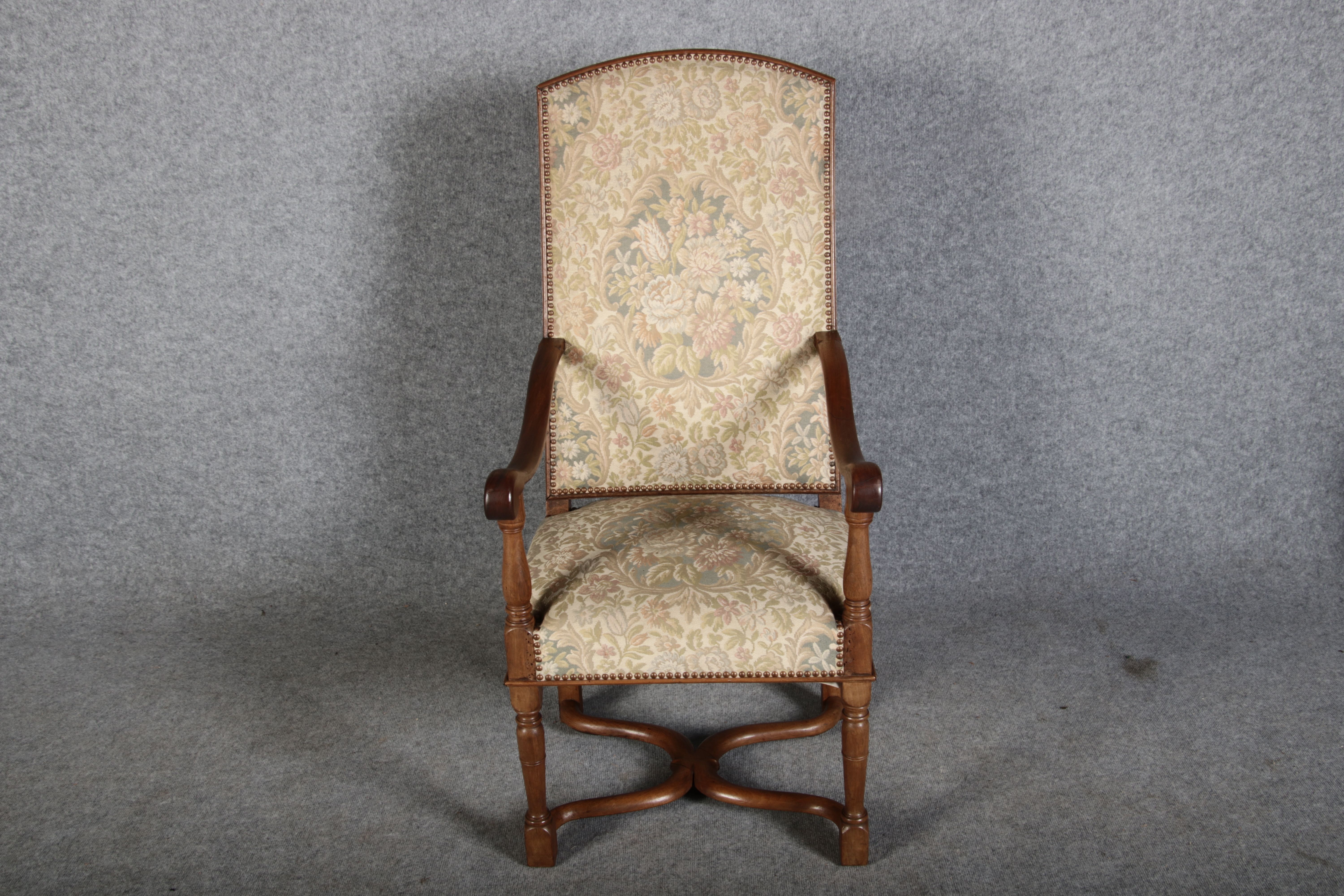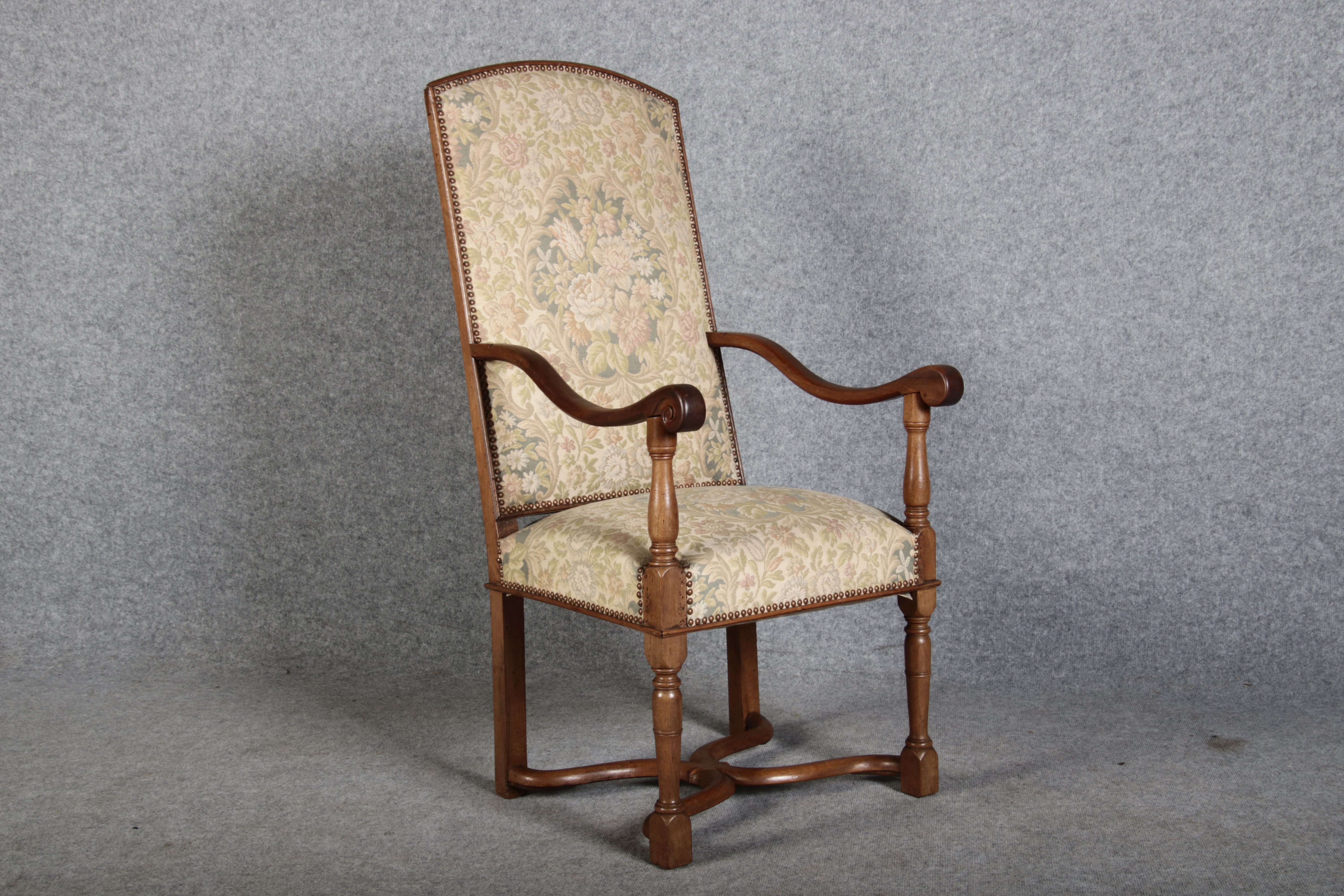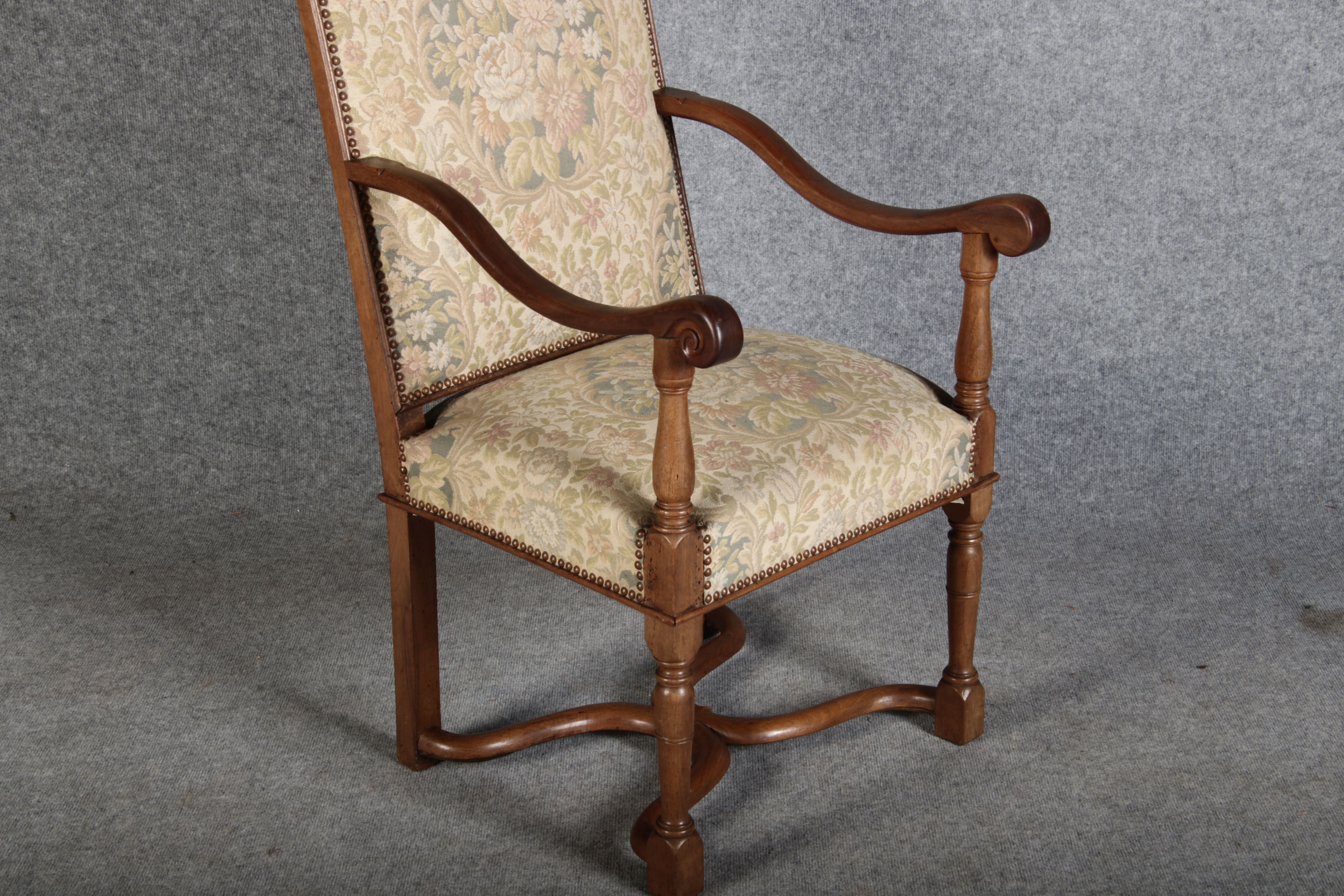 Antike Sessel Sessel mit floralen Bezug um 1900 Nussbaum |