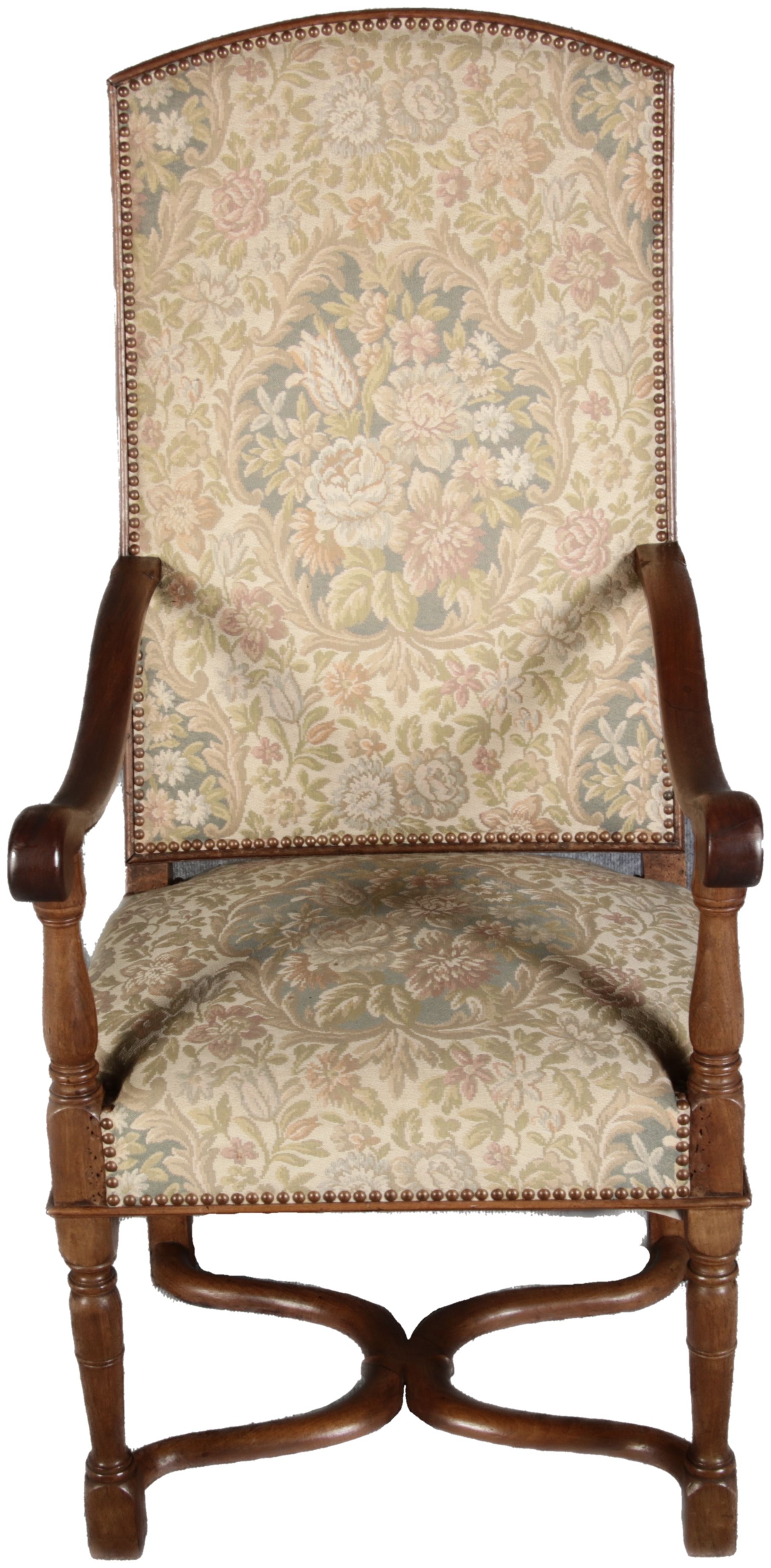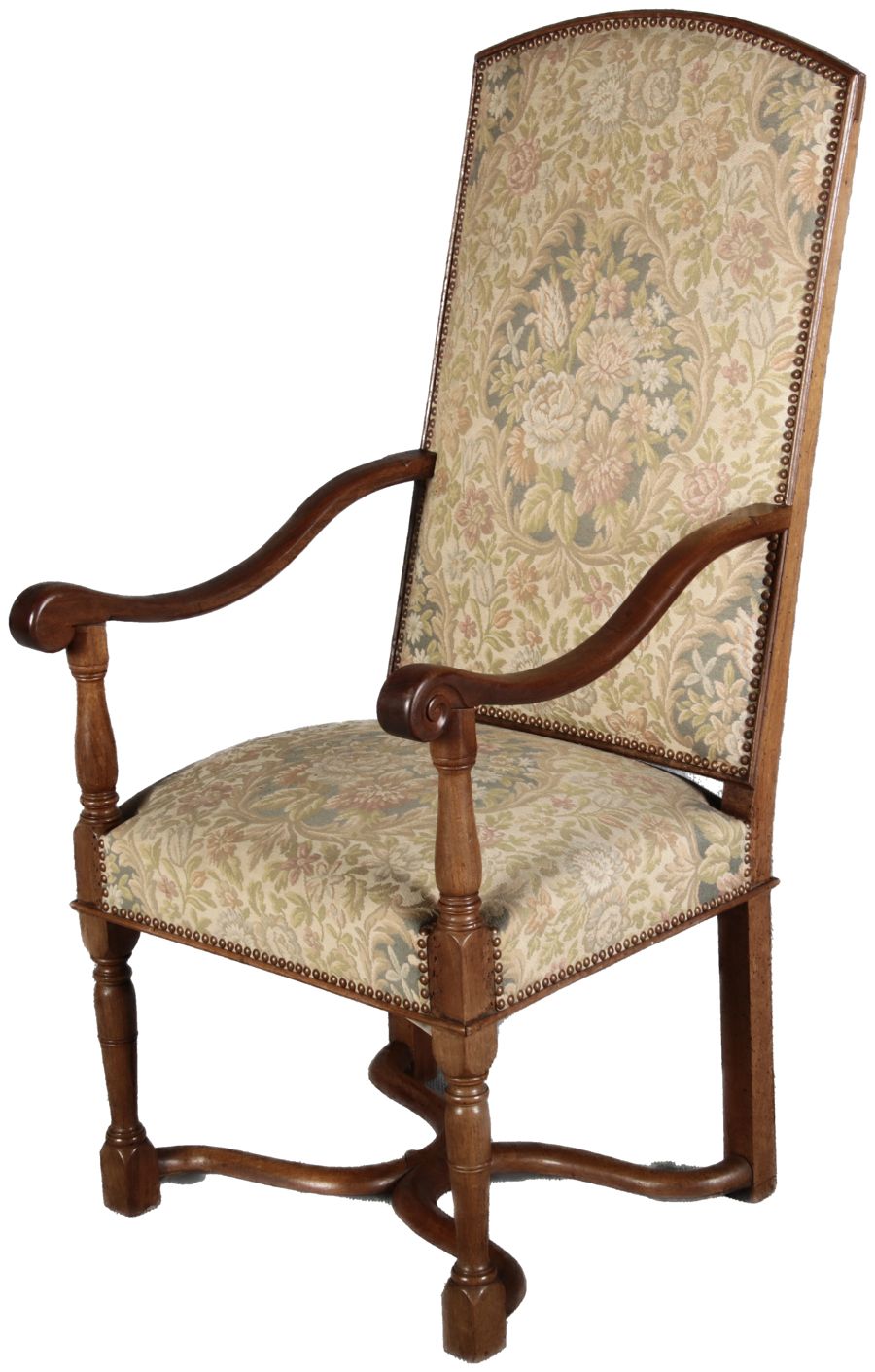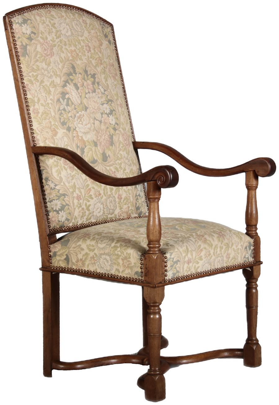 Antike Sessel Sessel mit floralen Bezug um 1900 Nussbaum |