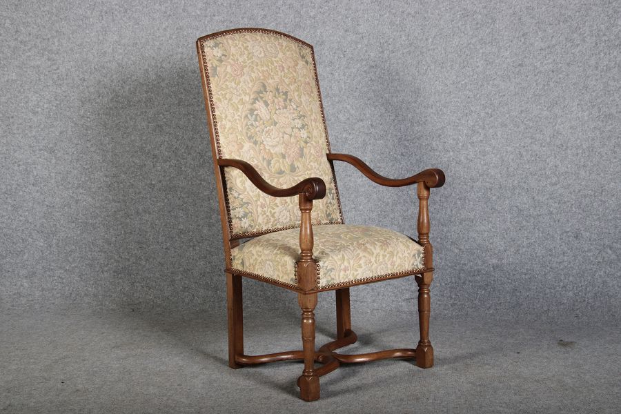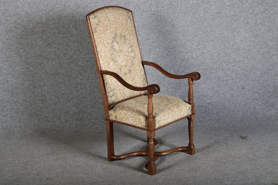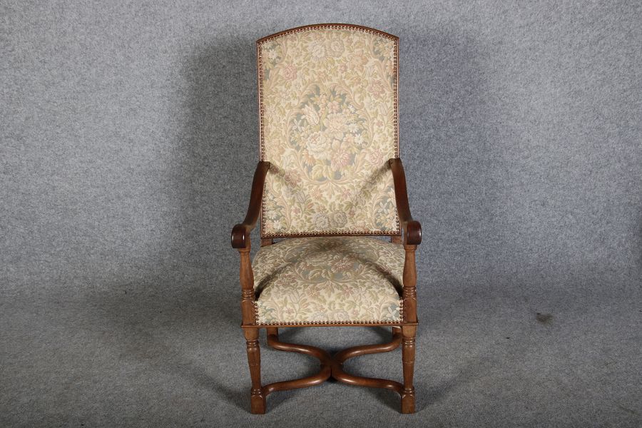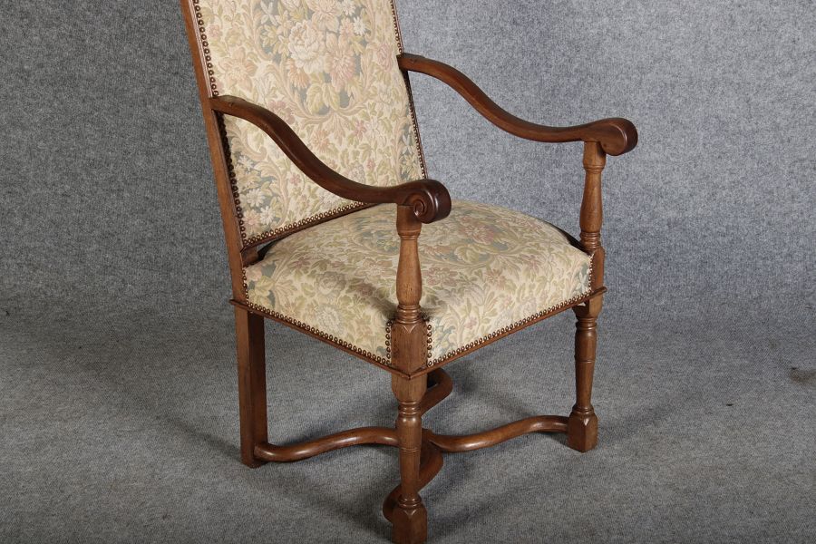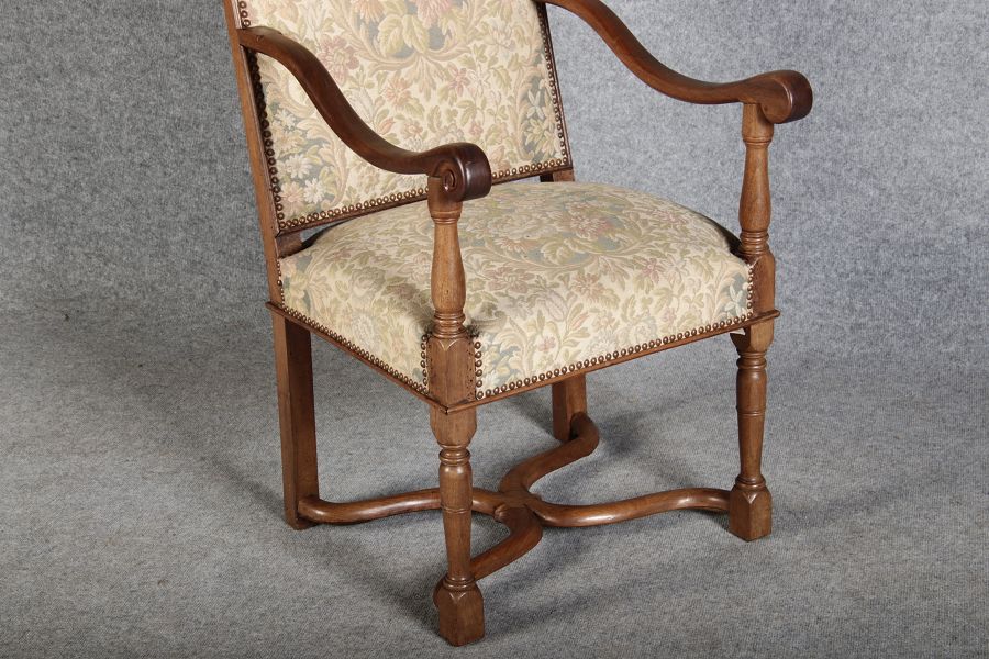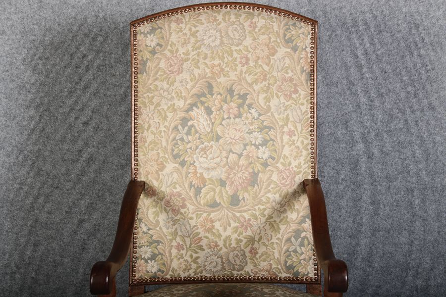 | Antike Sessel Sessel mit floralen Bezug um 1900 Nussbaum |