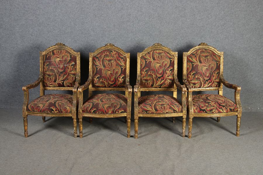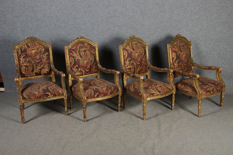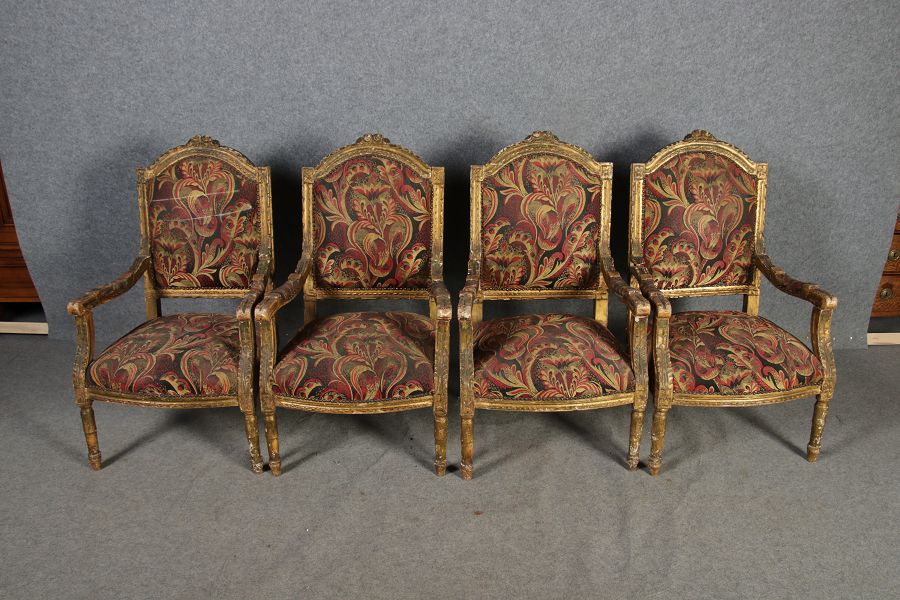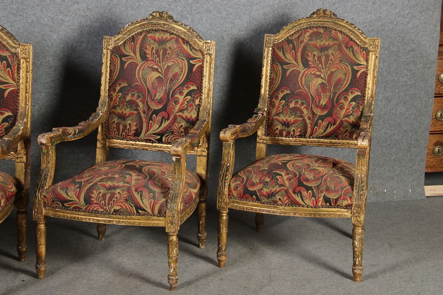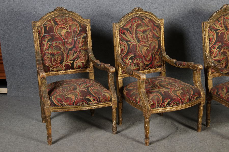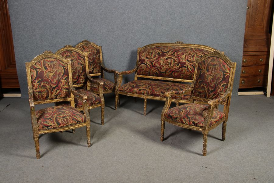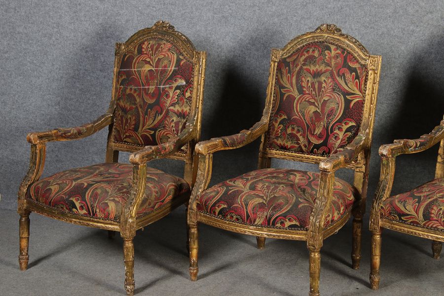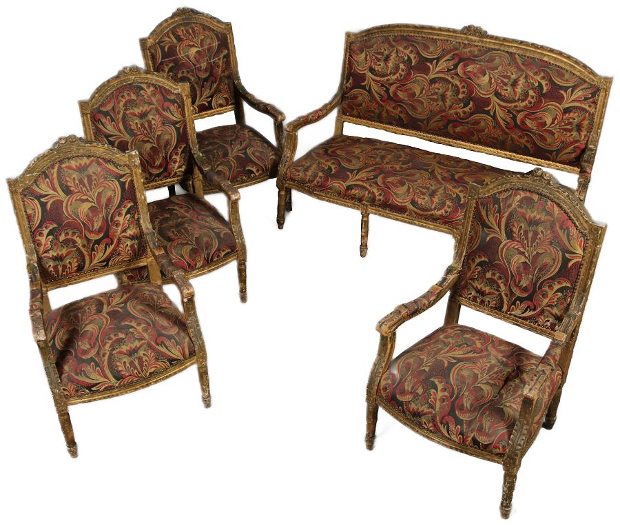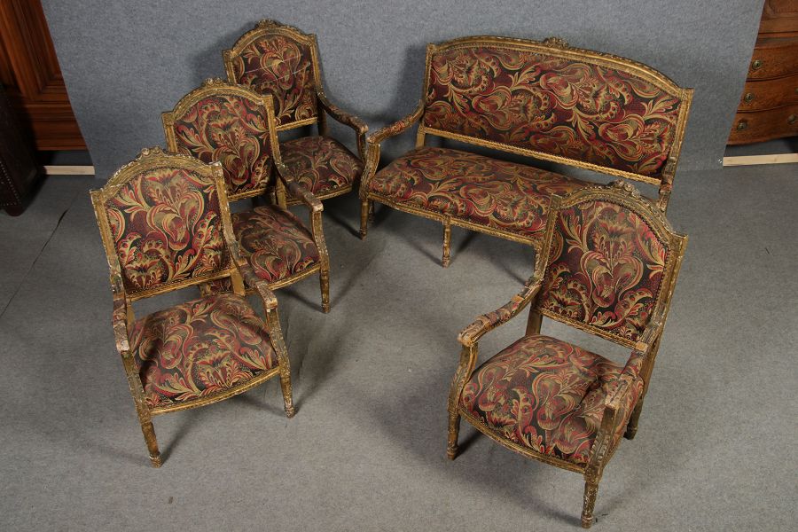 | Elegante Antike Louis XVI Sitzgruppe 4 Sessel 1 Sofa 18 Jh. |
