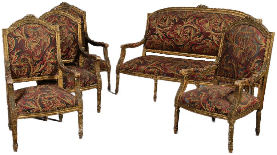 und Herkunft/origin: Die Sitzgruppe ist wahrscheinlich aus der Zeit um 1780 und die Herkunft ist Französische Schweiz