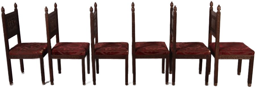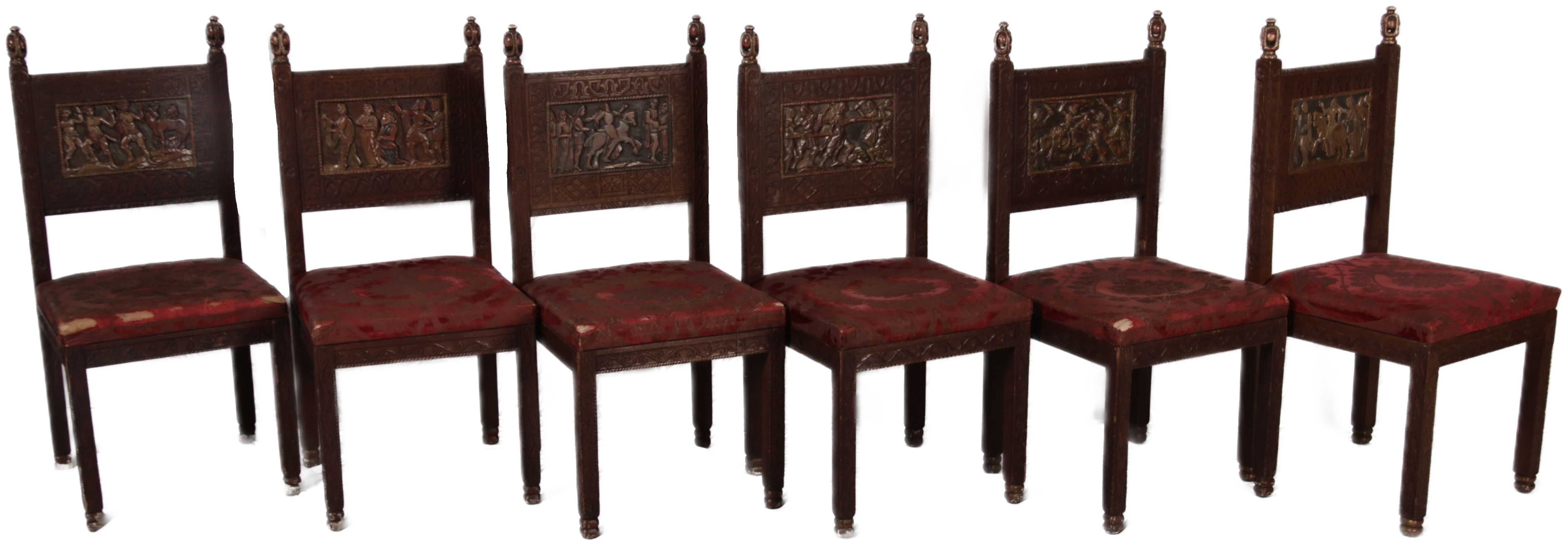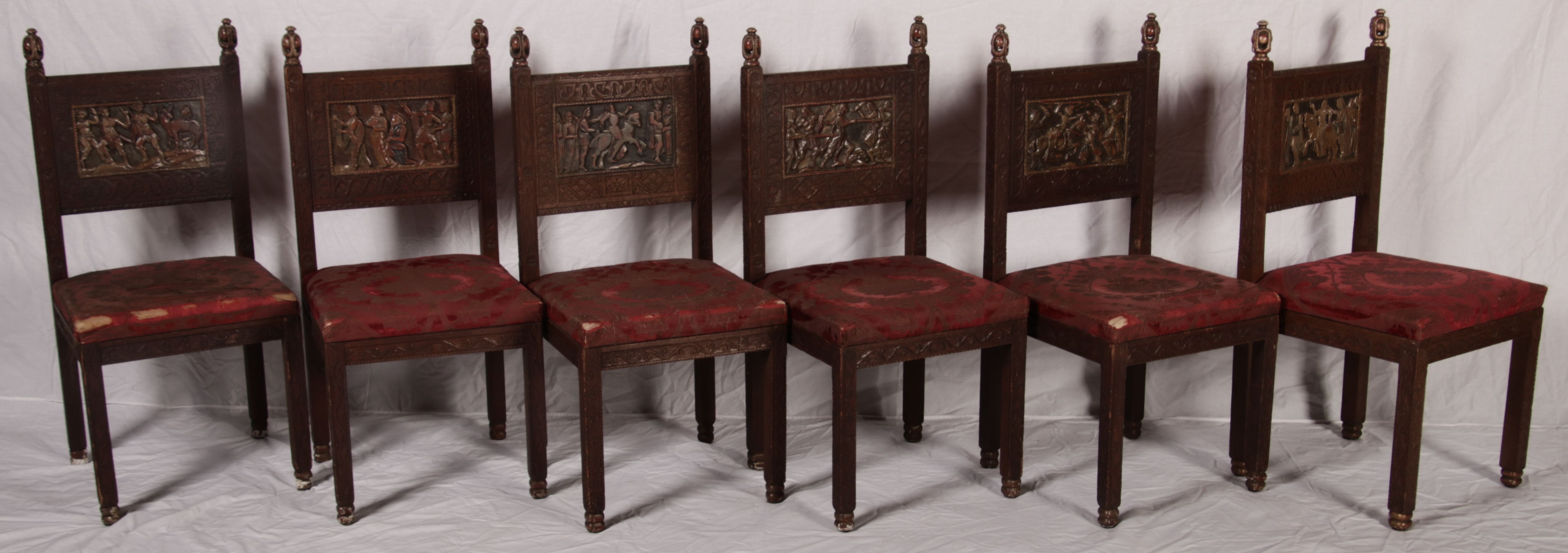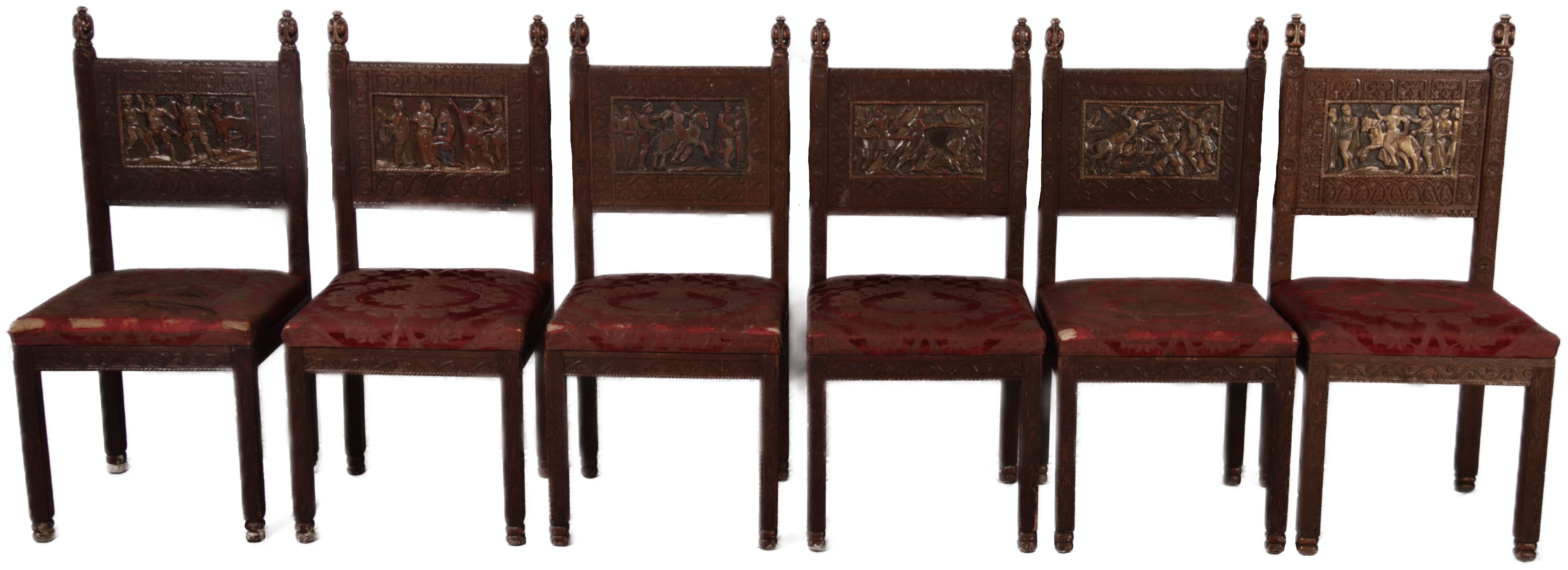 | 6 Antike Stühle mit Relief Schnitzerei im Renaissance Stil um 1900 |