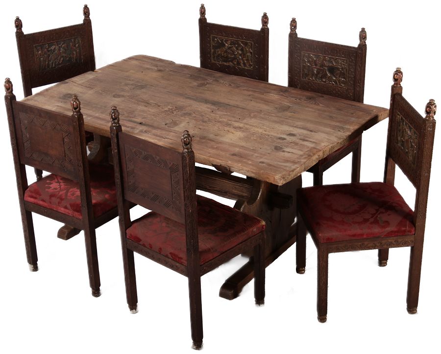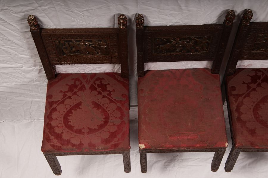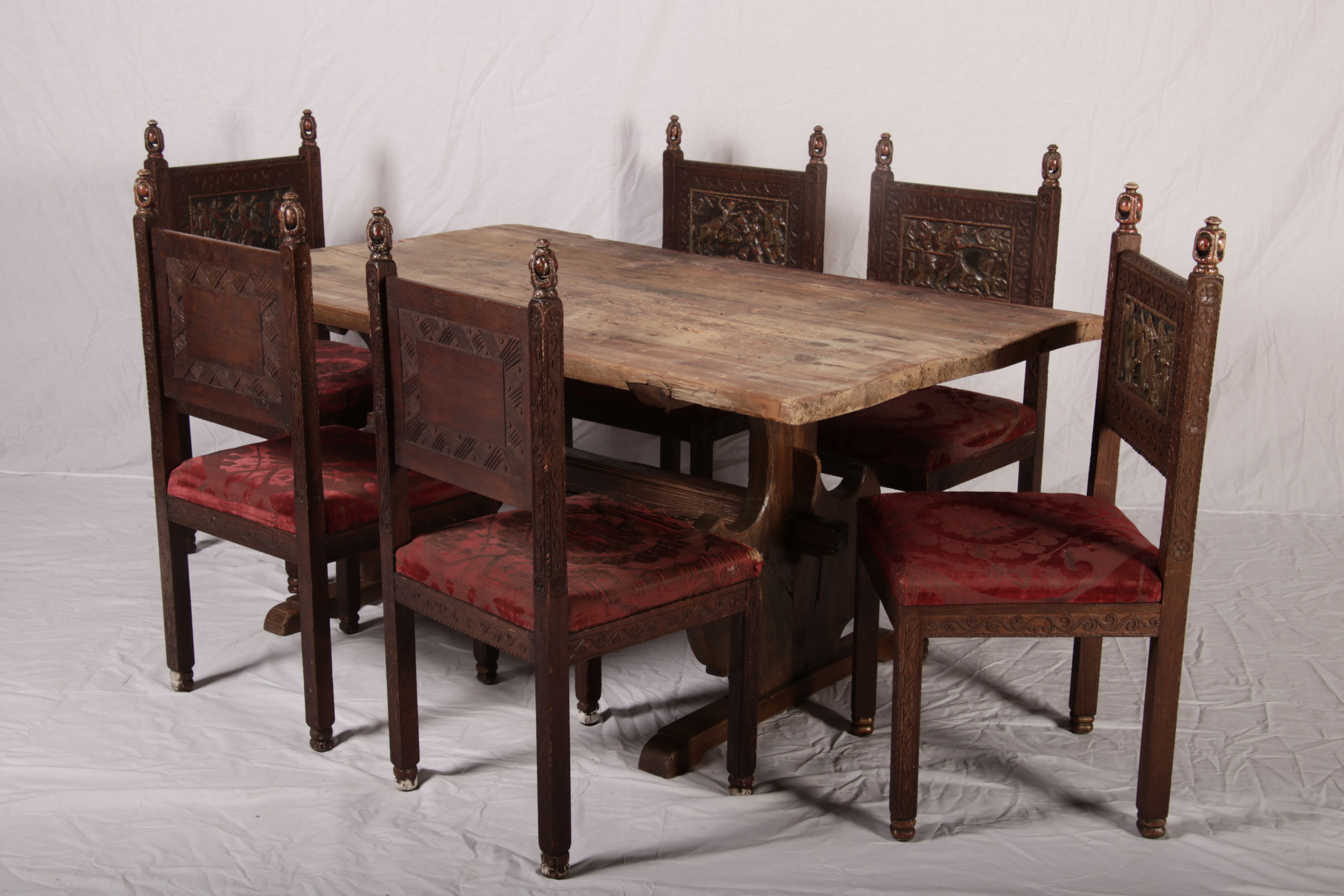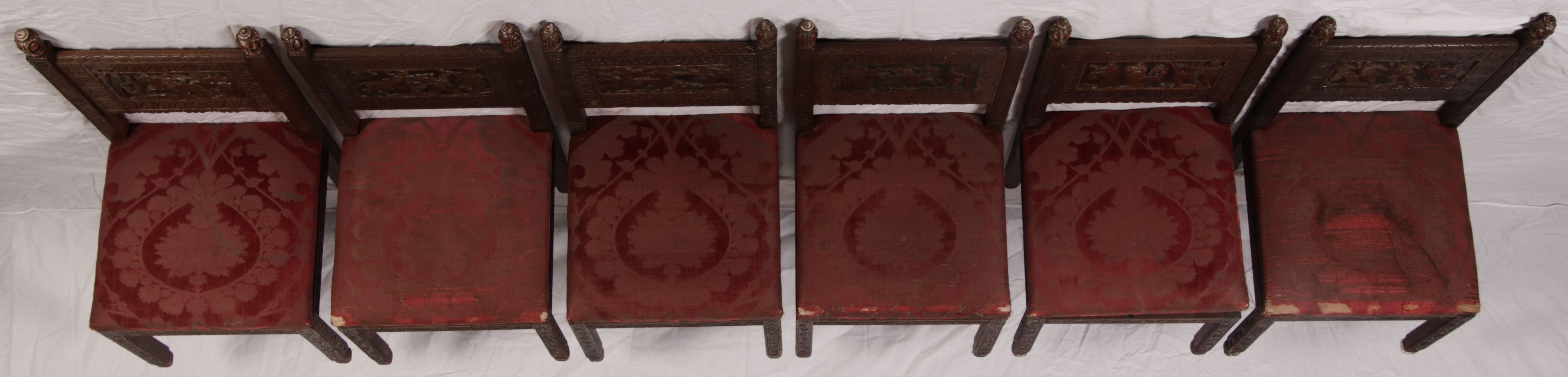 | 6 Antike Stühle mit Relief Schnitzerei im Renaissance Stil um 1900 |