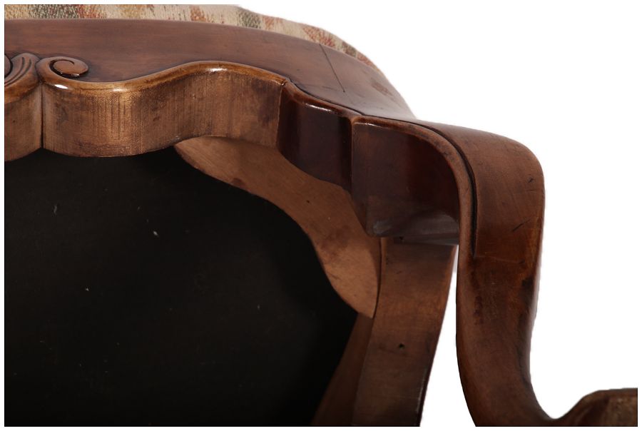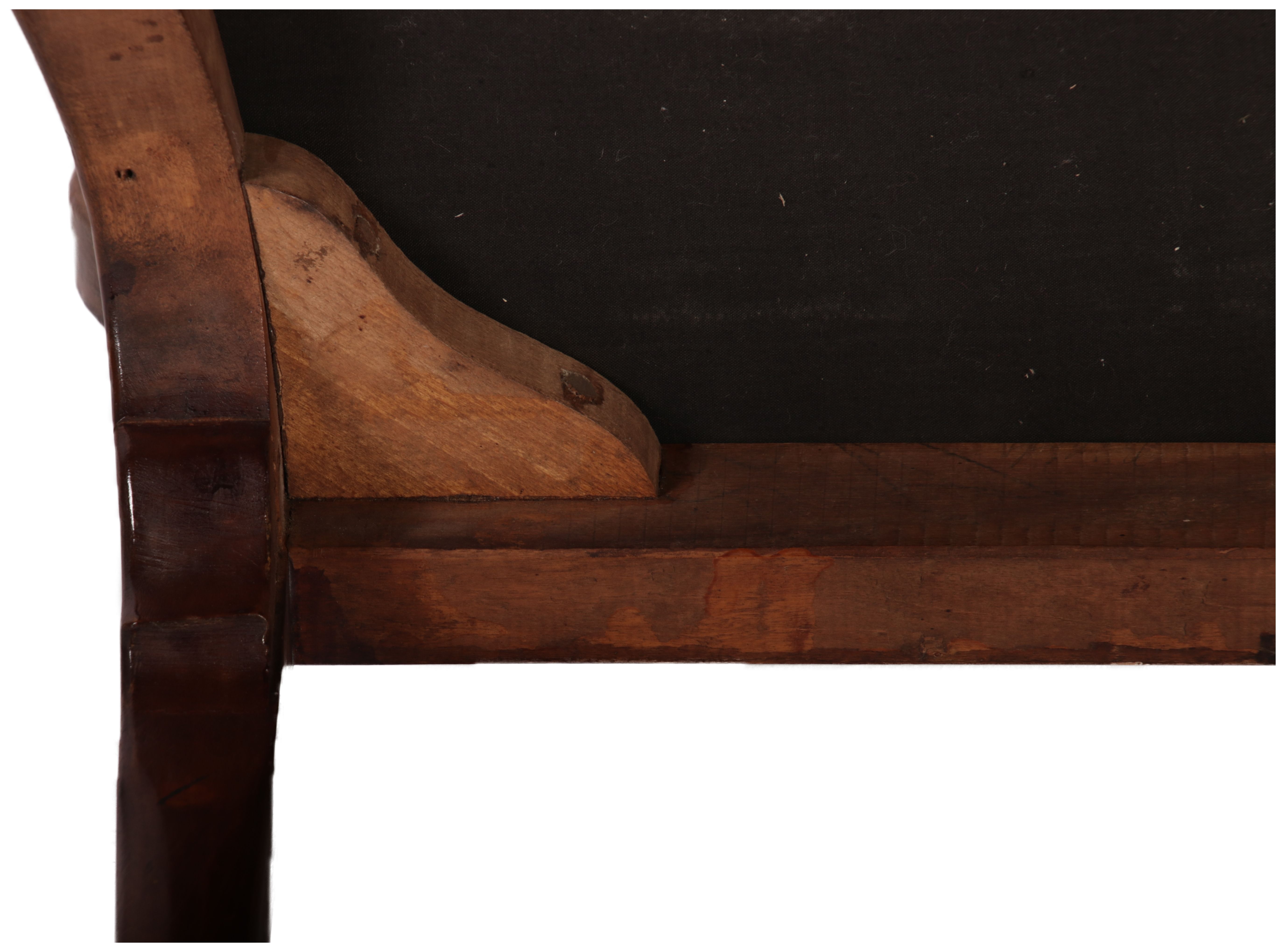 Federkernpolster Die Sitz Qualität ist sehr gut Der Polsterbezug ist im guten Zustand mit wenig Gebrauchsspuren Die Gestell Oberfläche ist in einem für das Alter guten Zustand. Das Gestell ist fest und die Ecken wurden bei einer älteren Restauration schon verstärkt, die Holzart ist Buche Nussbaum gebeizt oder Nussbaum