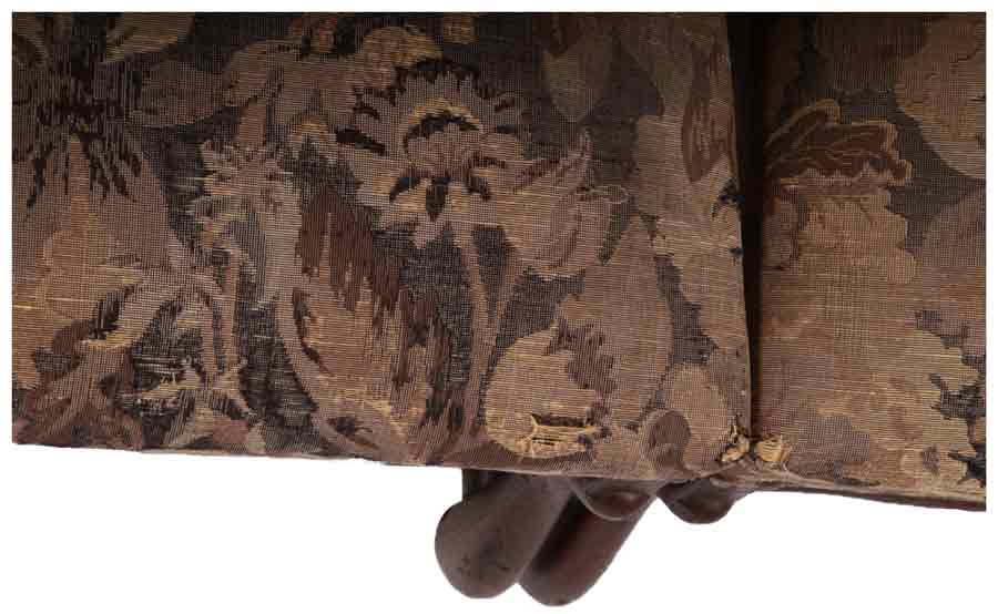 Schaumstoffpolster Kern, und ist weich gepolstert.. Der Polsterbezug ist - an den Kanten leicht verschlissen. Die Gestell Oberfläche ist in einem gut Zustand für das Alter und ist fest und die Holzart ist Eiche