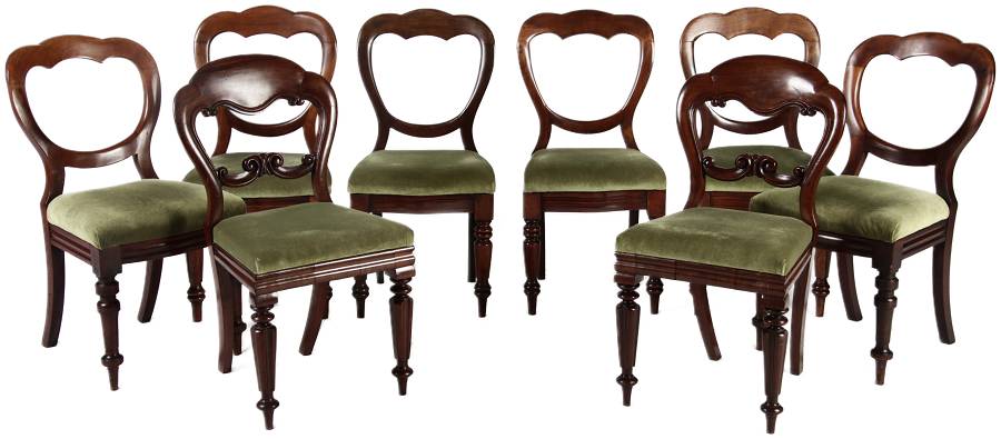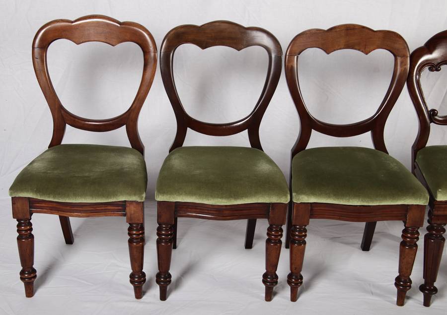 8 Antike viktorianische Stühle mit Ballonrücken aus Mahagoni 19 Jahrhundert. |