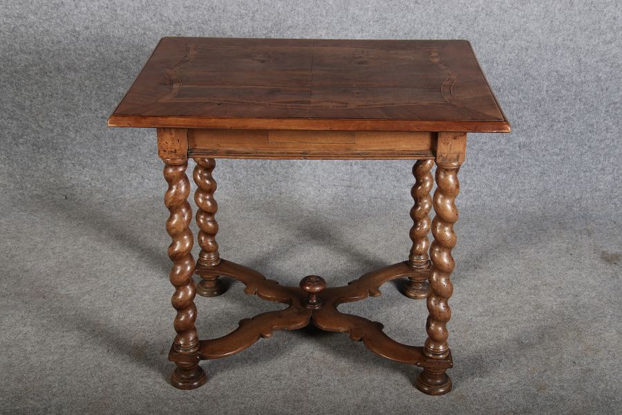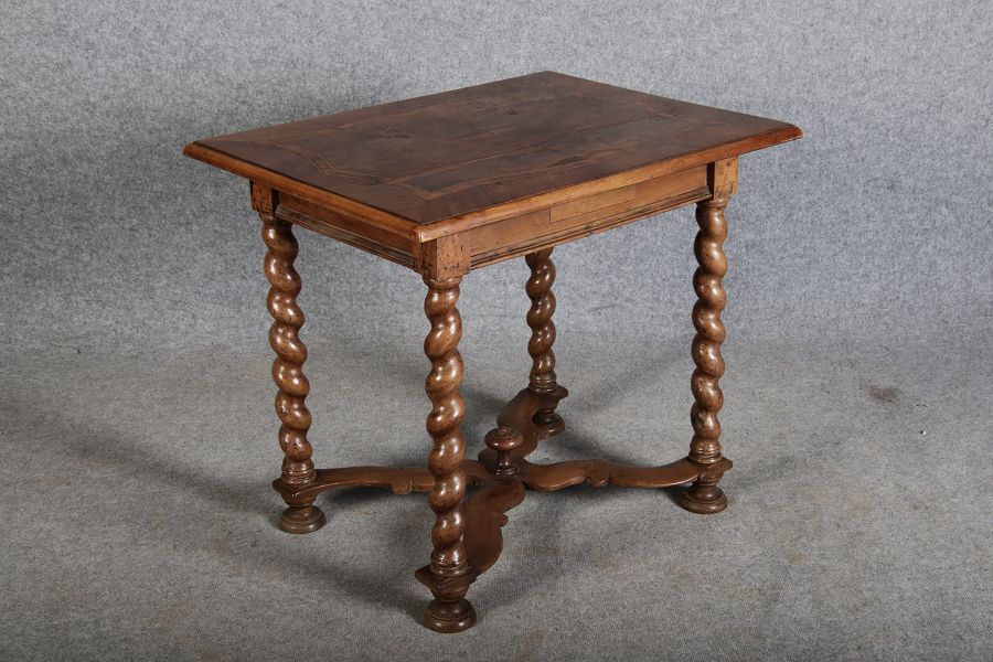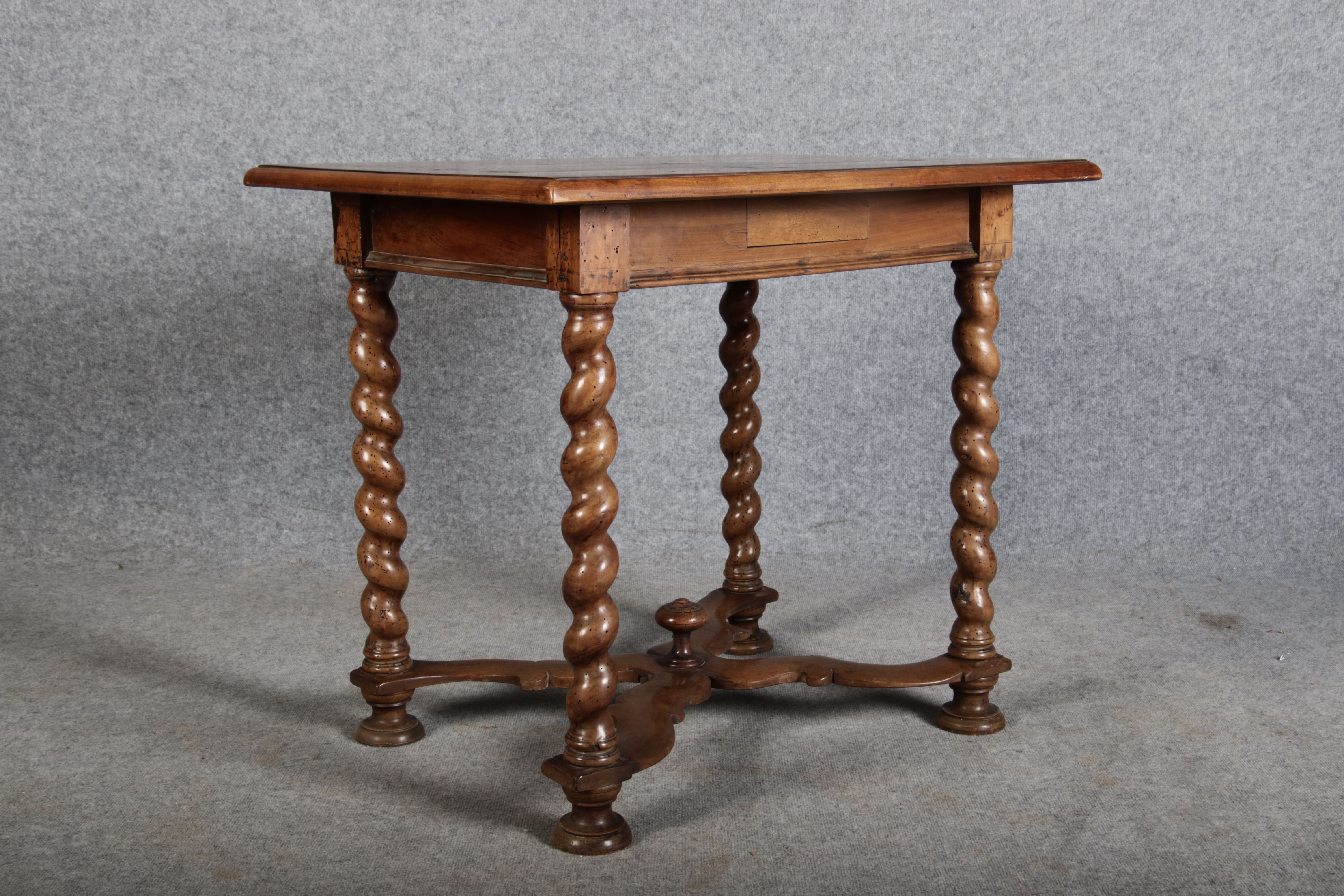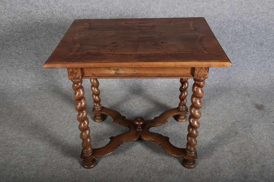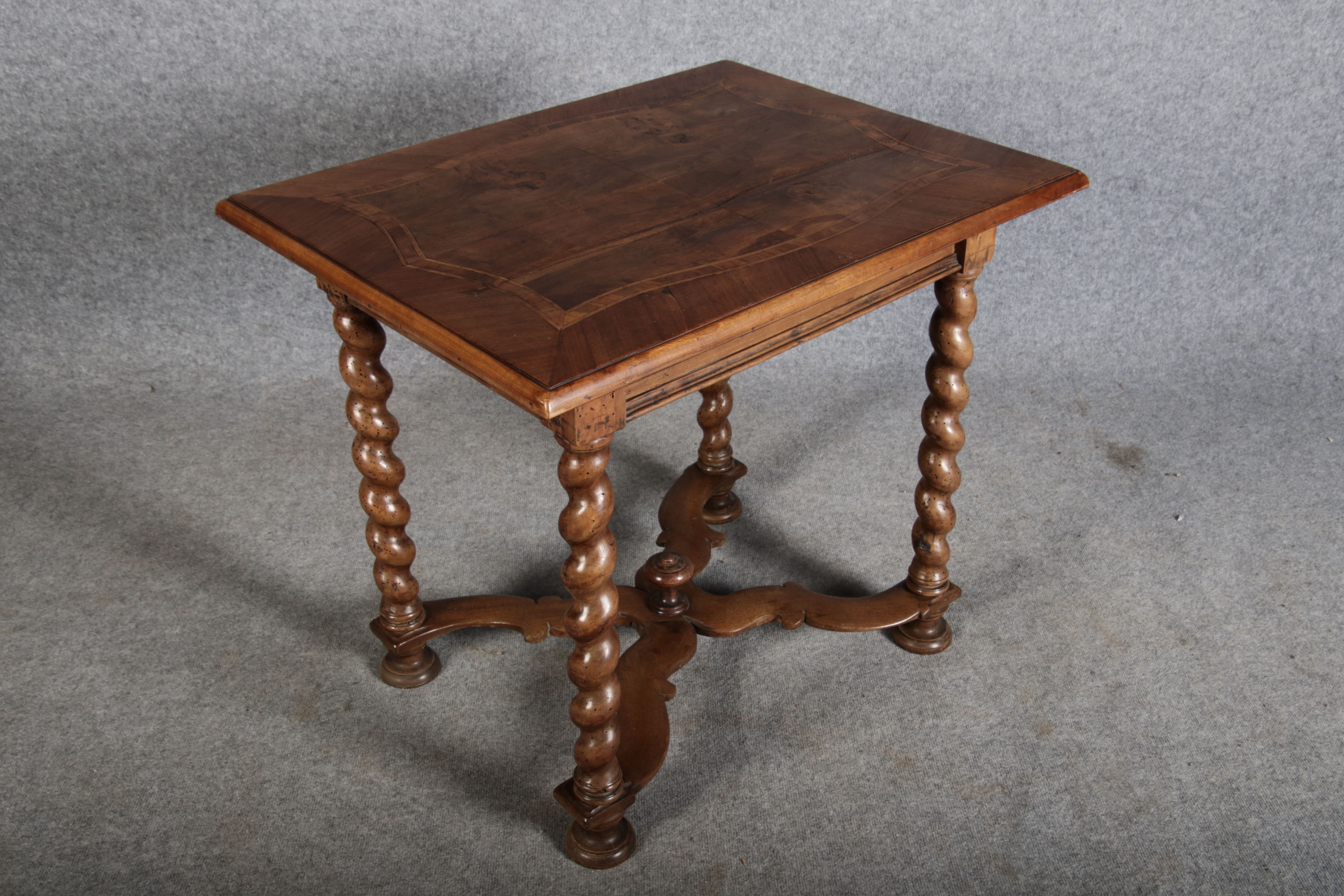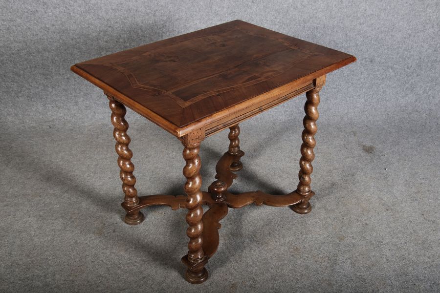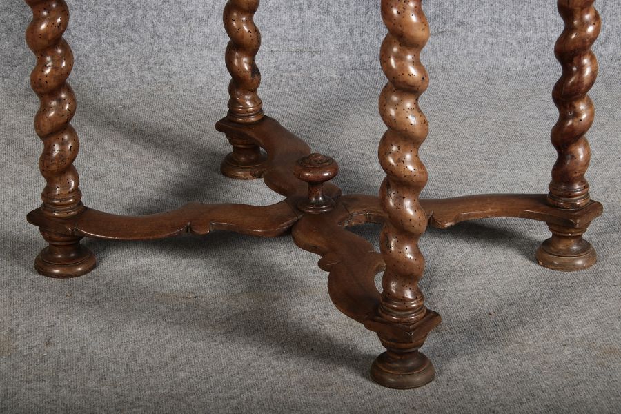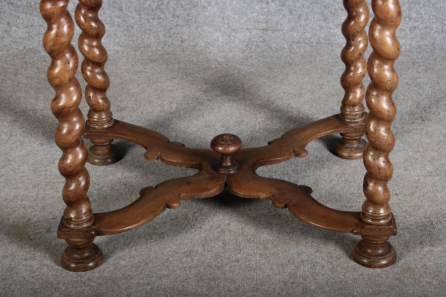 Antiker Kleiner Barocktisch gedrehte Säulen Intarsien Nussbaum