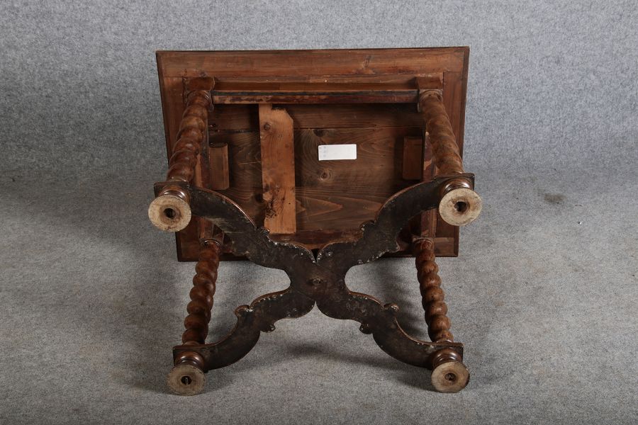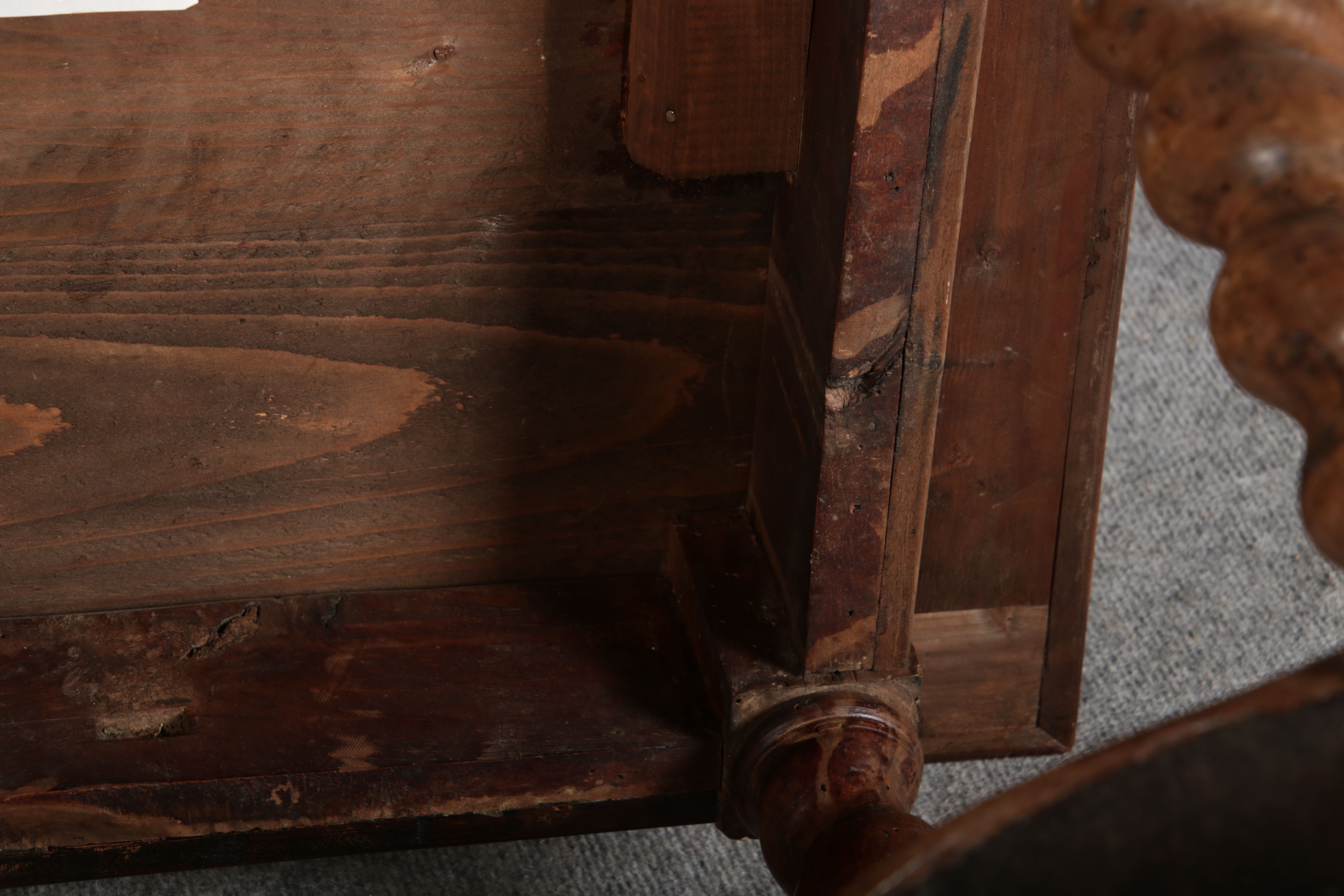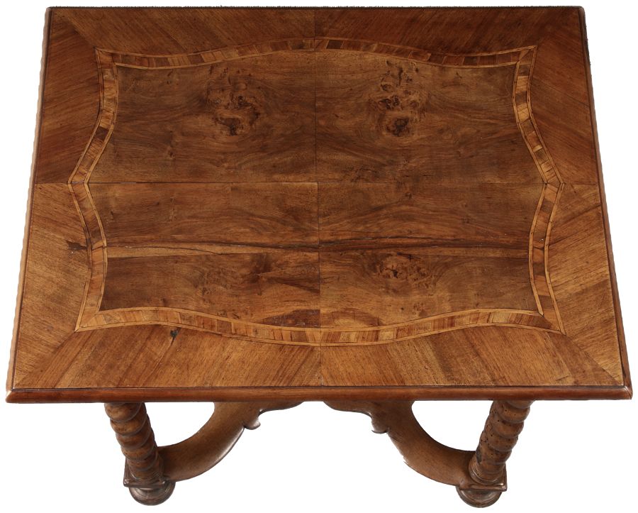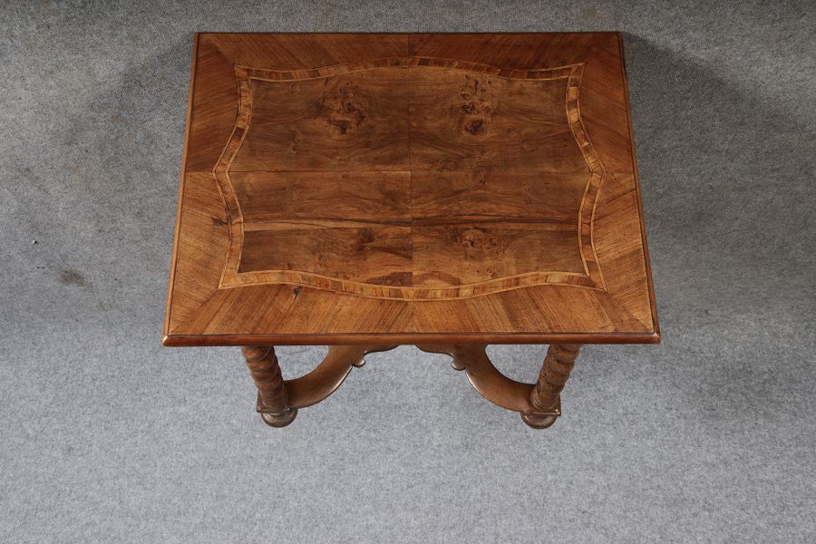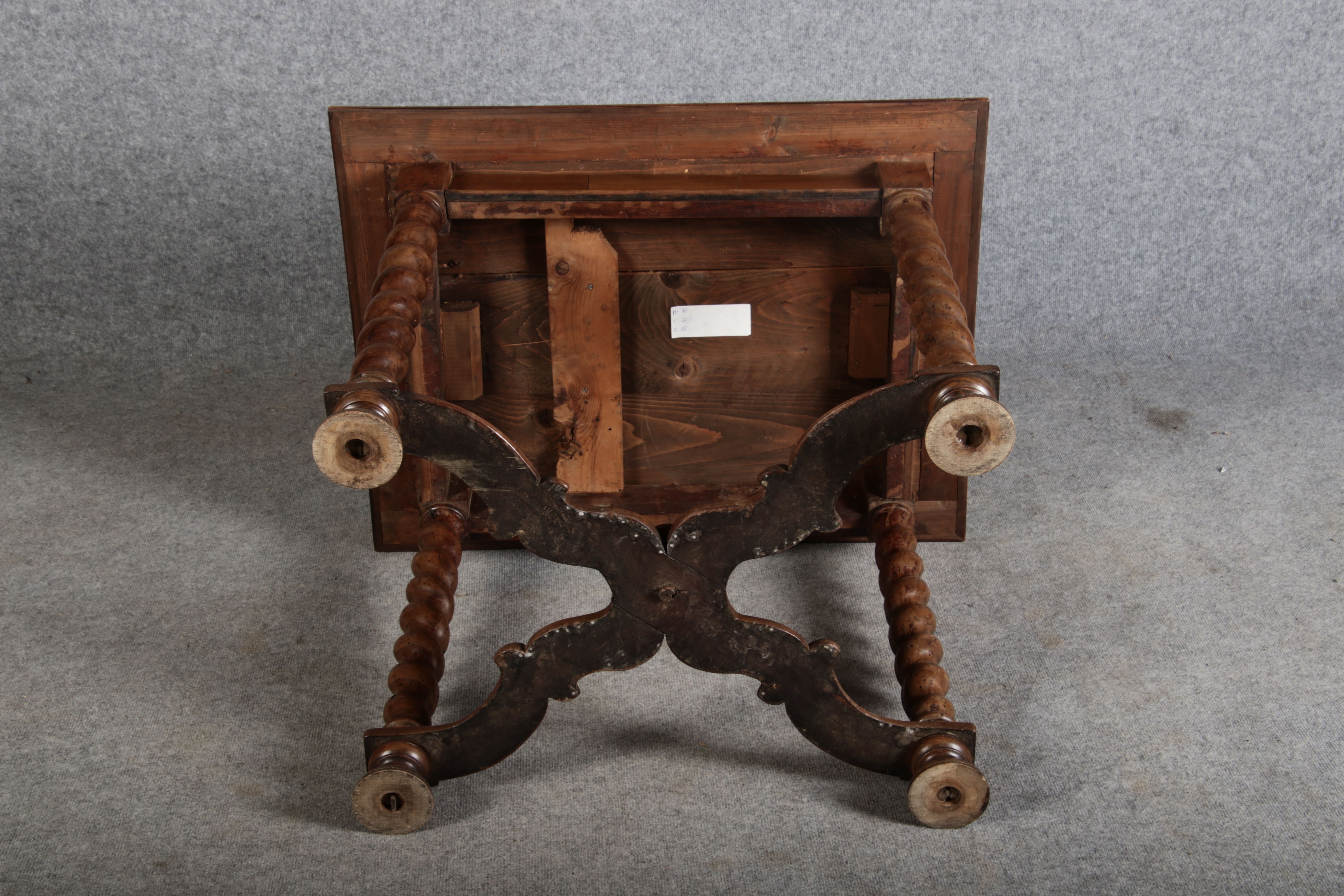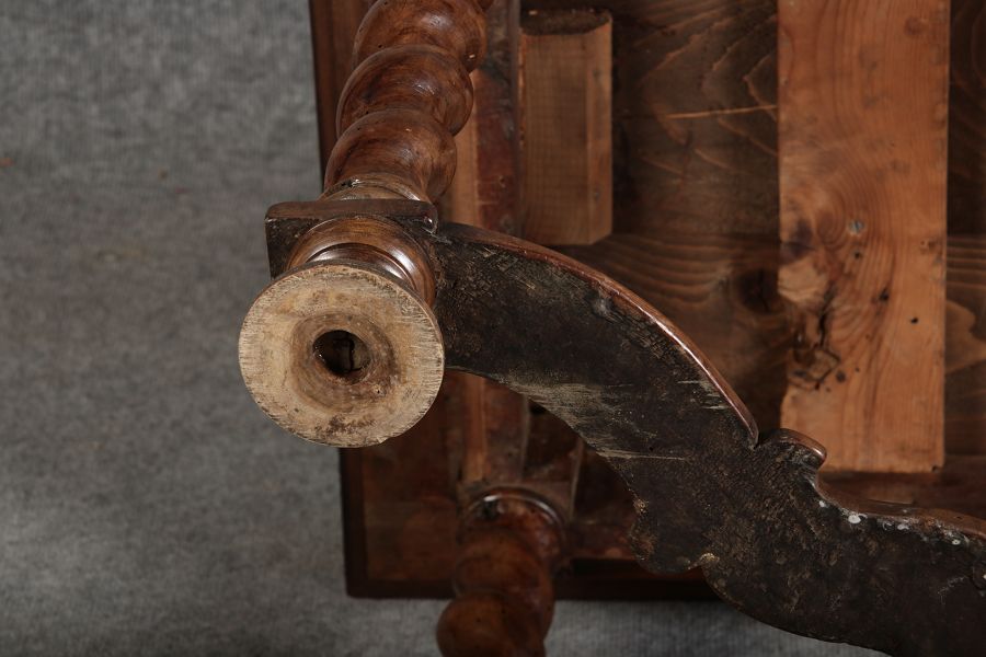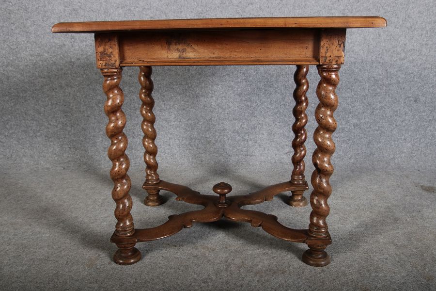 Antiker Kleiner Barocktisch gedrehte Säulen Intarsien Nussbaum