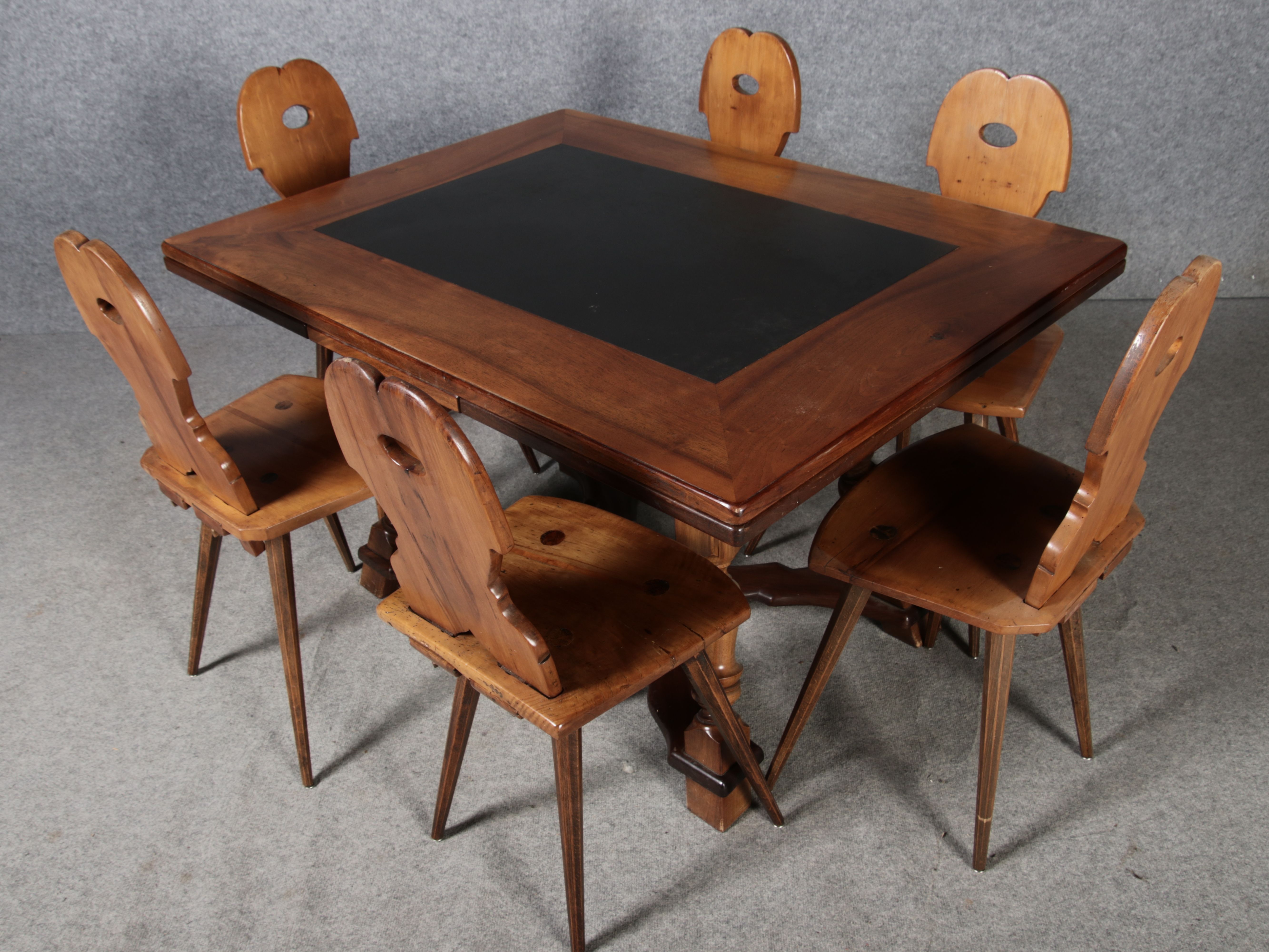 Antiker Schiefertisch ausziehbar Nussbaum Barockstil |