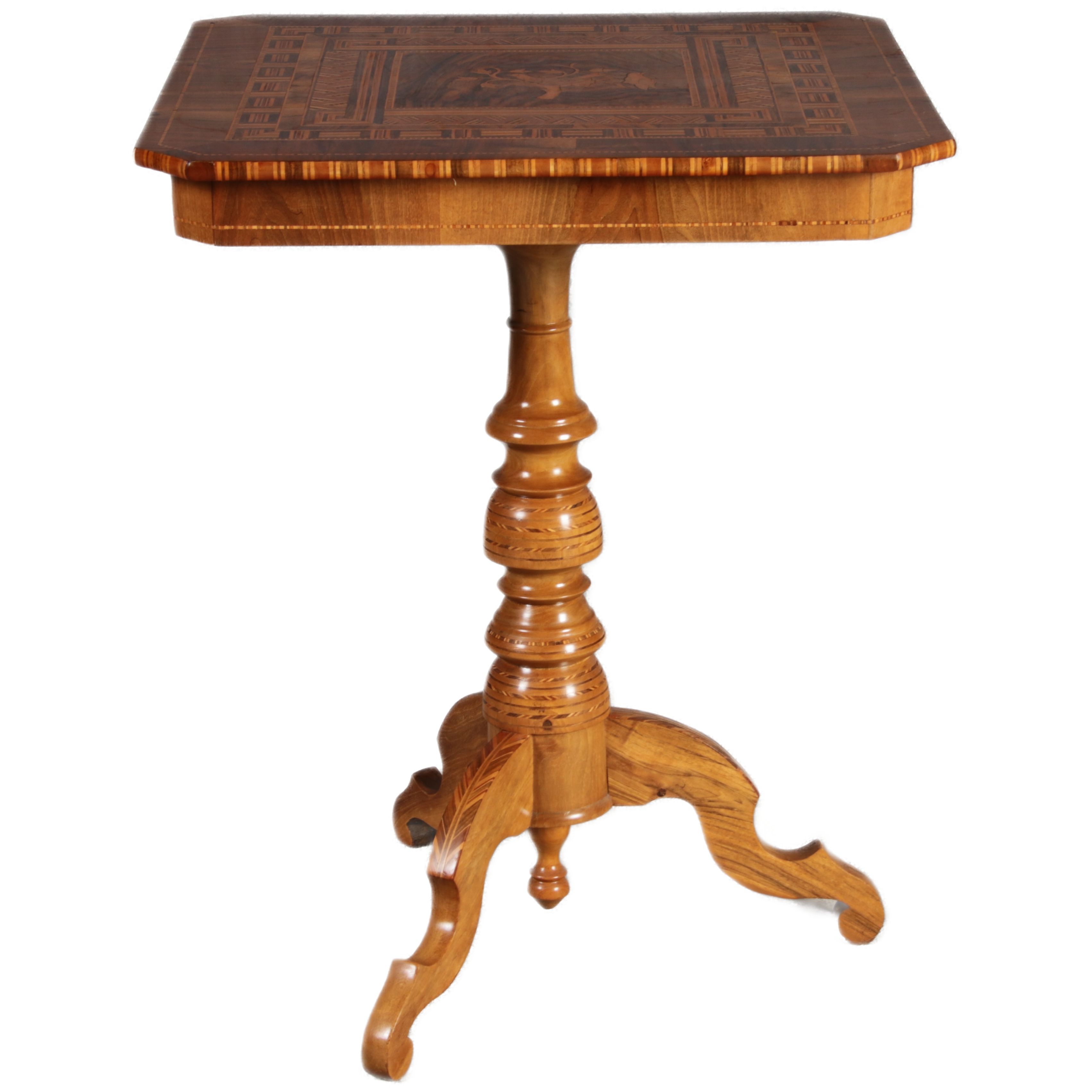| Antiker Tarsia Rolo Tisch Nussbaum Italien 19. Jh Einlegearbeiten |