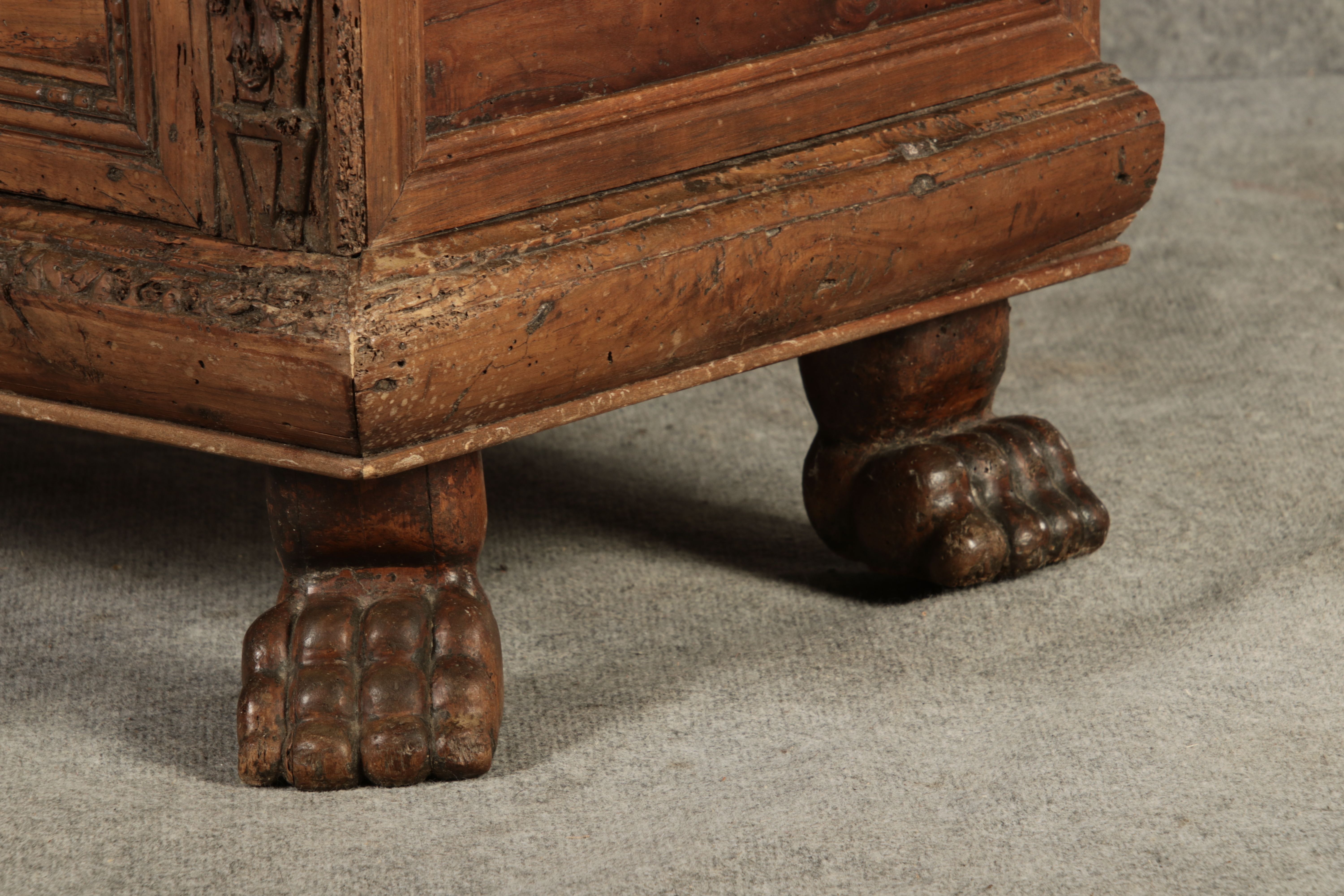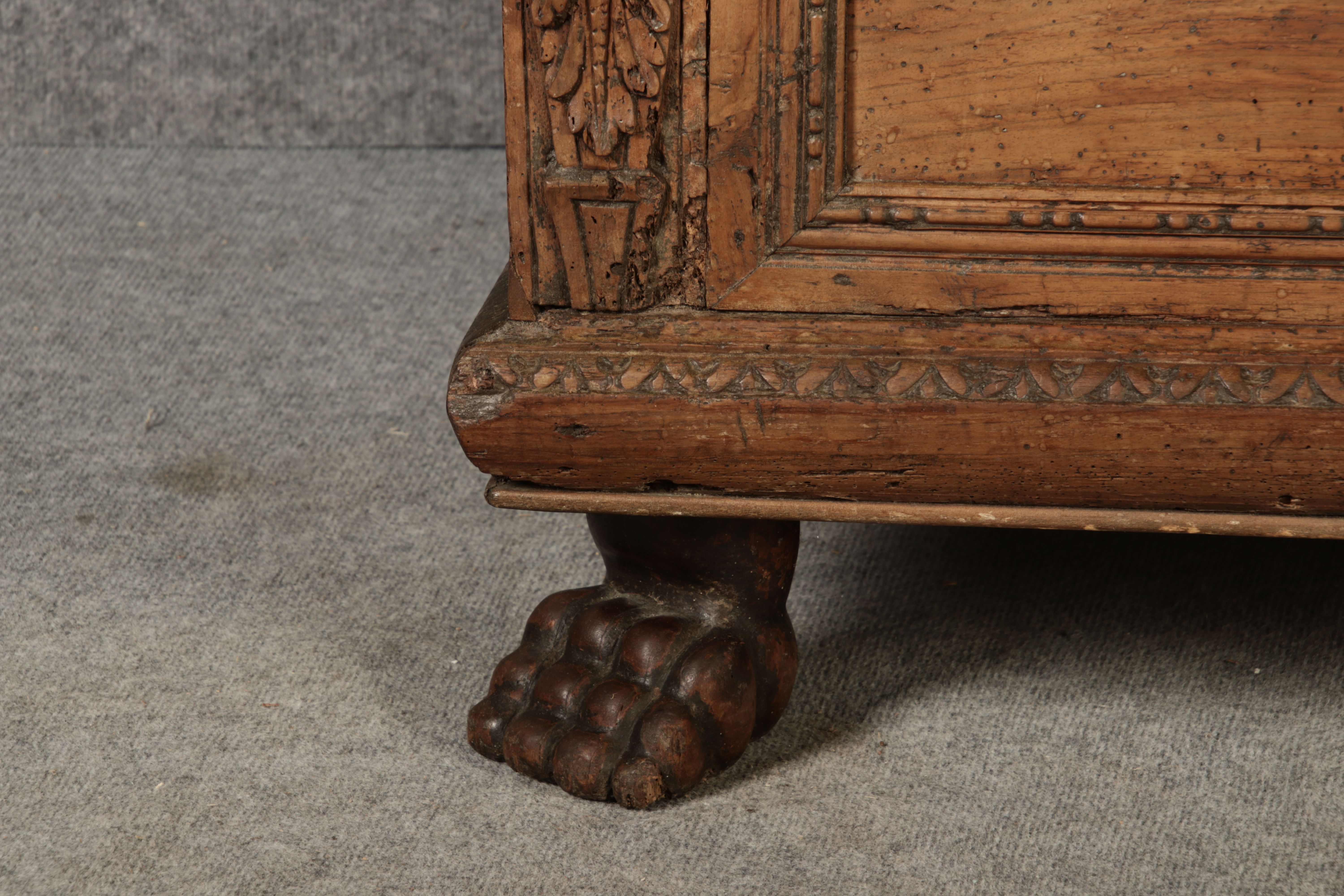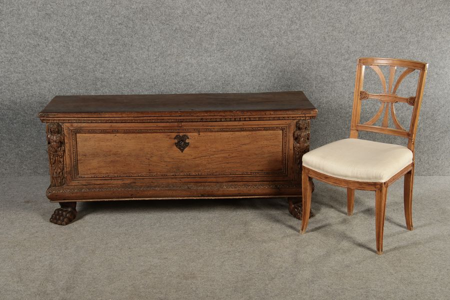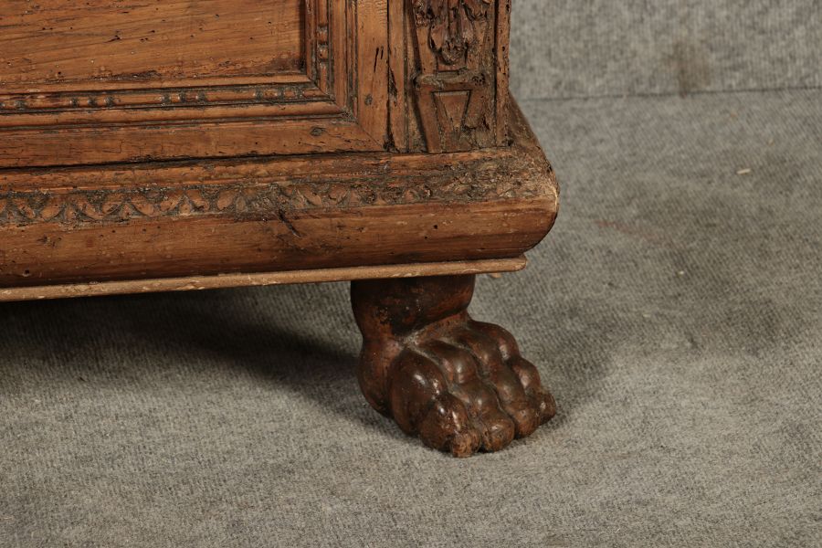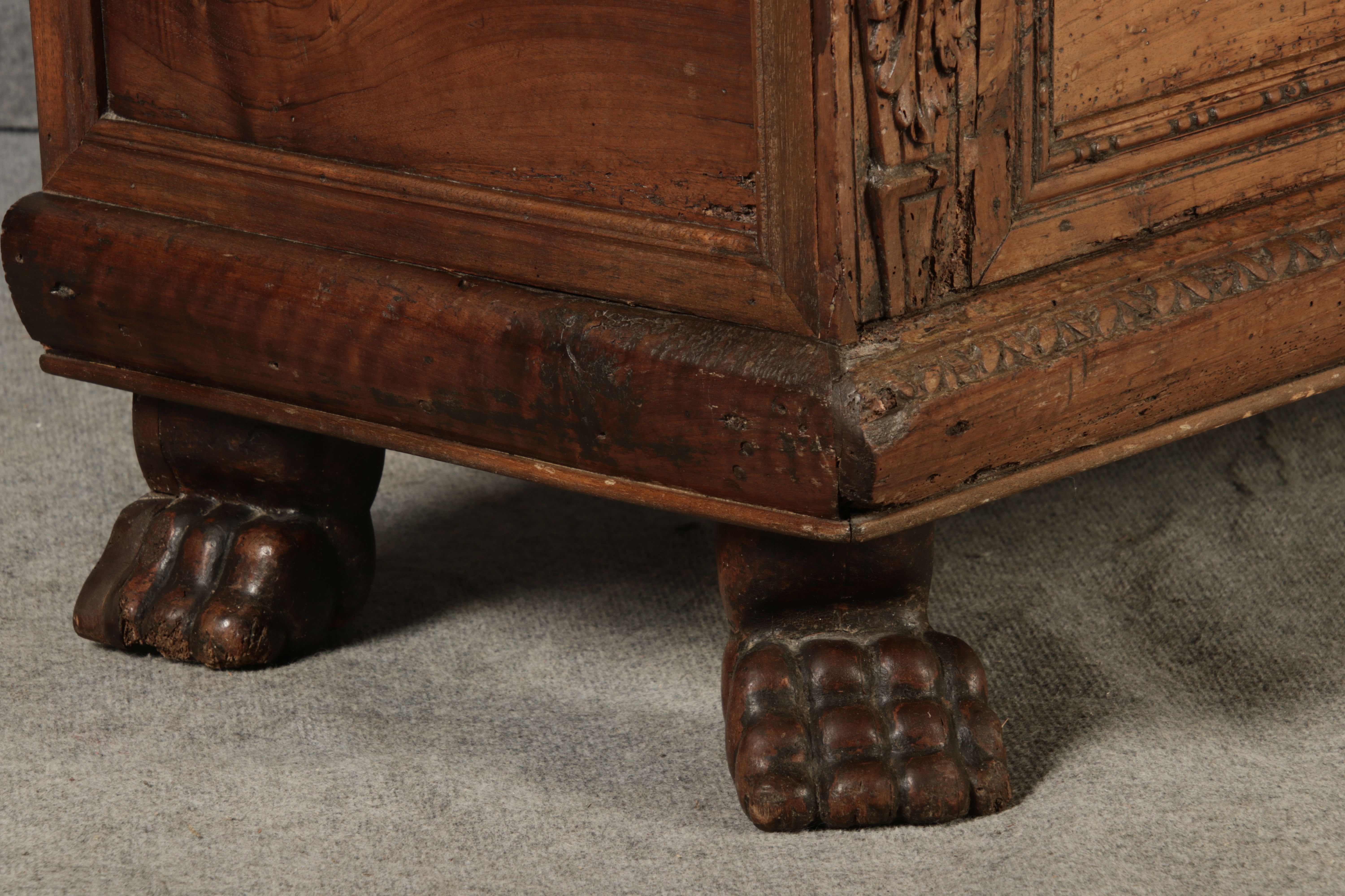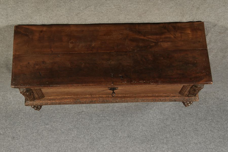 | Antike Italienische Cassone Renaissance Truhe 17 Jh. Nussbaum |