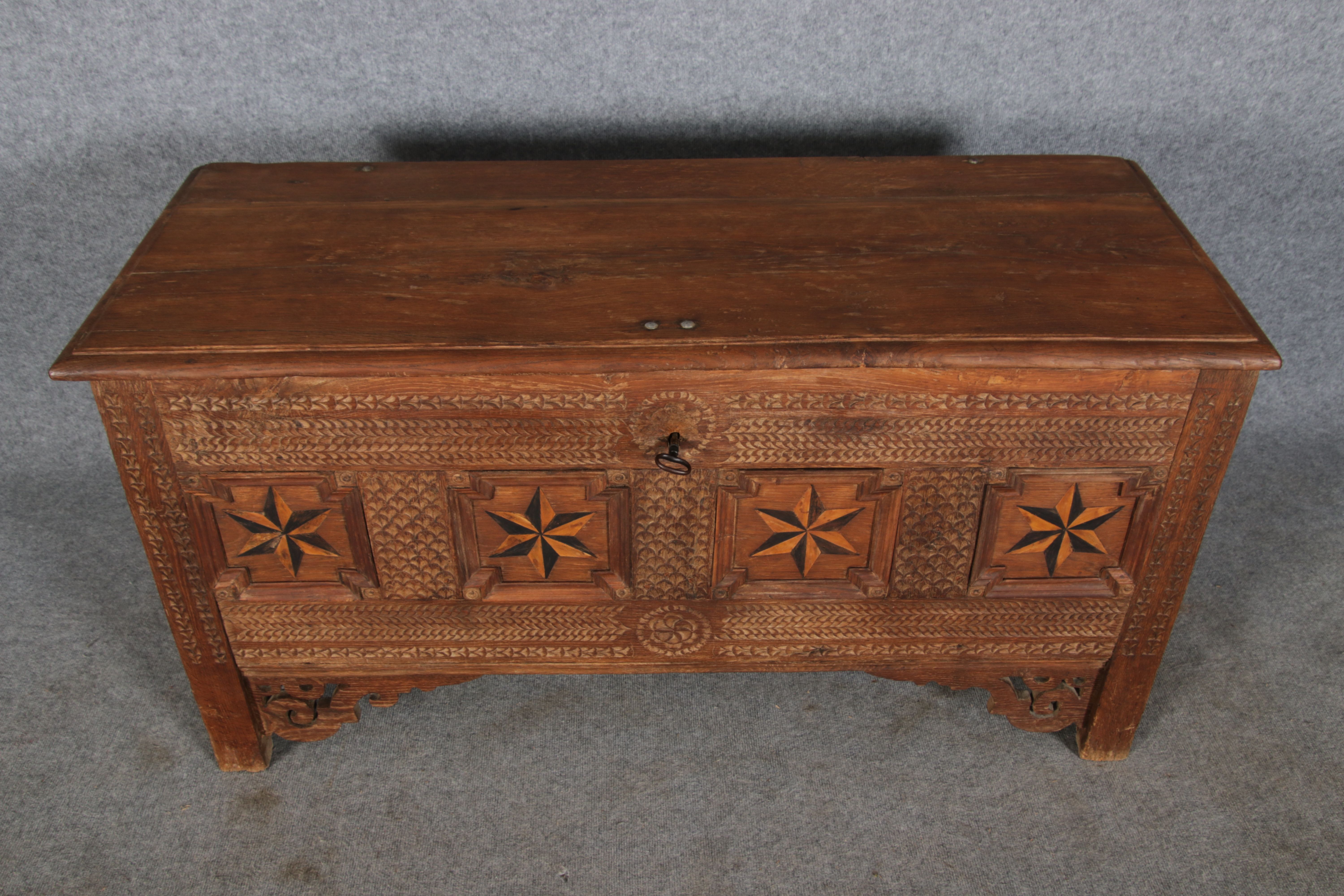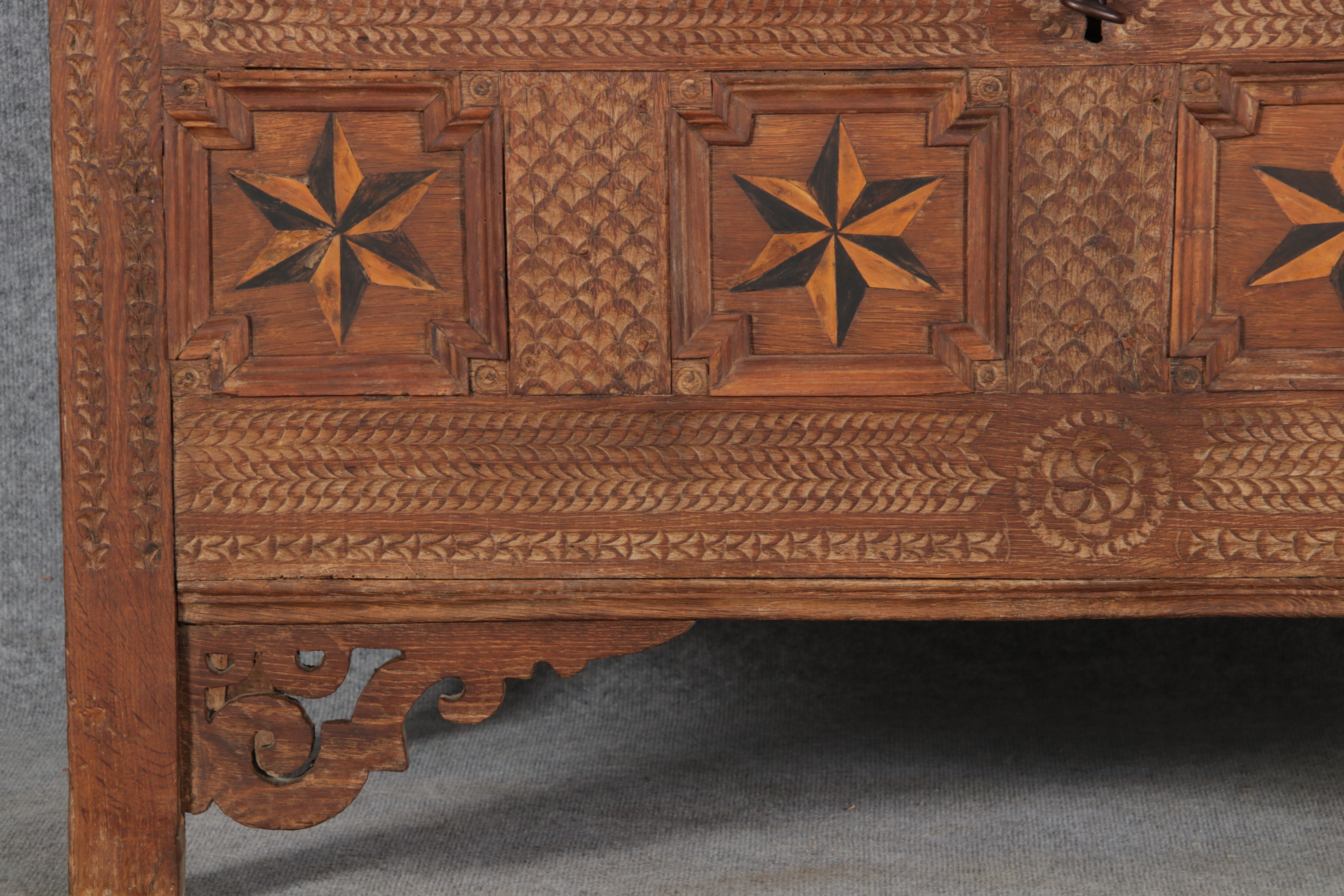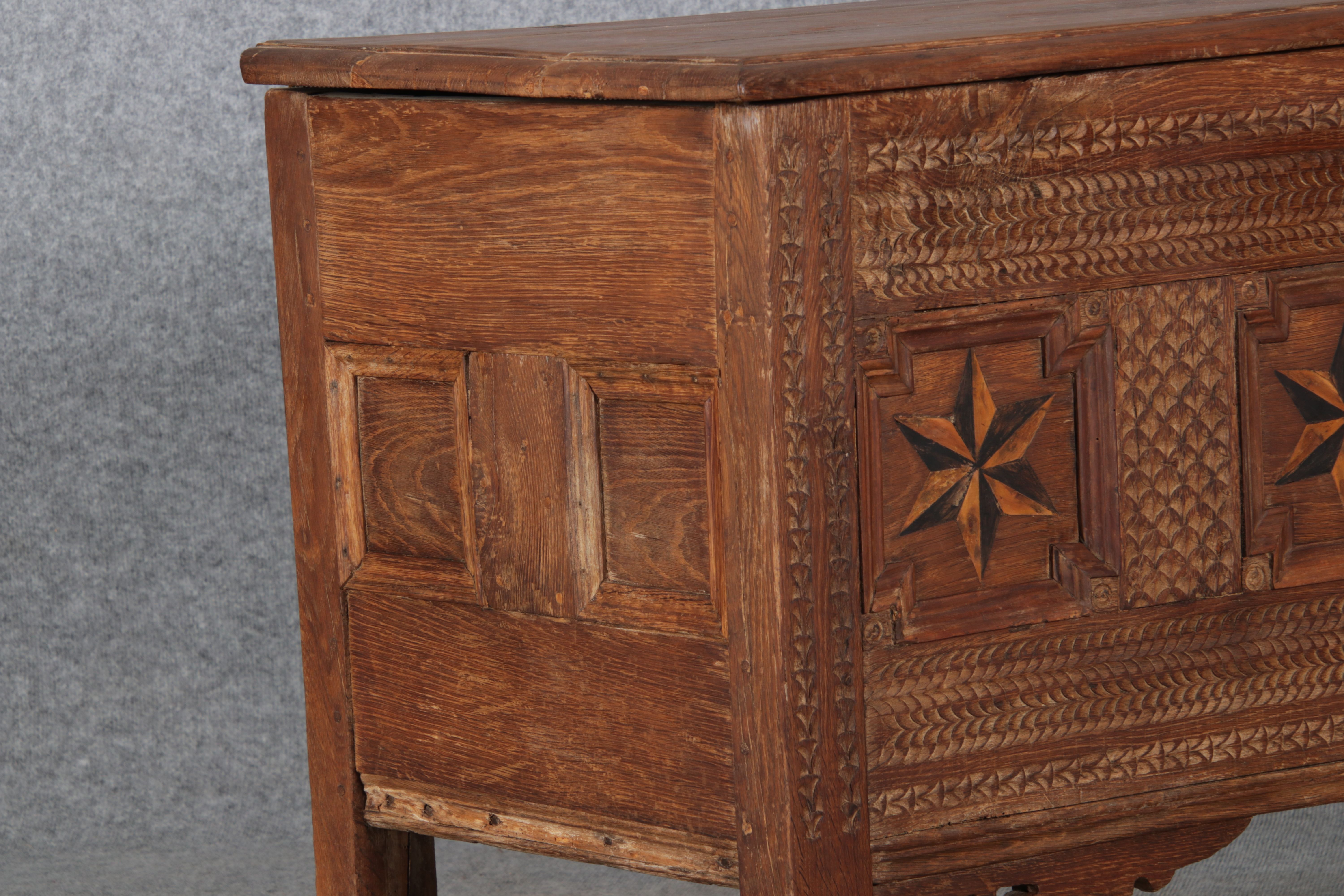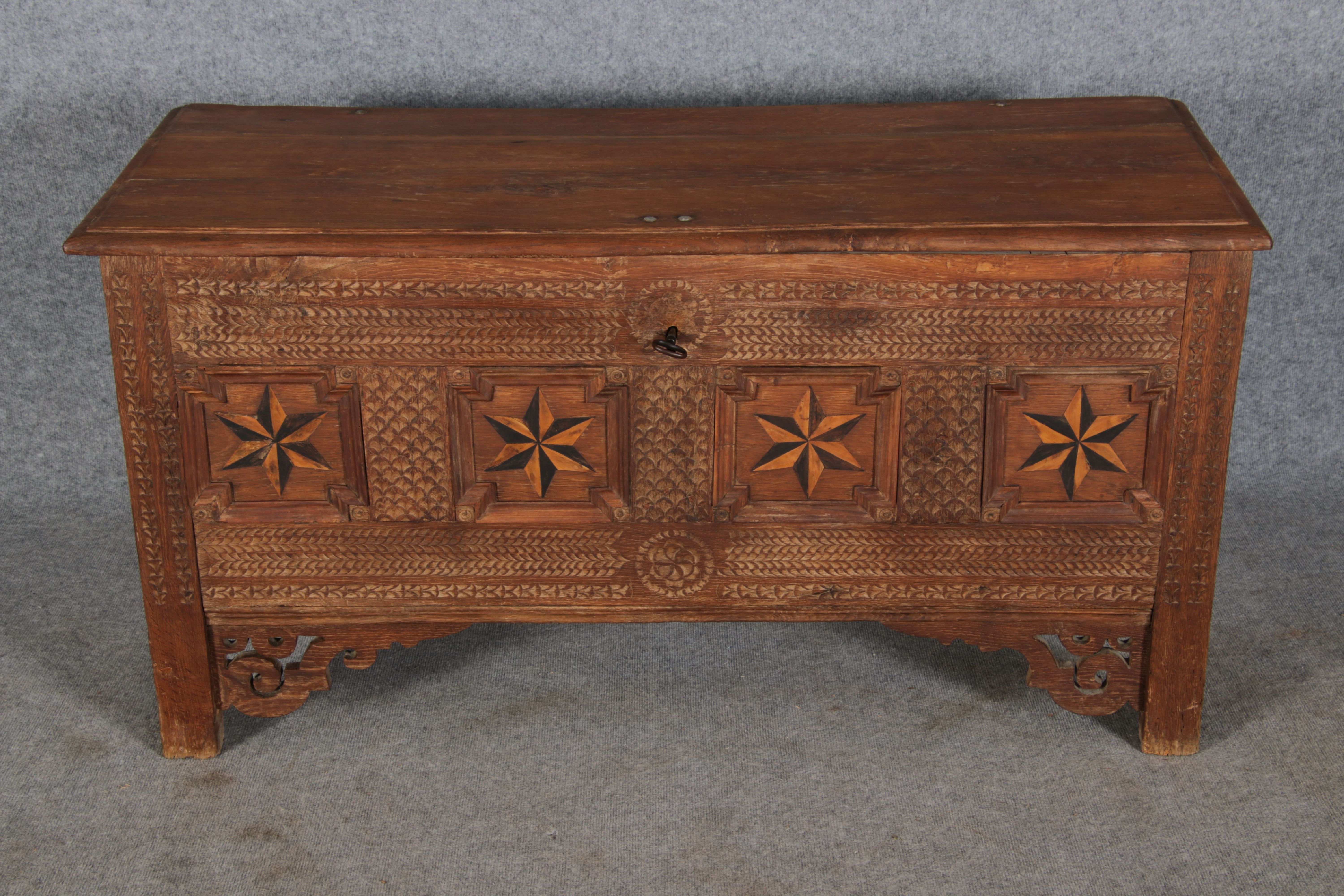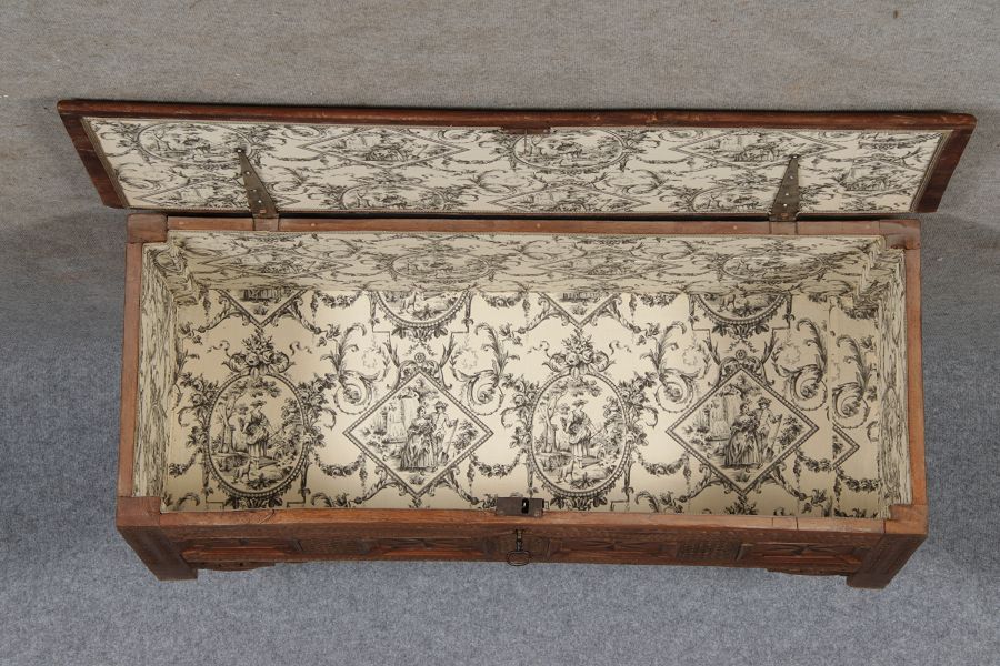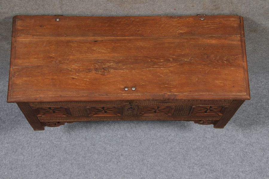| Antike Barocktruhe mit Kerbschnitzereien und
