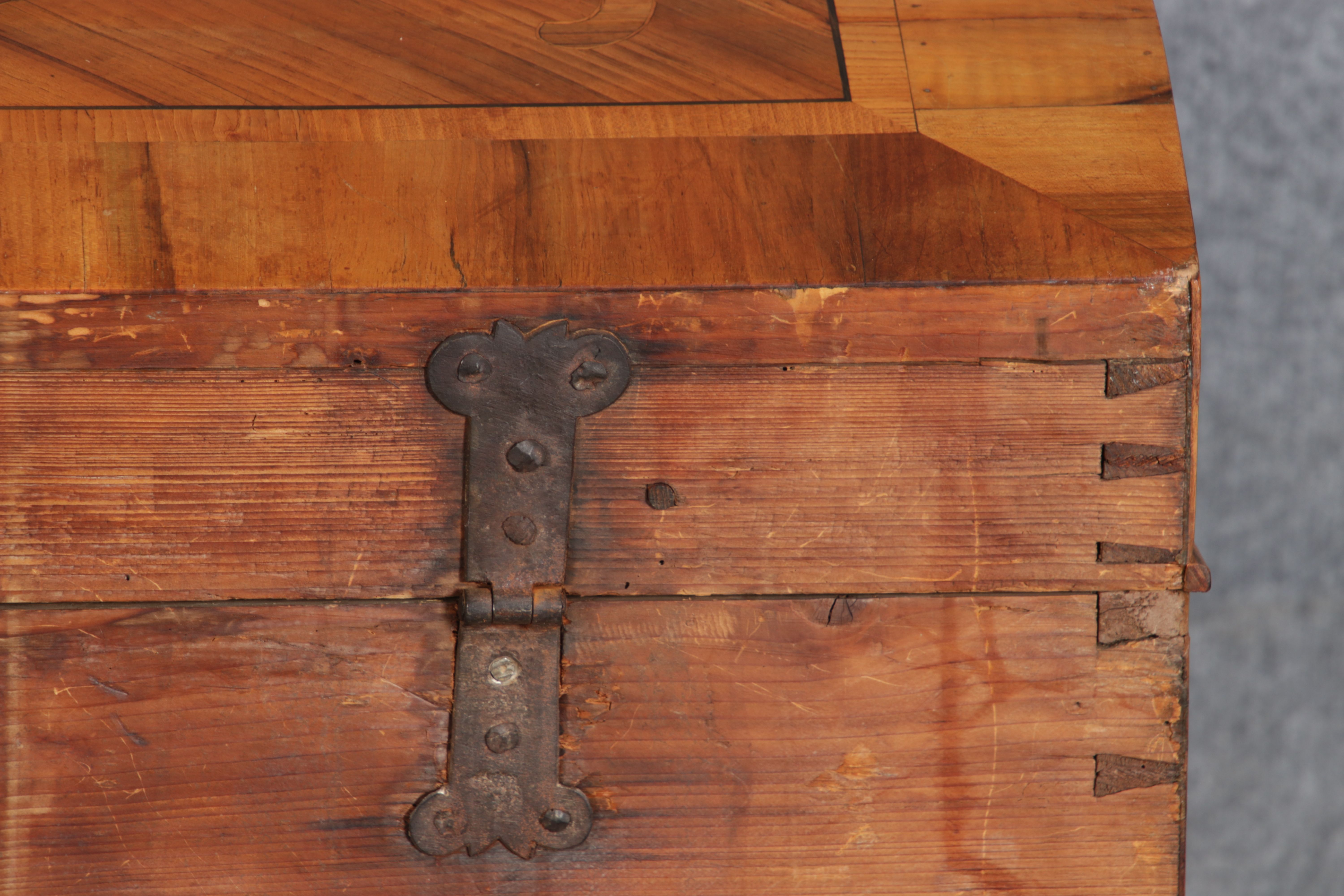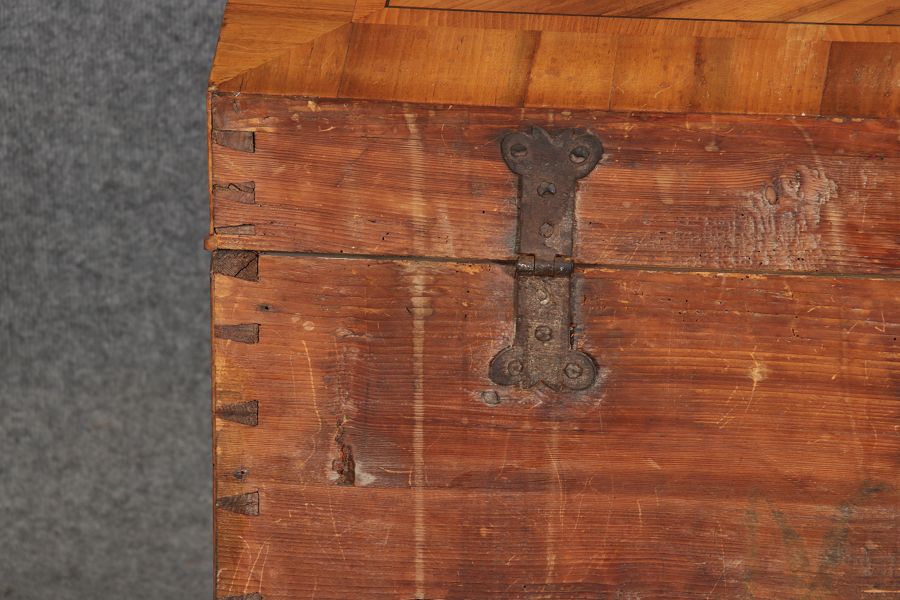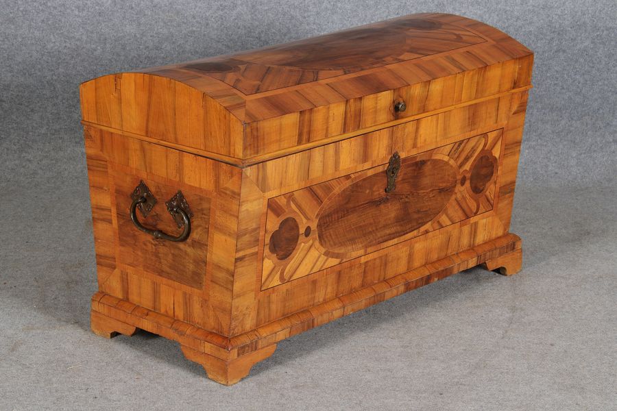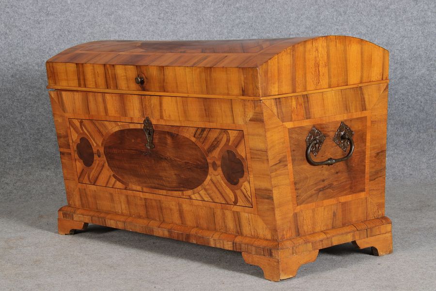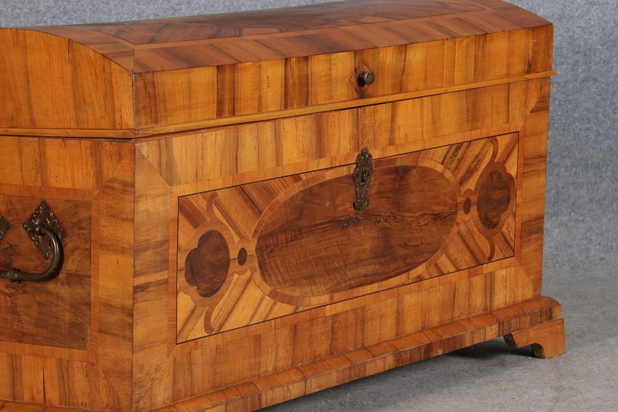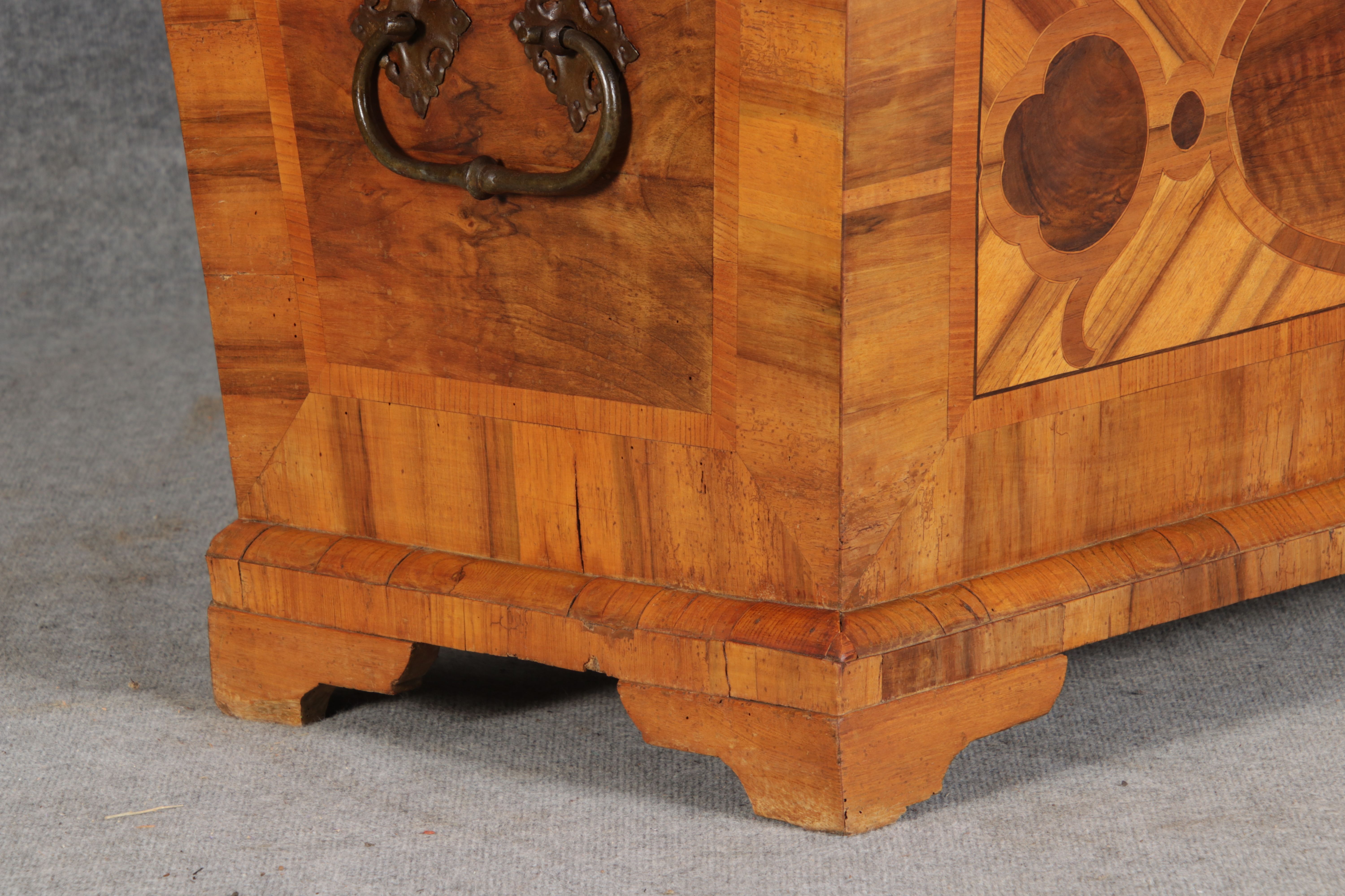 | Antike Biedermeier Truhe mit Einlegearbeiten Nussbaum