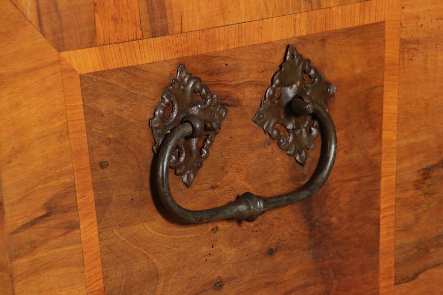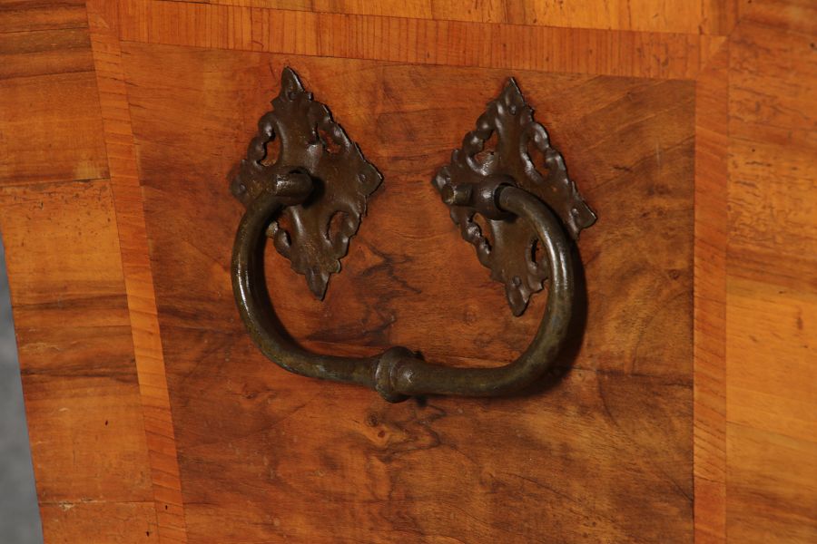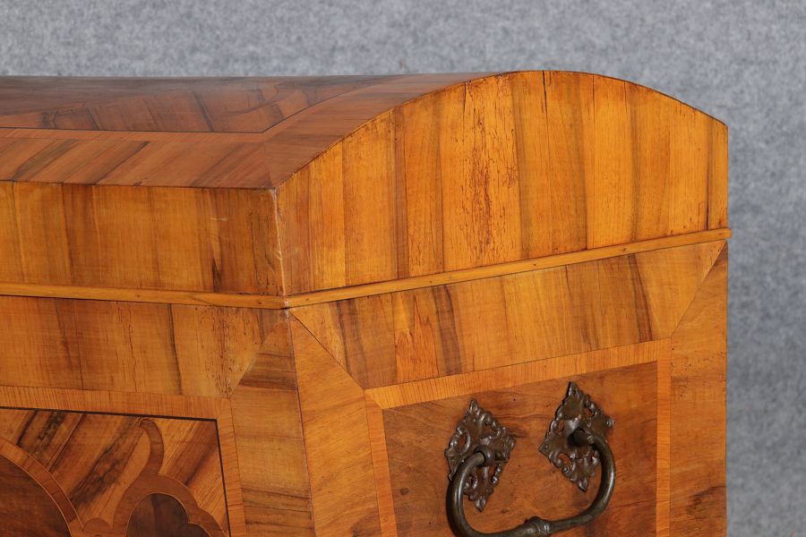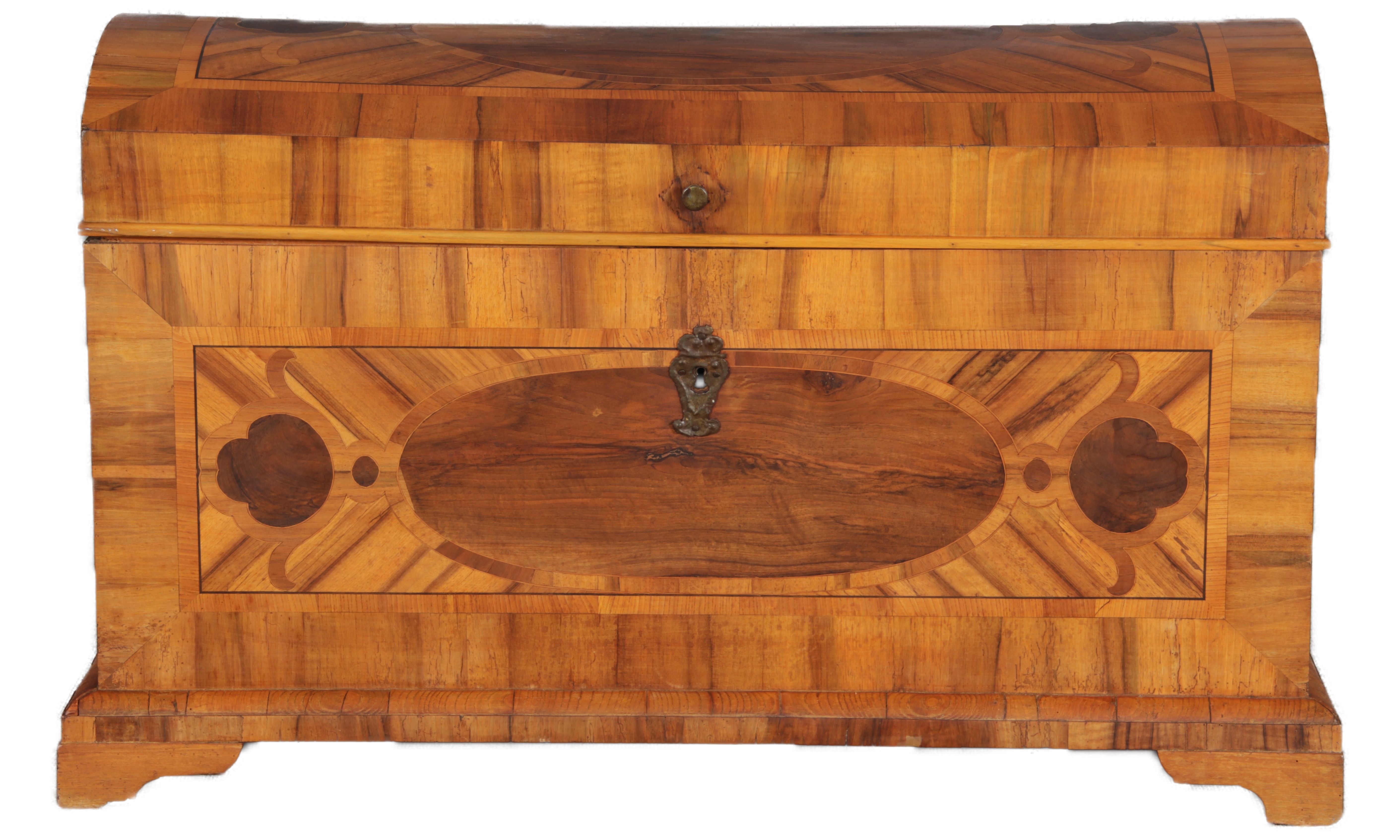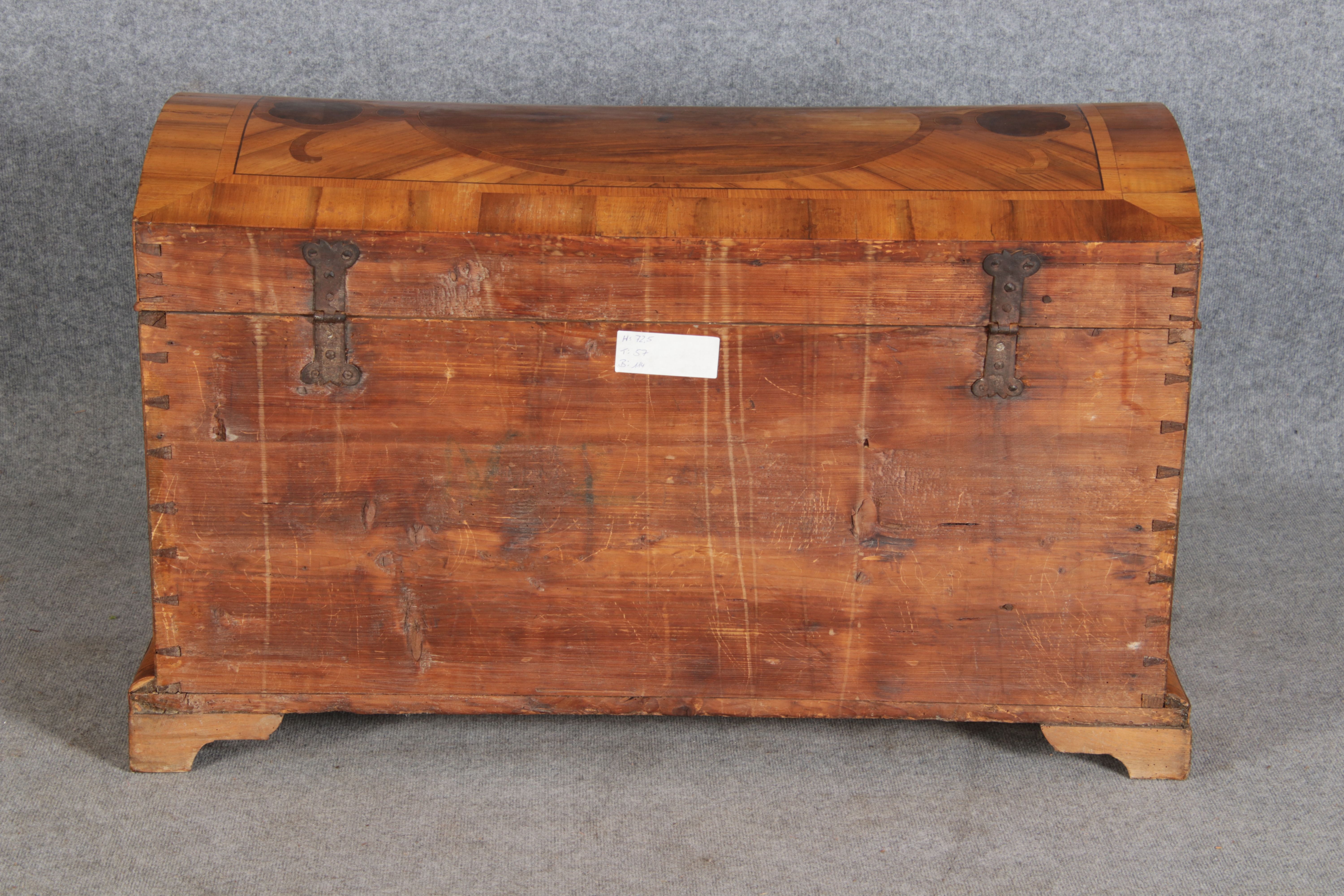 | Antike Biedermeier Truhe mit Einlegearbeiten Nussbaum