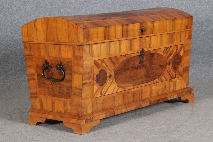 | Biedermeier Truhe mit Einlegearbeiten Nussbaum Anfang 19 Jh. | ||||||||||||||||||||||||||||||||||||||||||||||||||||||||||||||||||