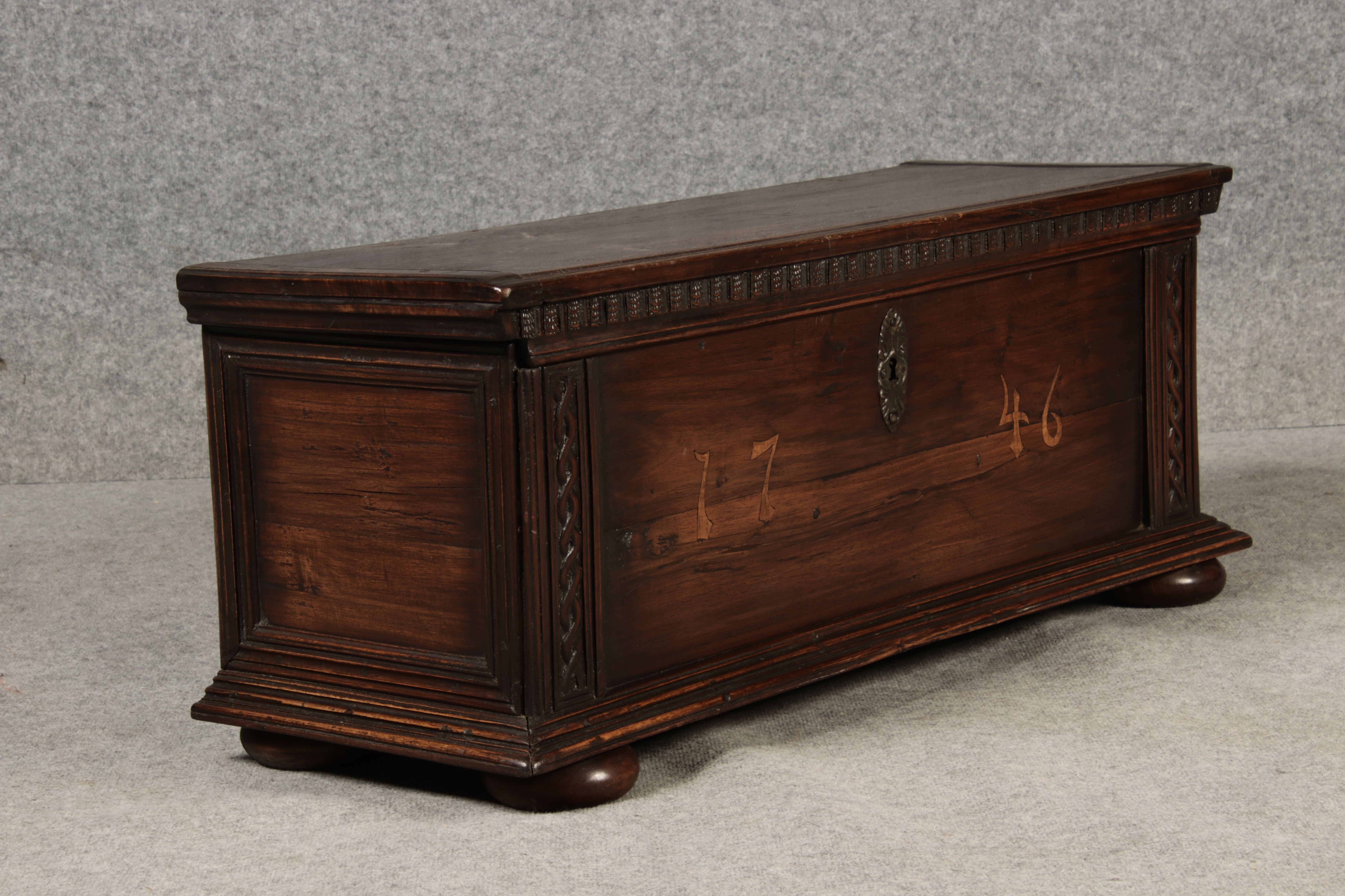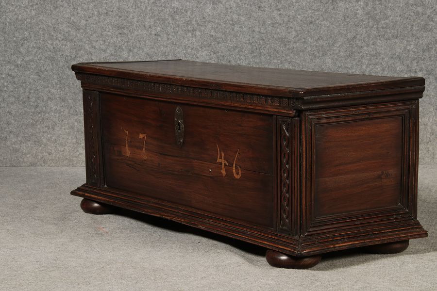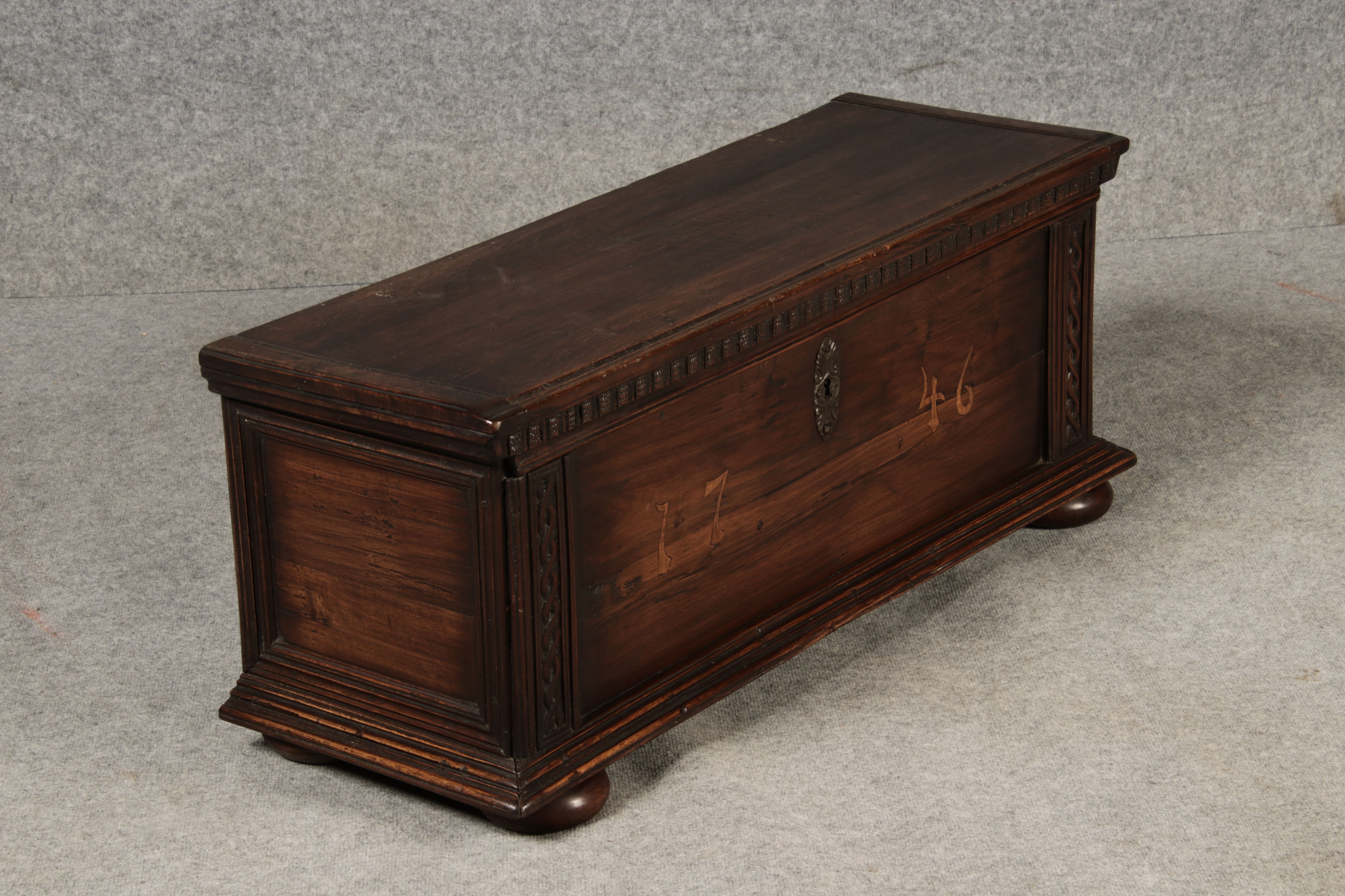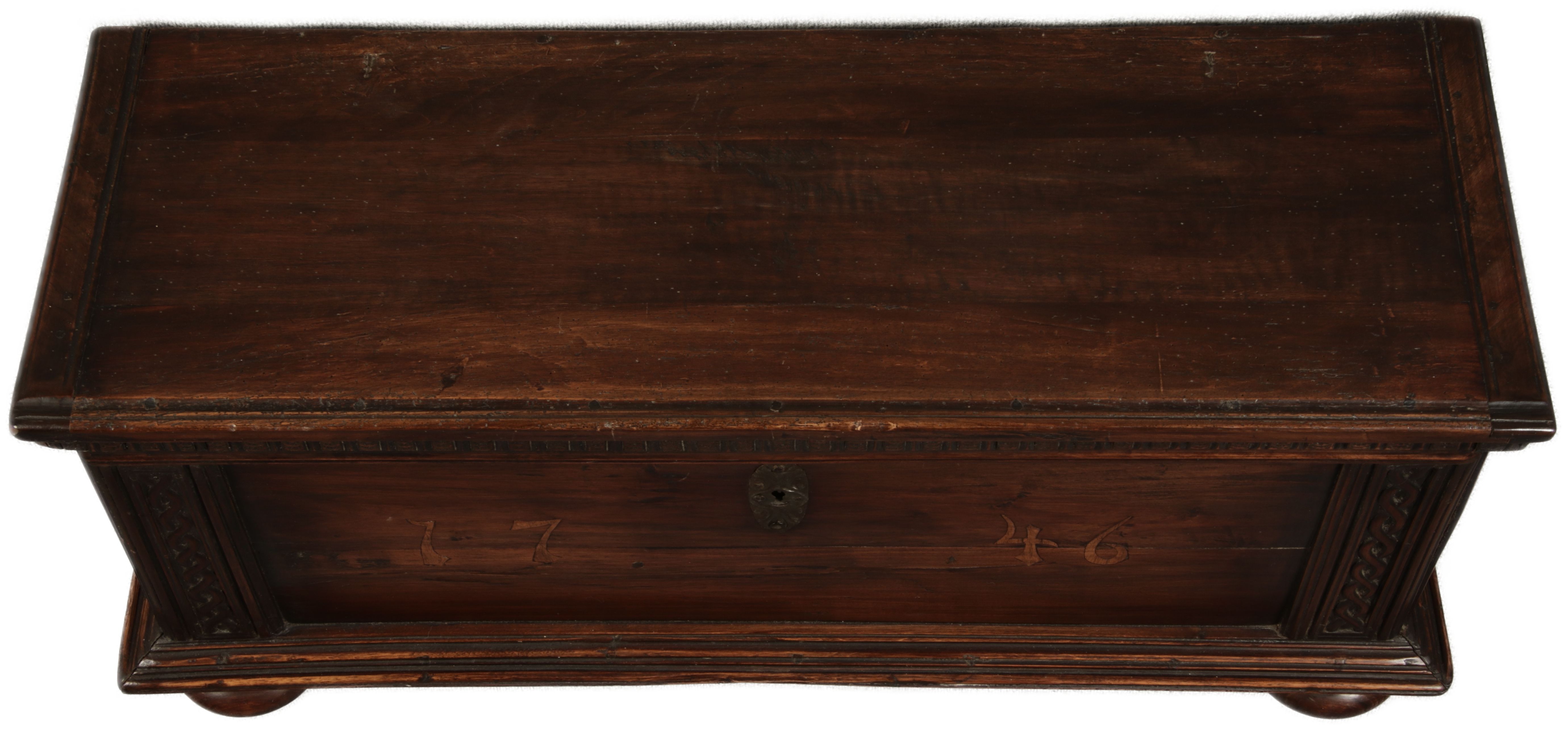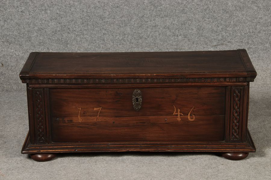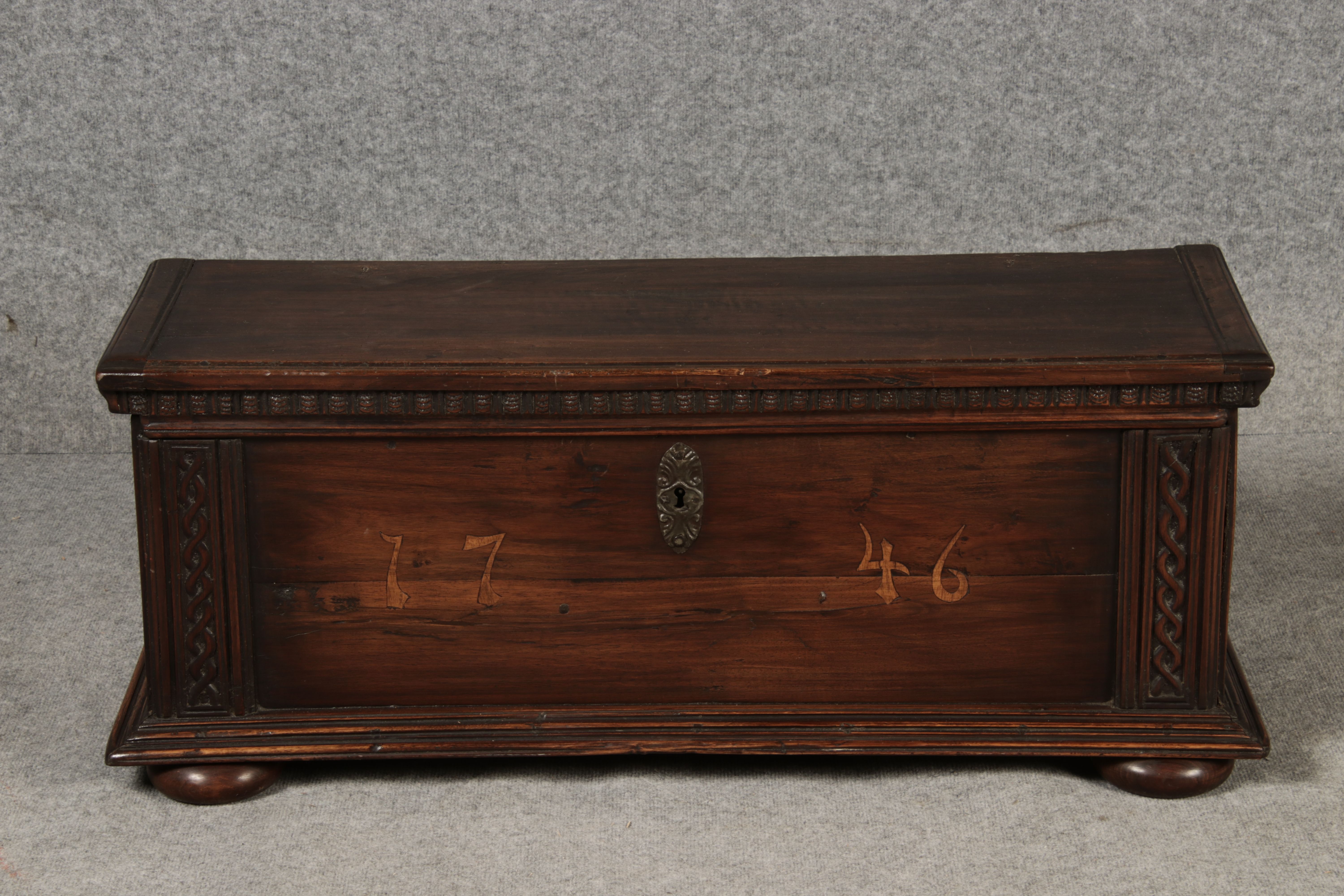 Antike Kleine Barocktruhe Nussbaum 17/18 Jh. Datiert 1746 |