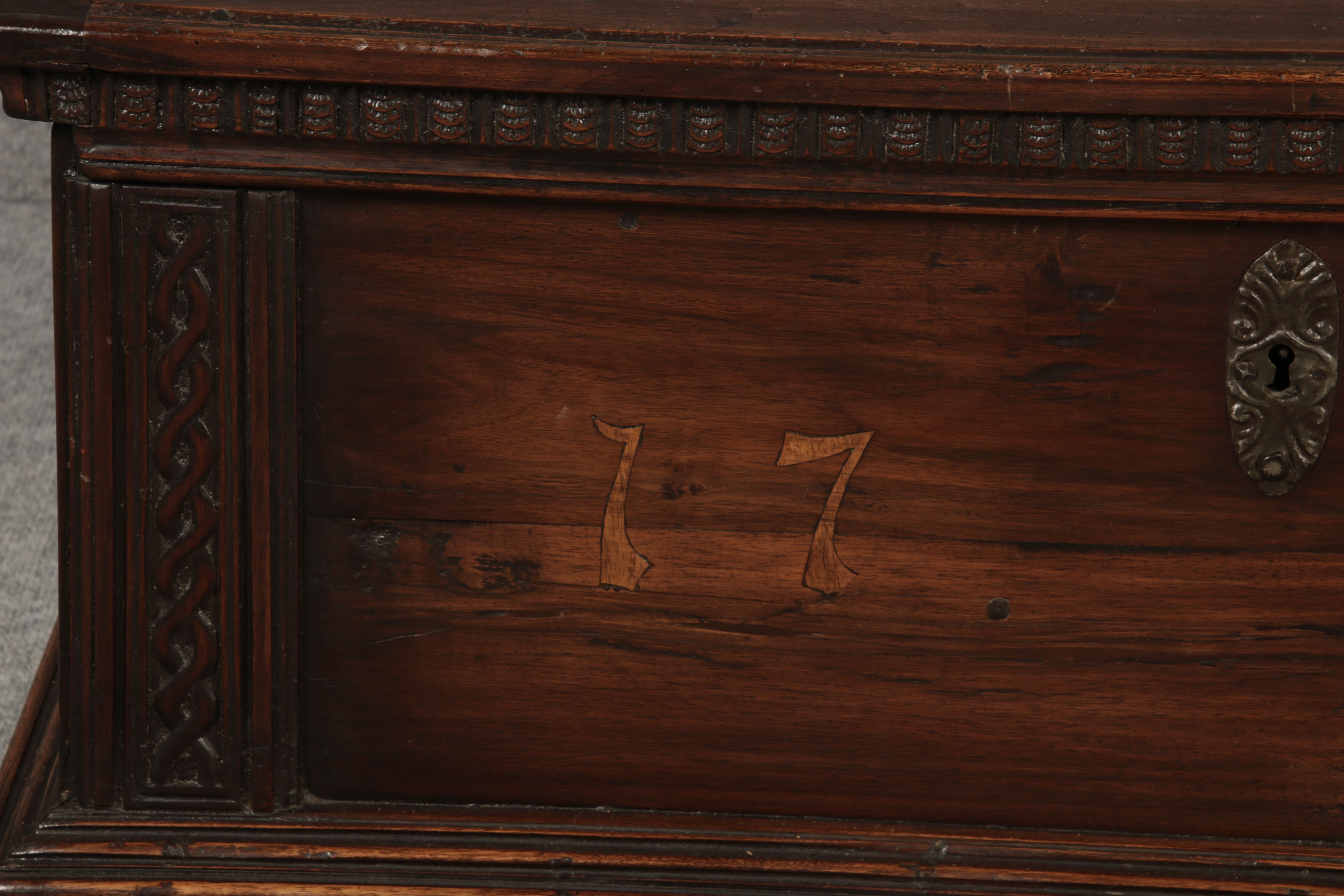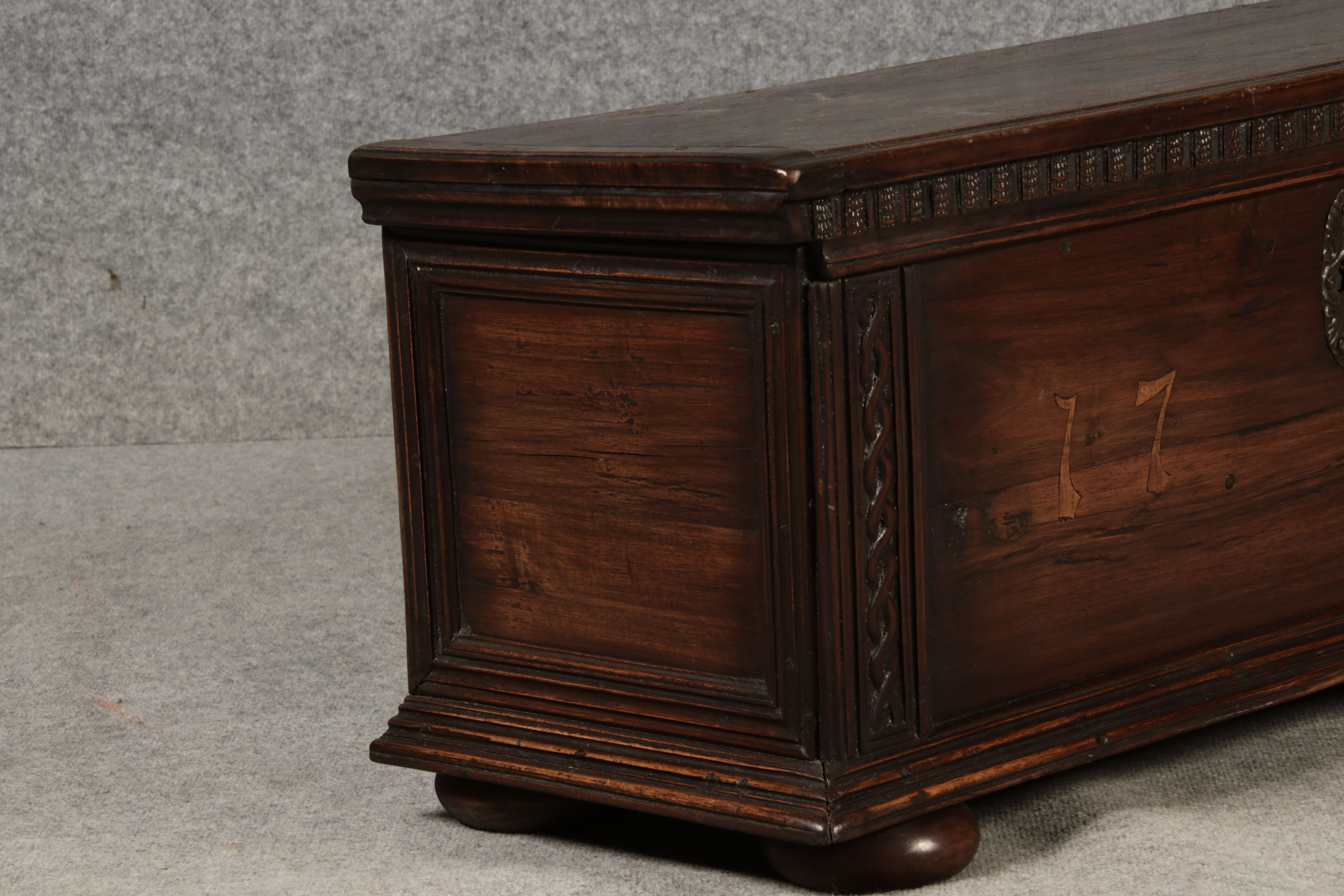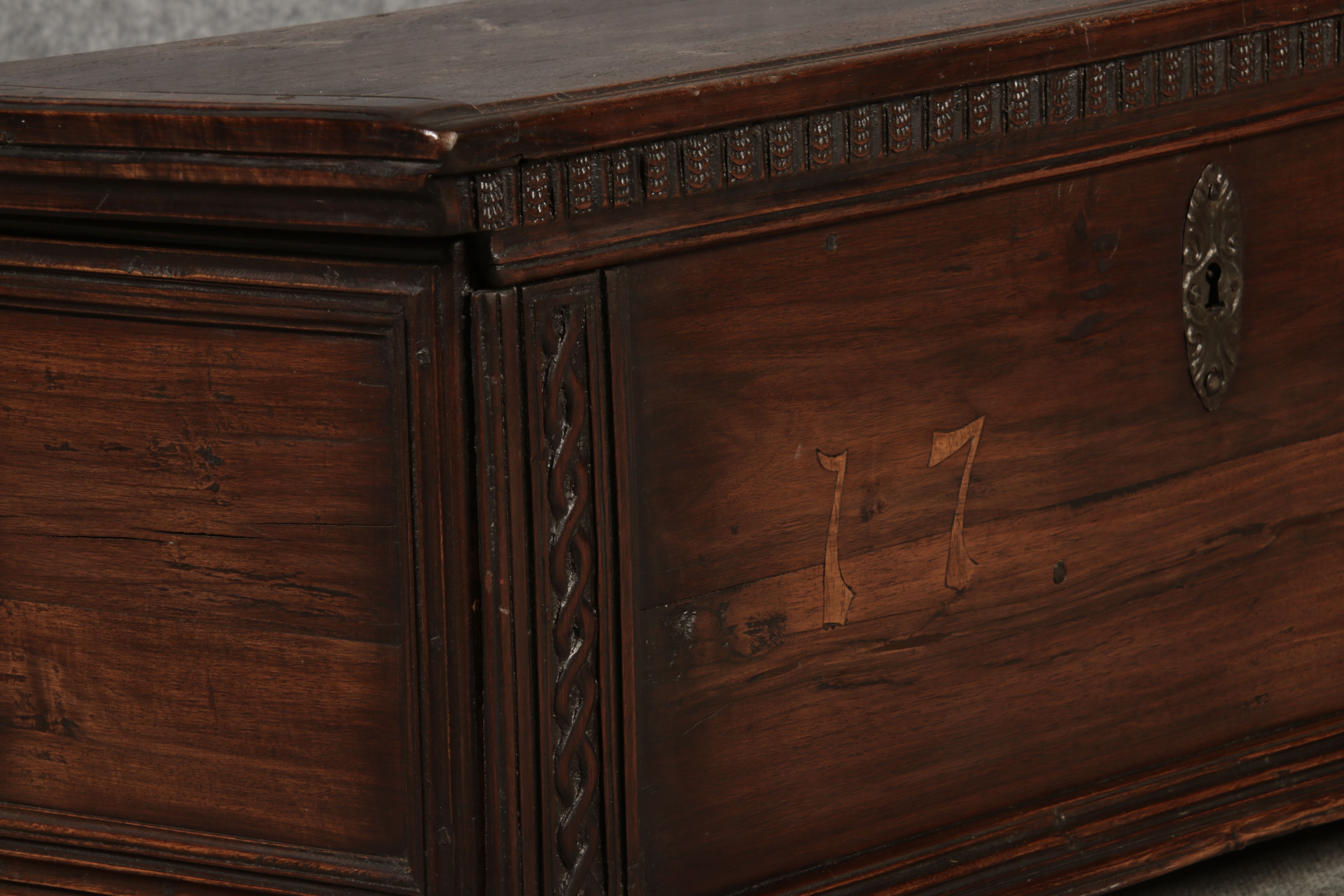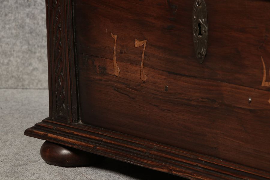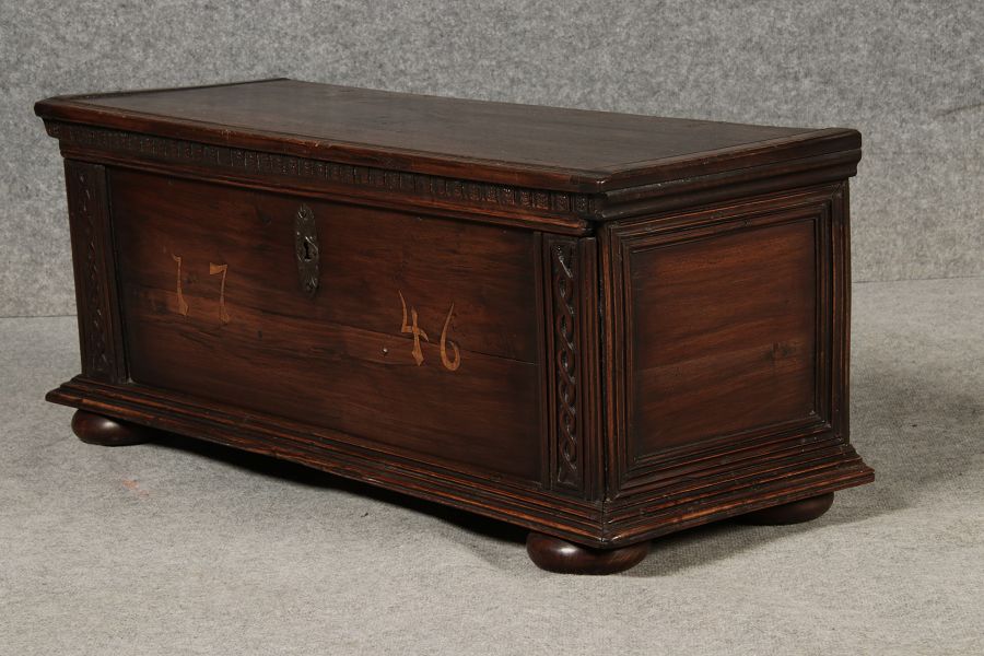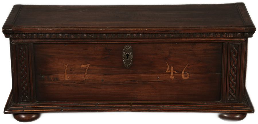 Antike Kleine Barocktruhe Nussbaum 17/18 Jh. Datiert 1746 |