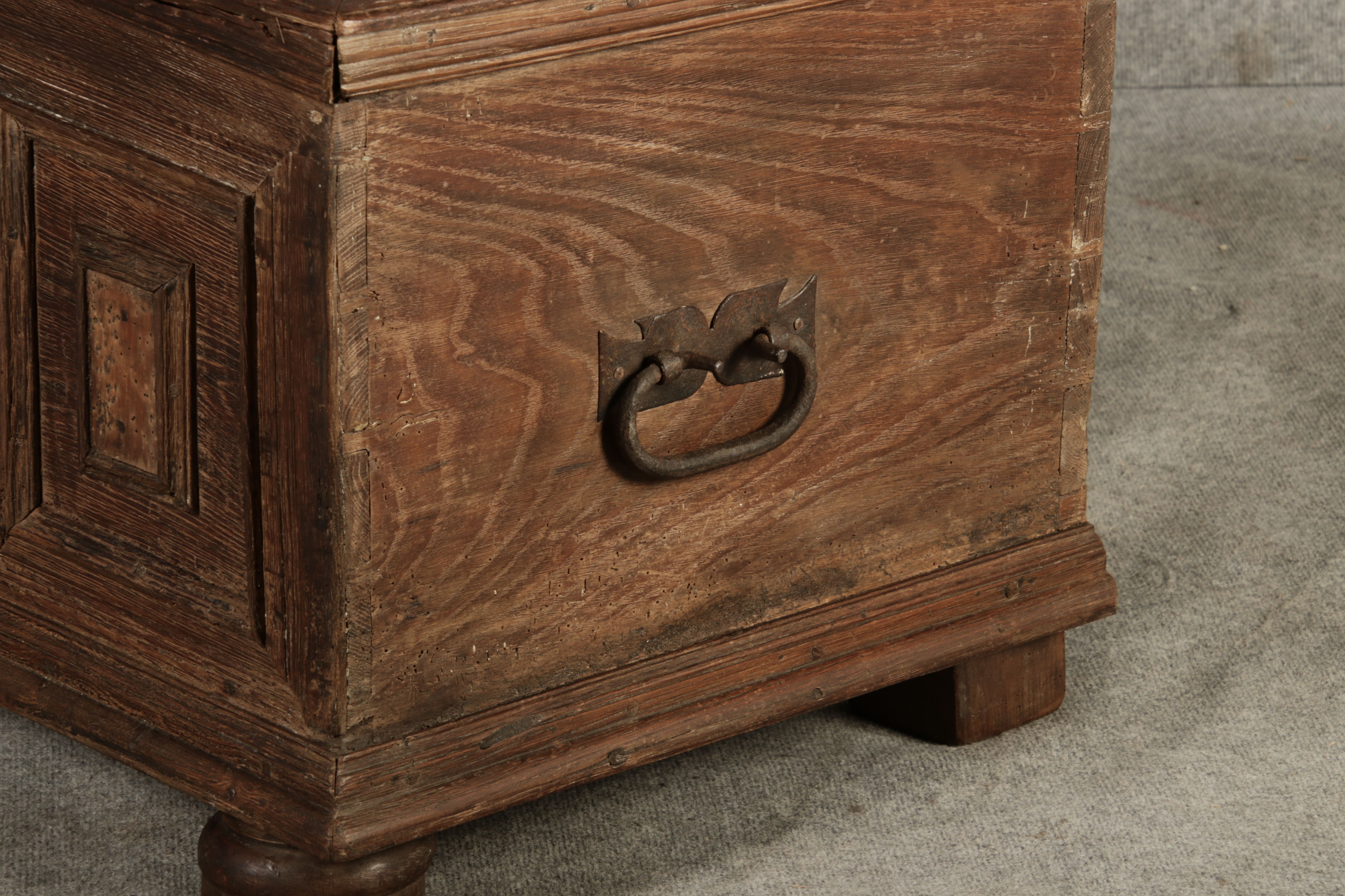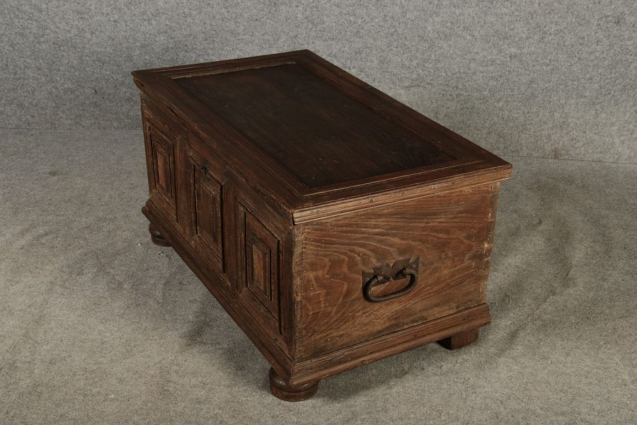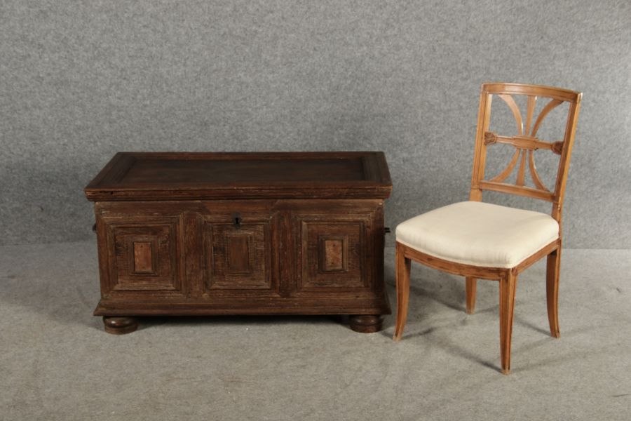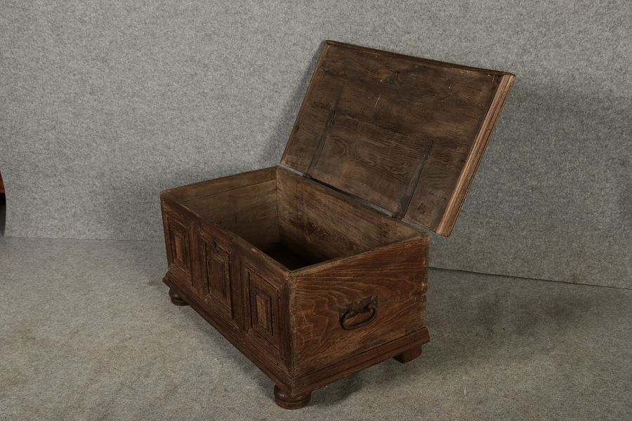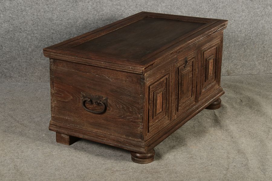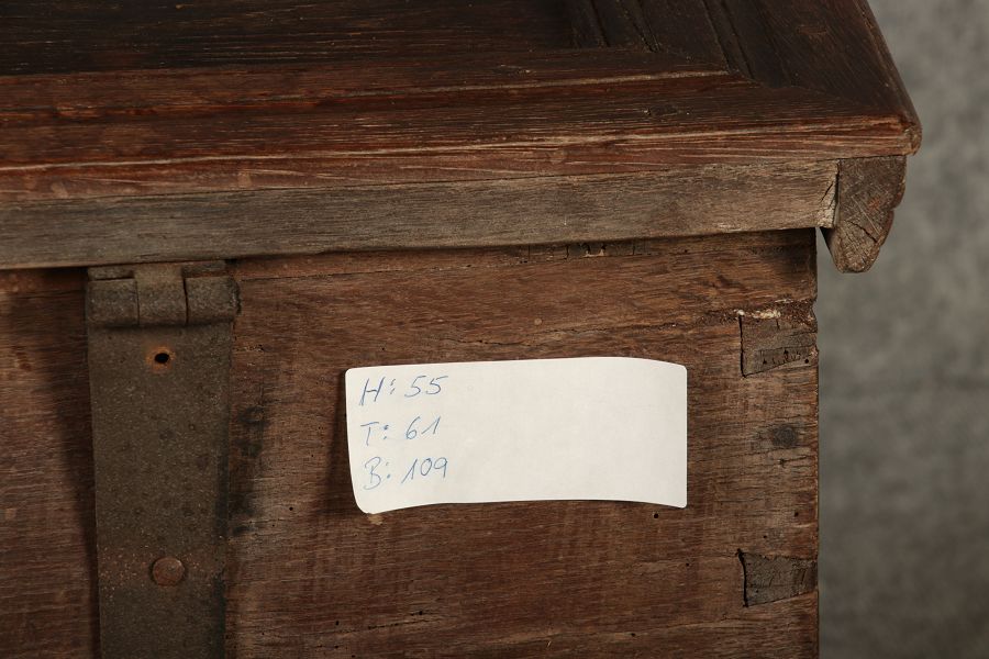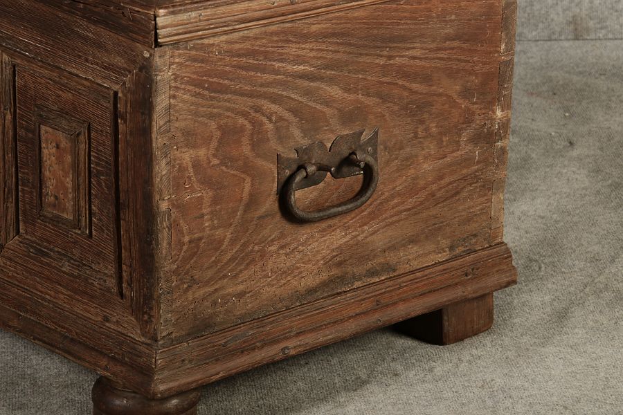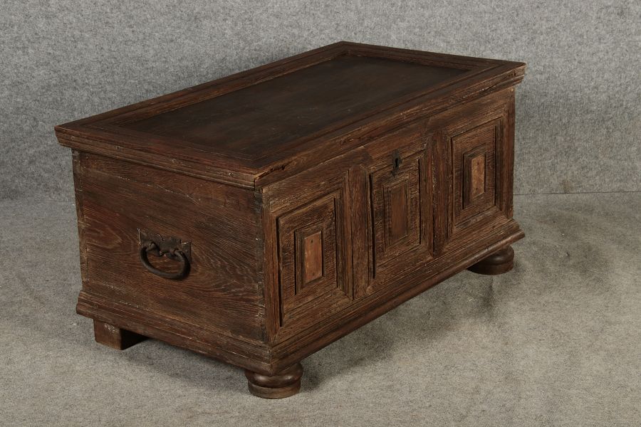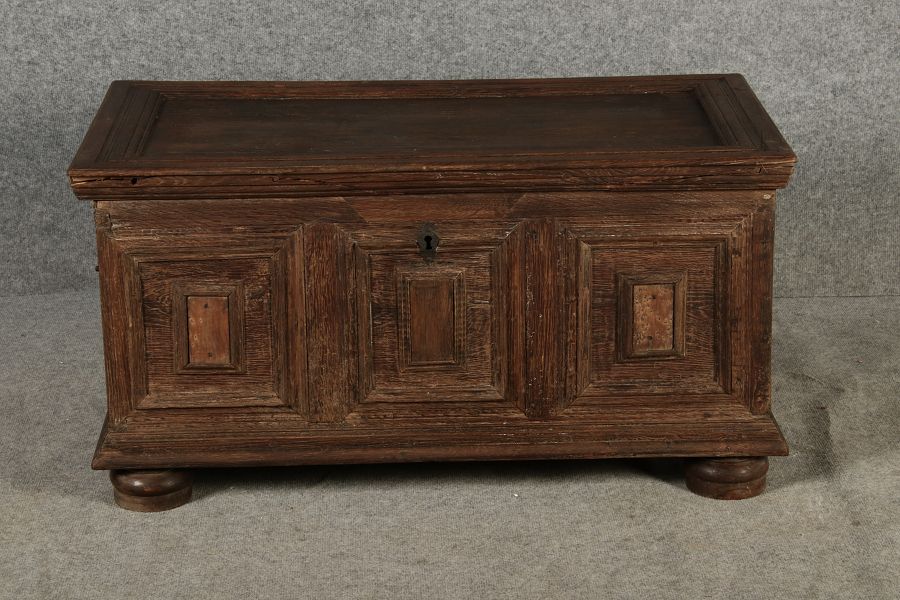 | Antike kleine Barocktruhe Eiche |
